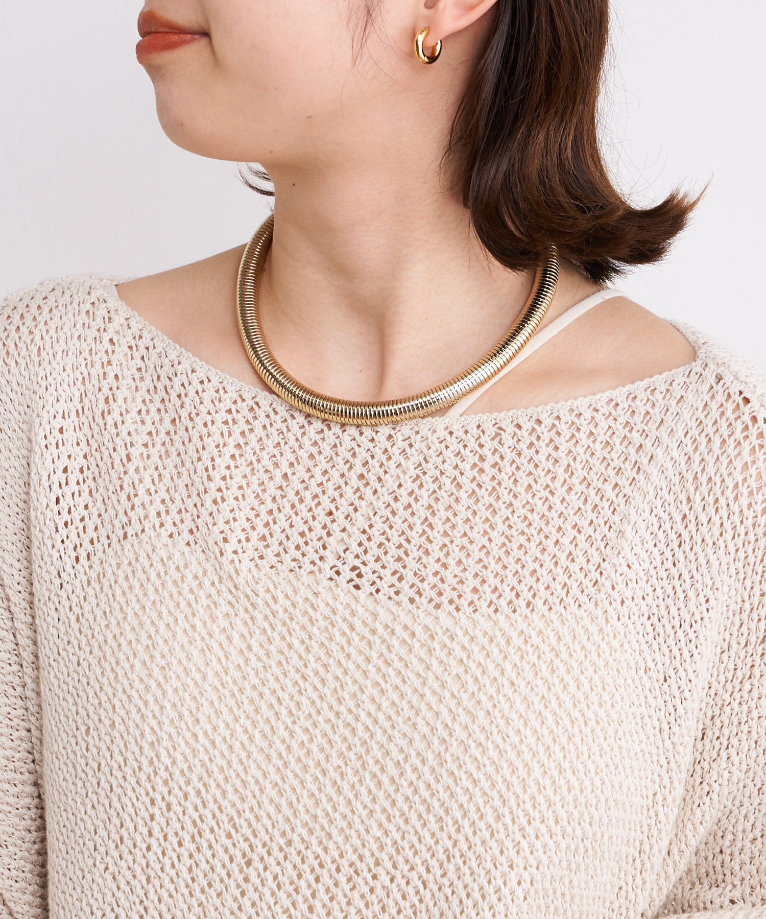 ・太めのメタルチューブが一つ付けるだけで首元が華やかになるネックレス