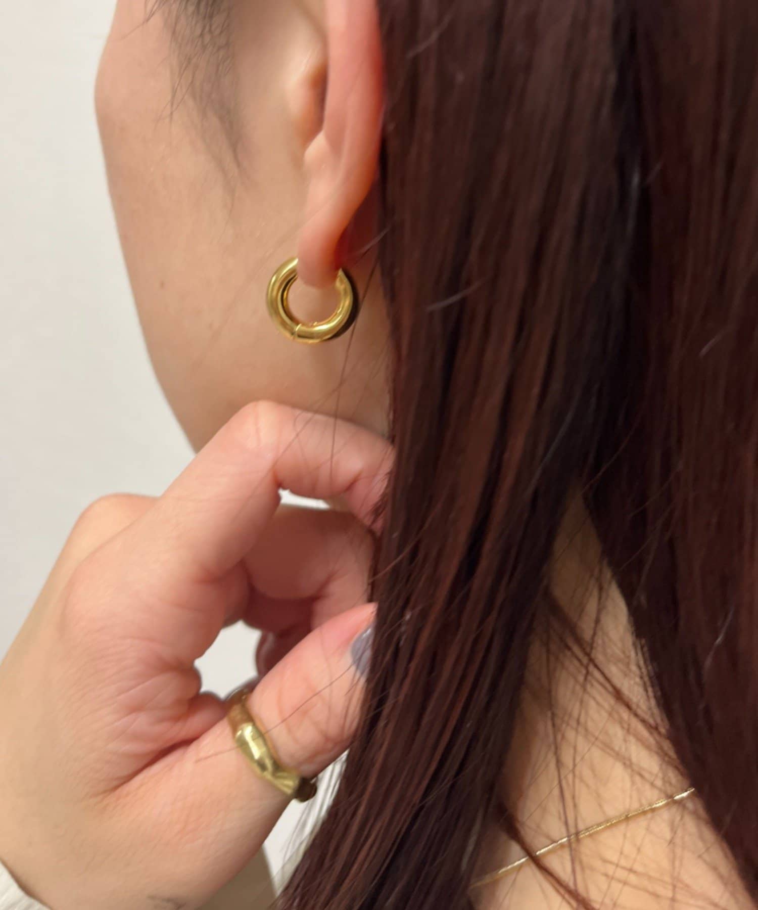 ・華奢でシンプルなフープなのでお手持ちのアクセサリーとも合わせやすいデザイン。