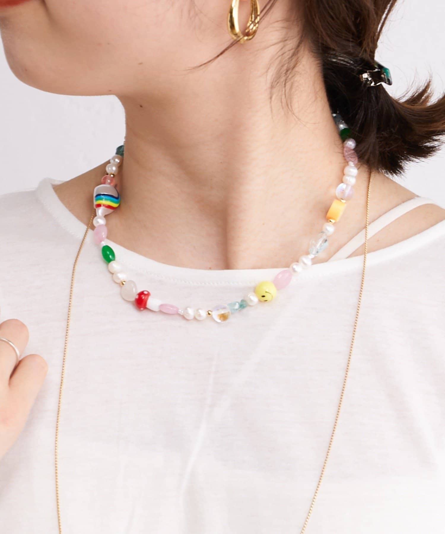 ・カラフルで夏にぴったりなビーズネックレスは一つ持っておくとコーディネートの幅が広がります。