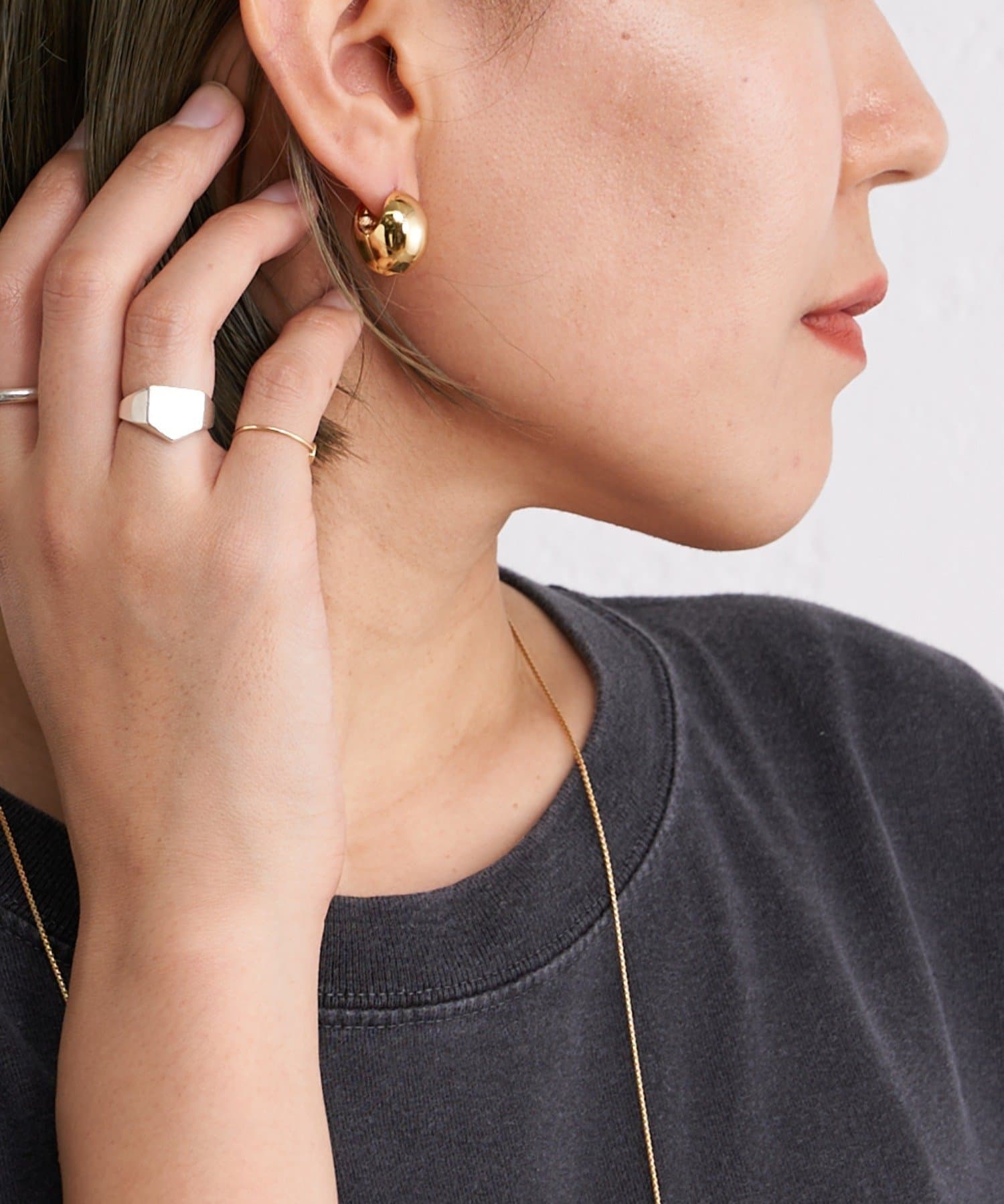 程よく厚みのあるフープが顔周りを華やかにしてくれるフープイヤリング