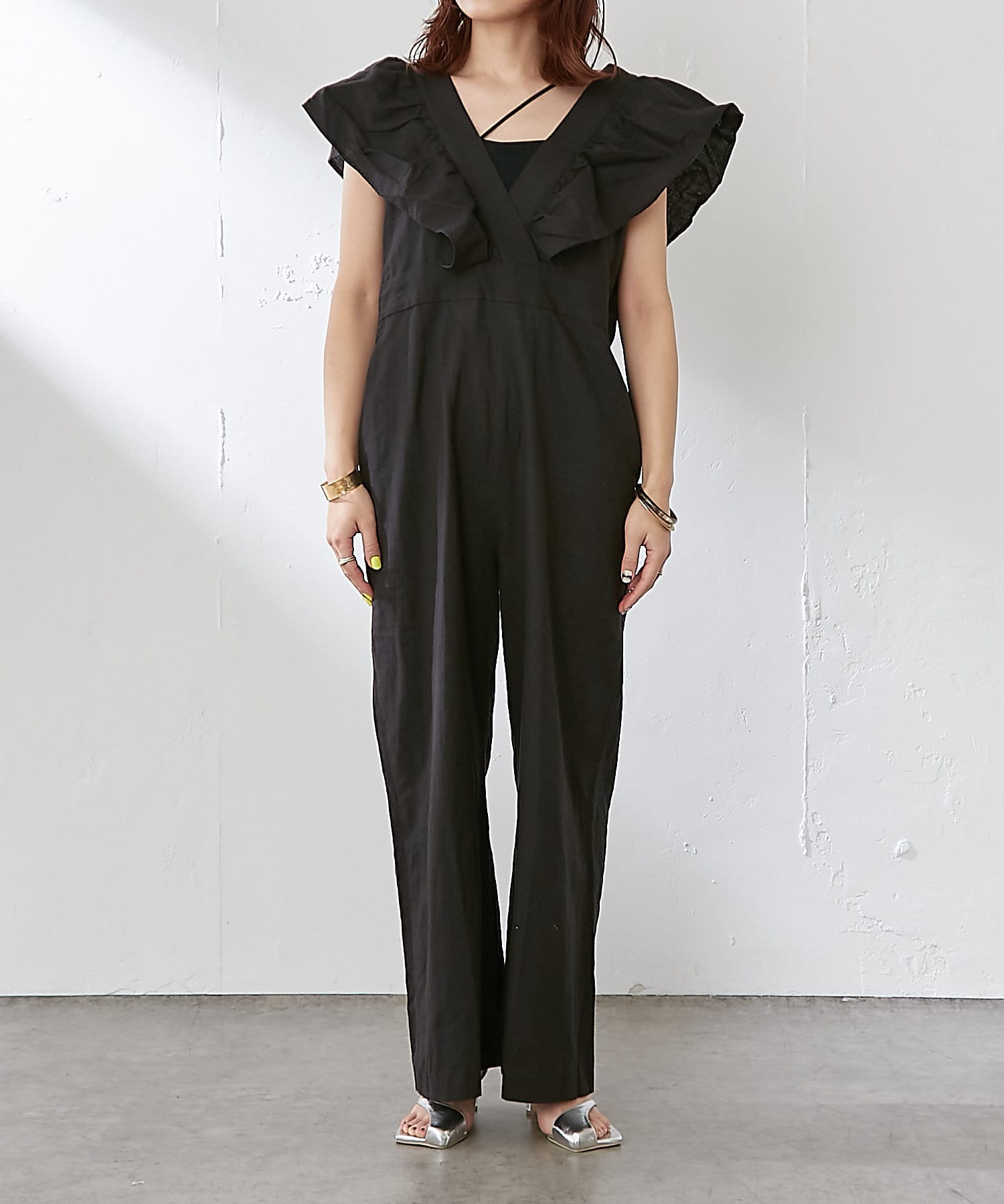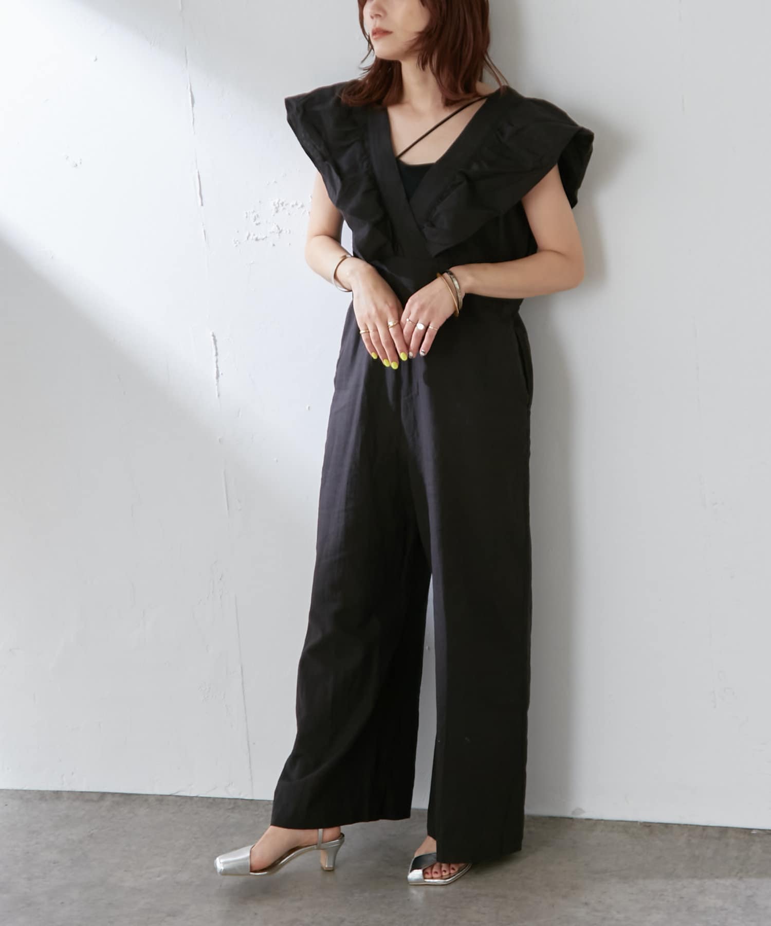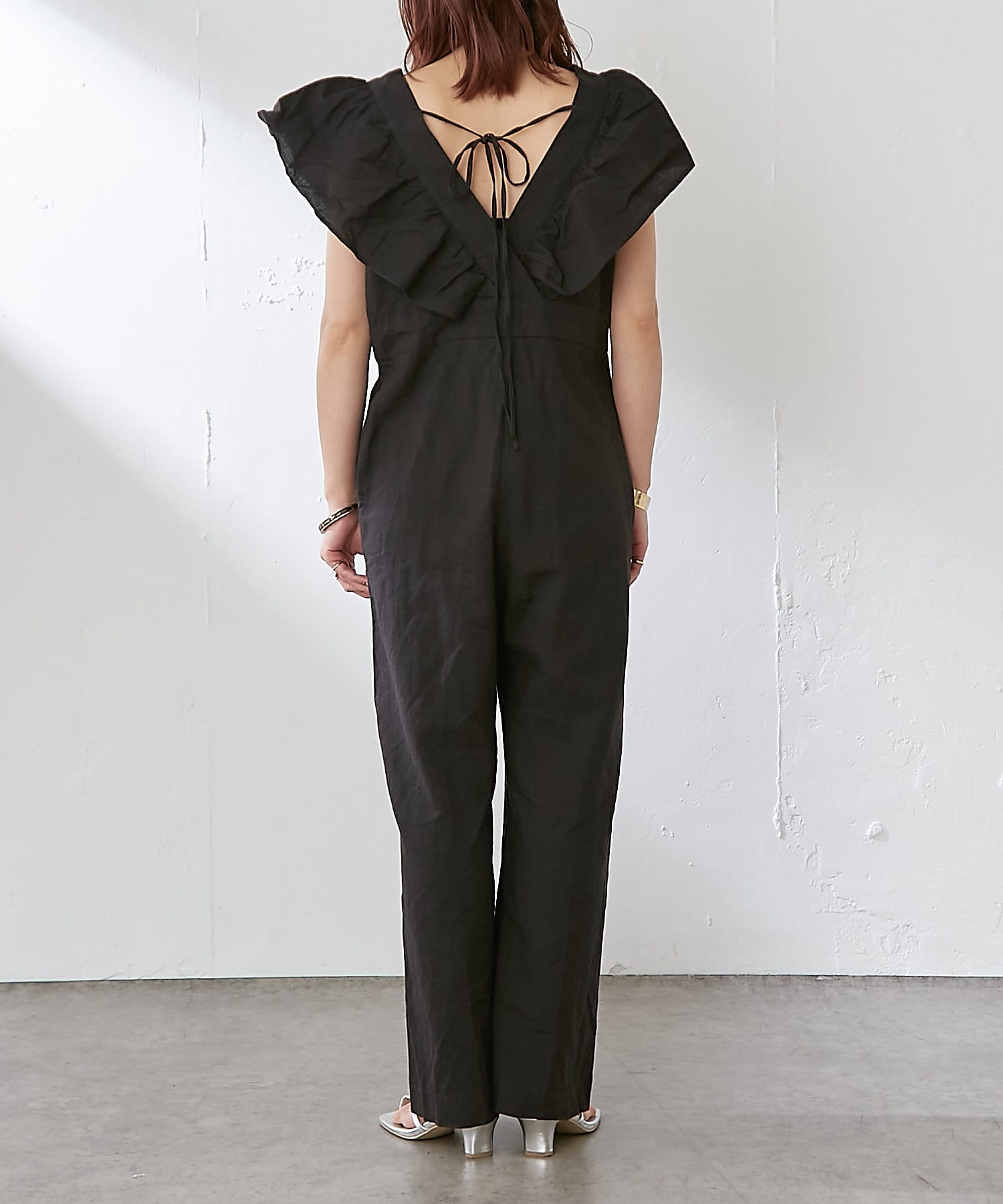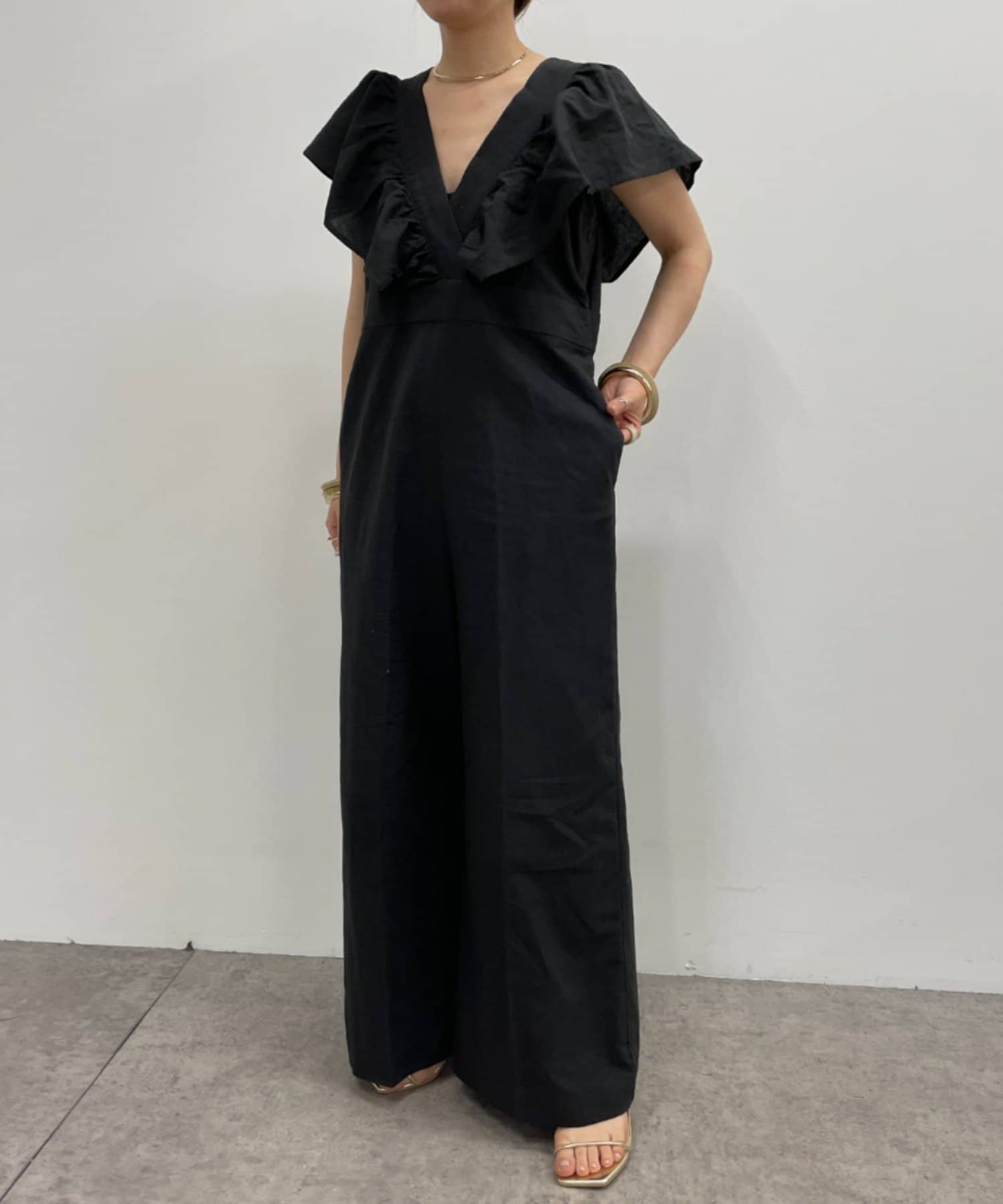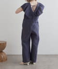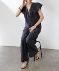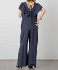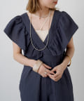 ・大胆なラッフルスリーブが女性らしく、一枚で主役になるオールインワン。