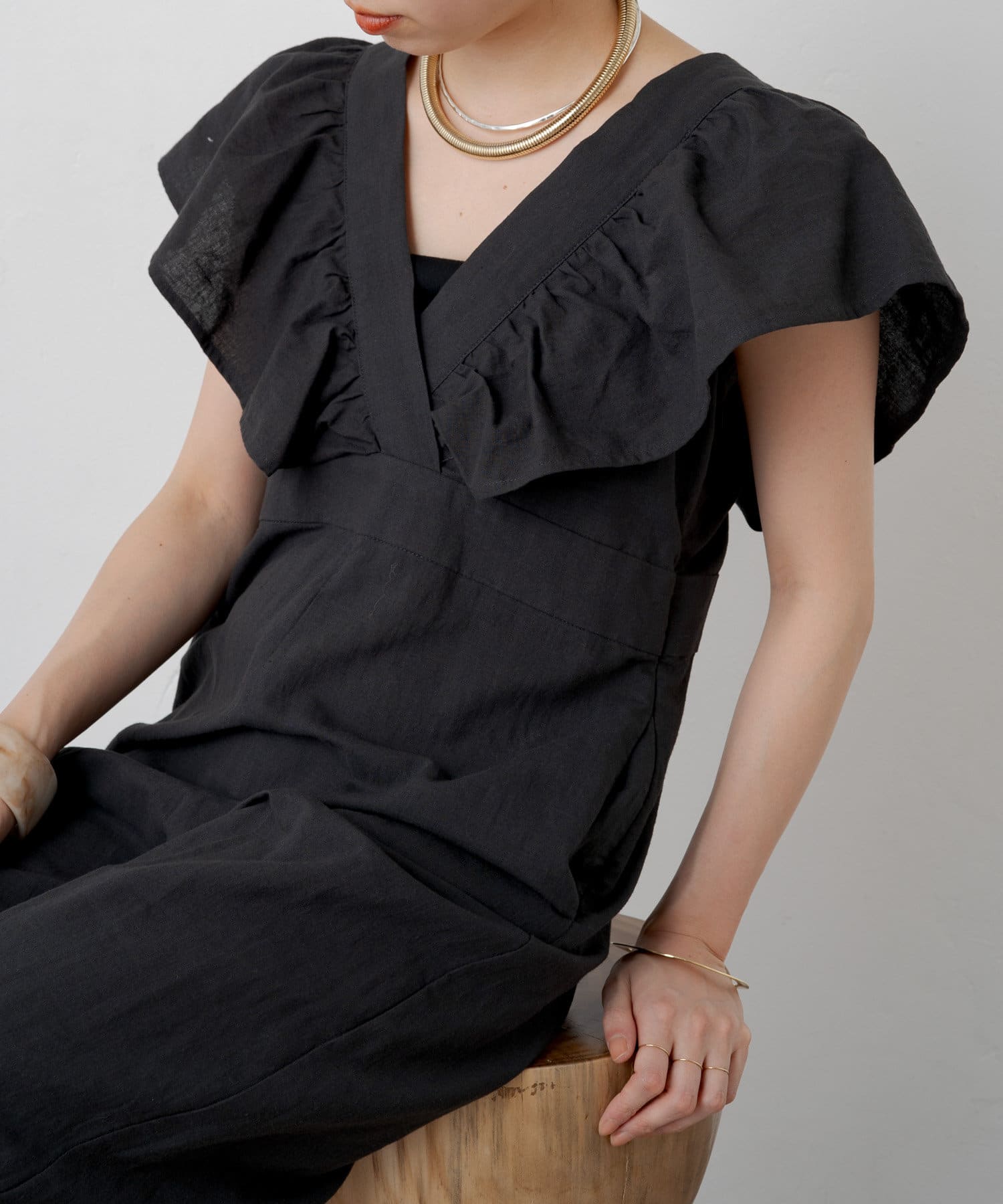 【人気アイテムが低身長サイズも加わり今年も登場!】リネンラッフルオールインワン