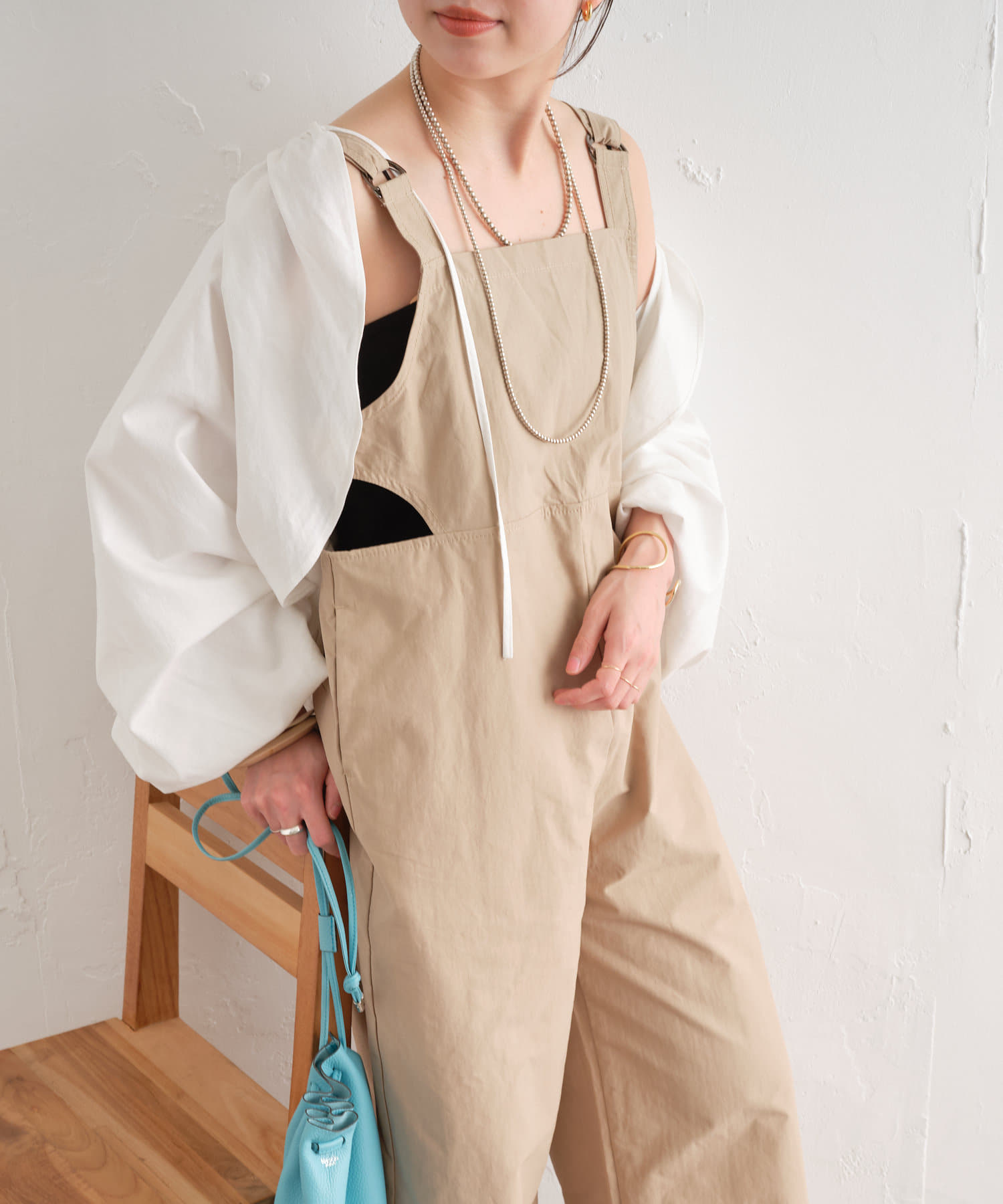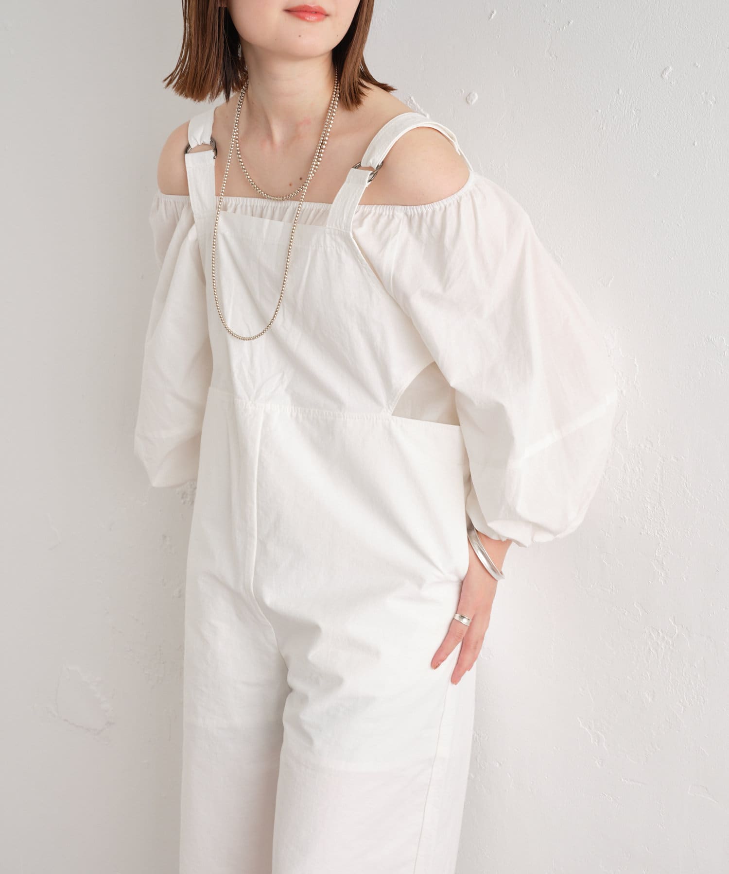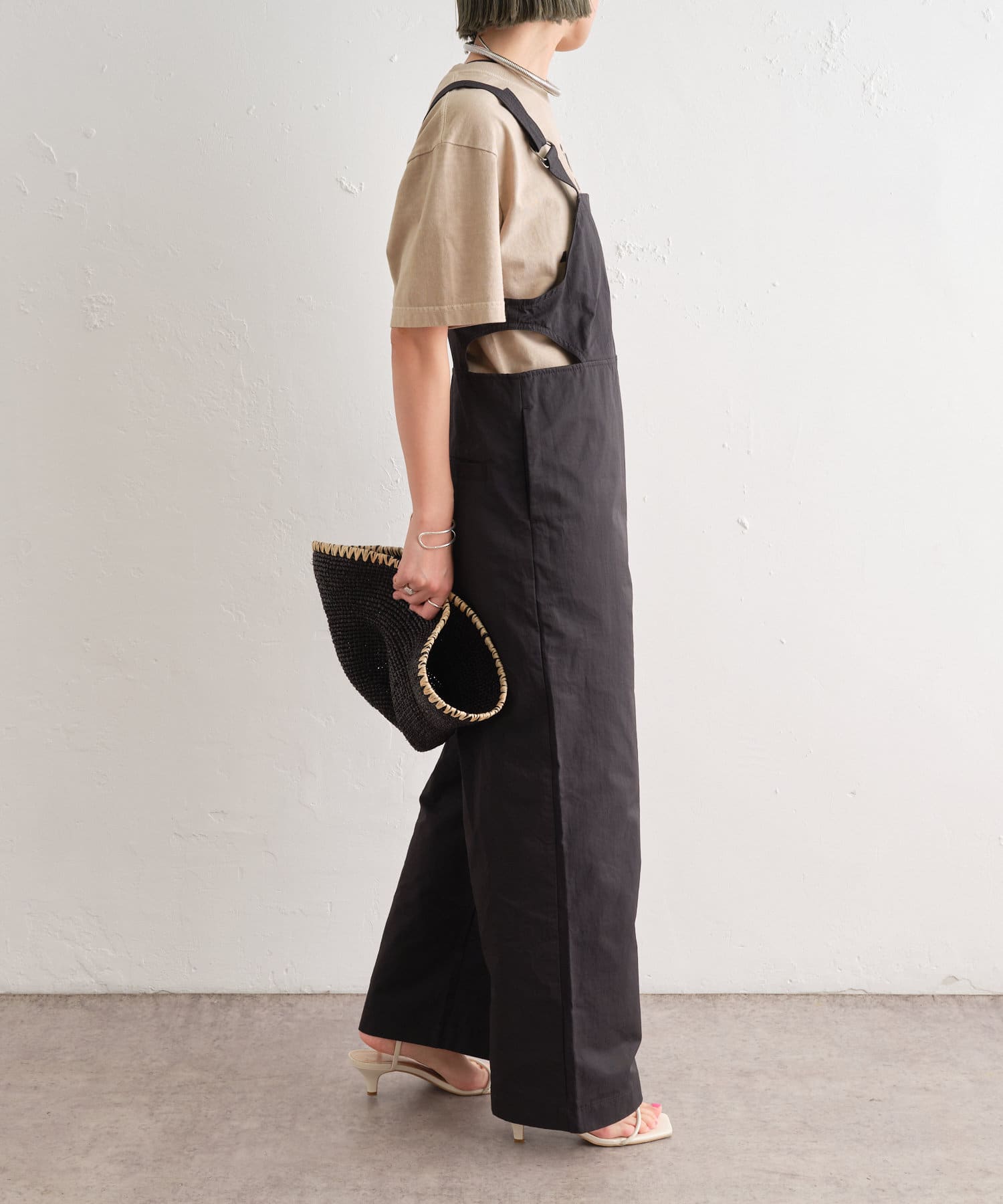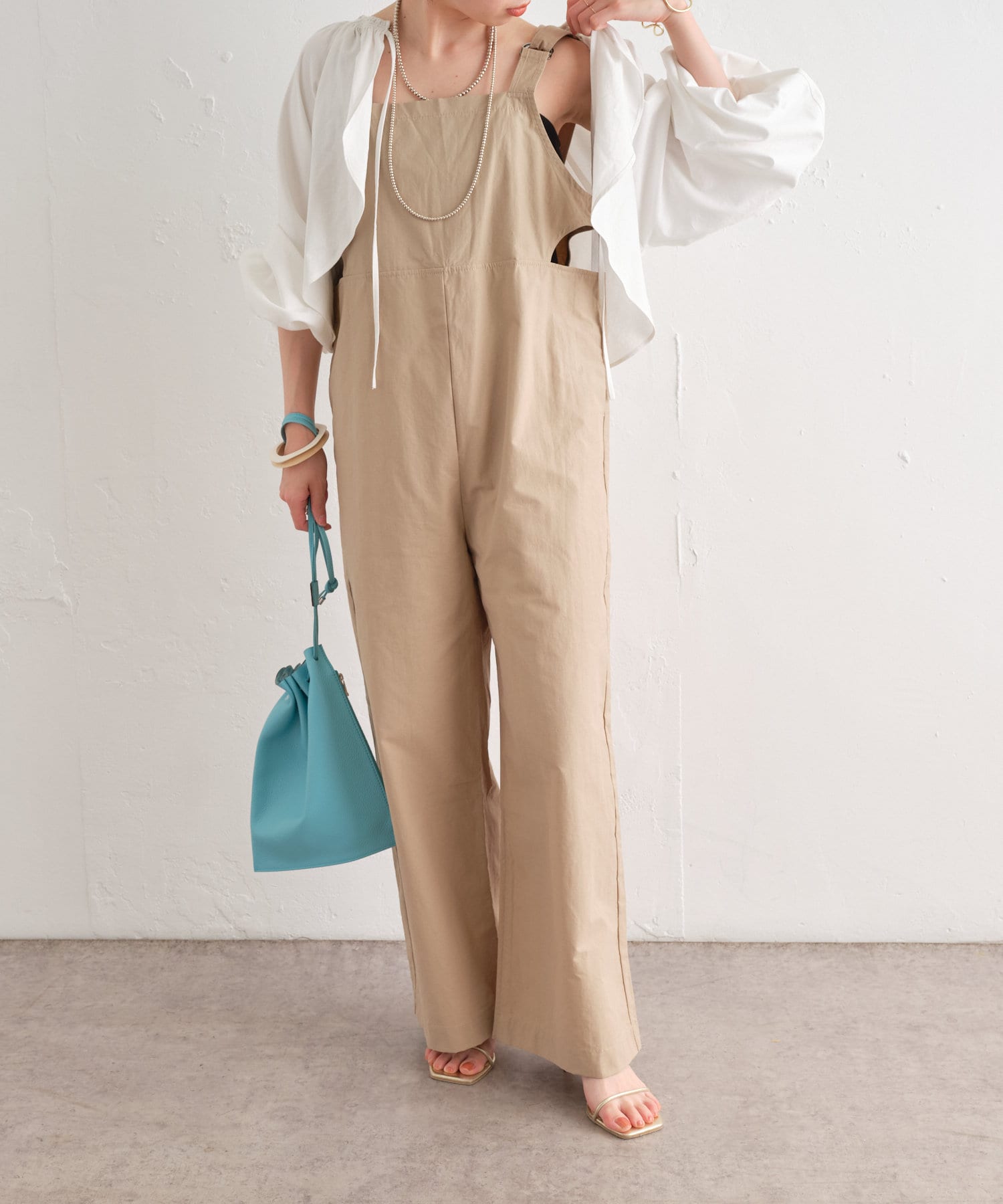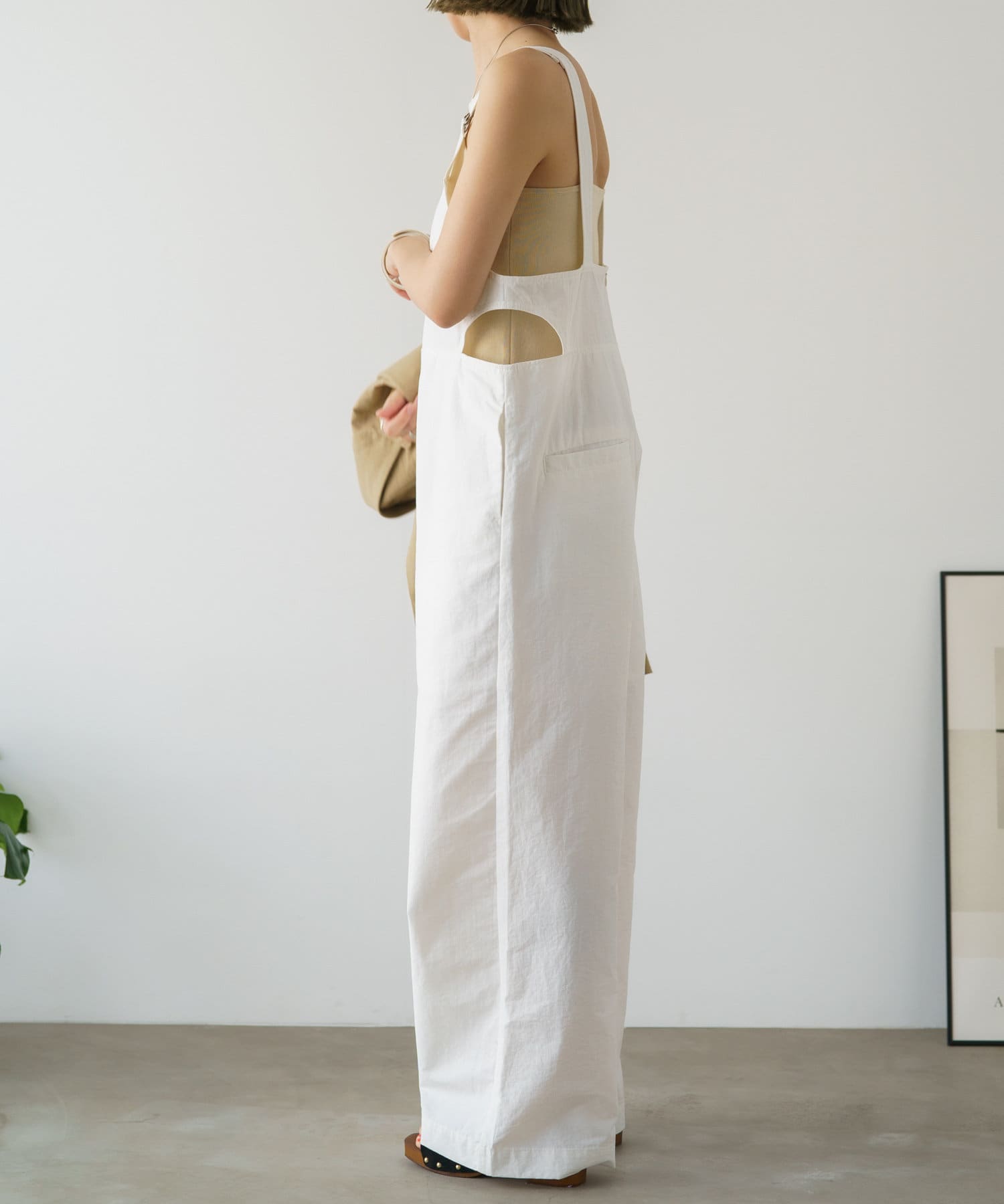 【サイドの開きのデザインがポイント】サイドホールサロペット