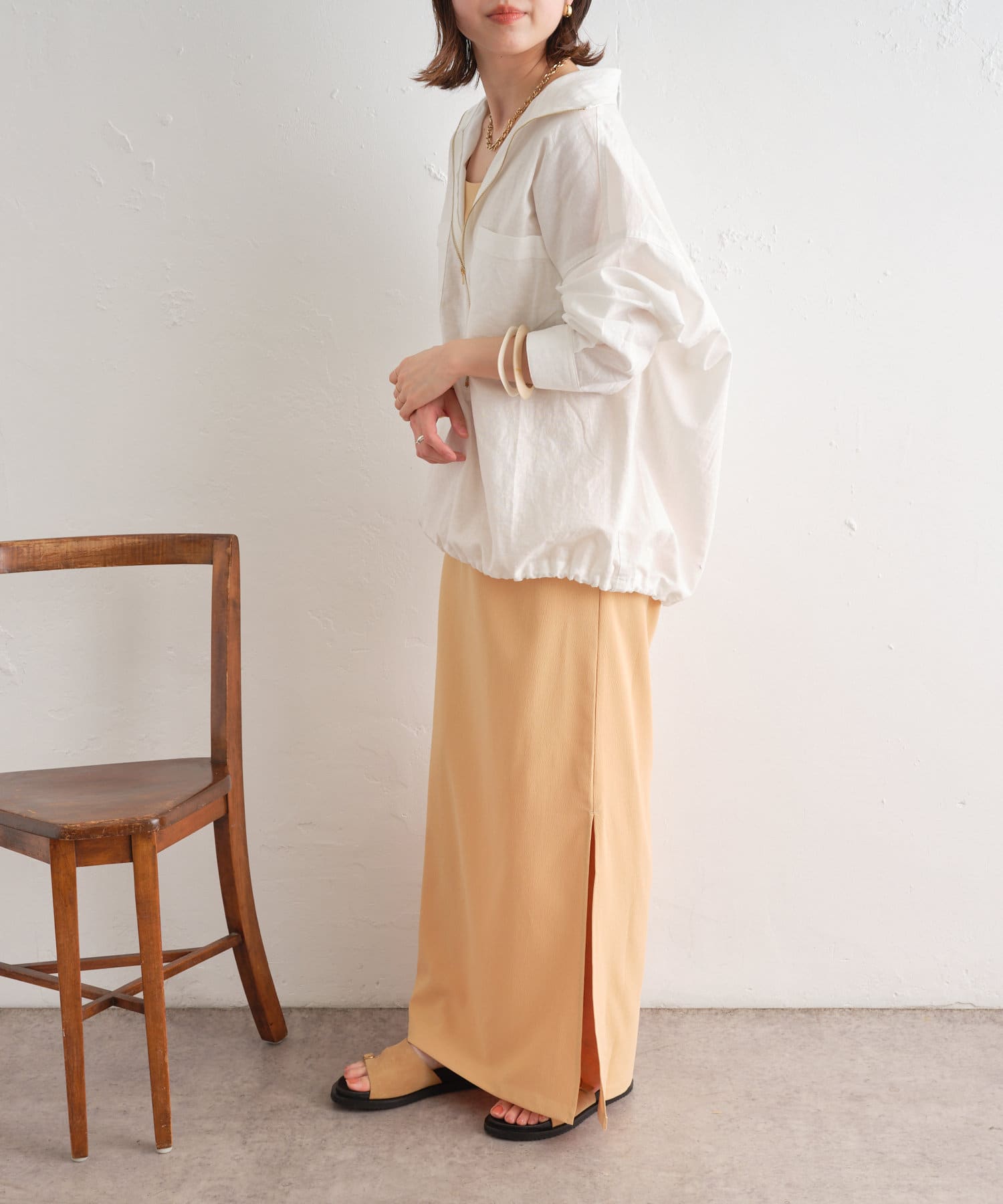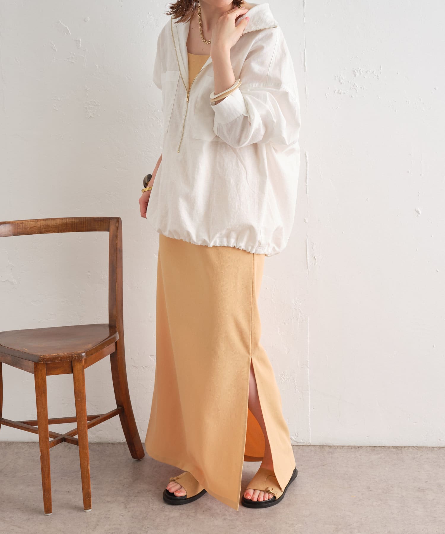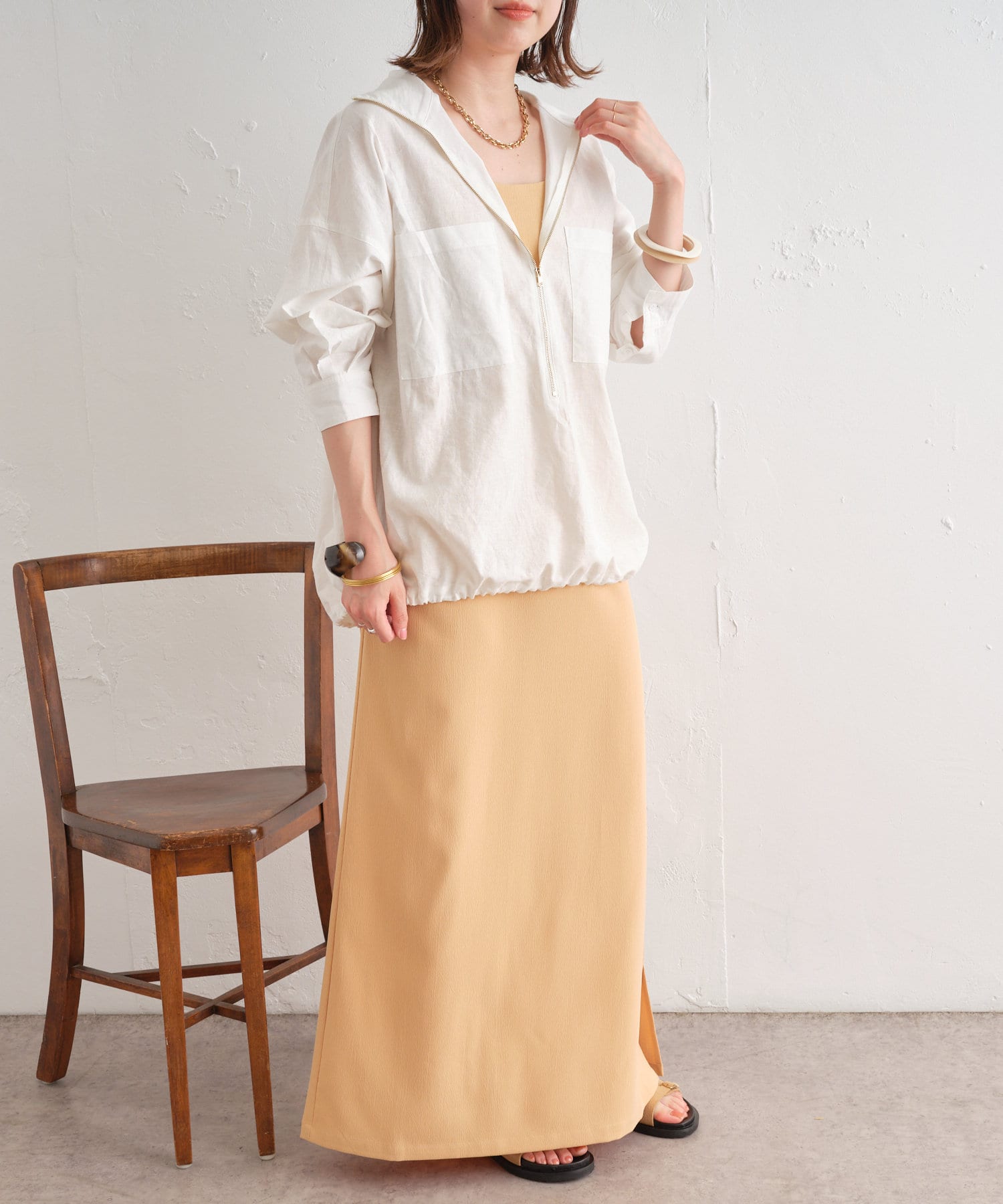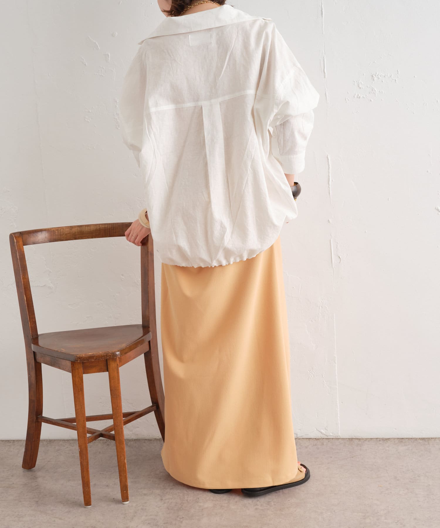 ・やや透け感のあるリネン素材が春夏らしい一枚