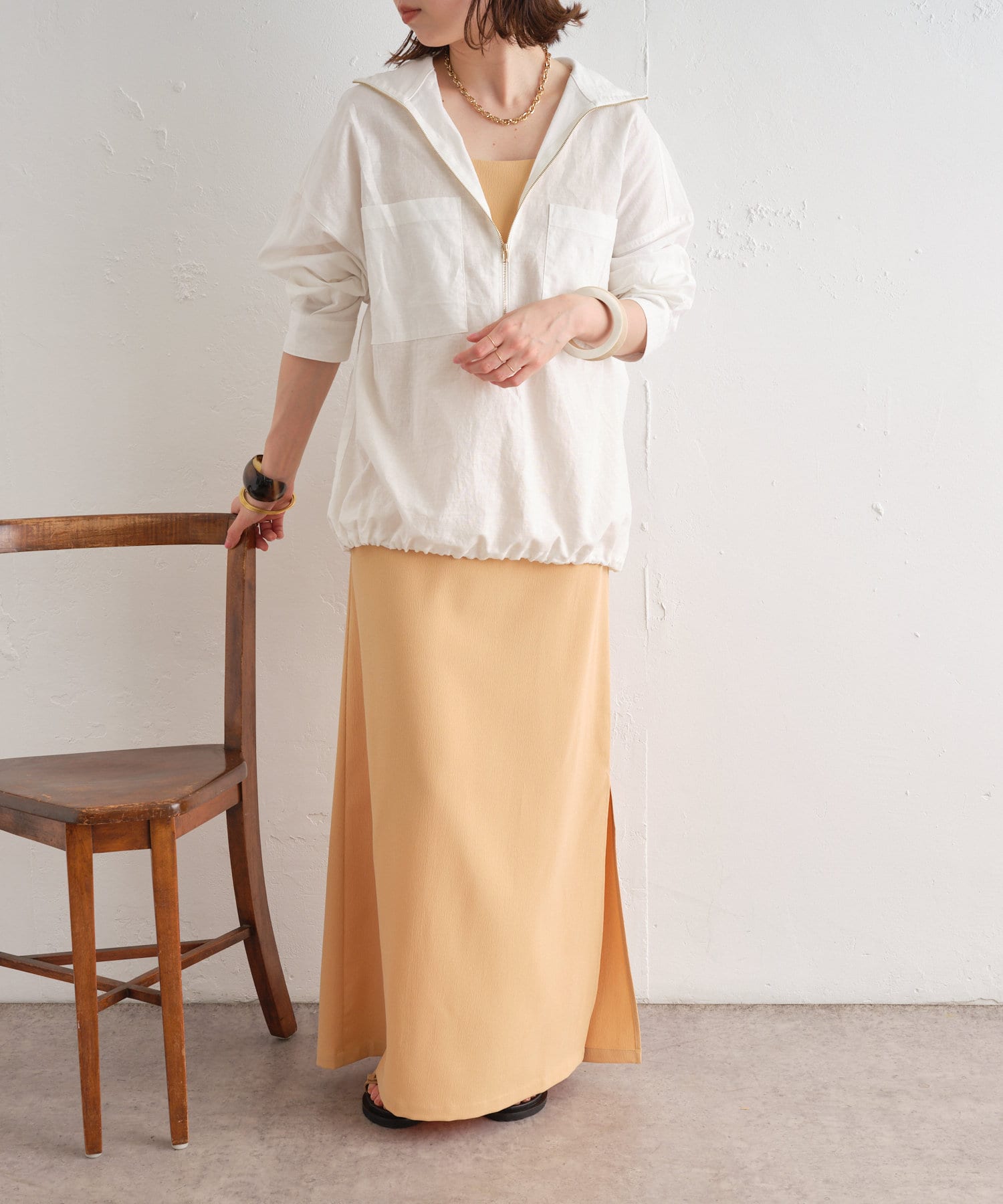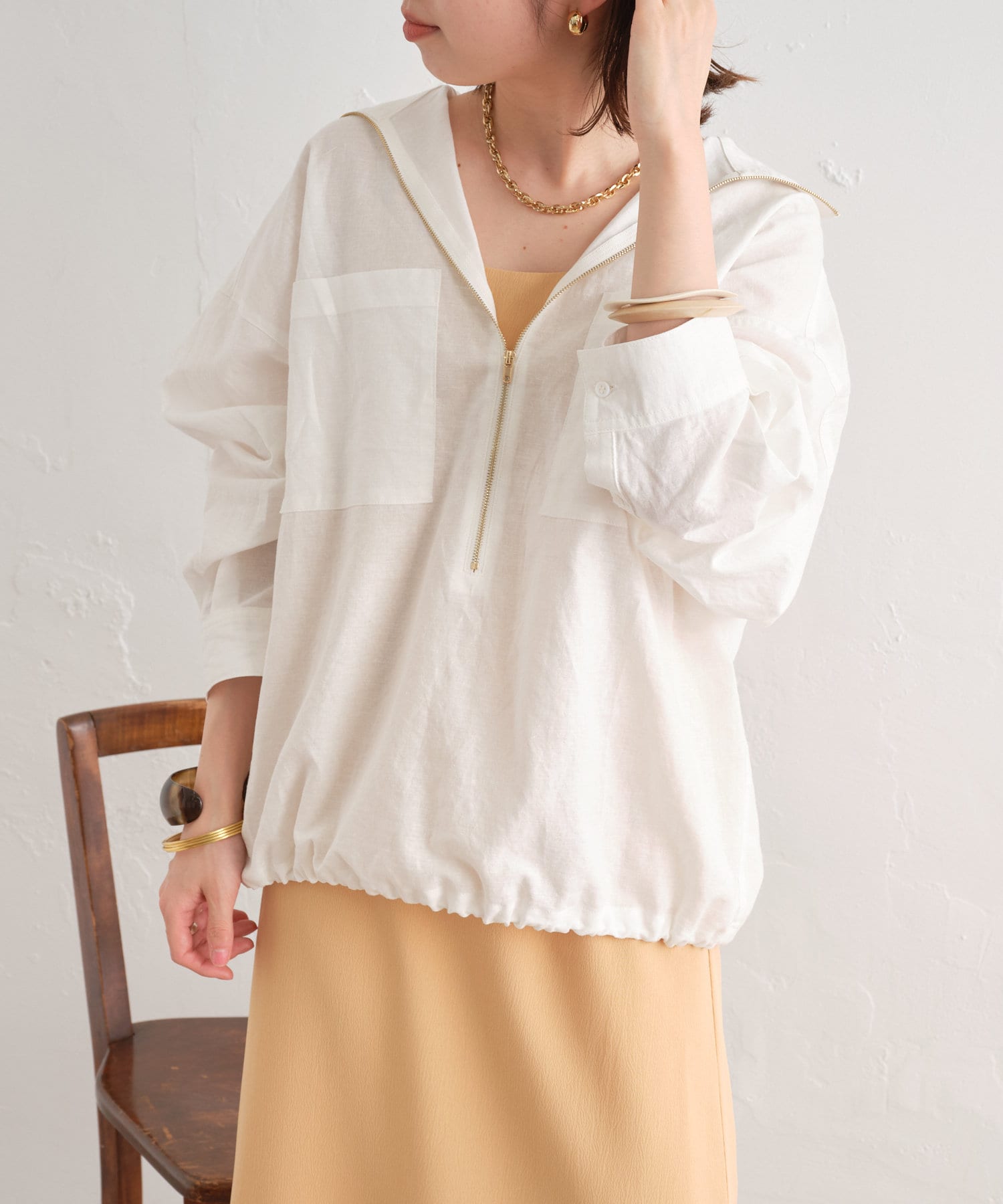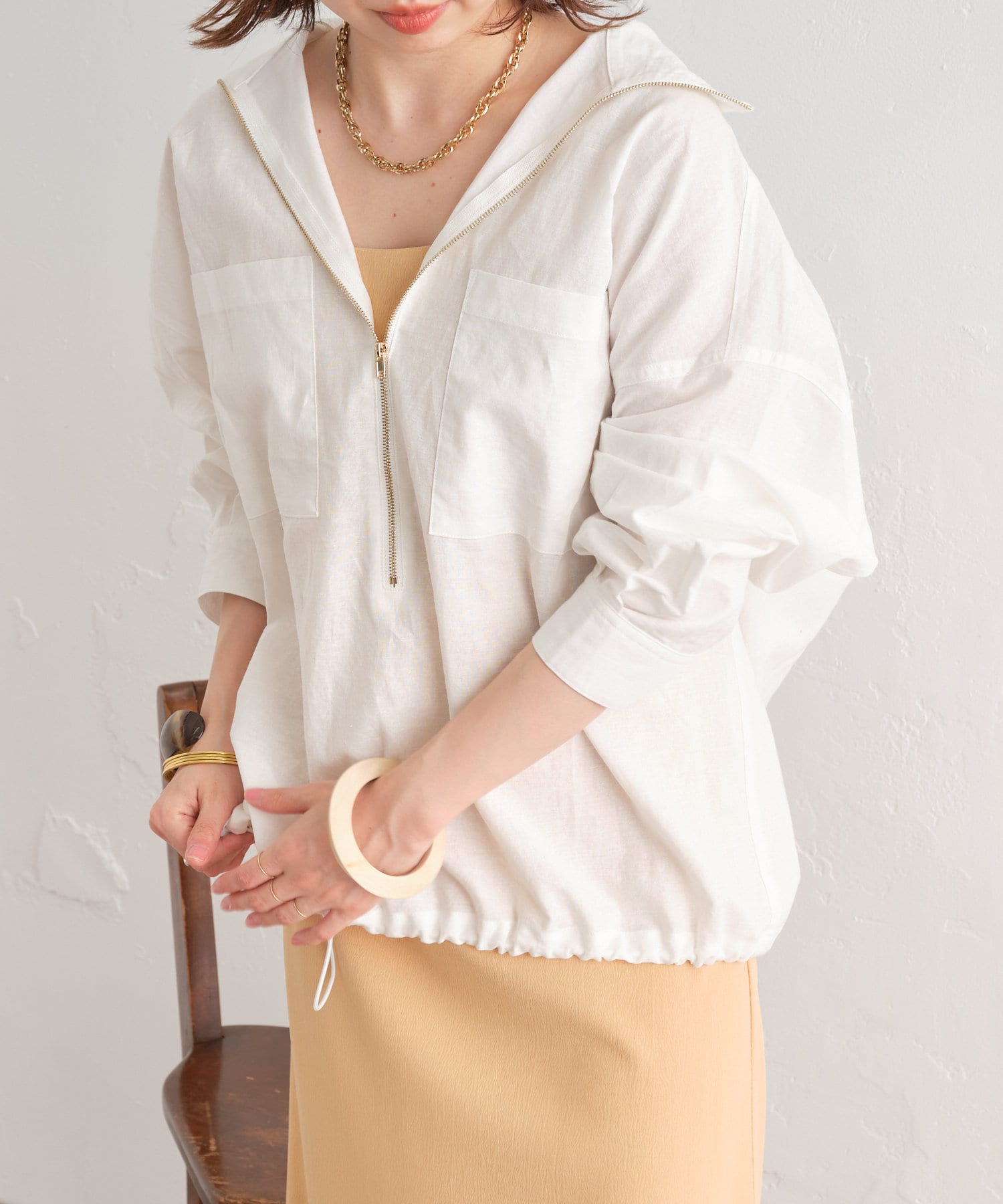 【夏も着れる長袖】リネンジップシャツ