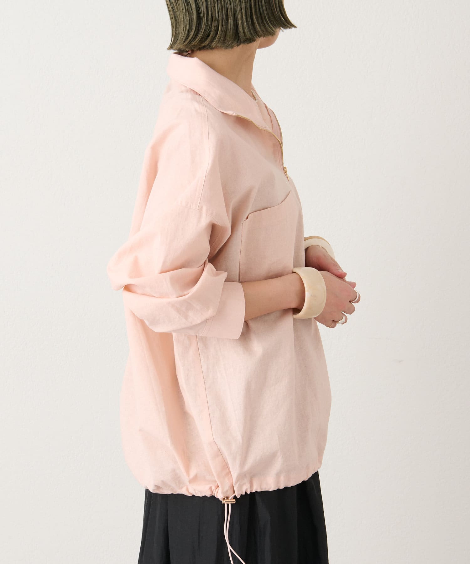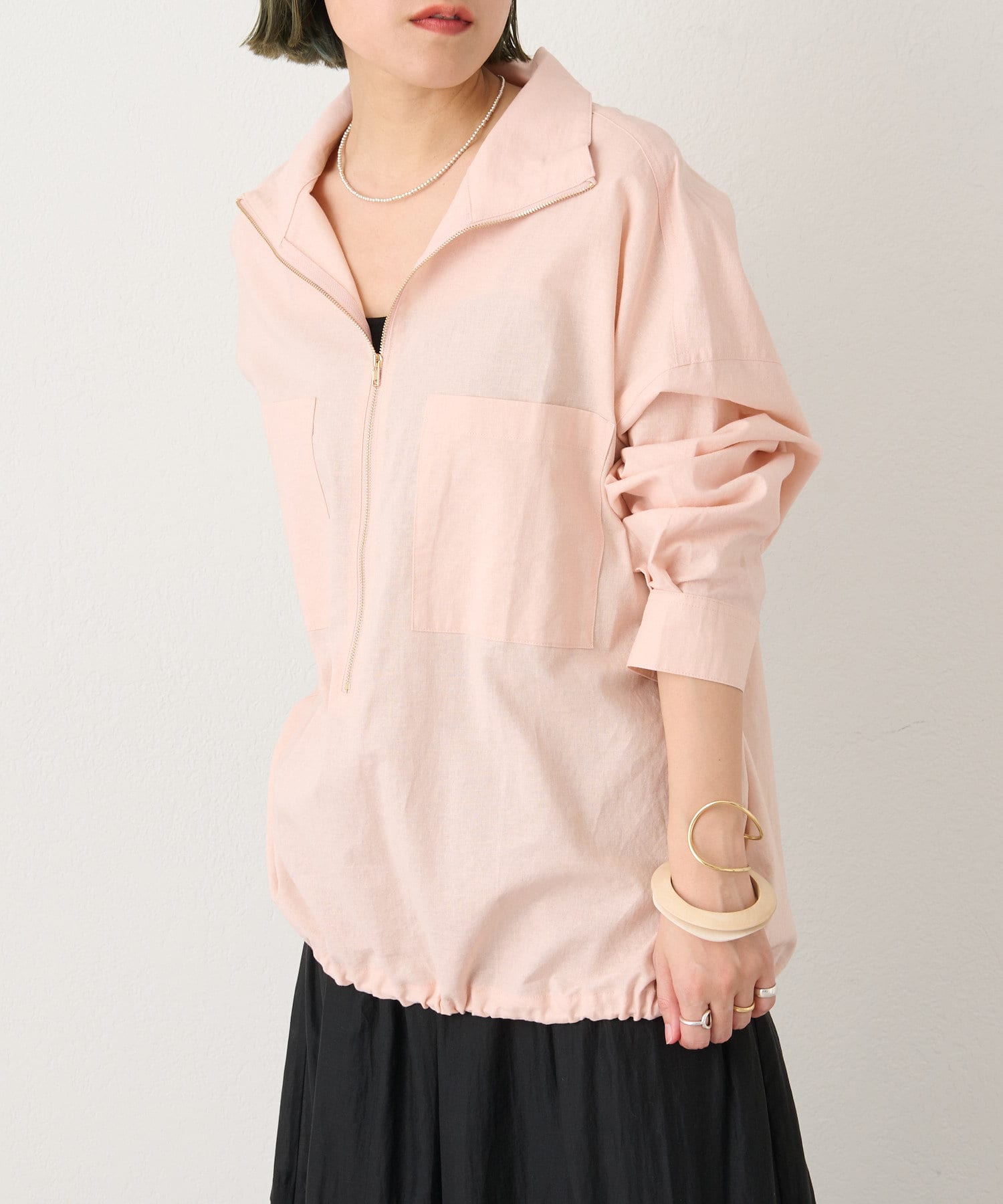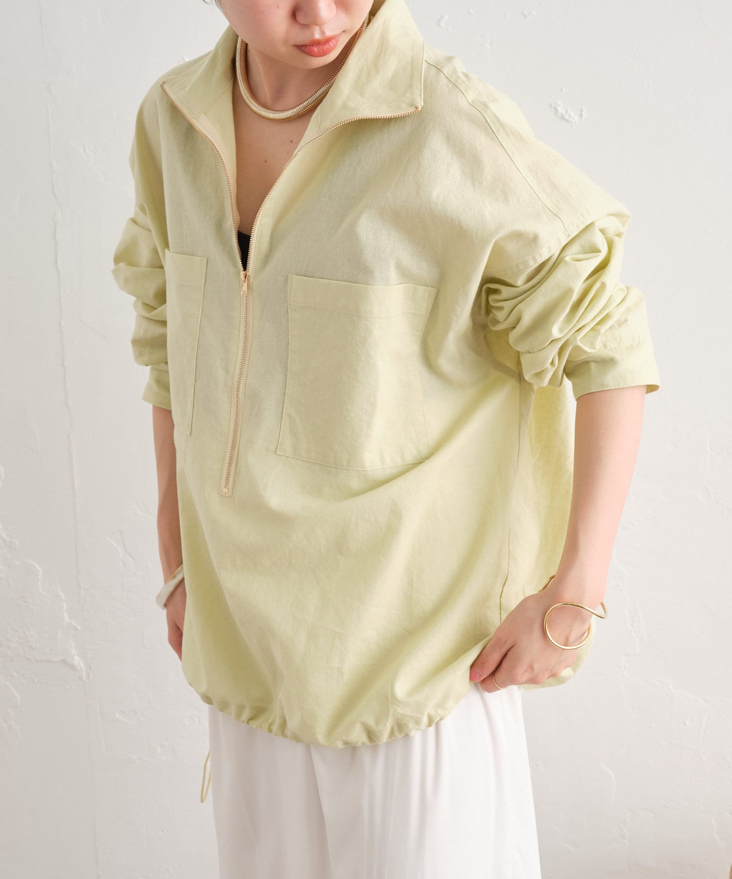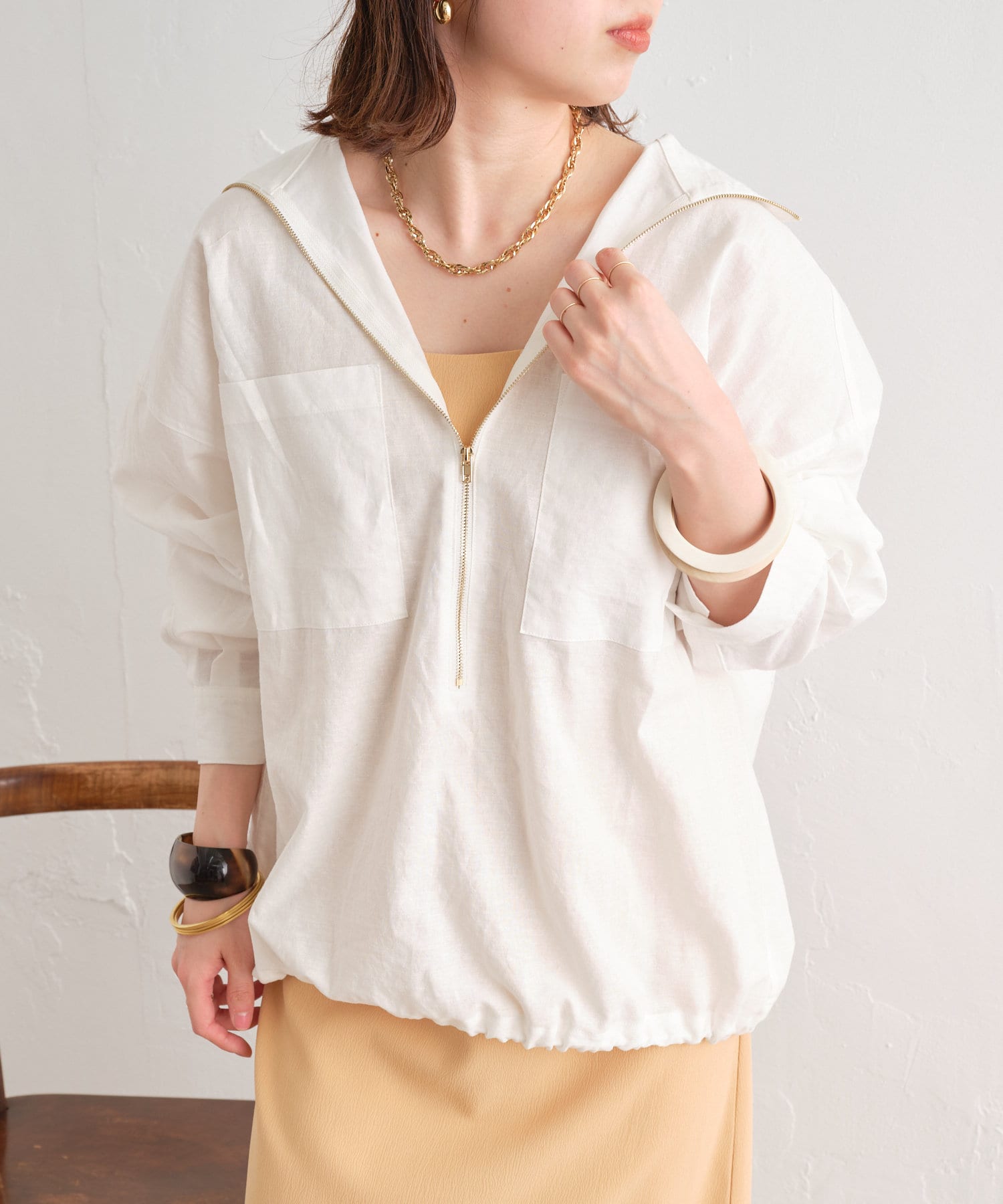 リラックス感のあるリネンジップシャツ