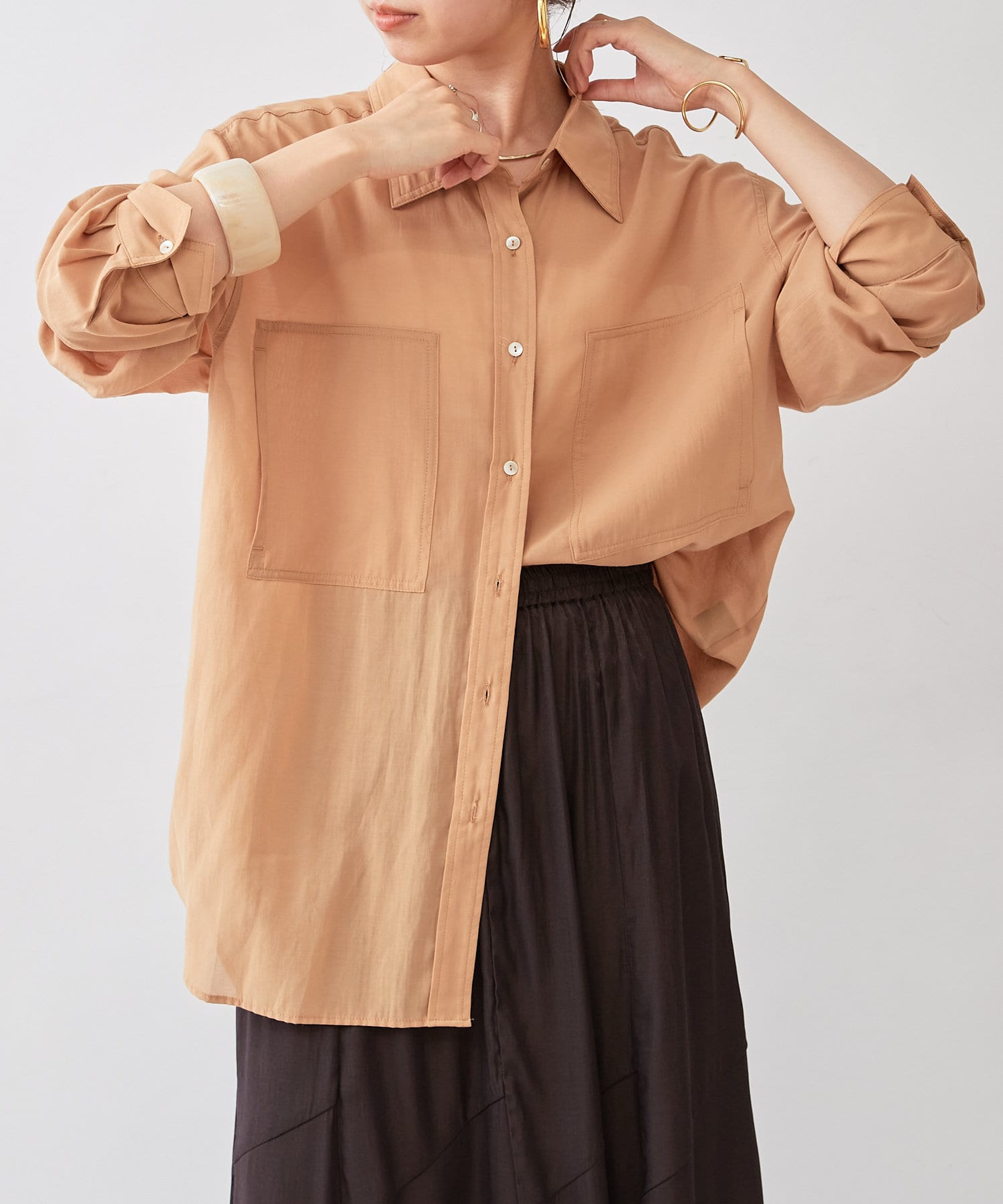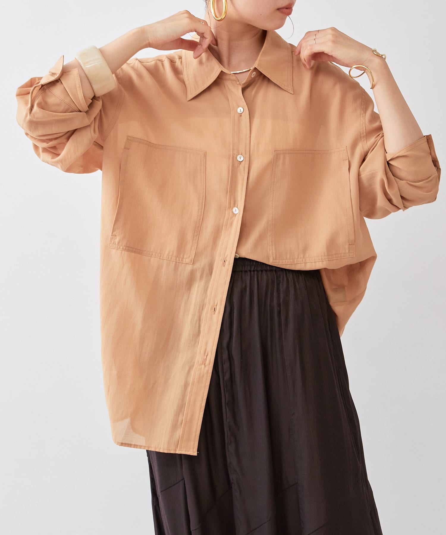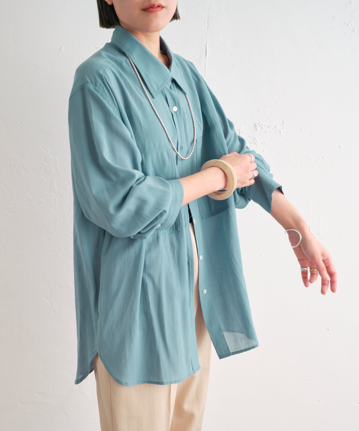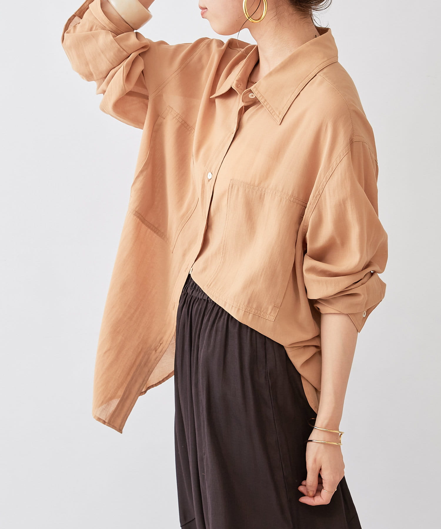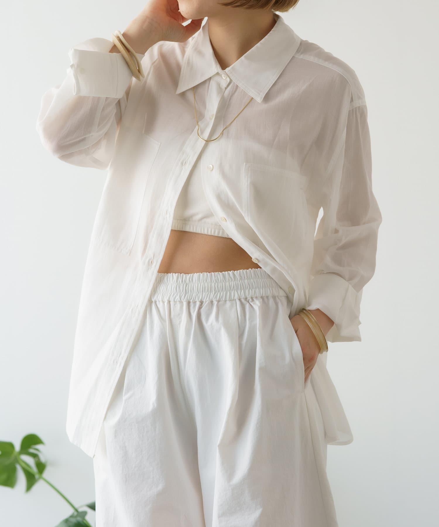 ・程よいシアー感が女性らしく、抜け感のある大人な肌見せにぴったりなシアーシャツ。