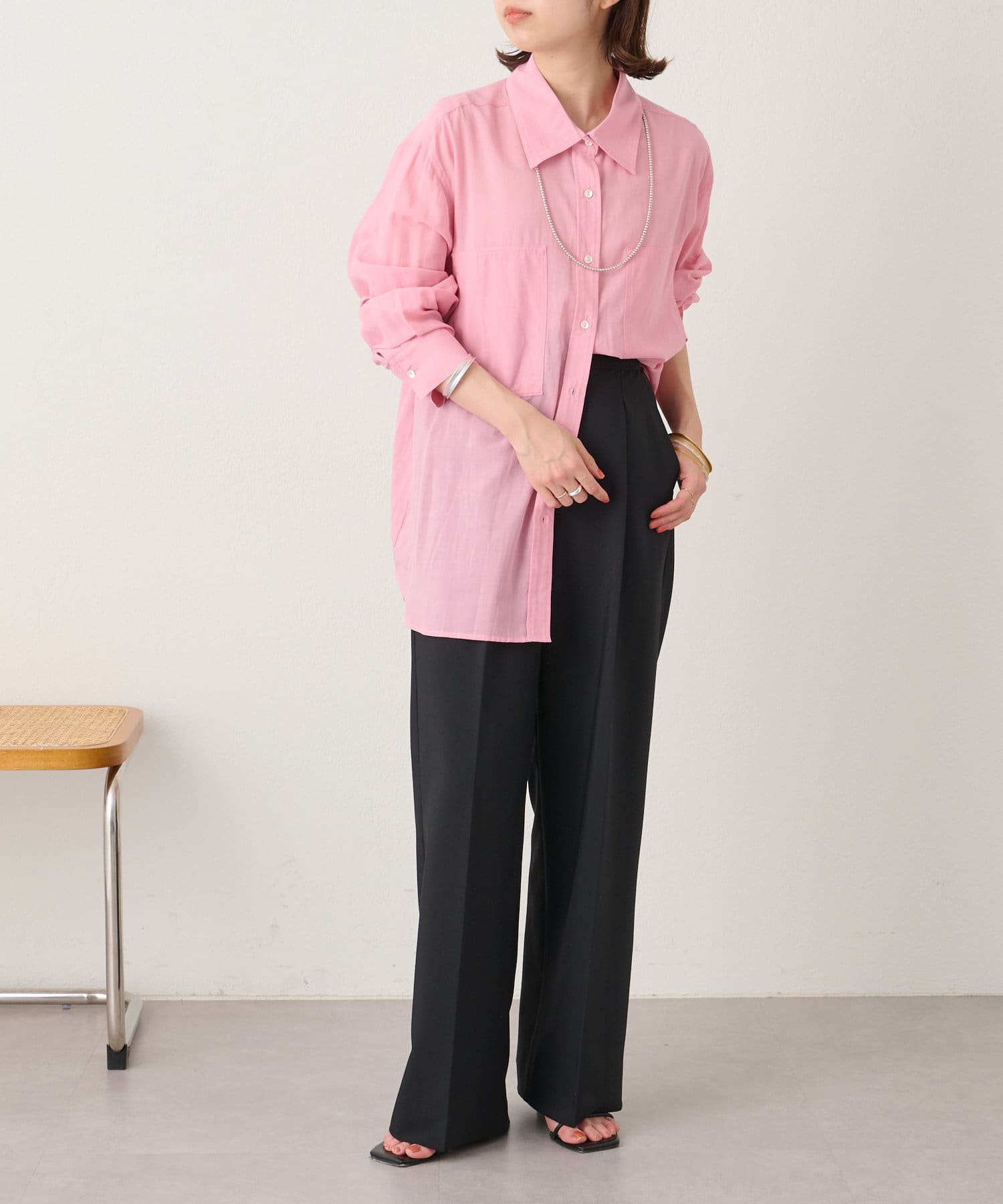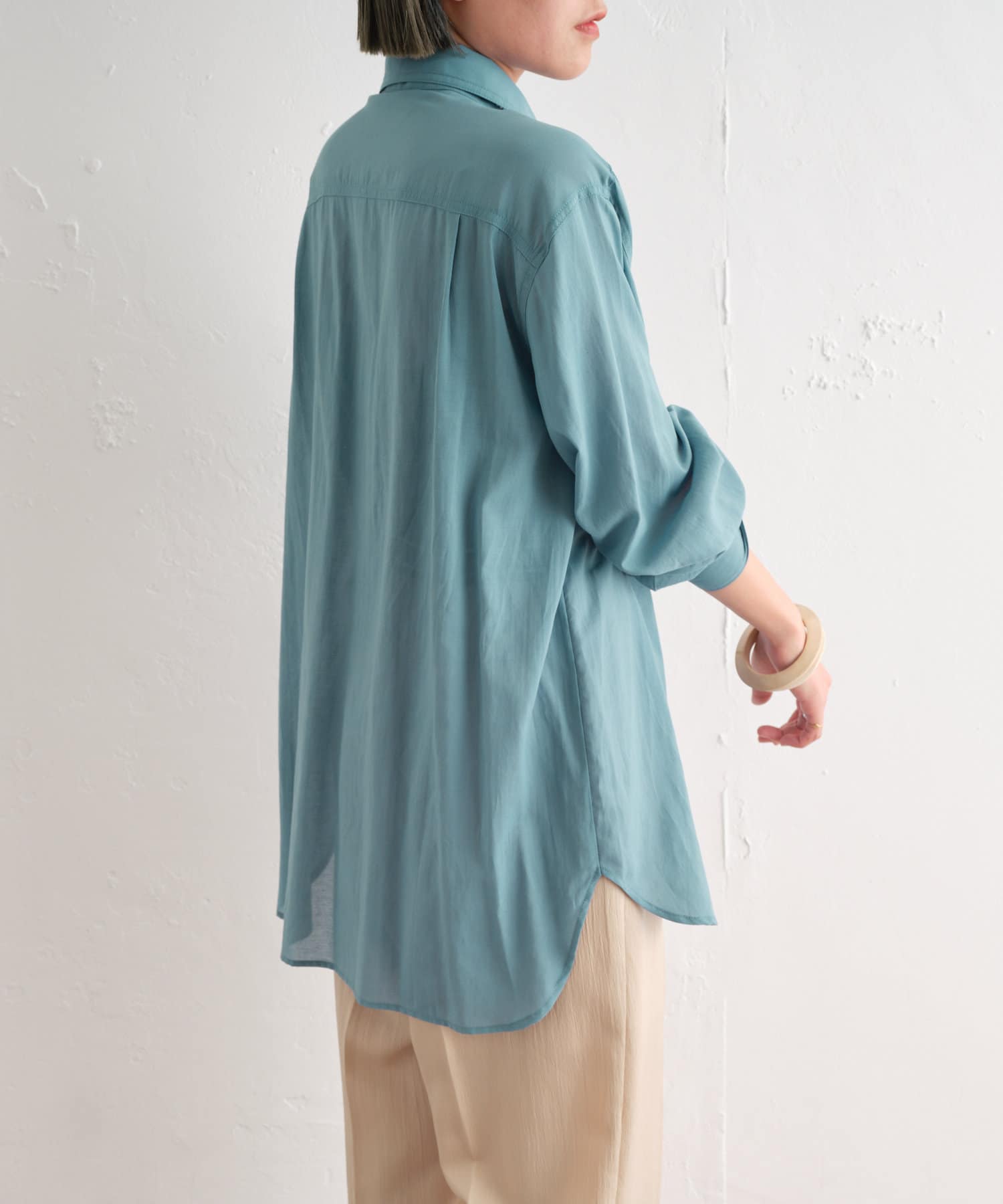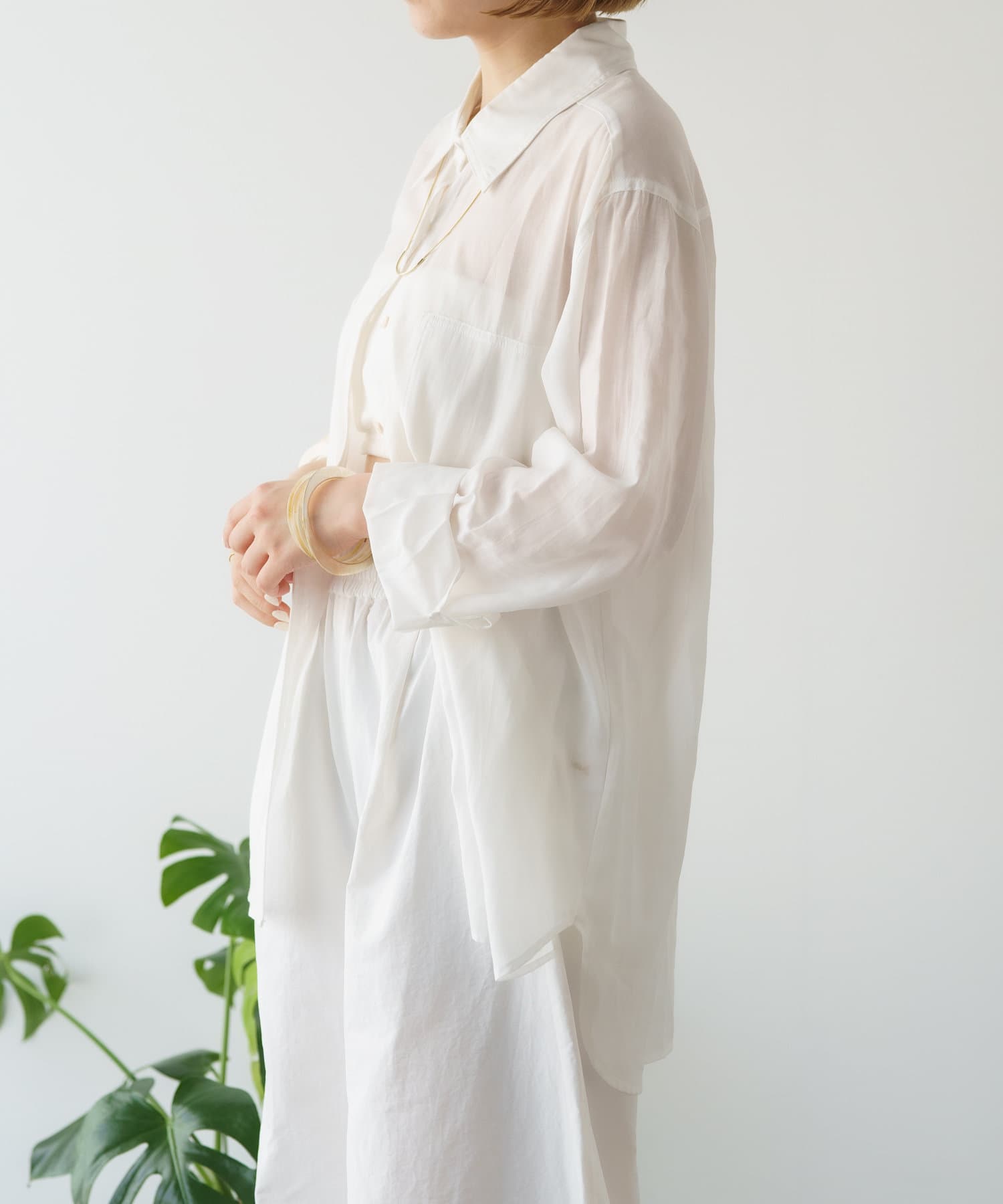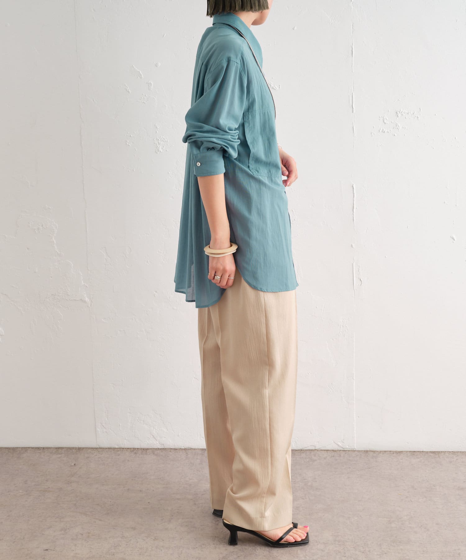 ・程よいシアー感が女性らしく、抜け感のある大人な肌見せにぴったりなシアーシャツ。