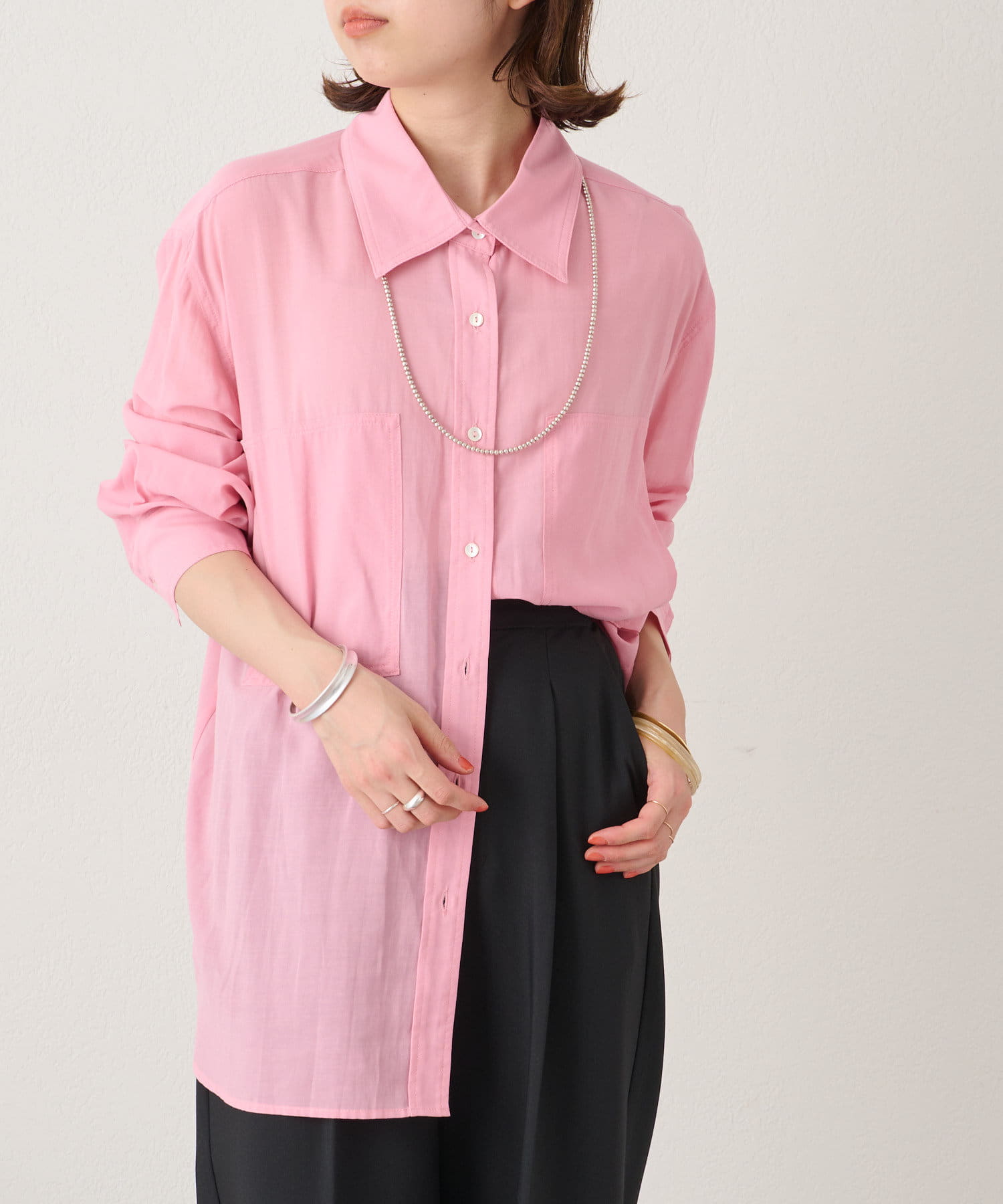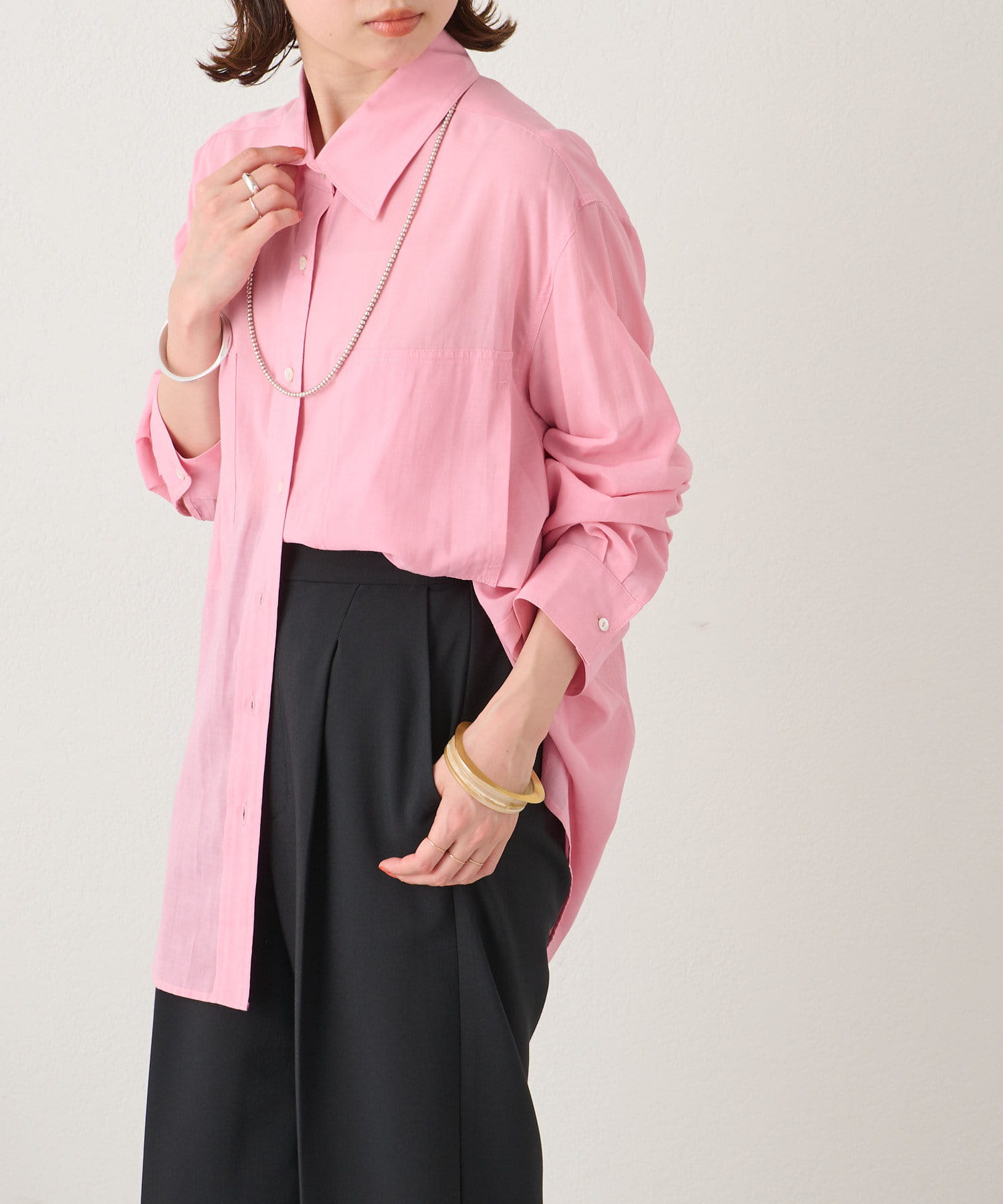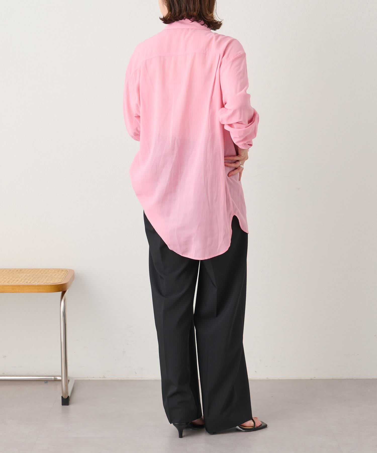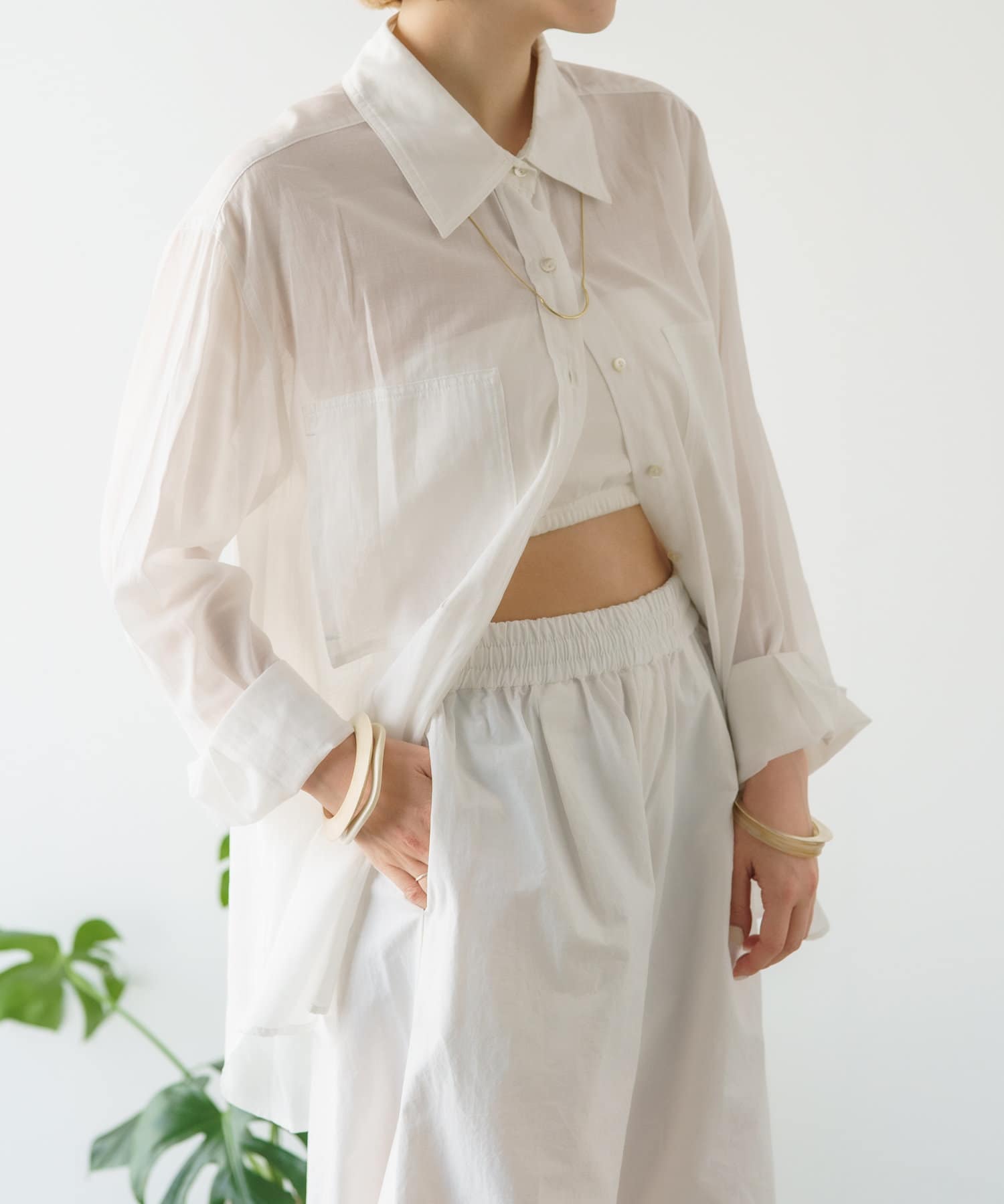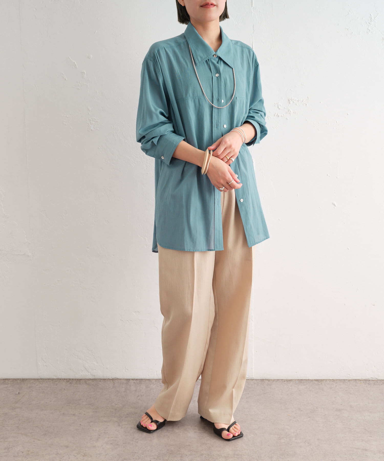 ・程よいシアー感が女性らしく、抜け感のある大人な肌見せにぴったりなシアーシャツ。