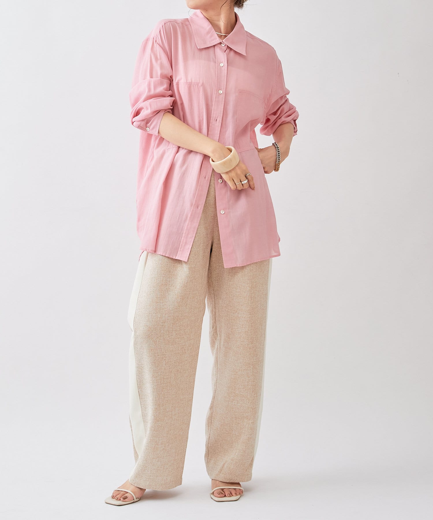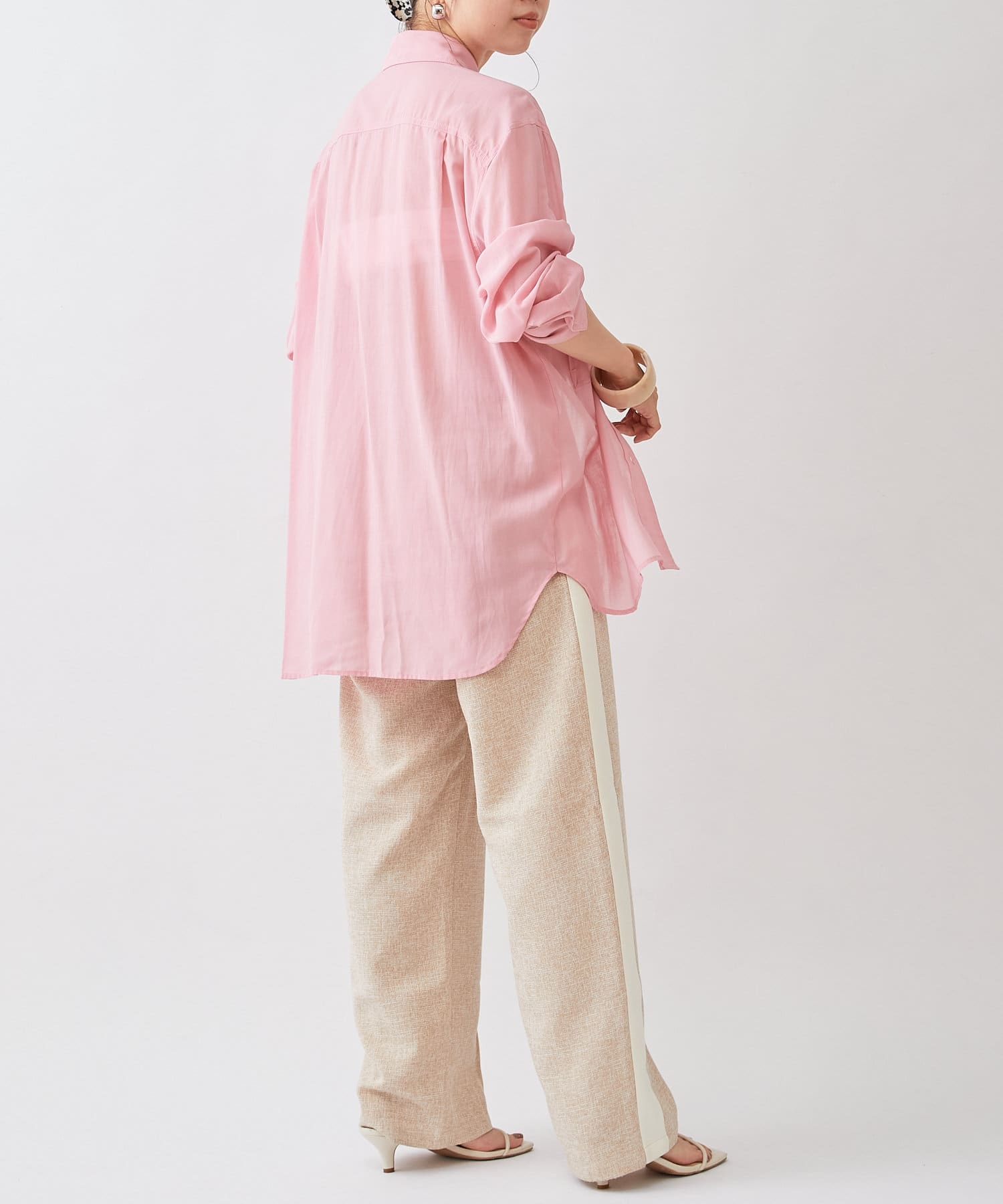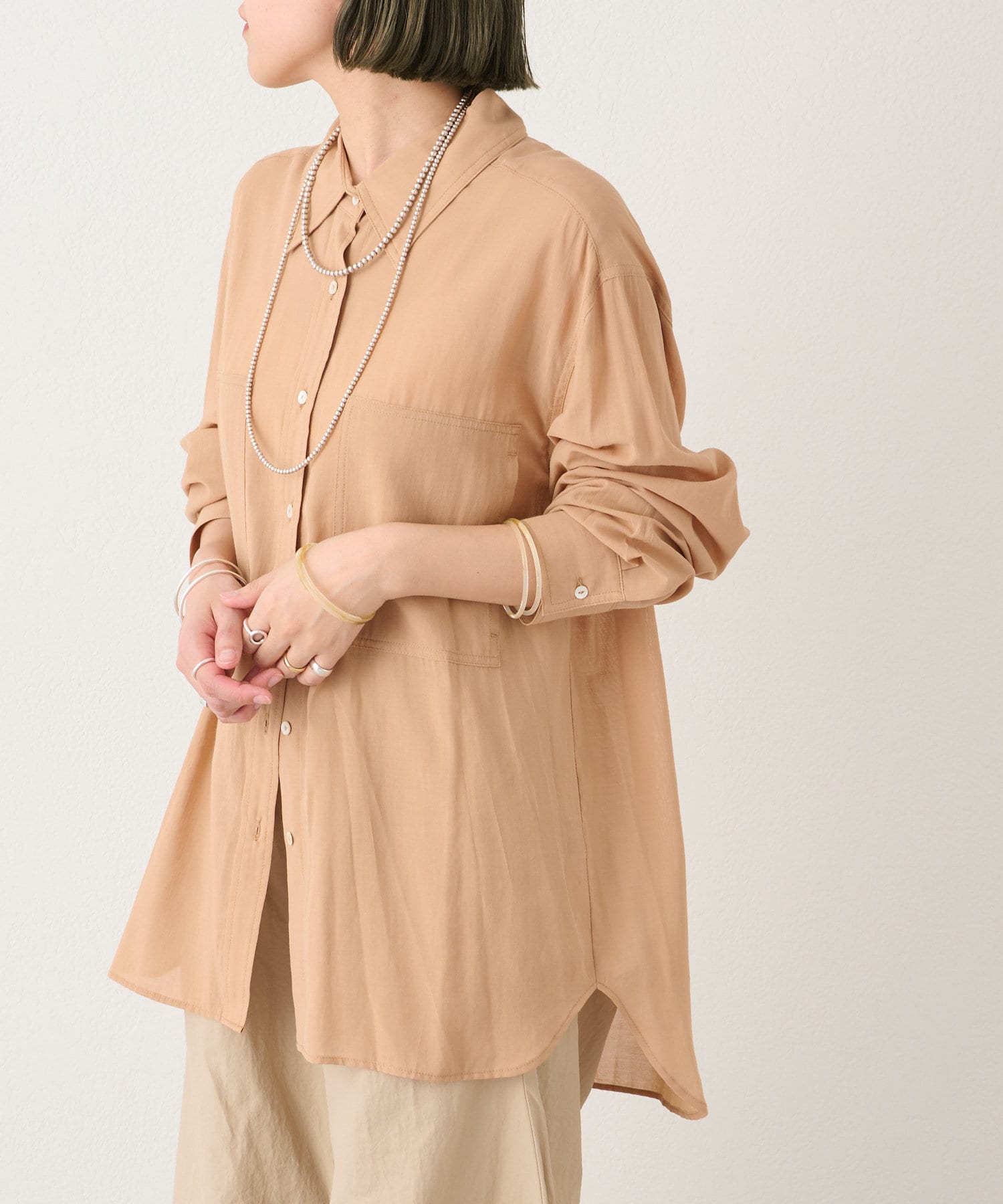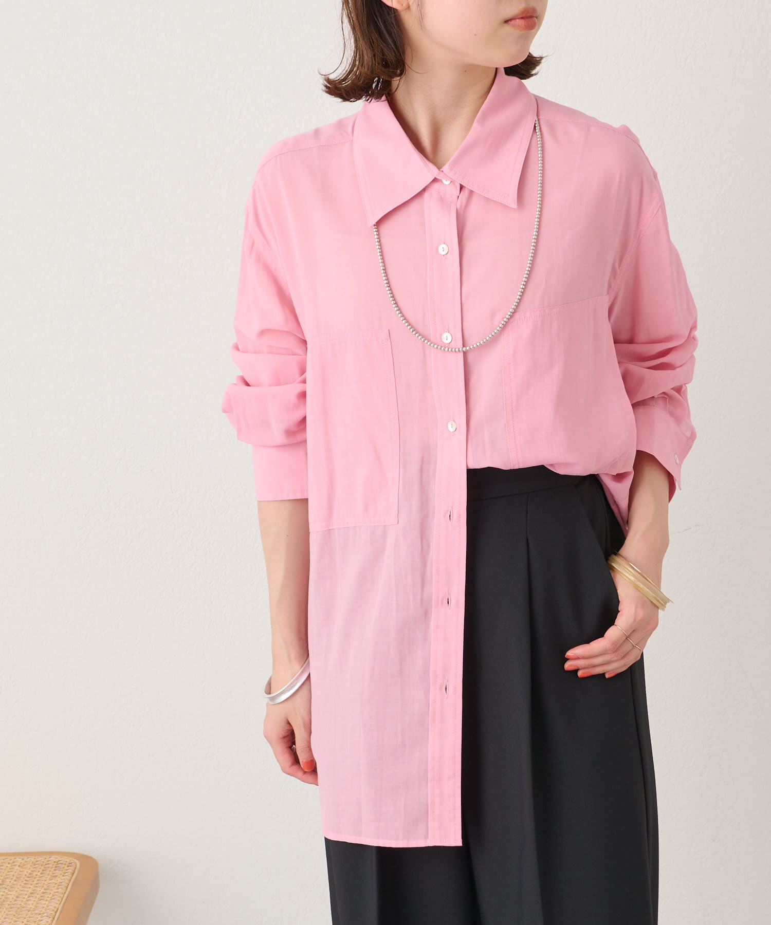 ・程よいシアー感が女性らしく、抜け感のある大人な肌見せにぴったりなシアーシャツ。