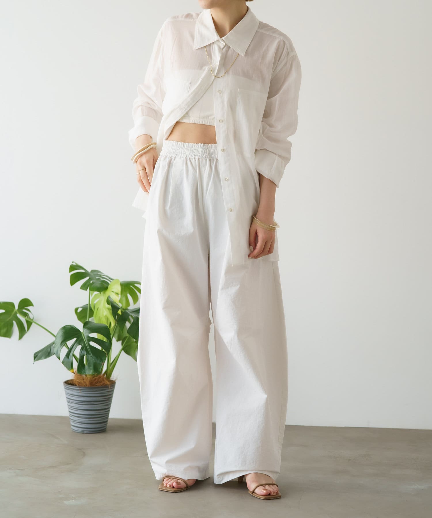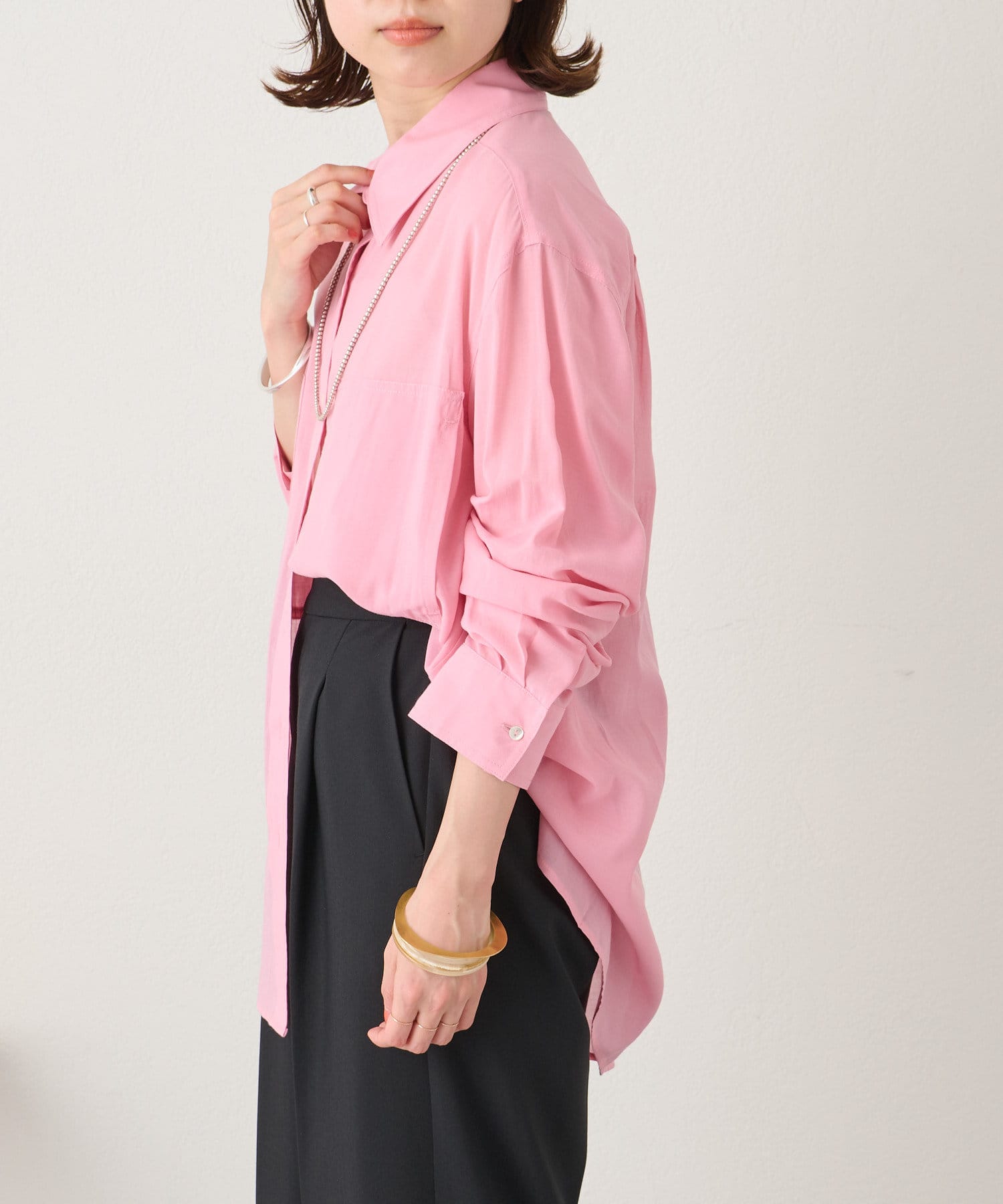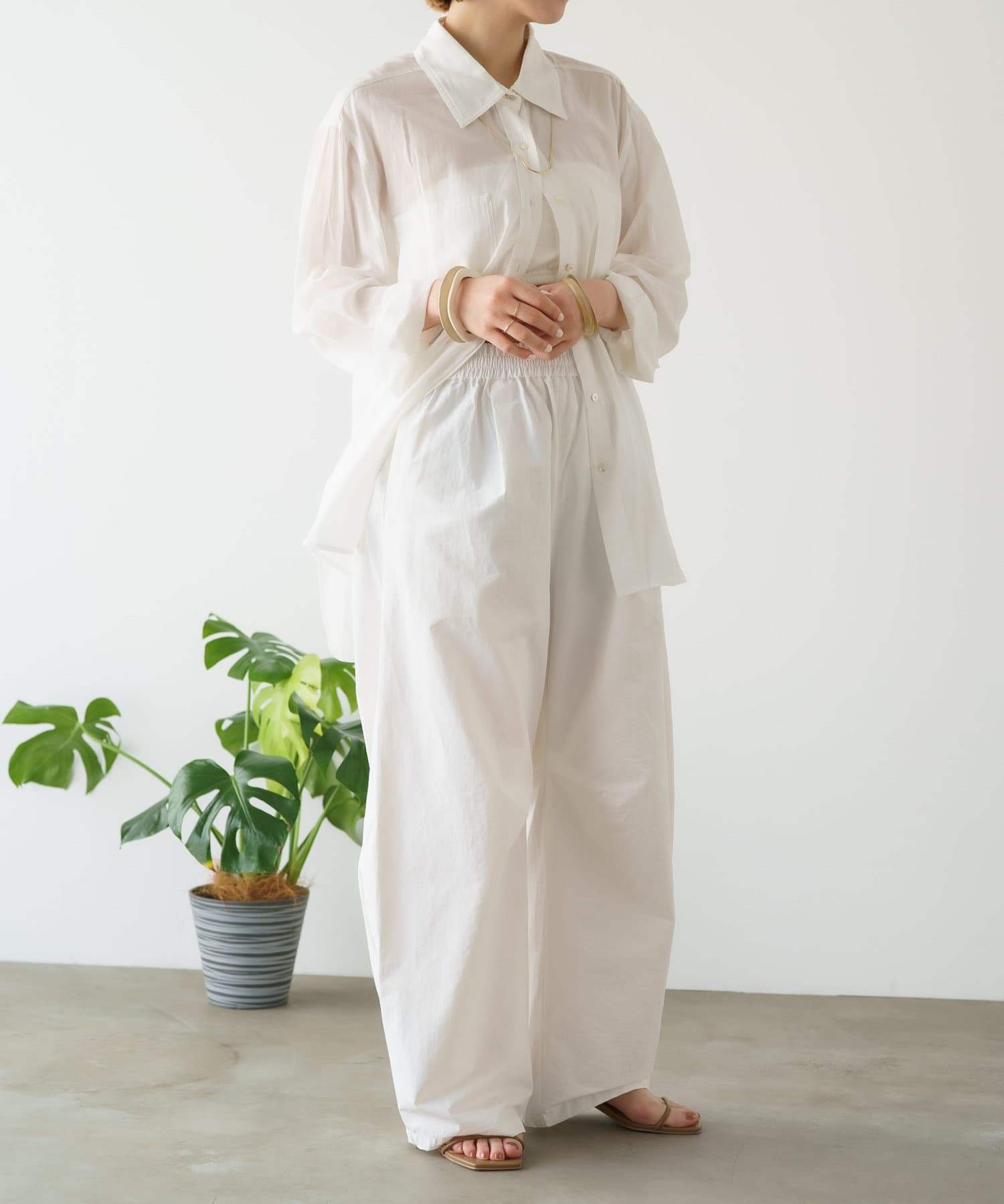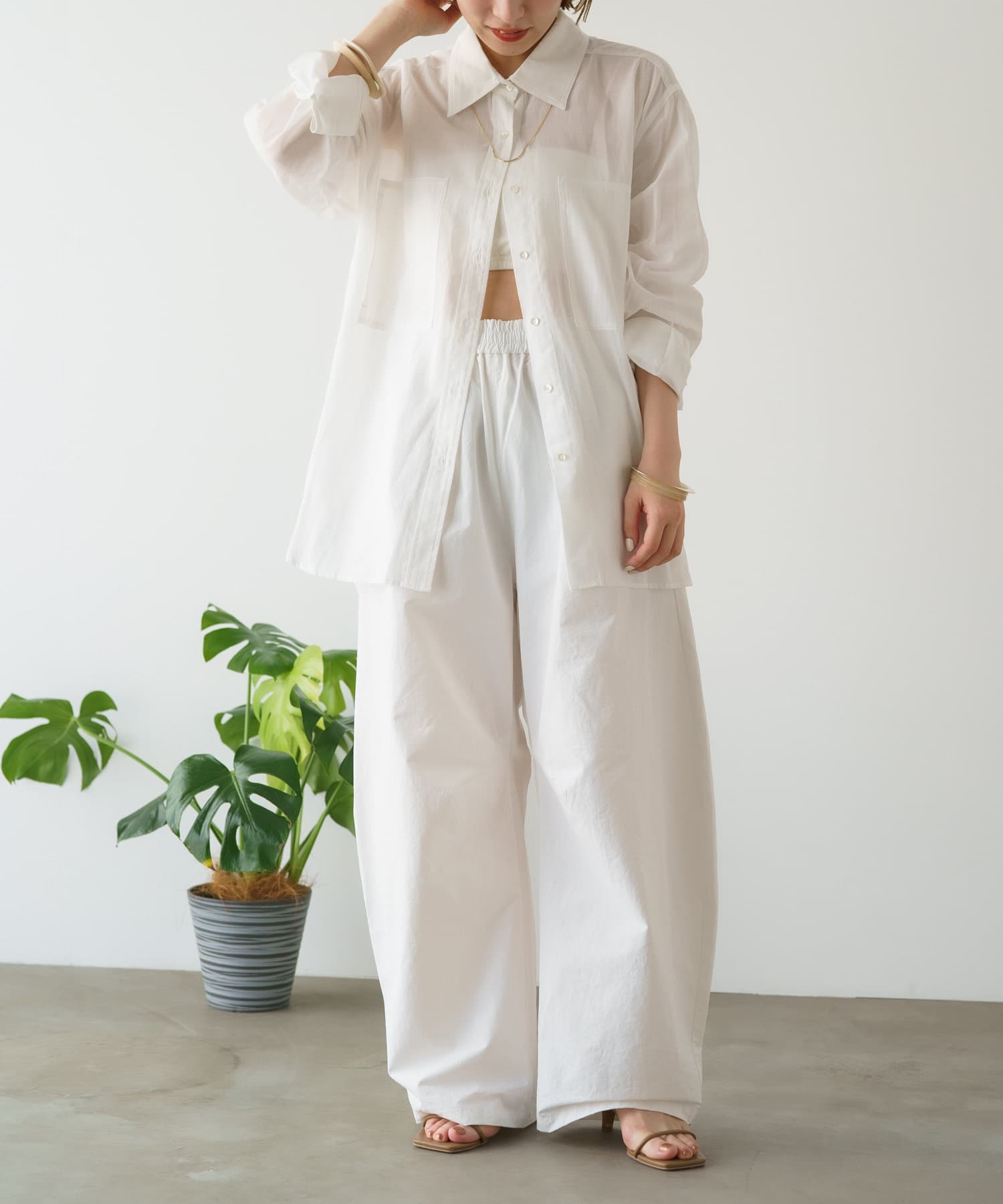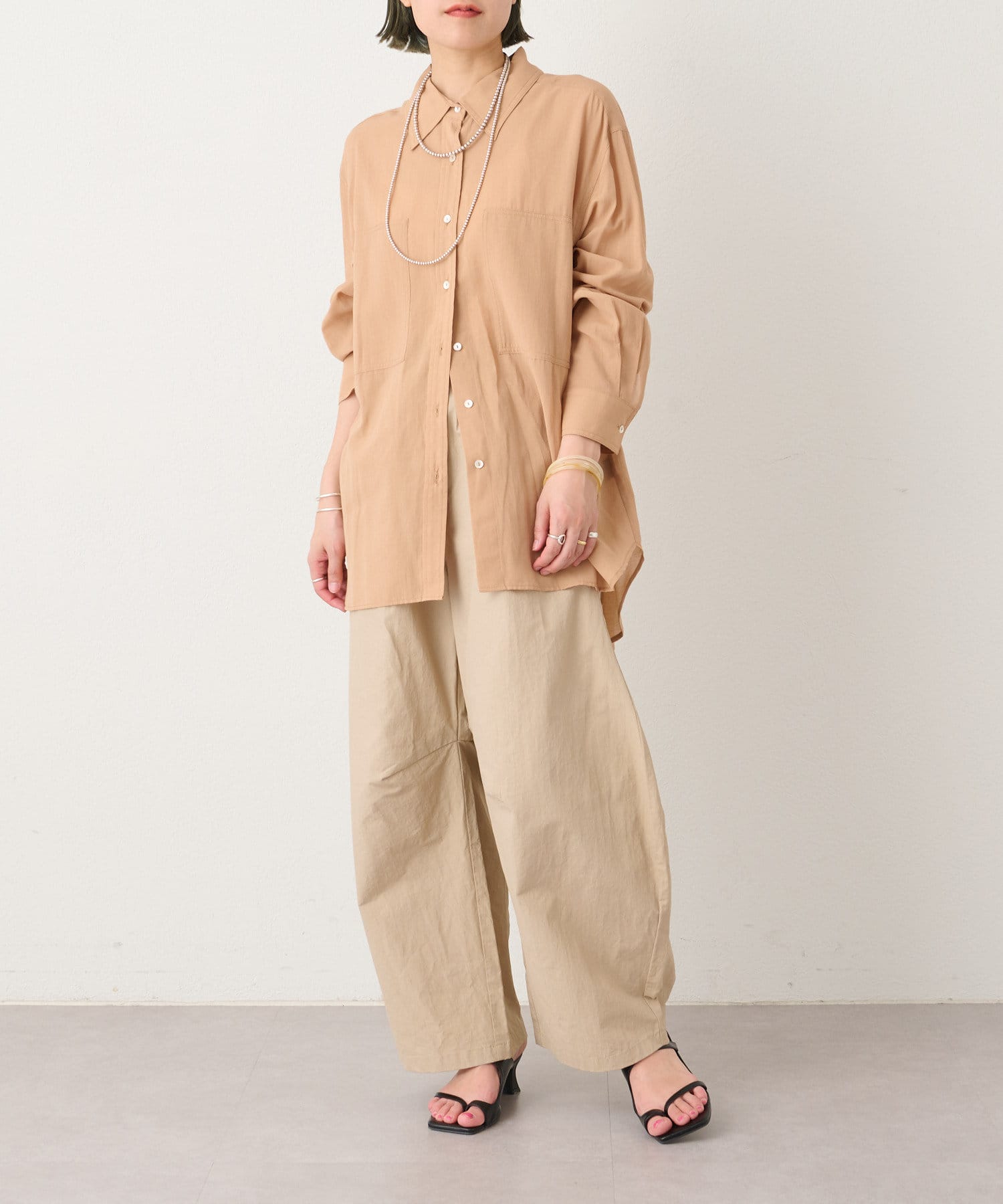 ・程よいシアー感が女性らしく、抜け感のある大人な肌見せにぴったりなシアーシャツ。