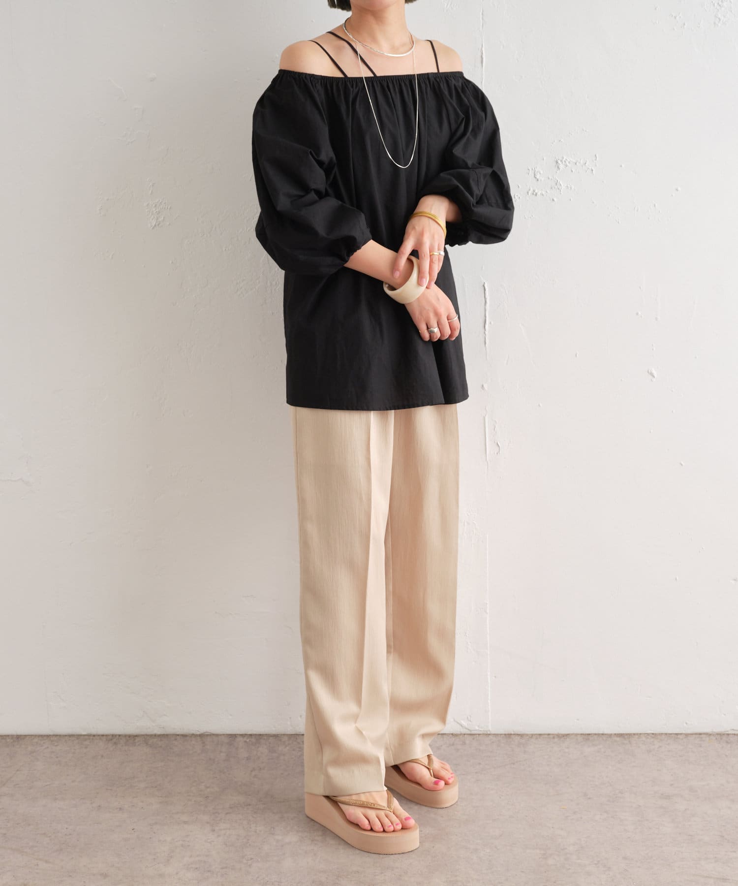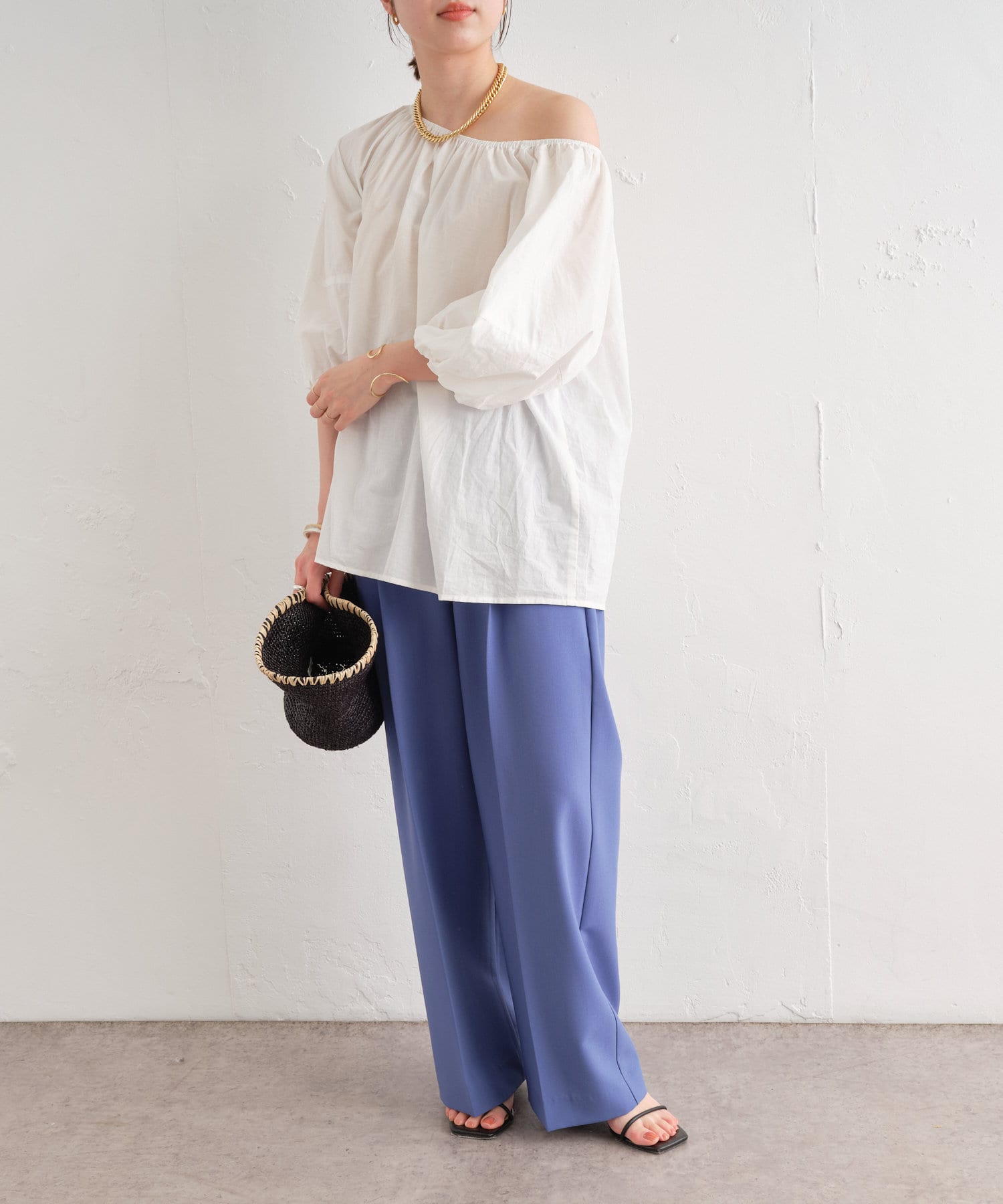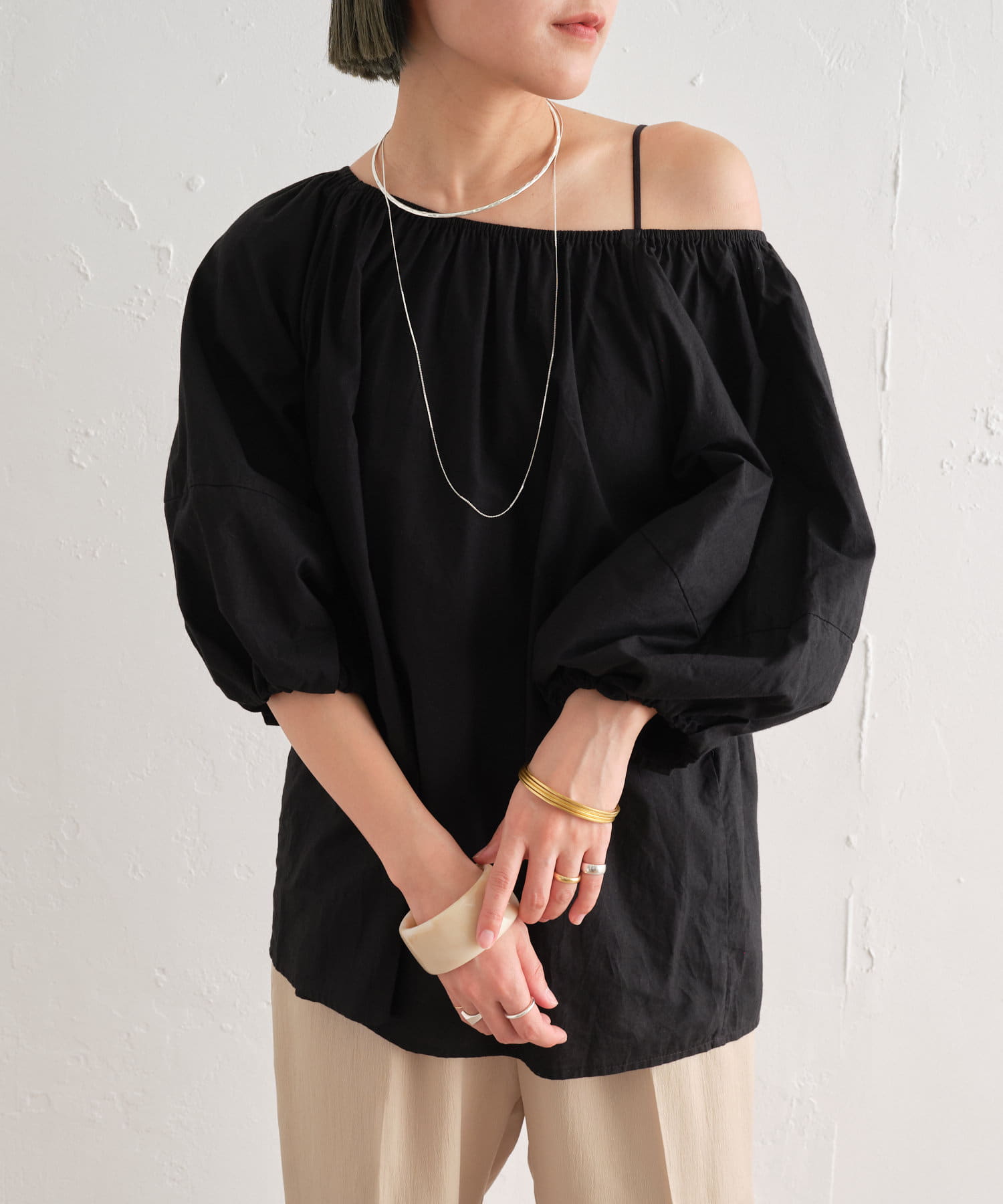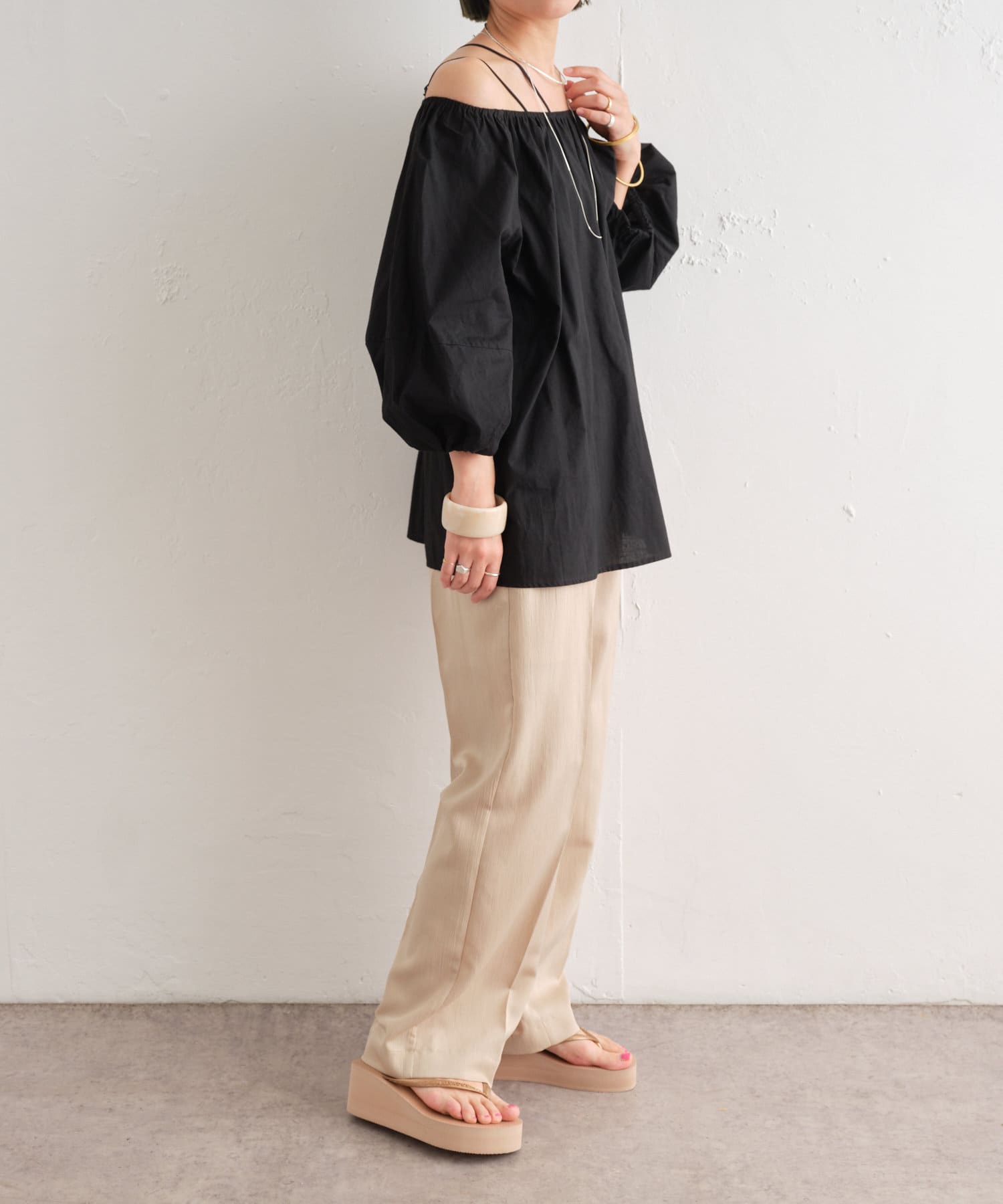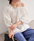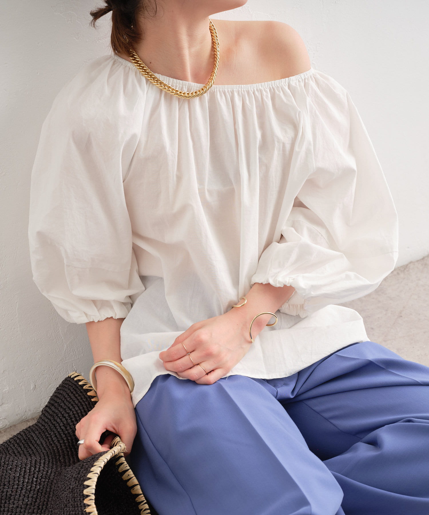 ・1枚で女性らしいスタイリングが叶うオフショルブラウスです。