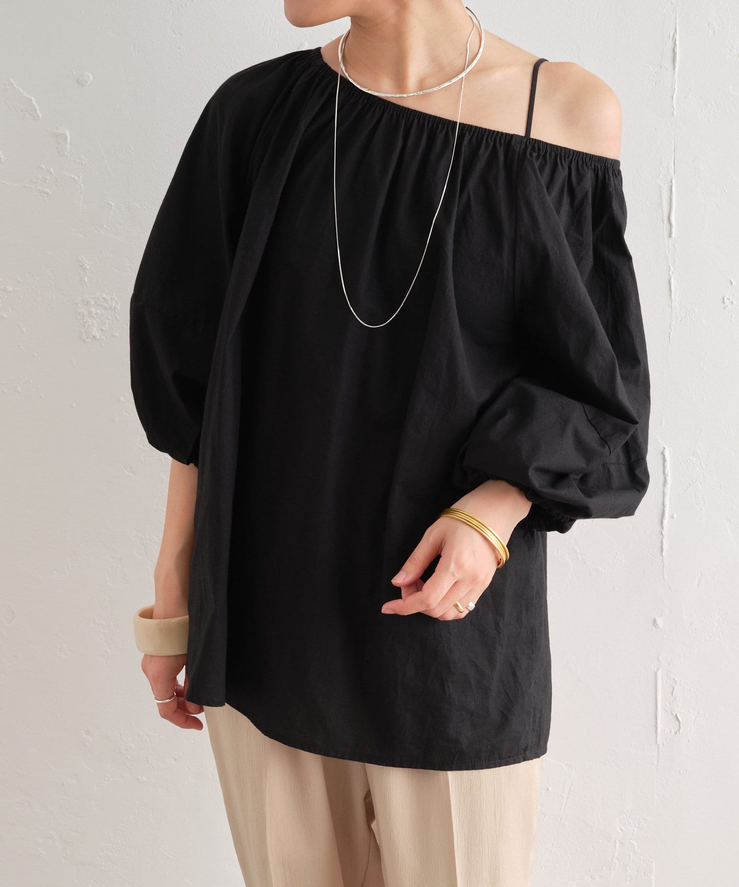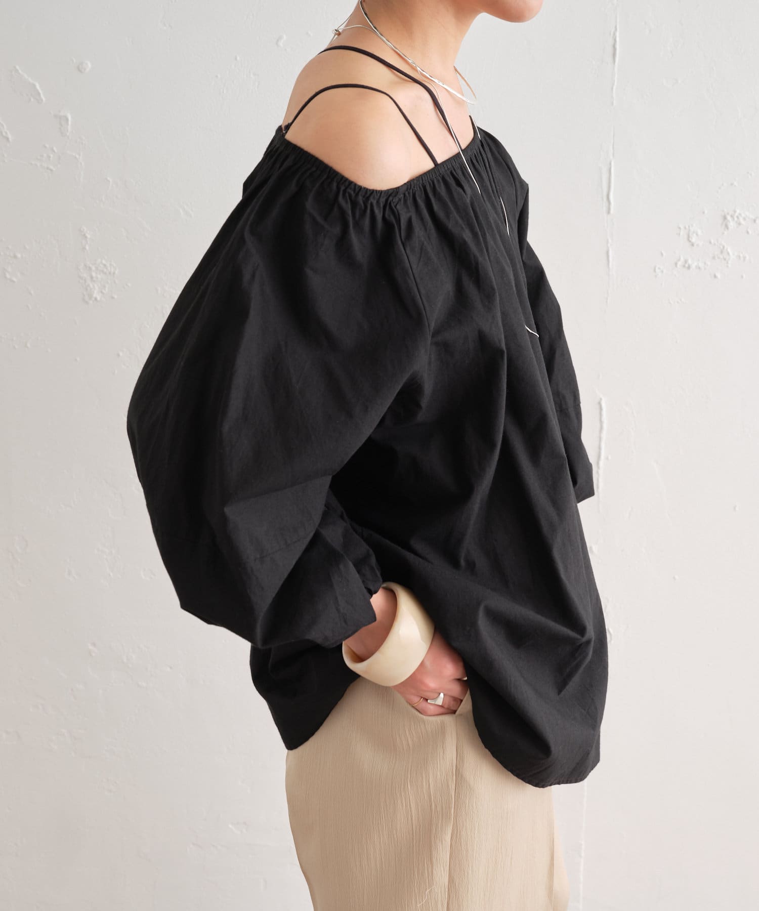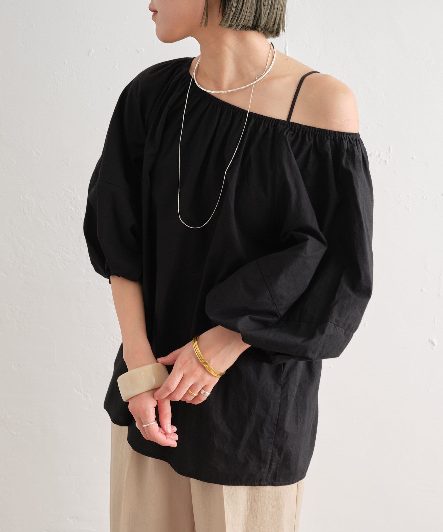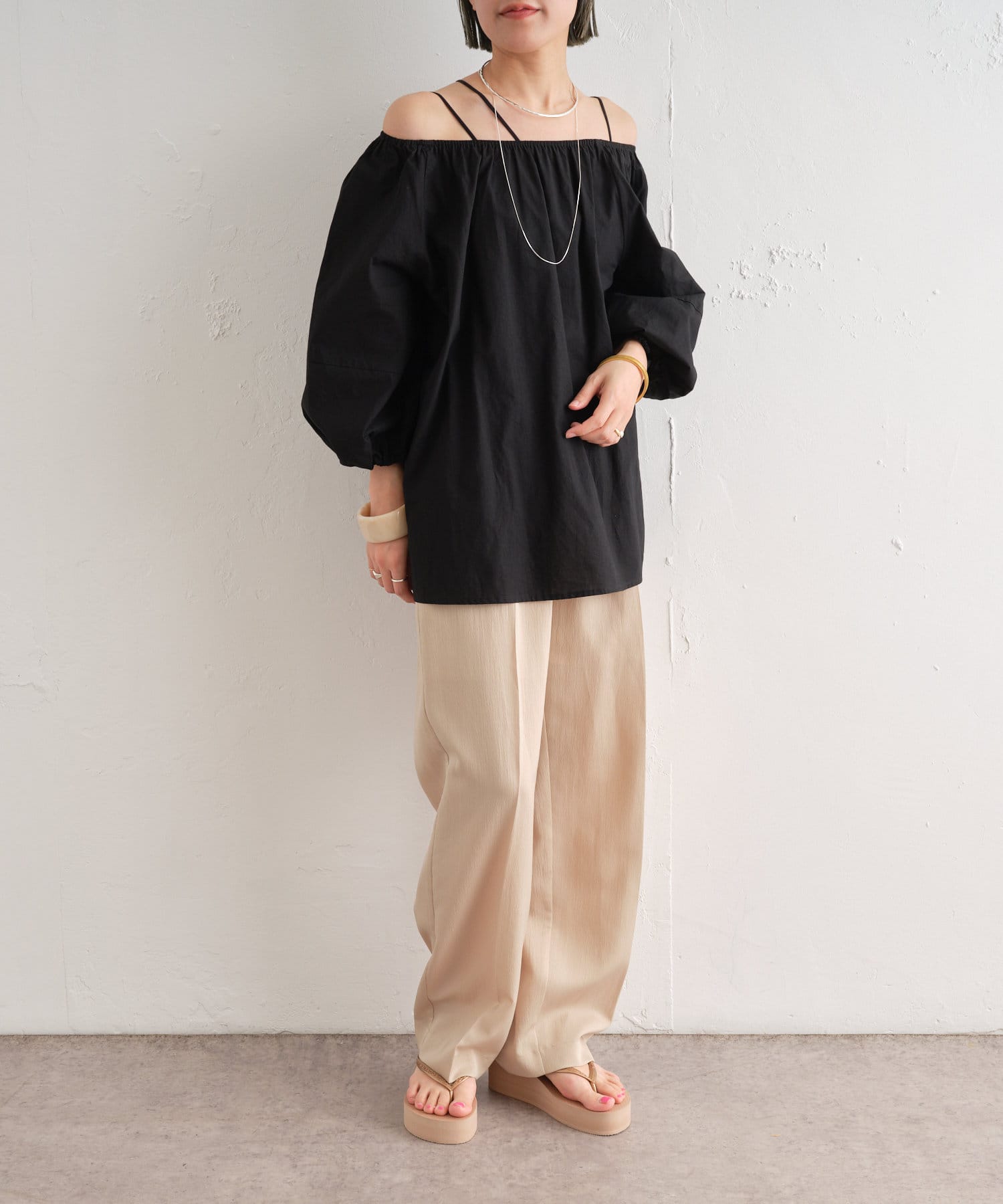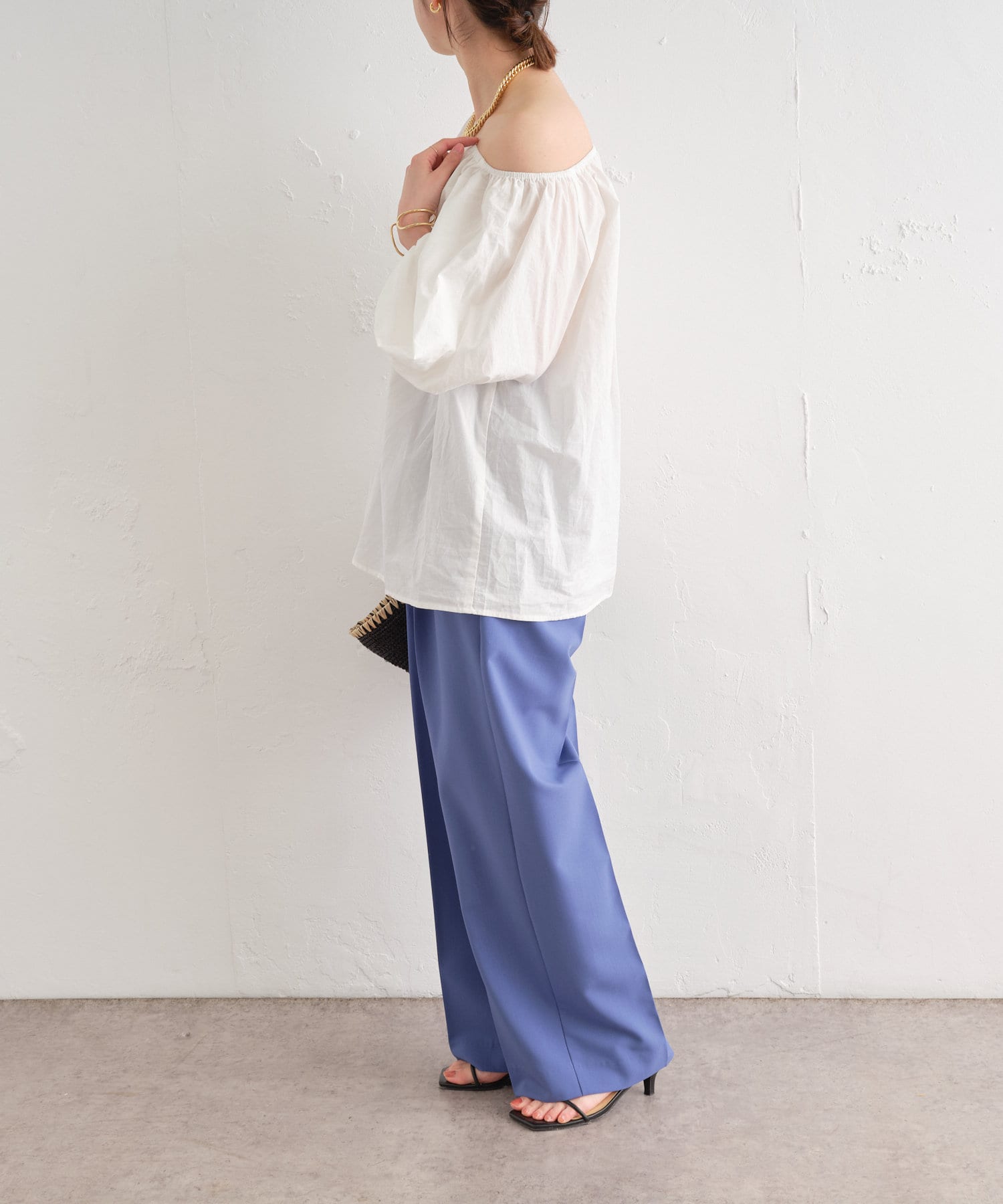 ・1枚で女性らしいスタイリングが叶うオフショルブラウスです。