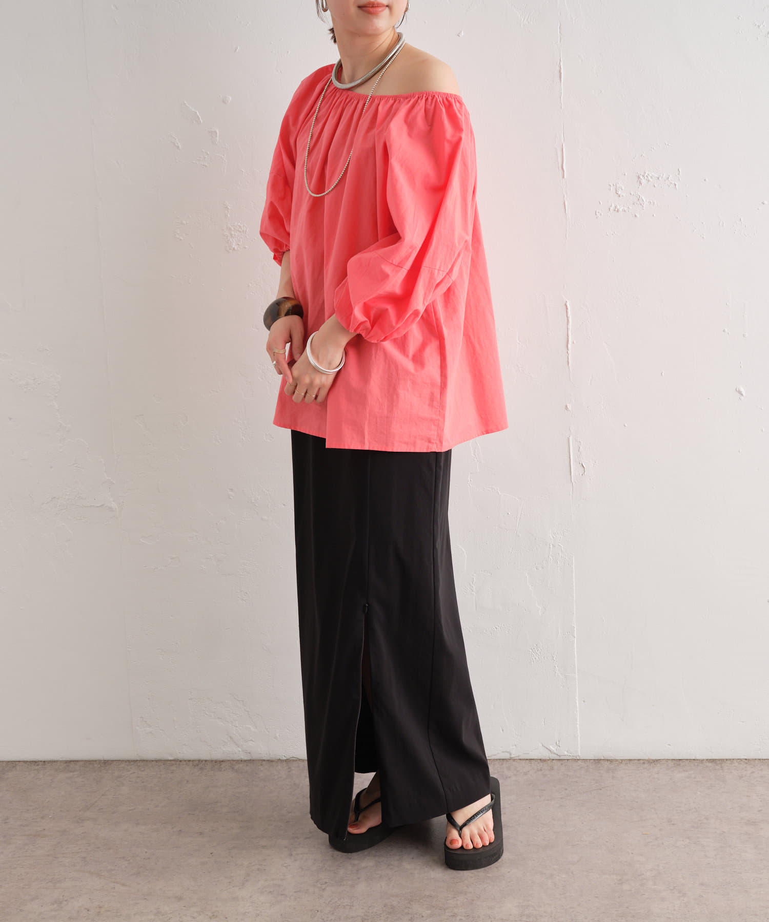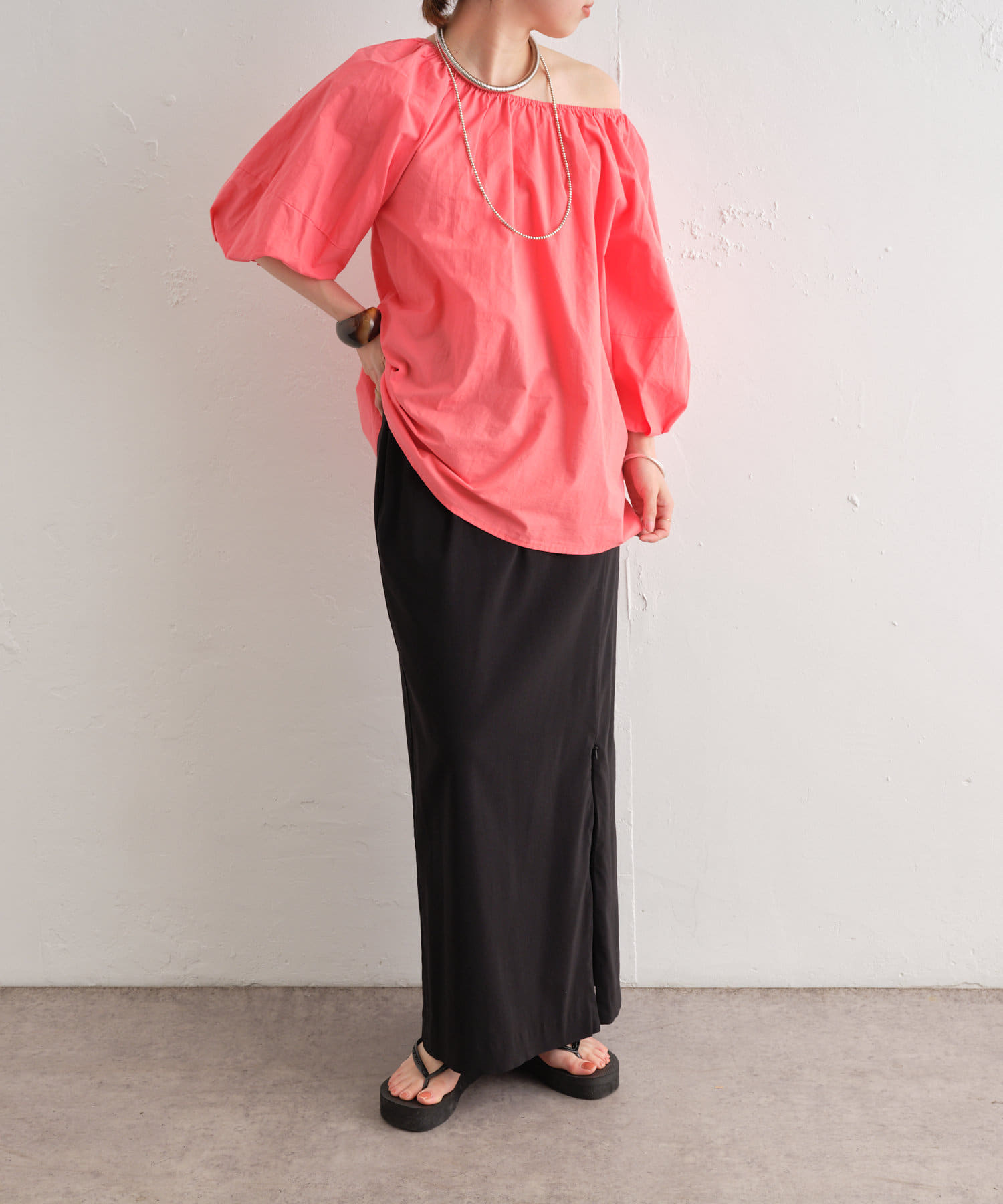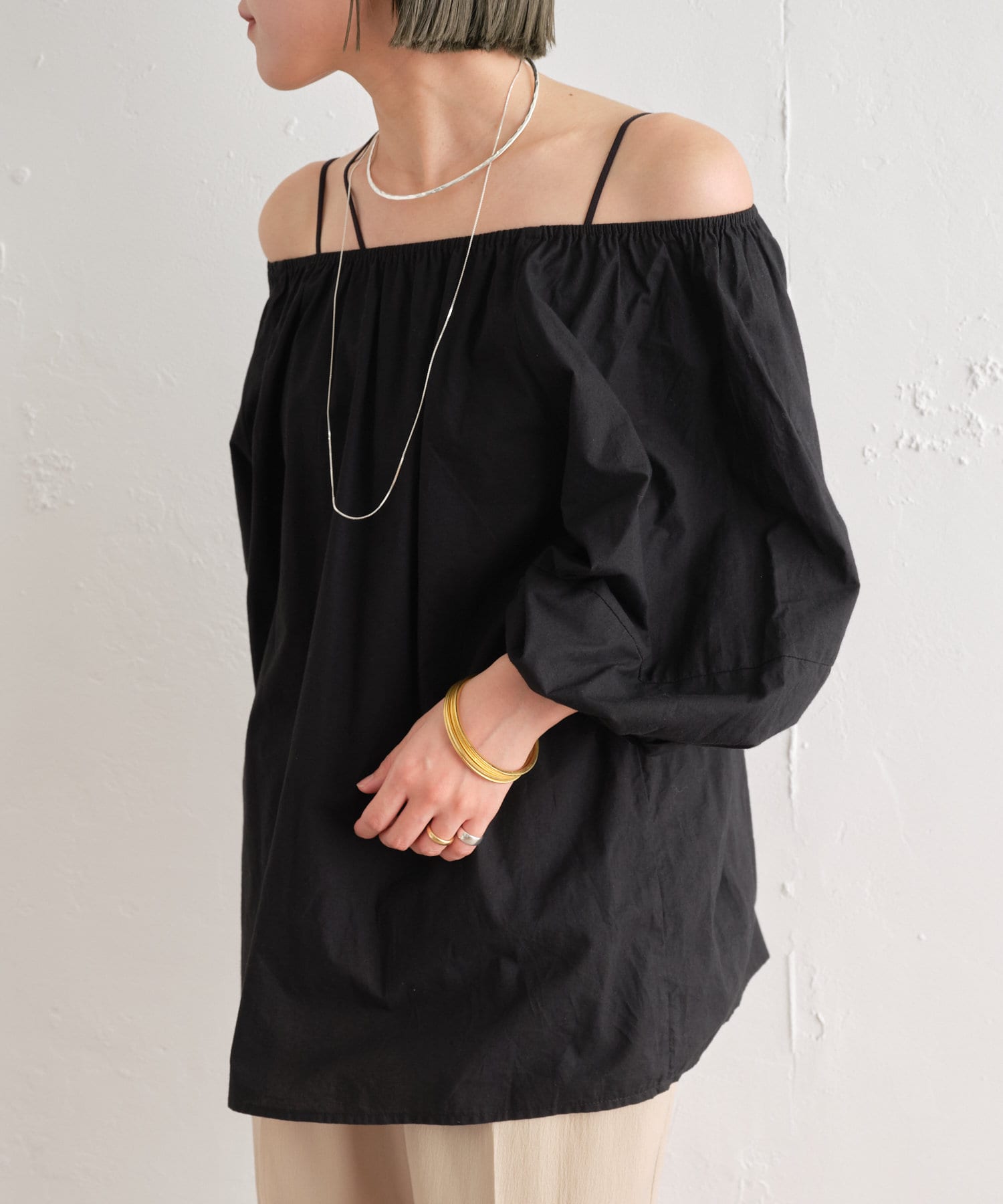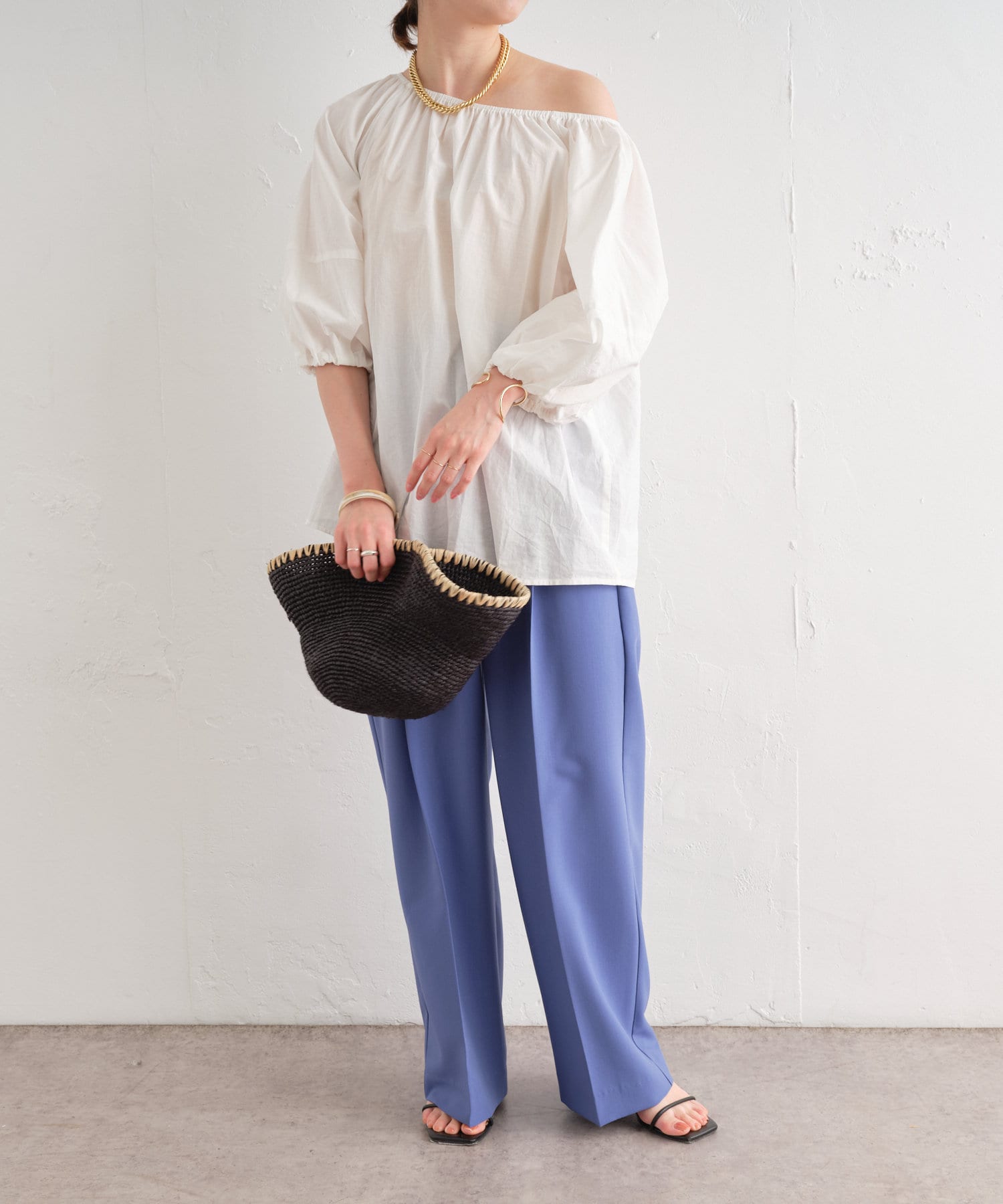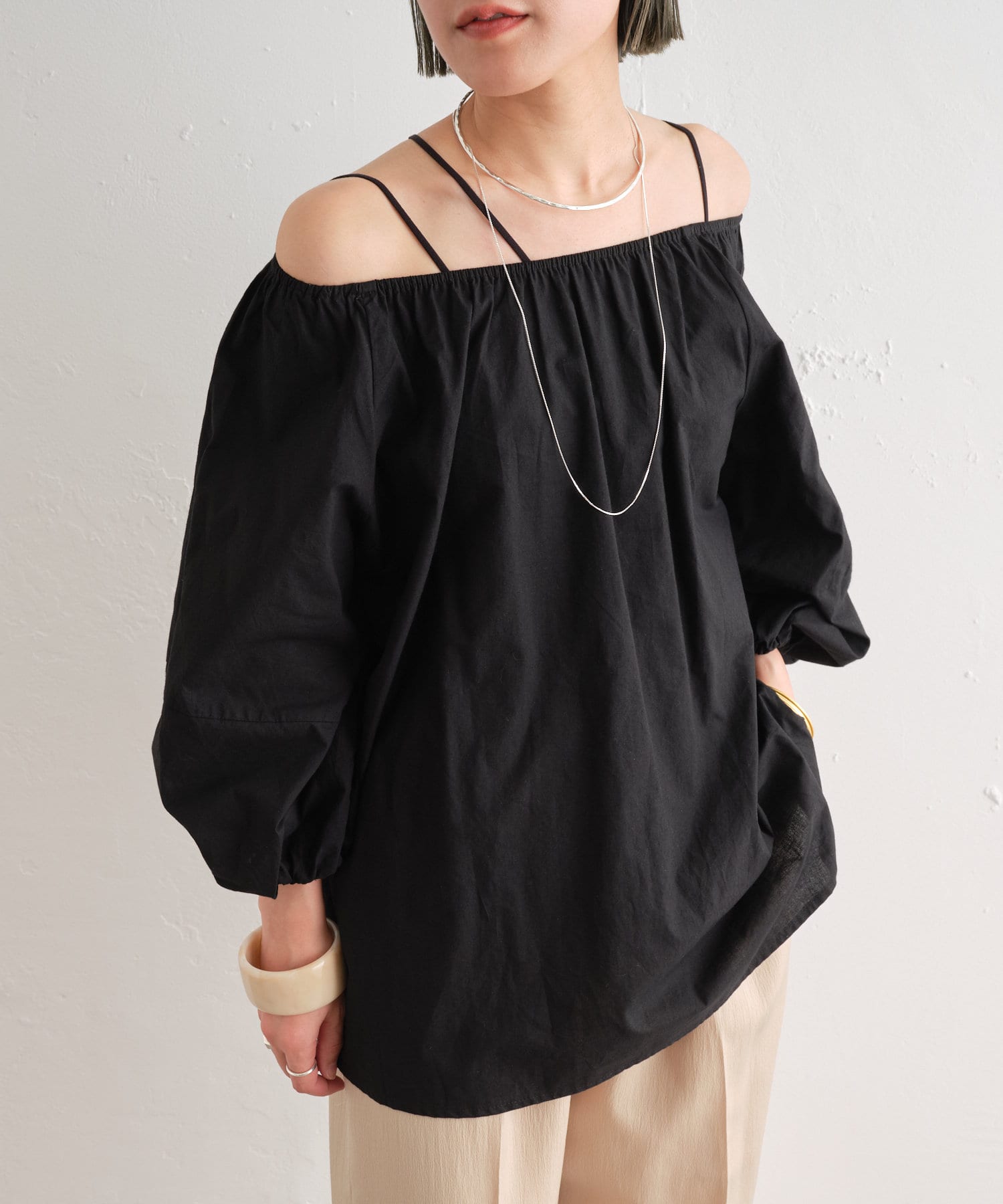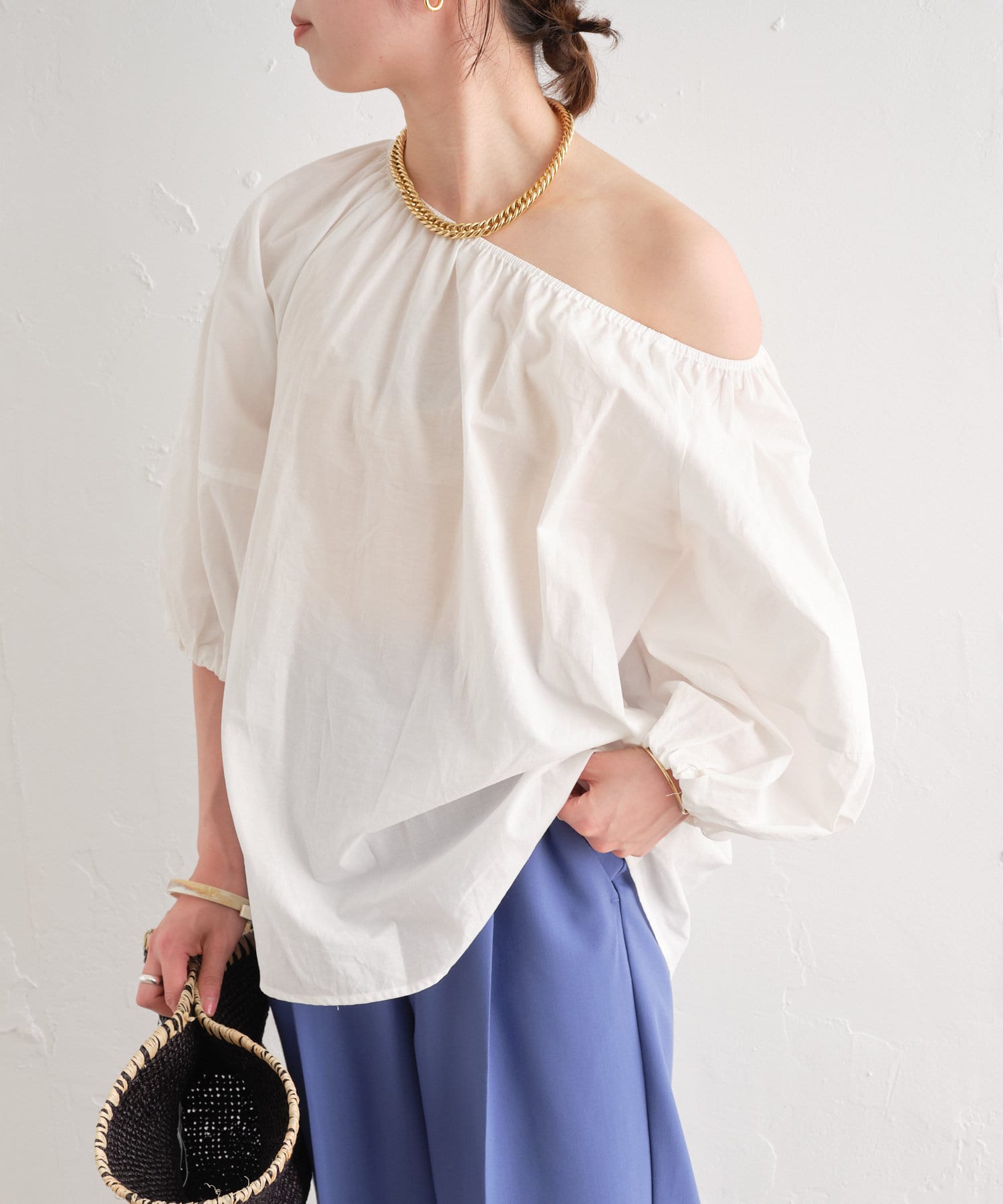 ・1枚で女性らしいスタイリングが叶うオフショルブラウスです。
