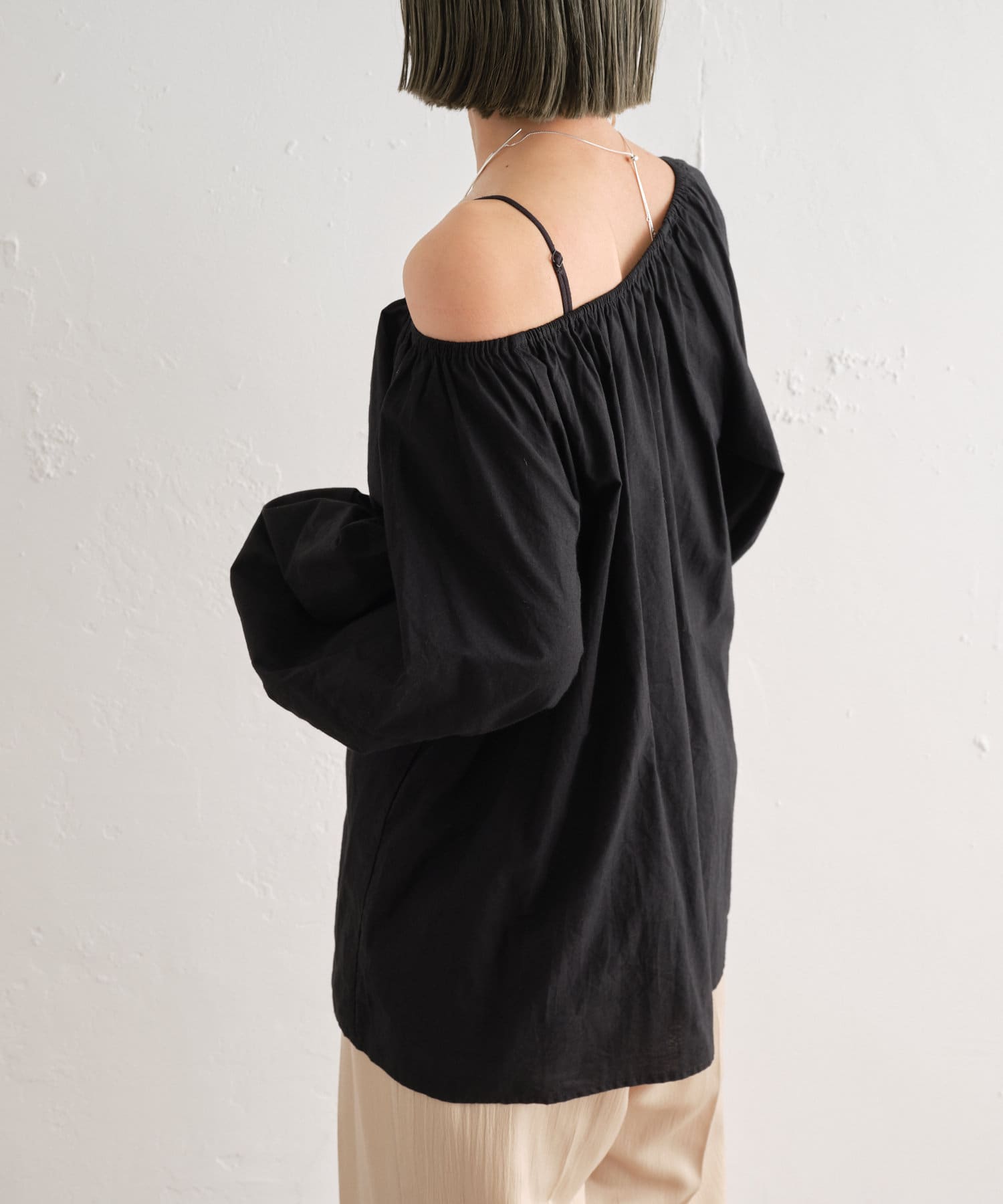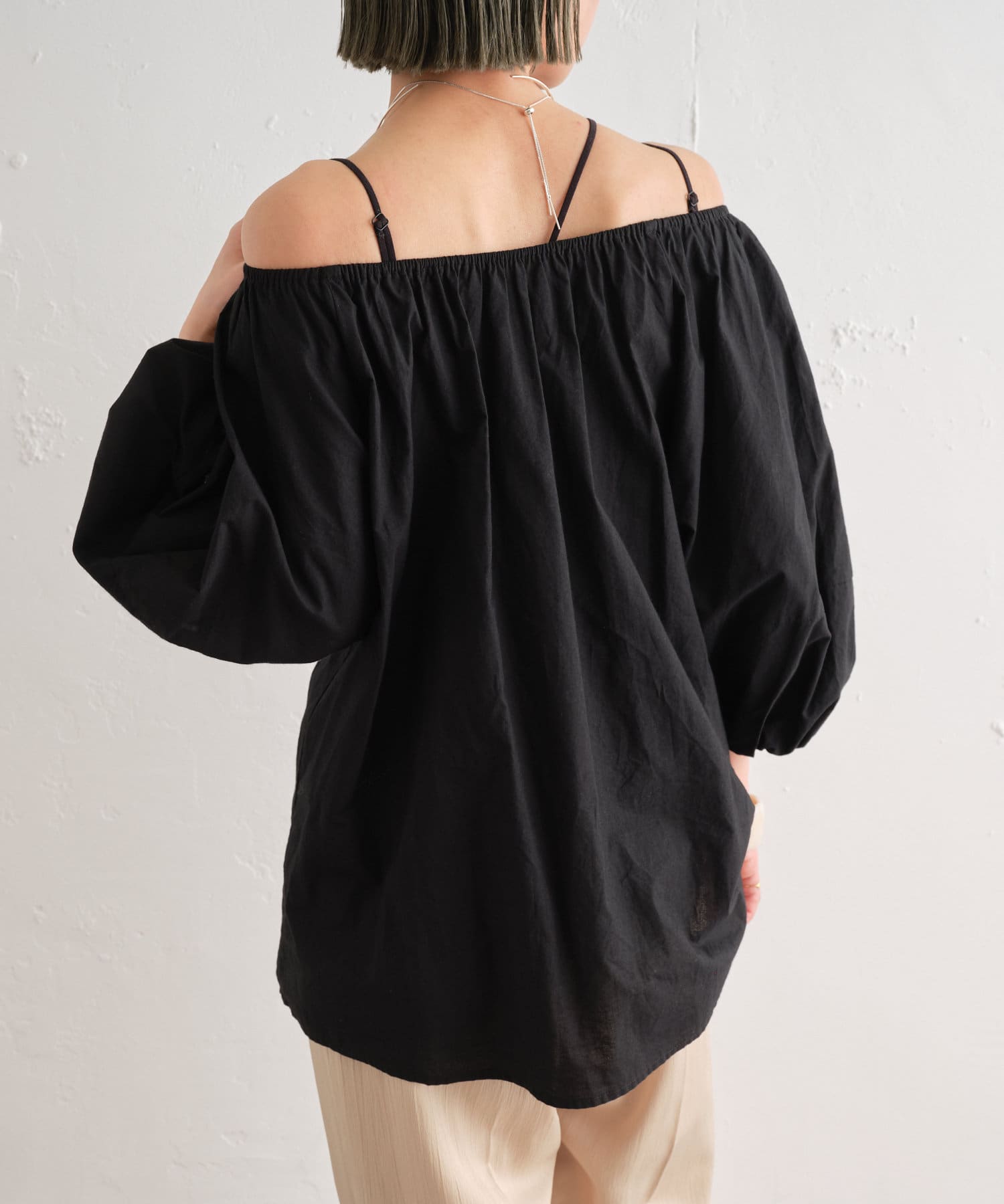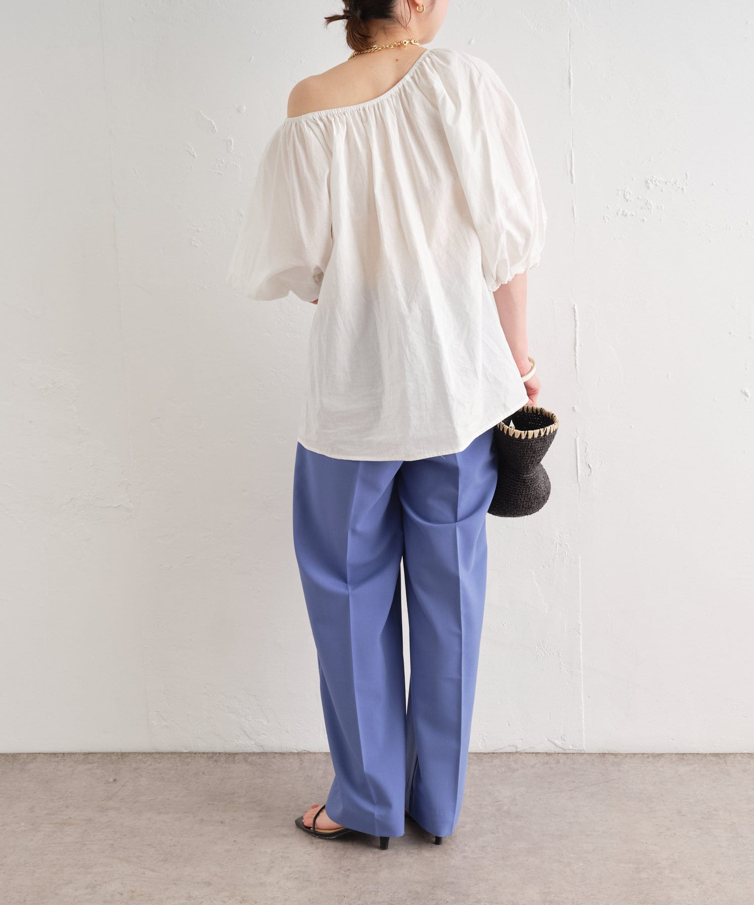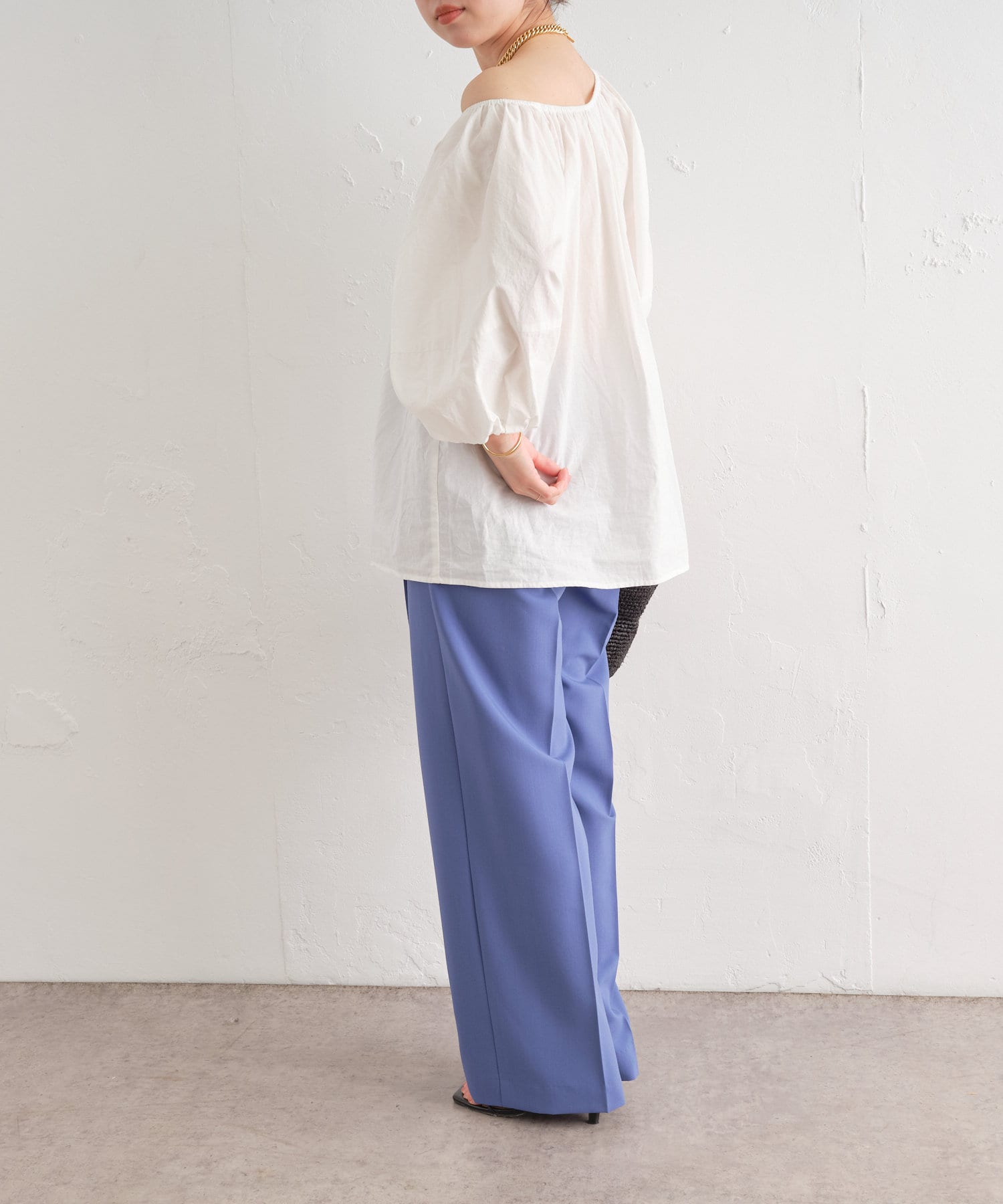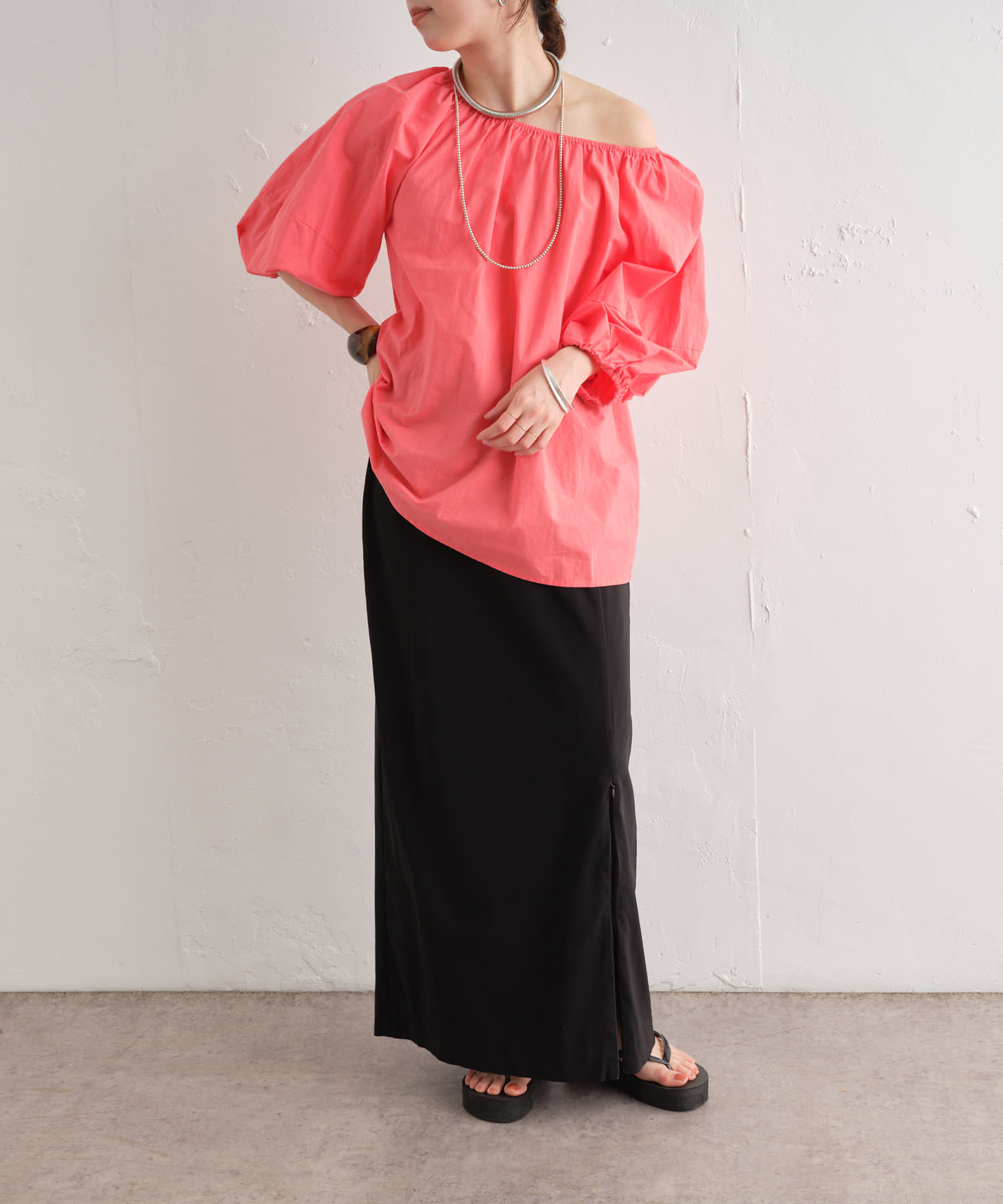 ・1枚で女性らしいスタイリングが叶うオフショルブラウスです。