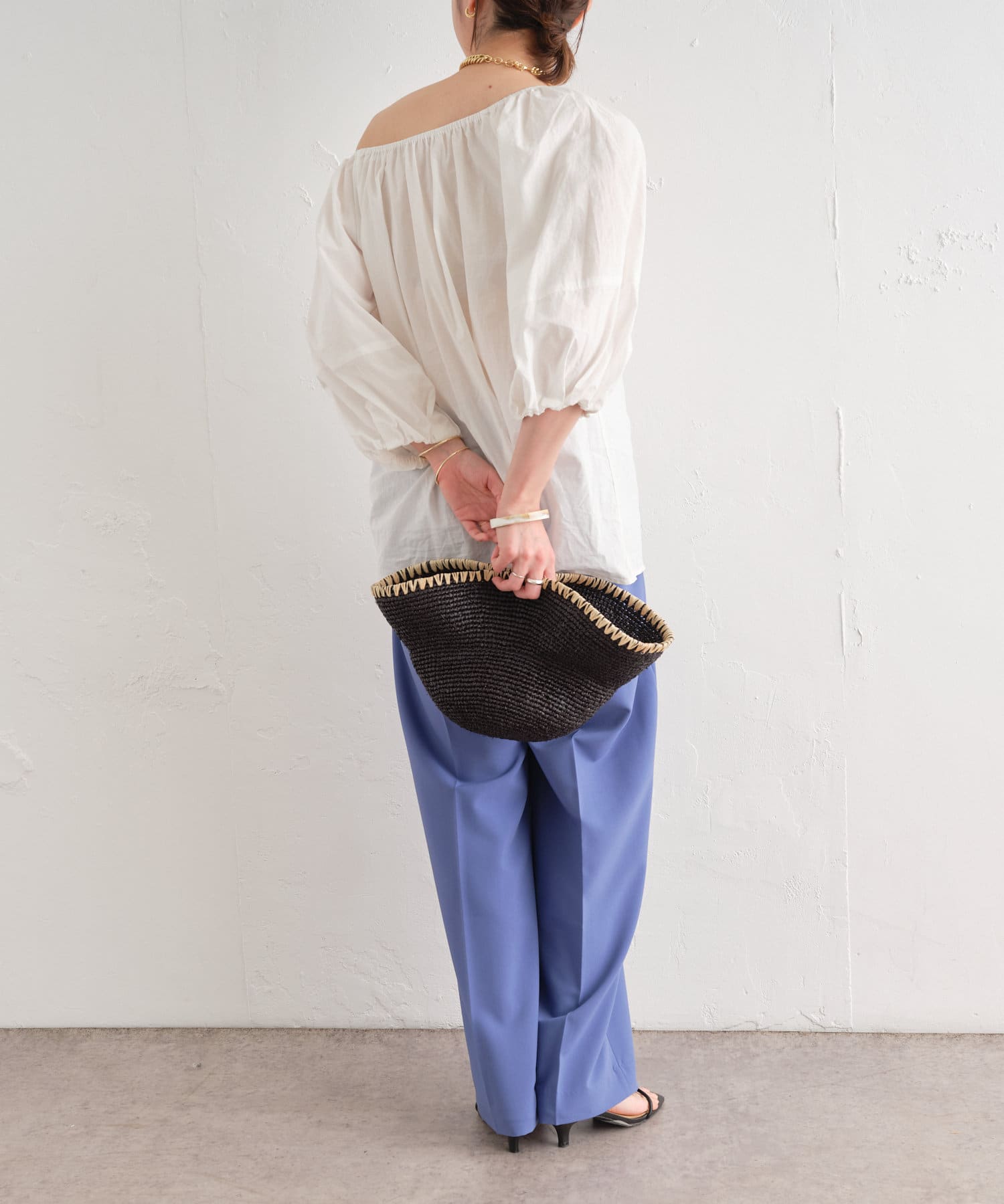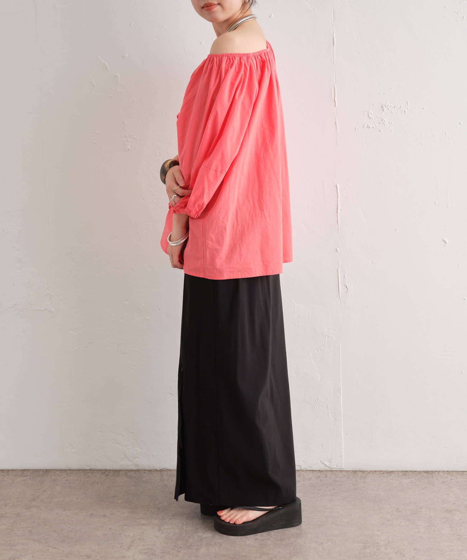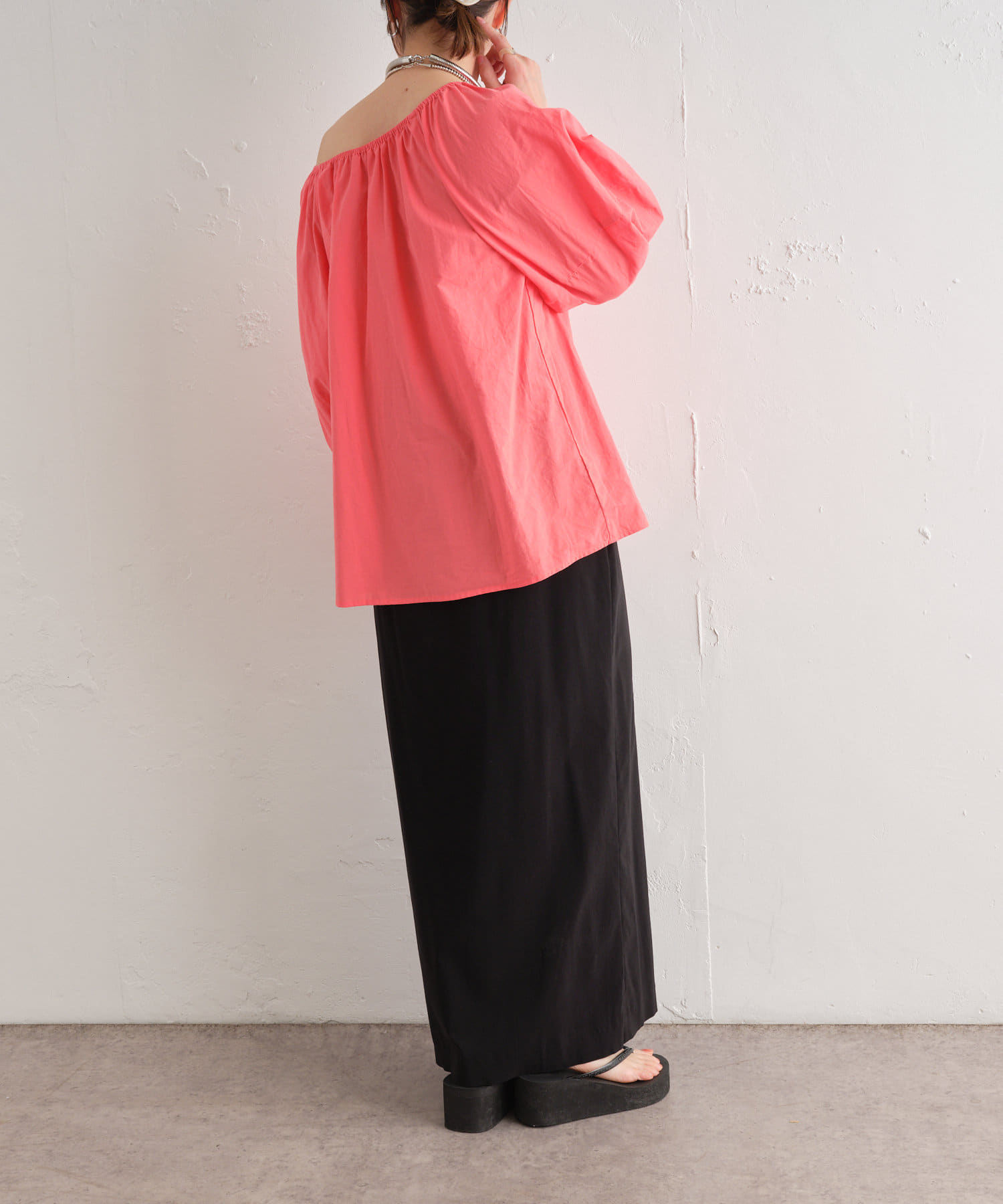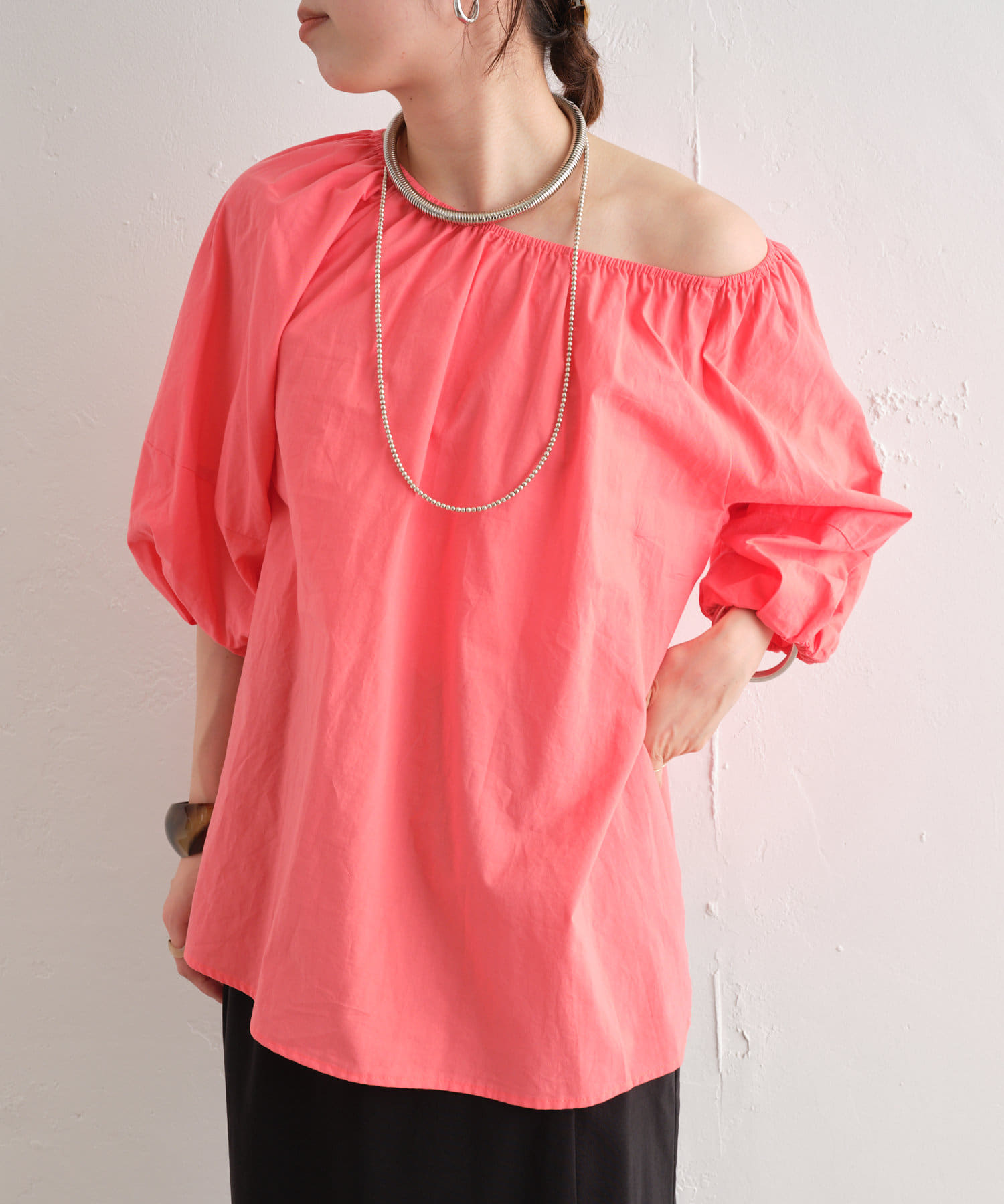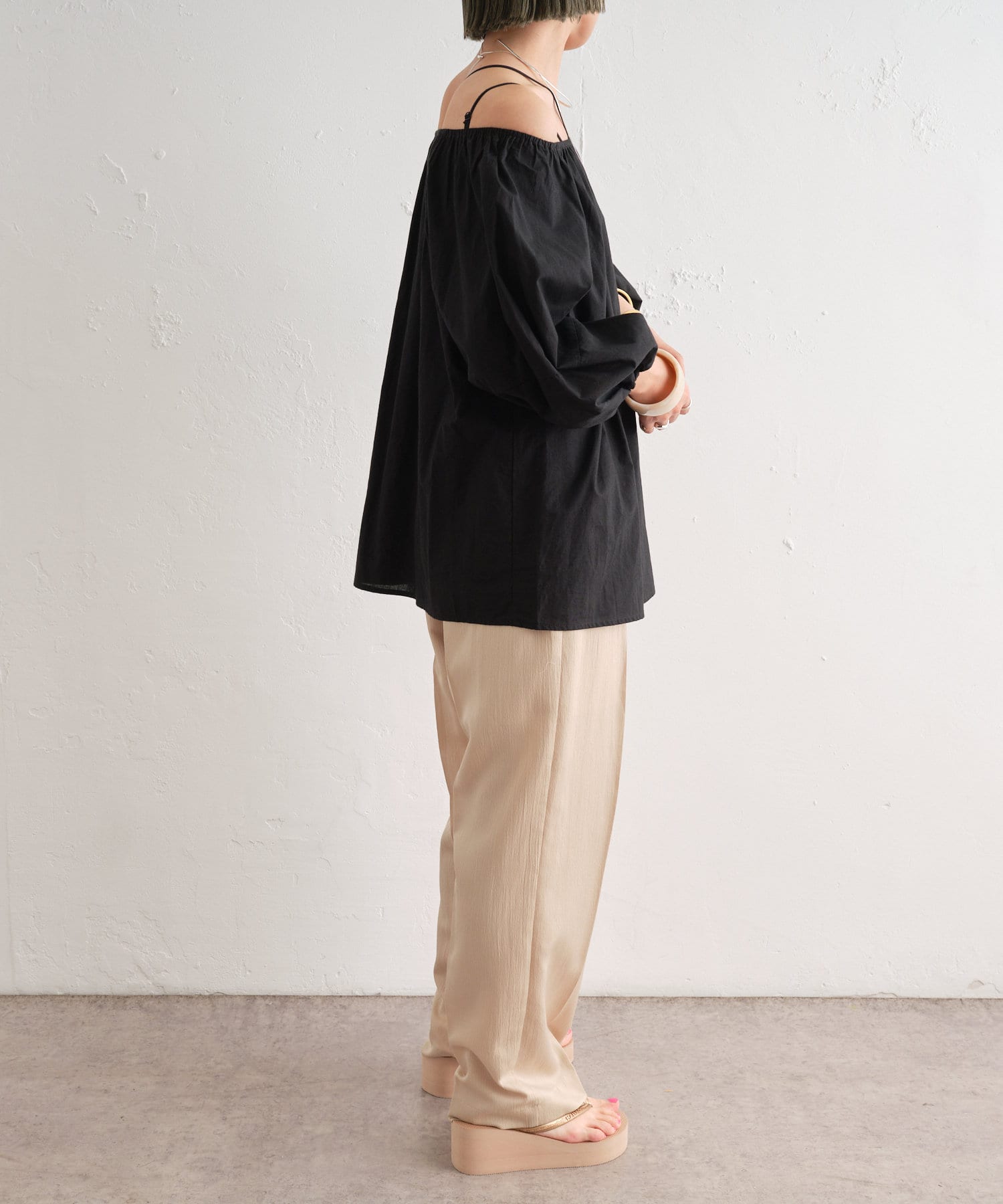 ・1枚で女性らしいスタイリングが叶うオフショルブラウスです。