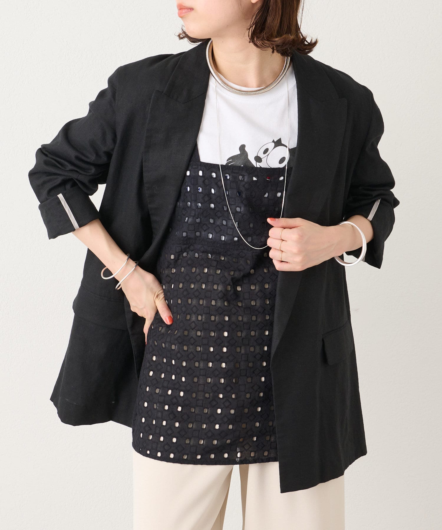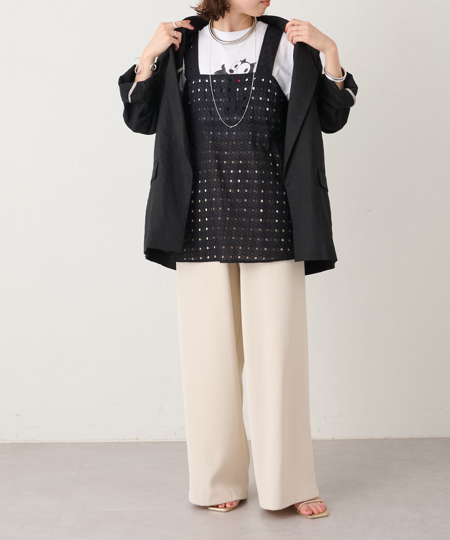 ・一枚ではもちろん、Tシャツやシアー素材のトップスの上に着用してレイヤードスタイルもおすすめ!
