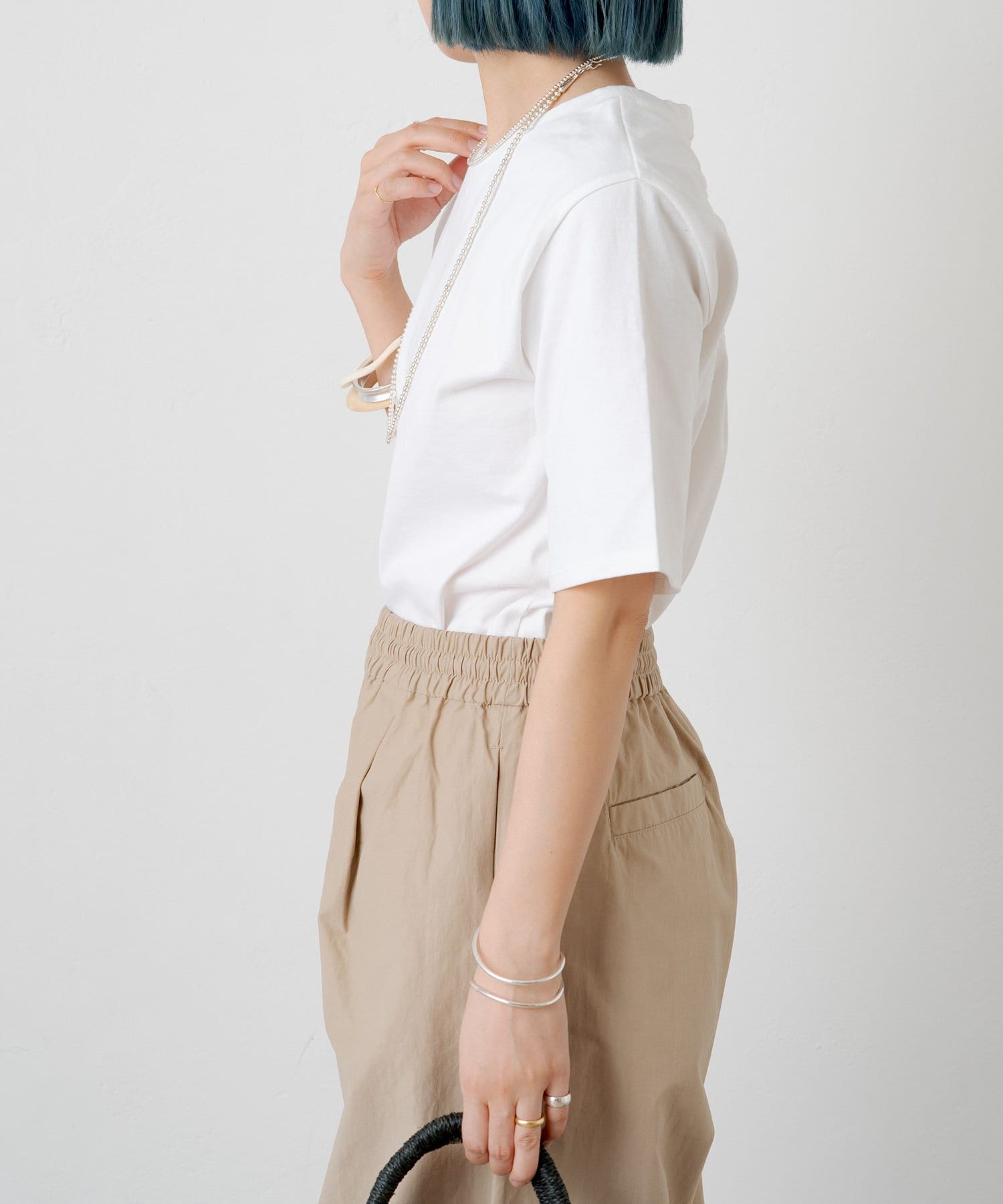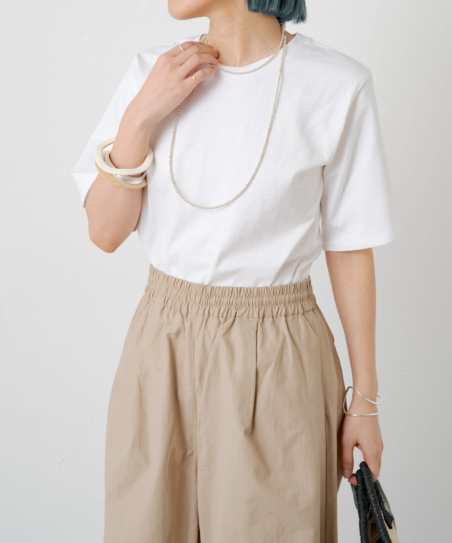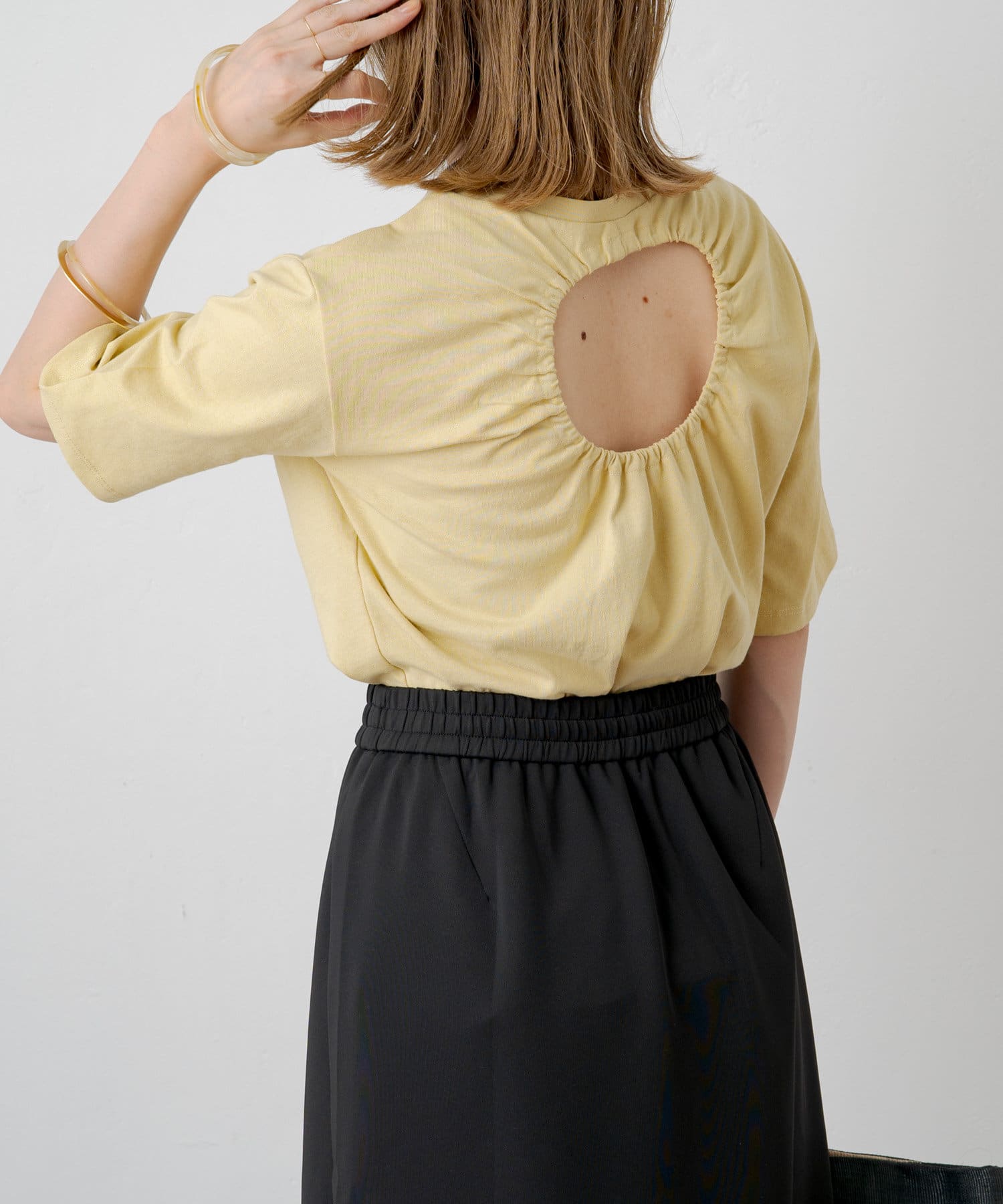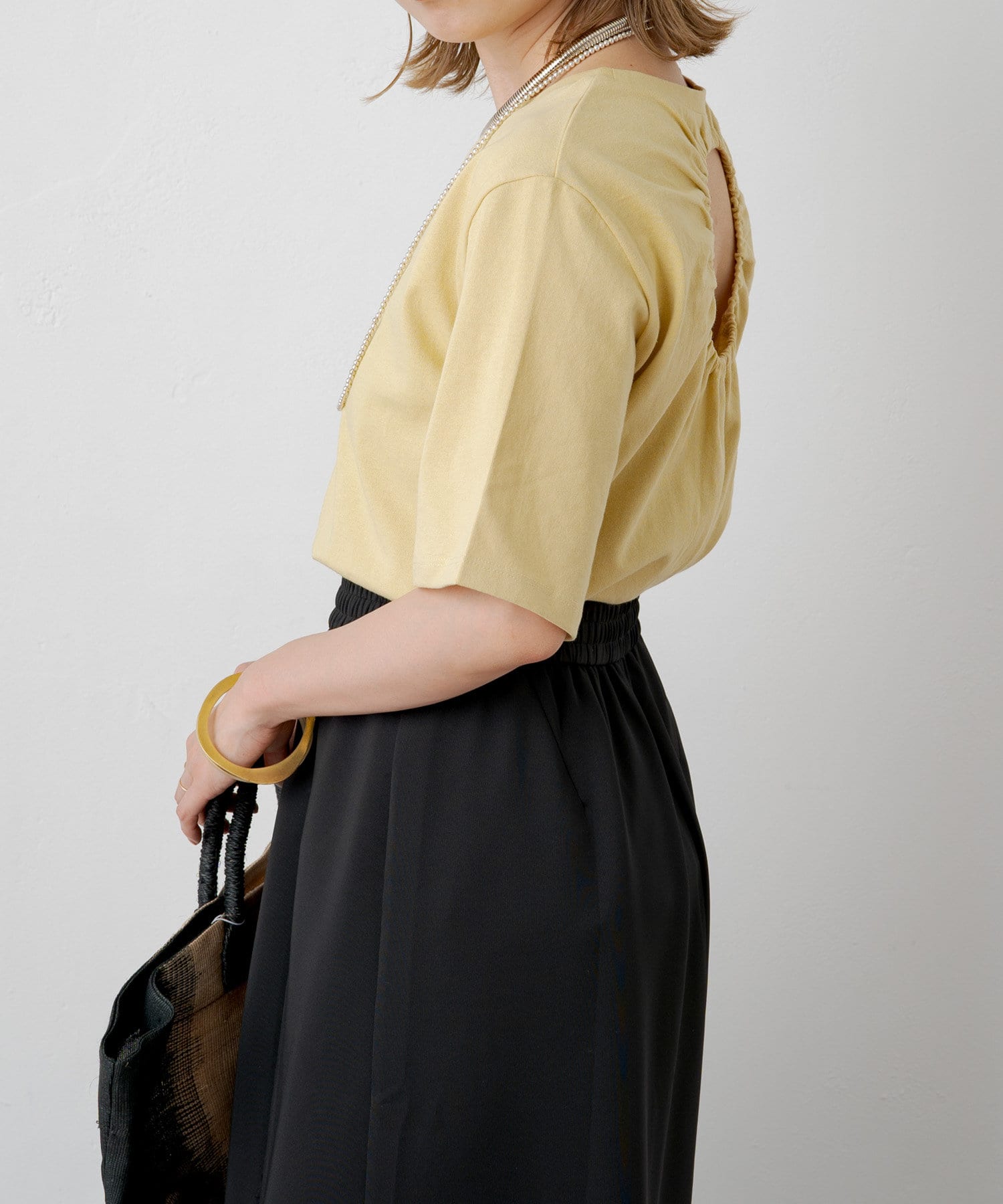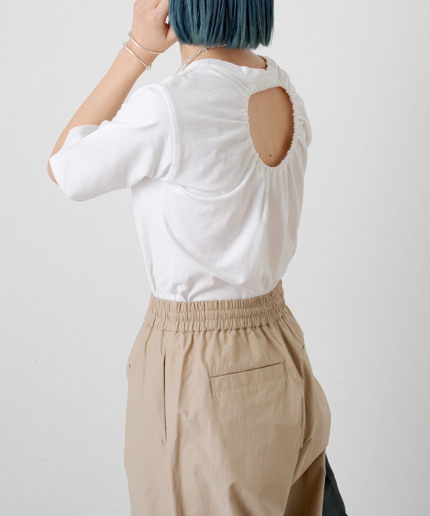 ・バックシャンデザインで後姿も女性らしいTシャツ。さりげない大人な肌見せが叶います。