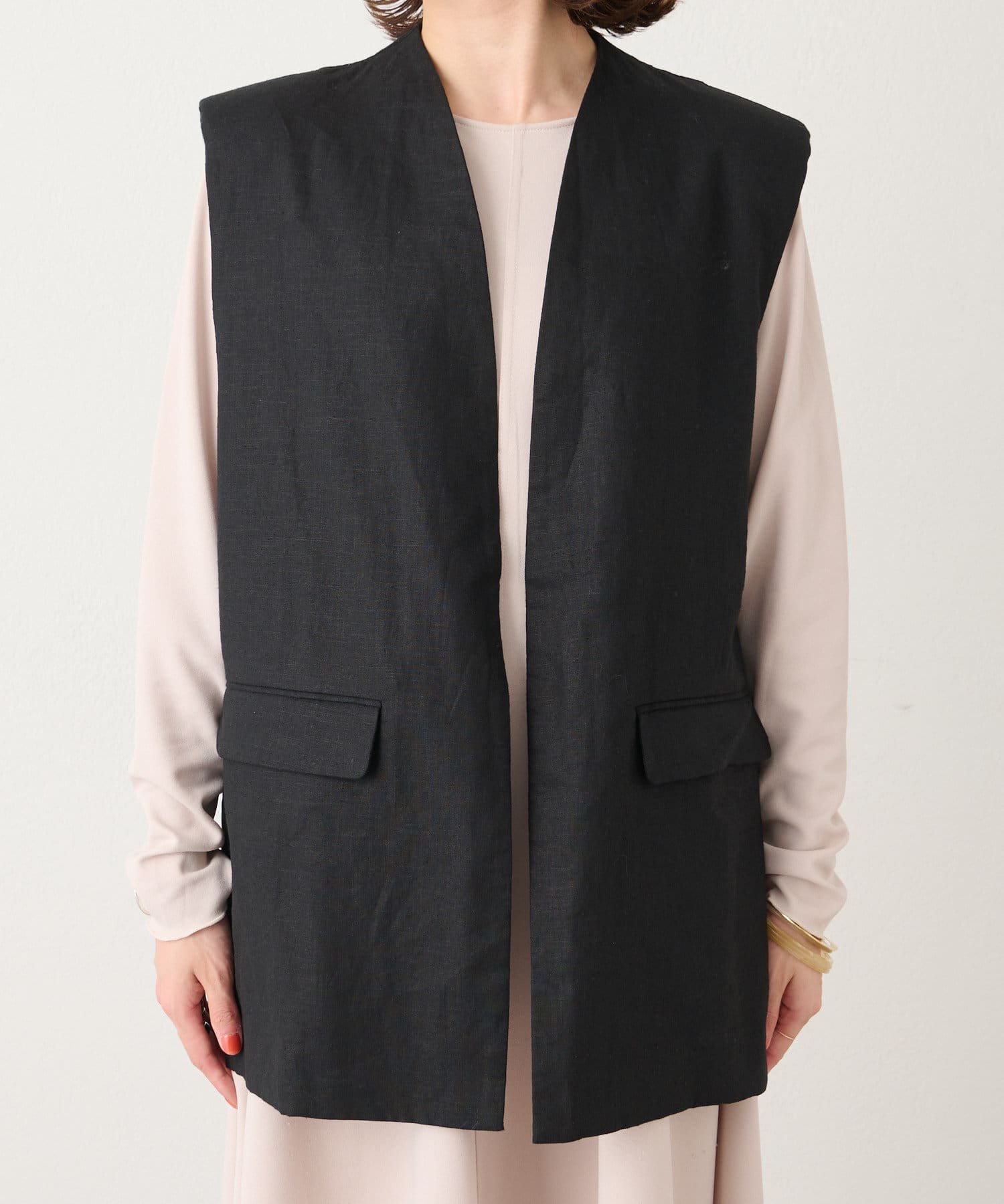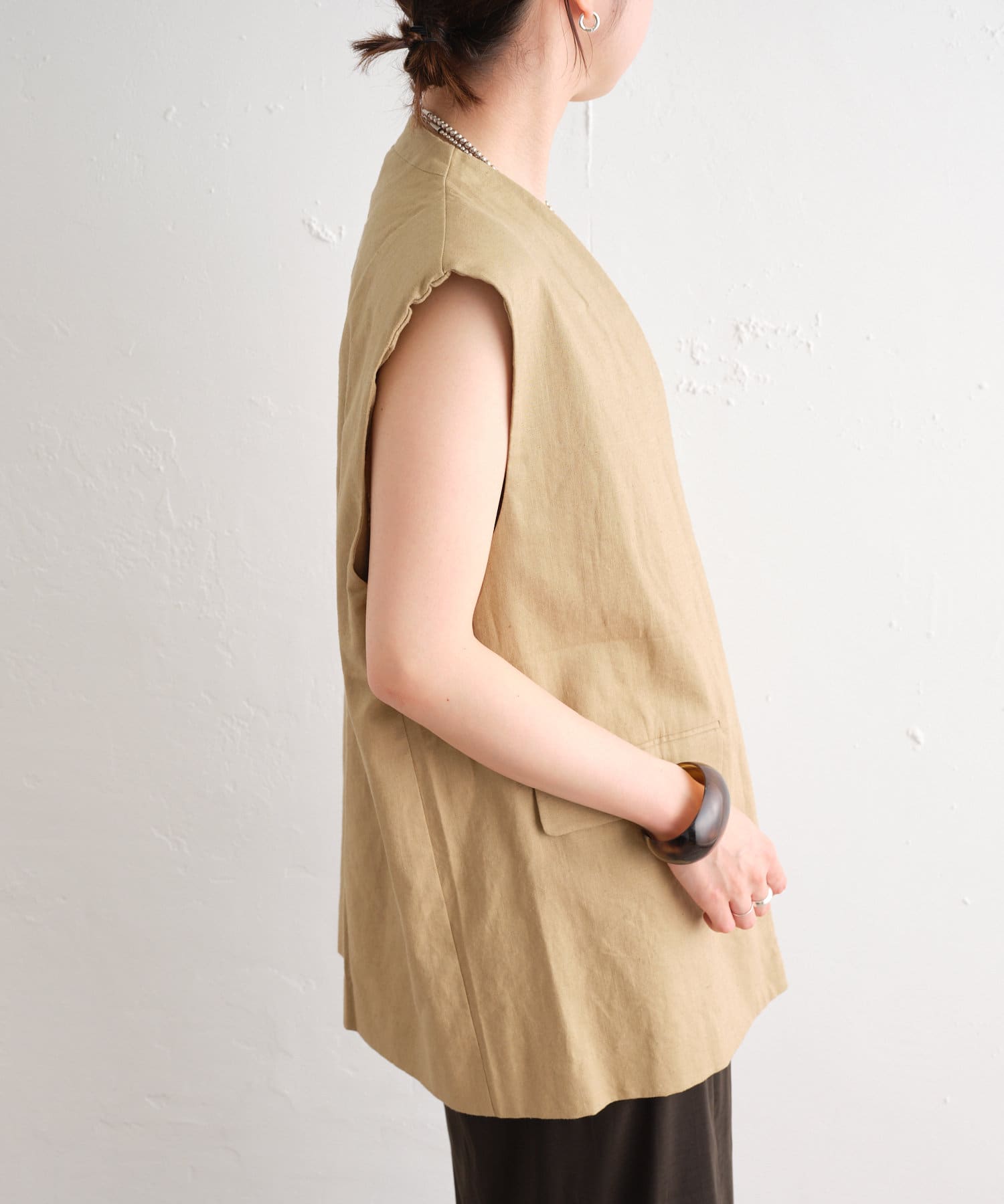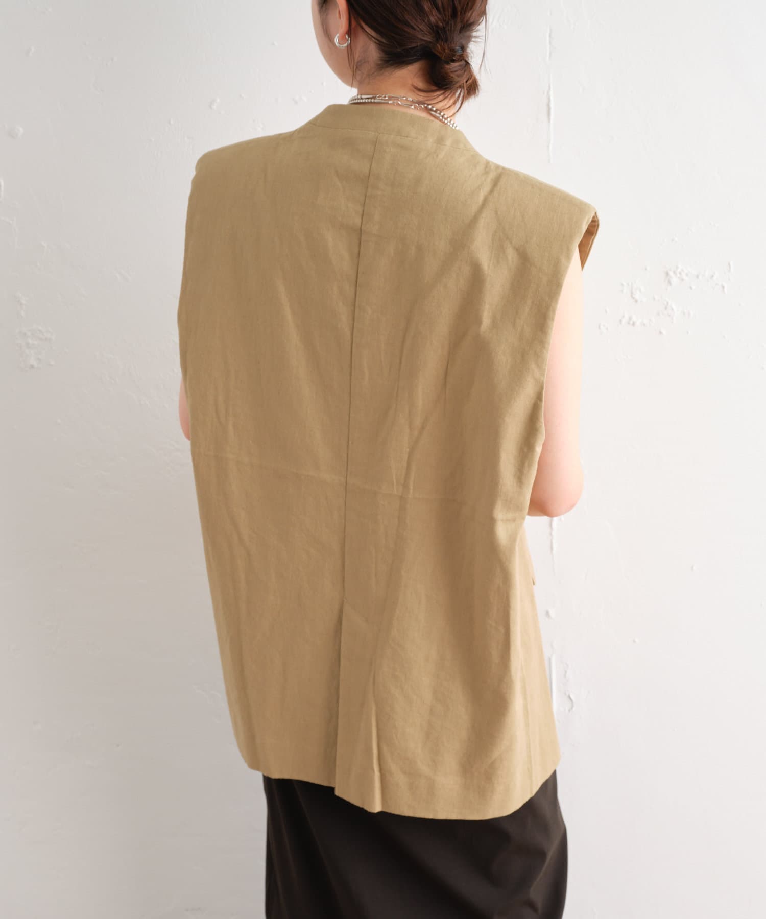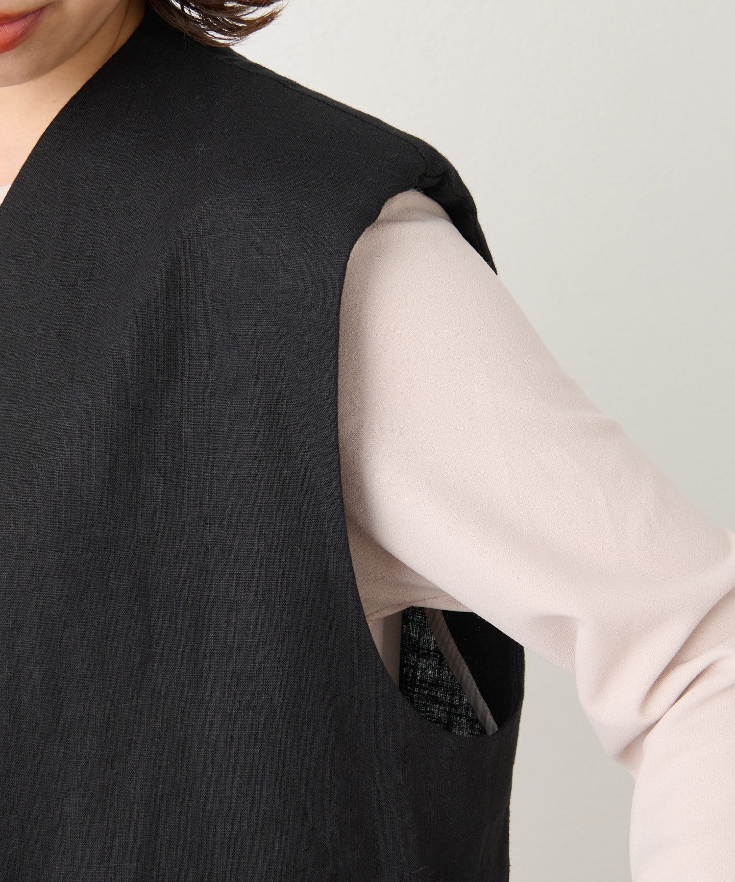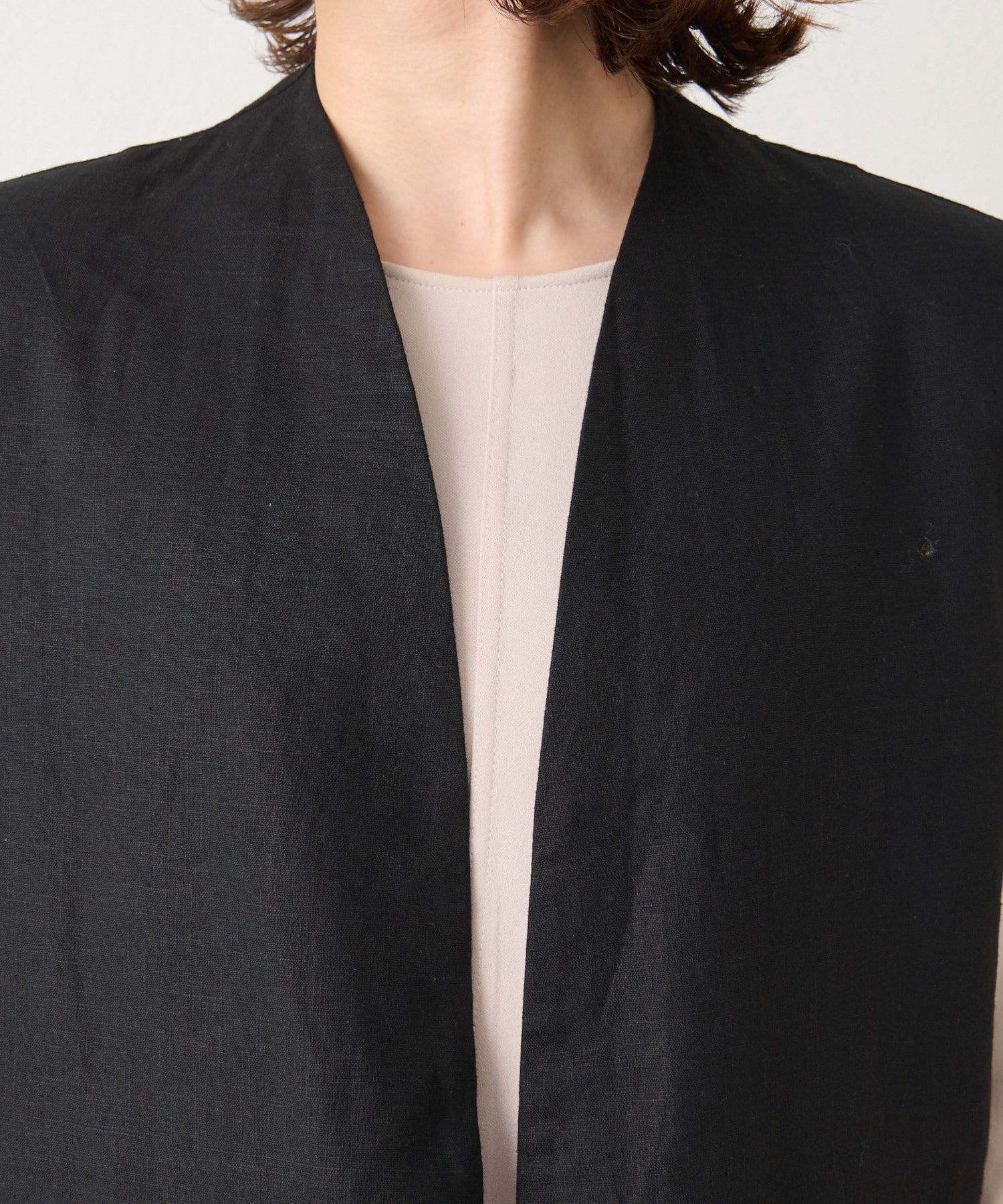 着心地の良いリネン素材のノーカラーベスト