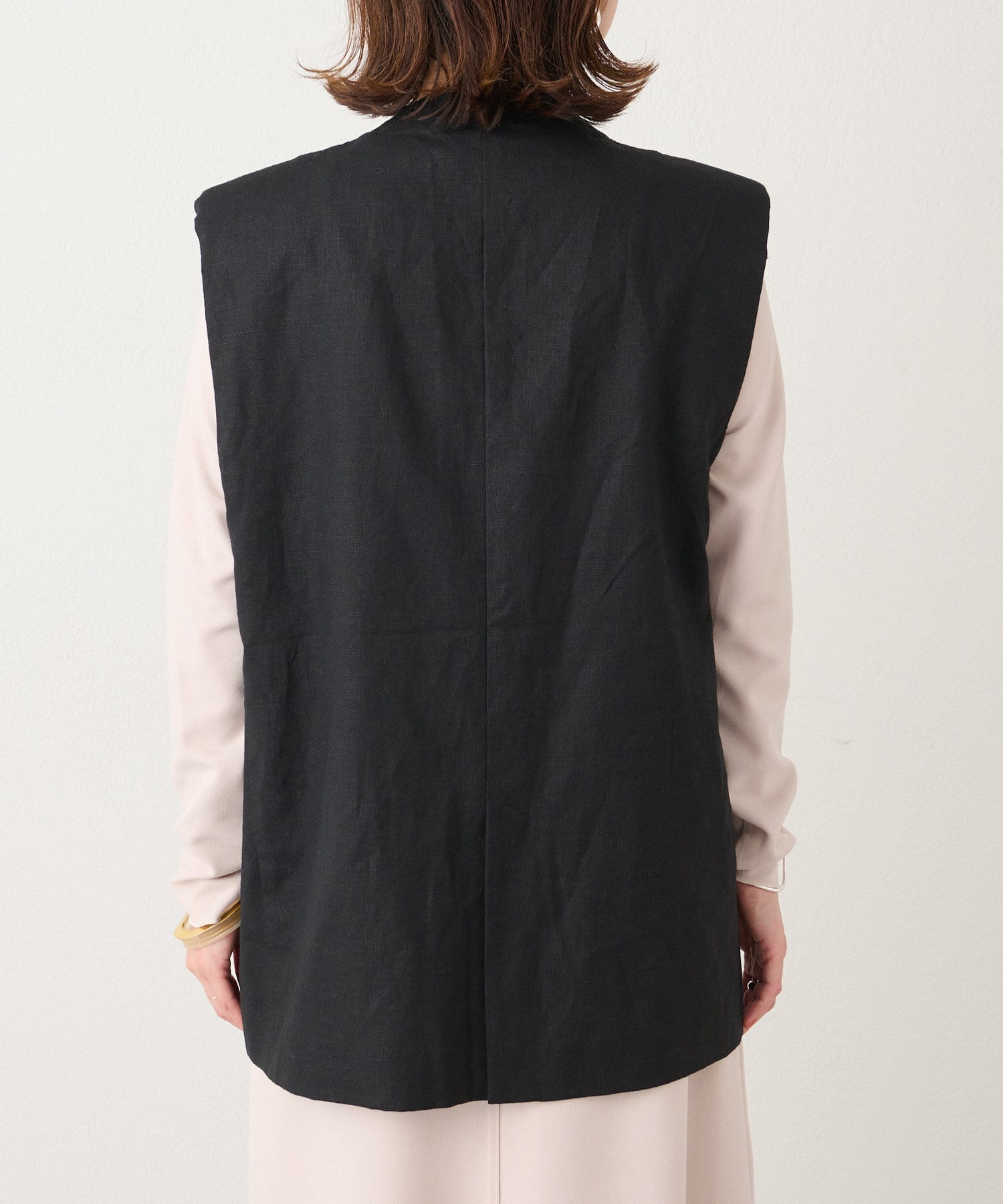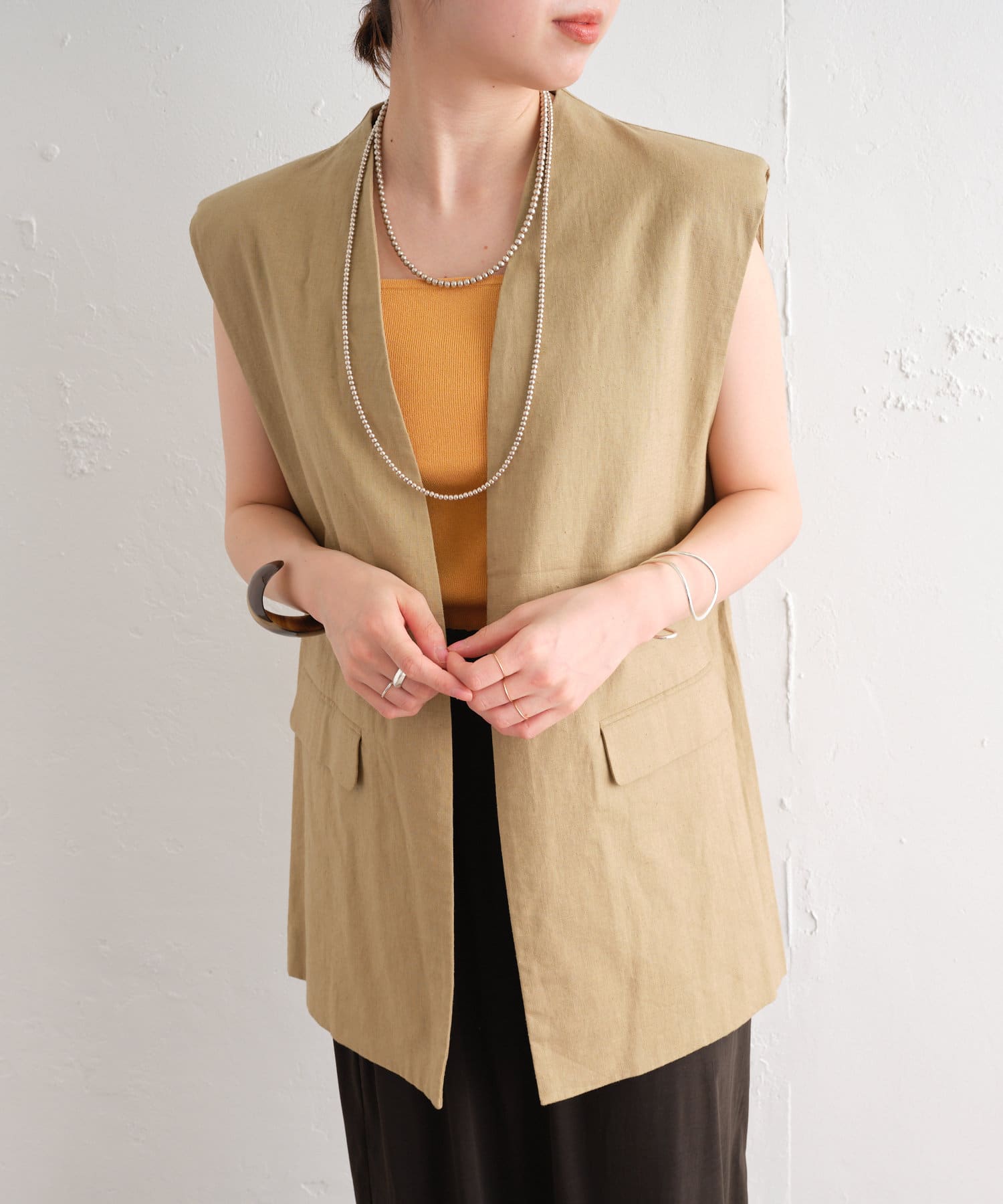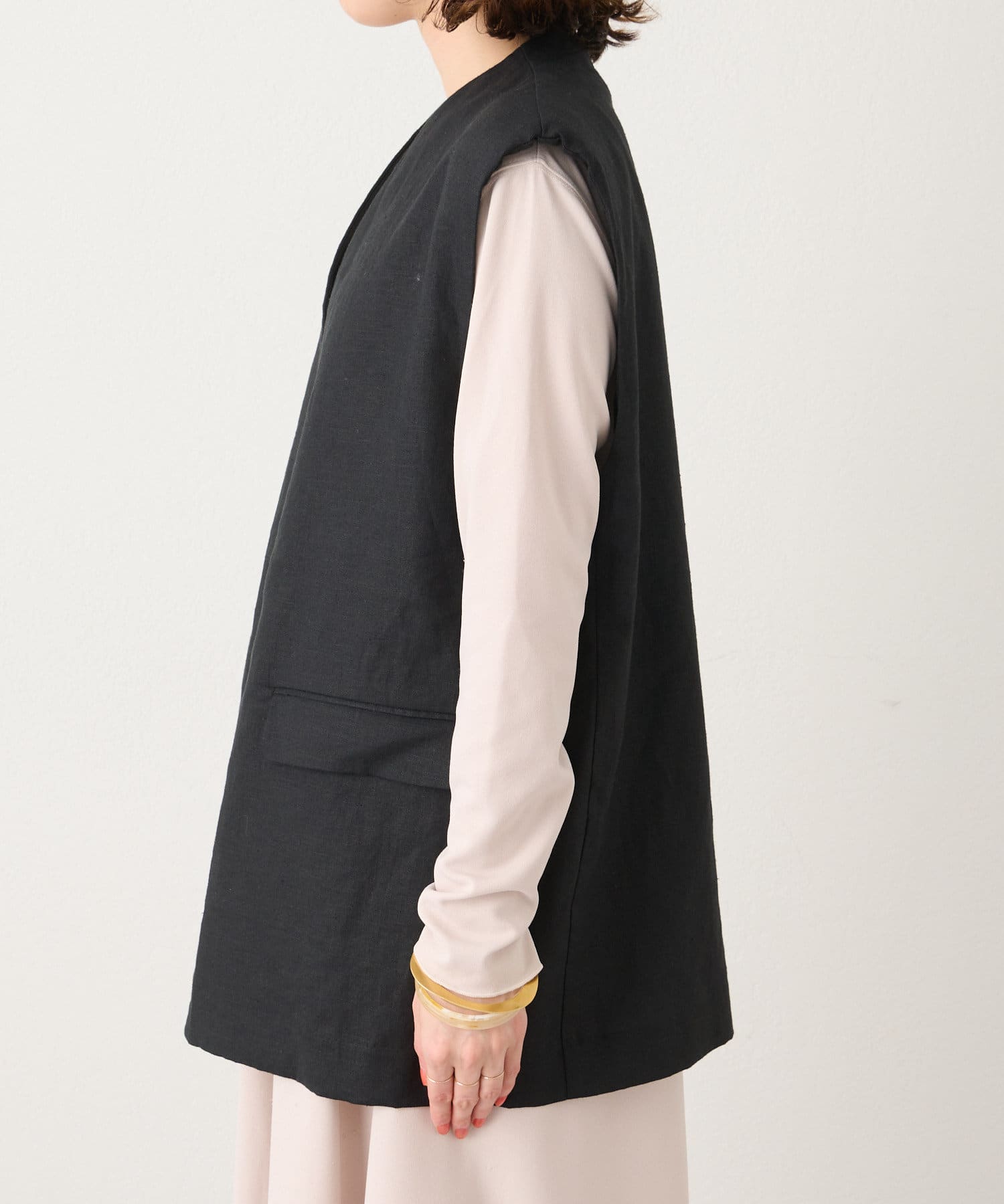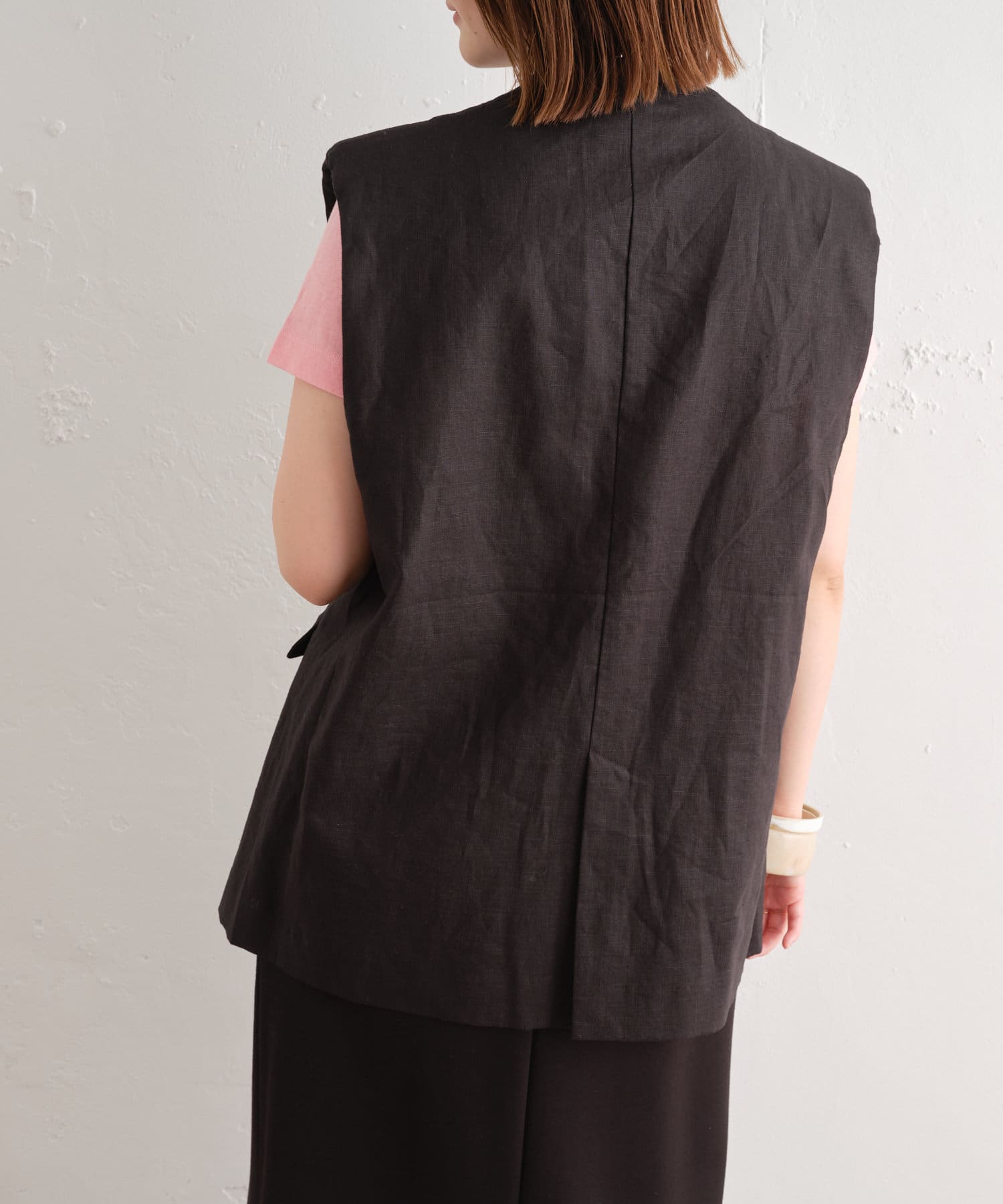 着心地の良いリネン素材のノーカラーベスト