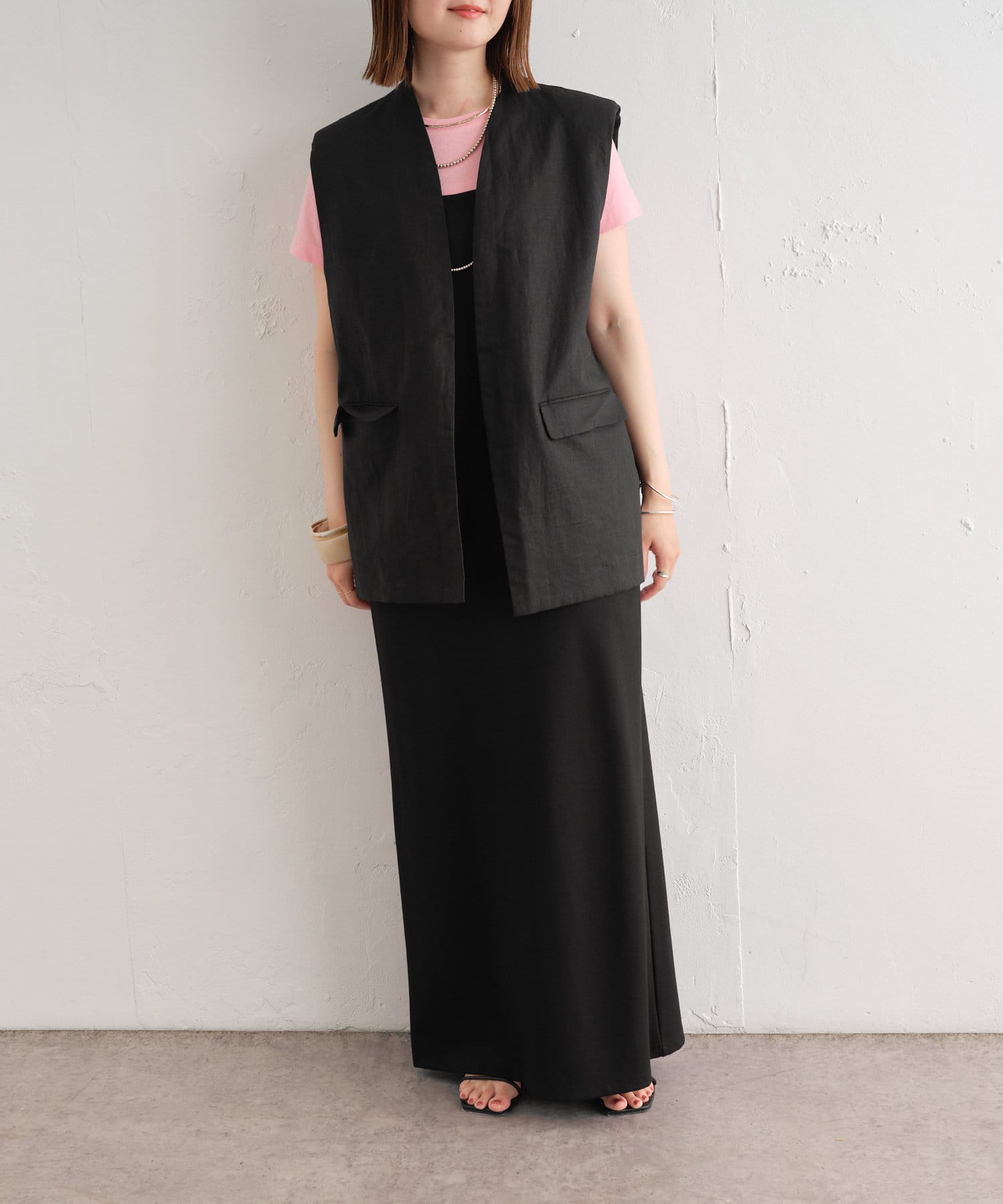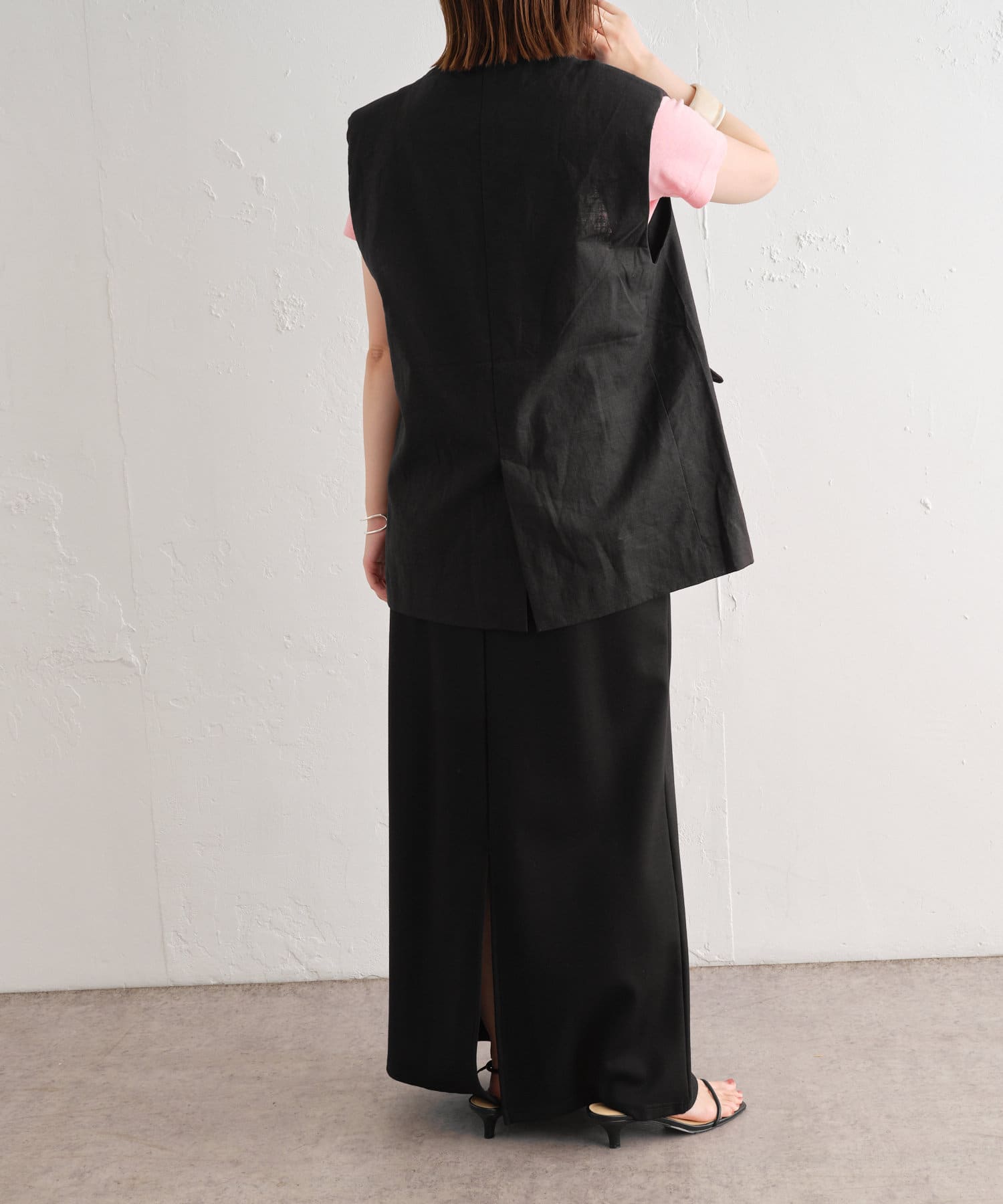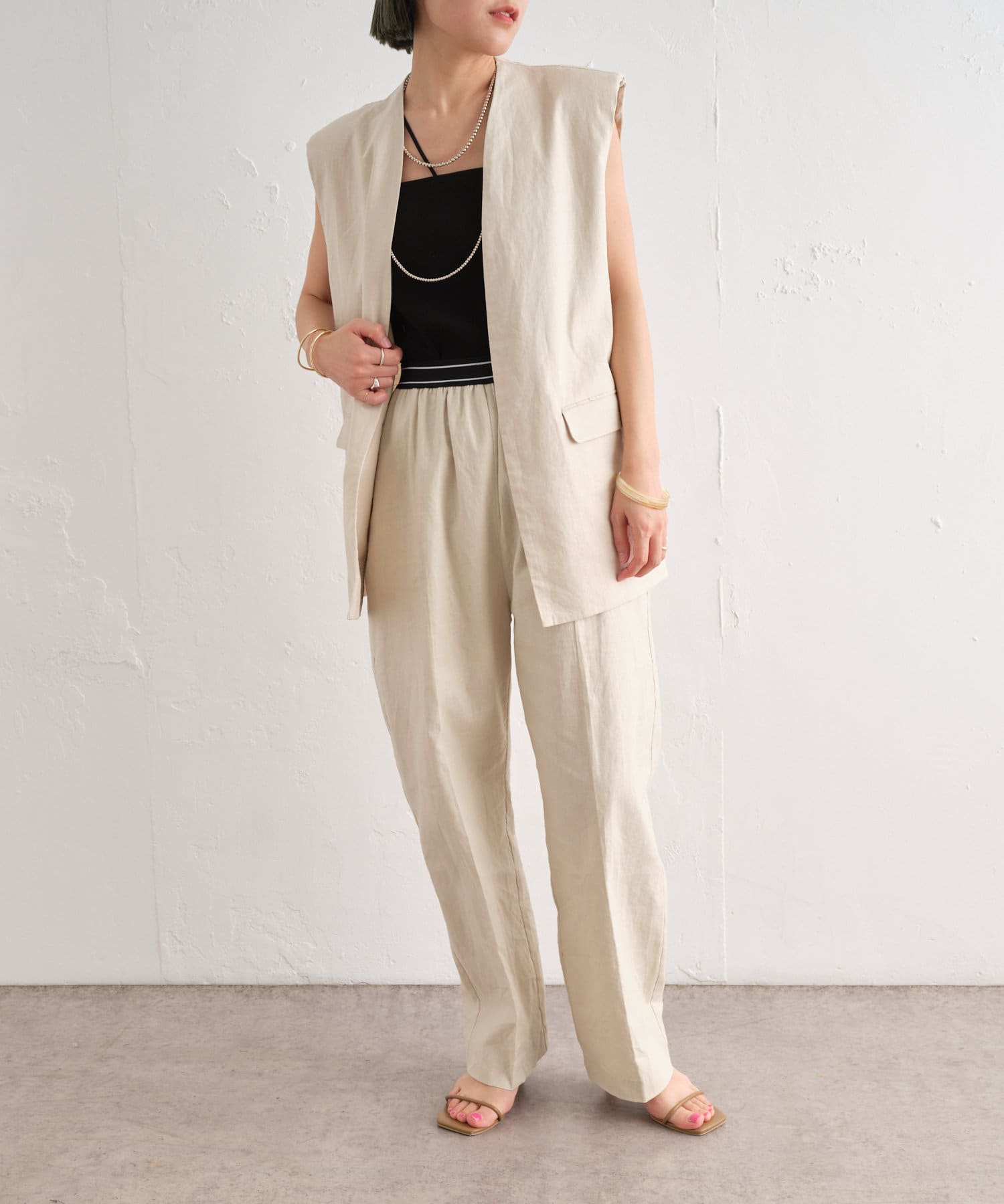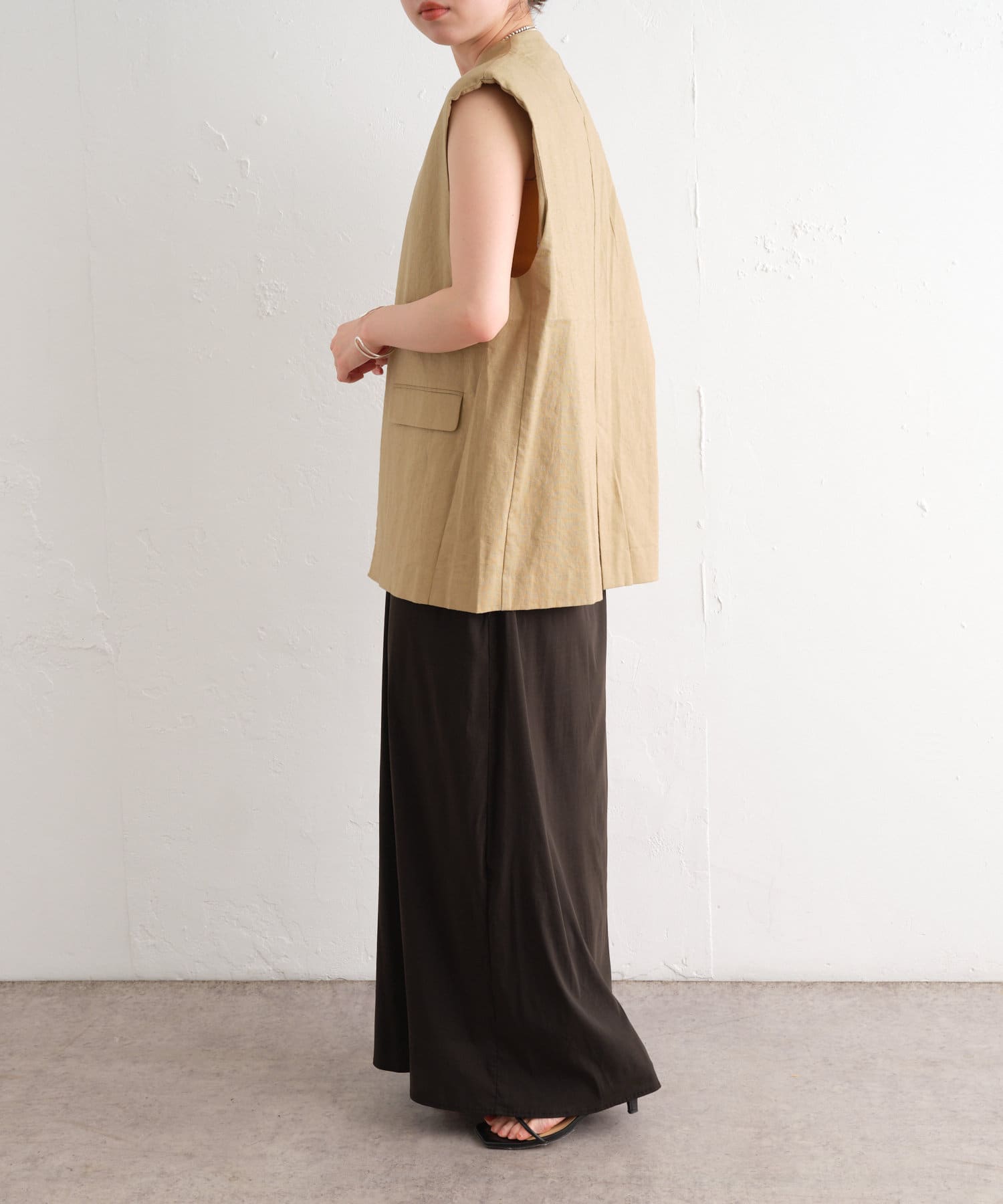 着心地の良いリネン素材のノーカラーベスト