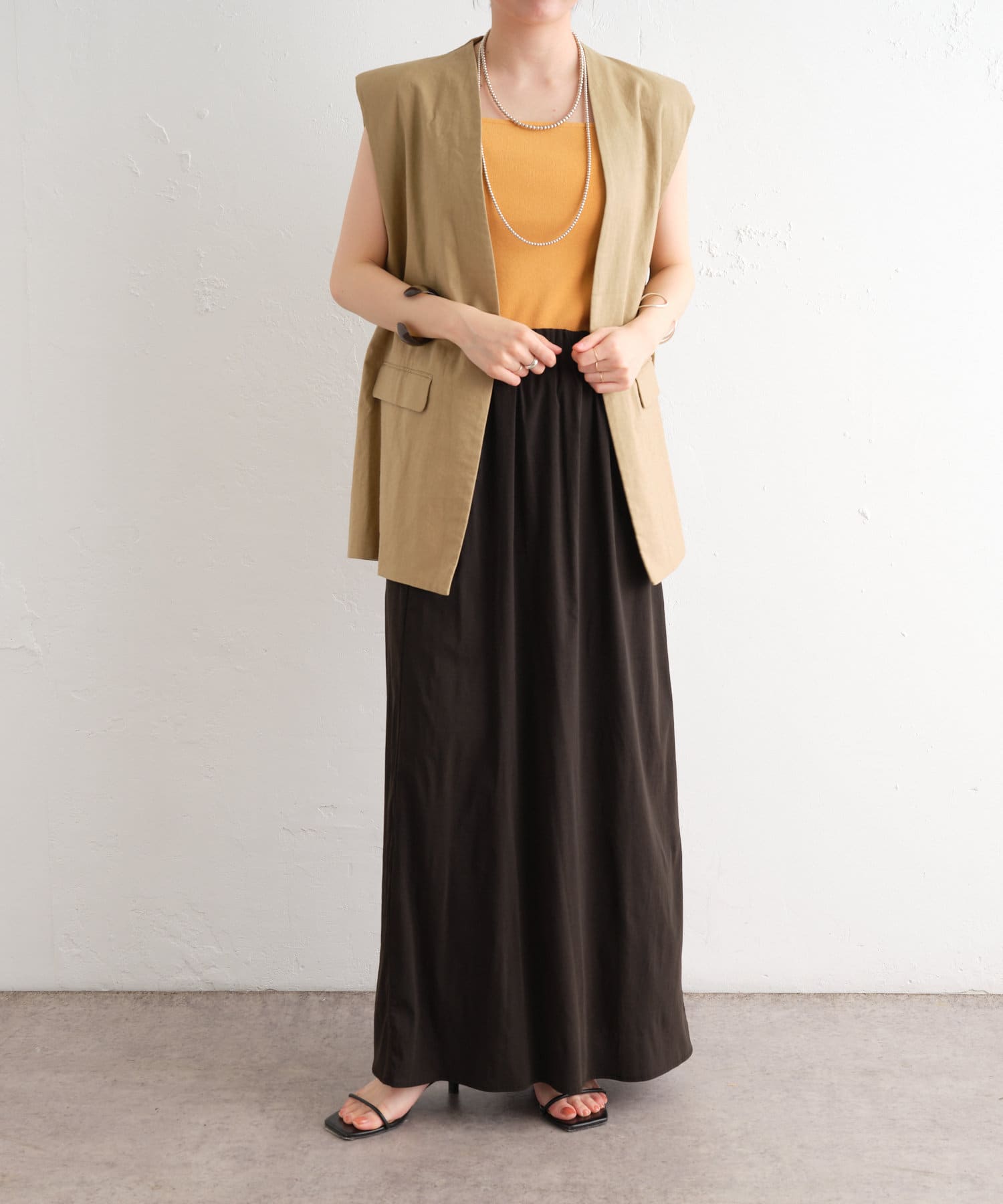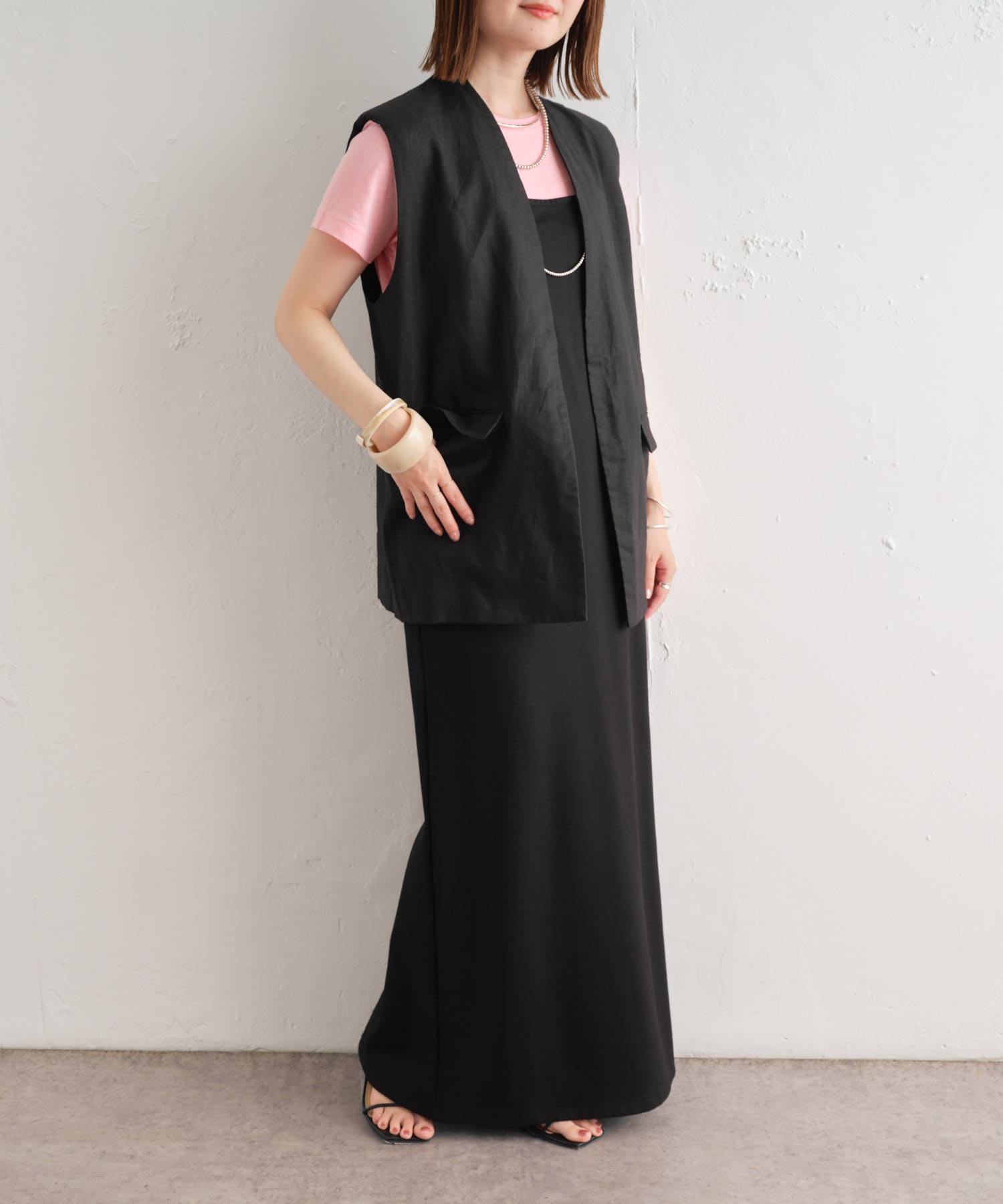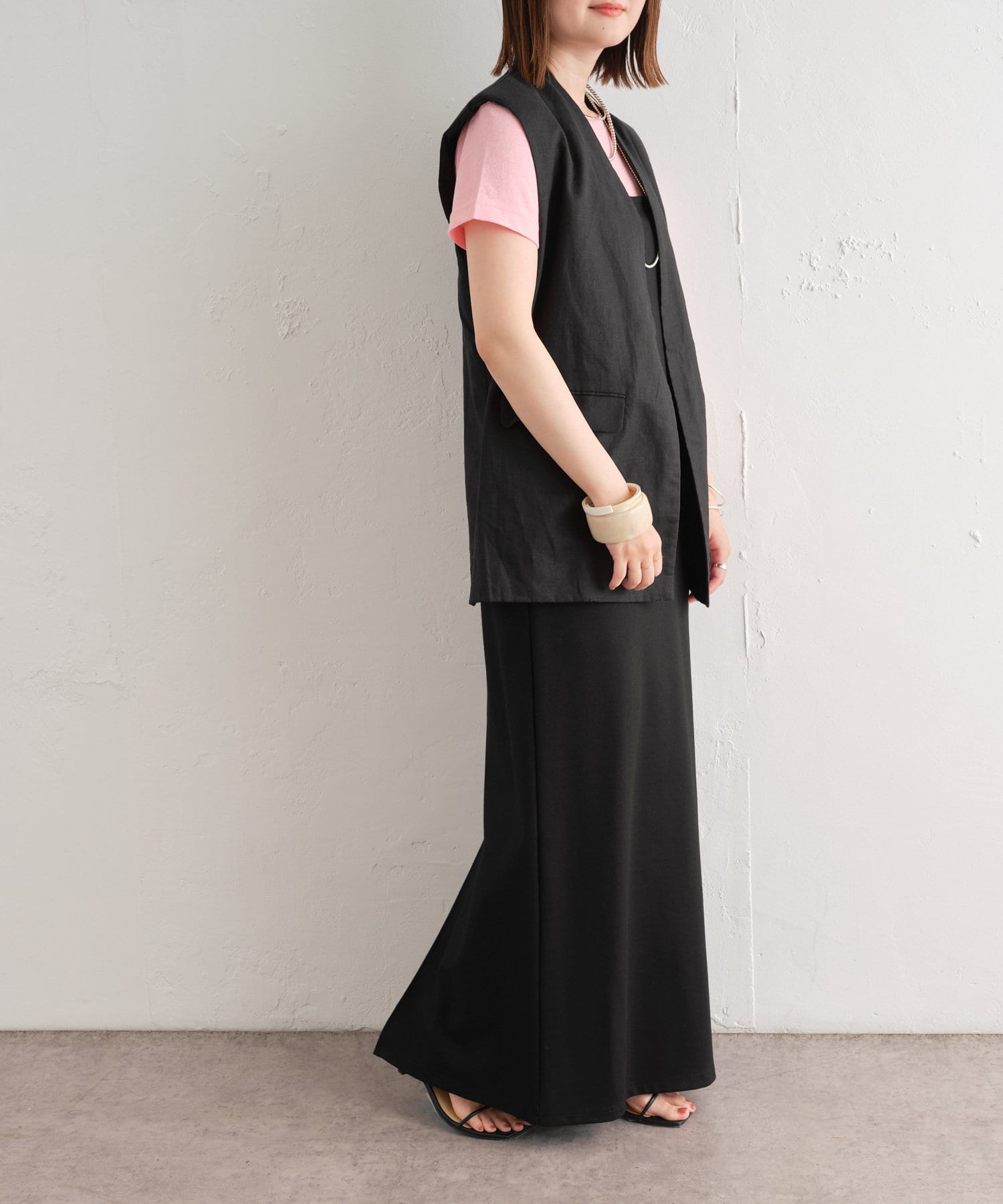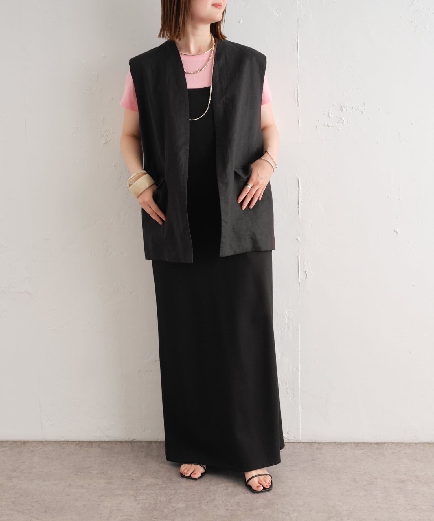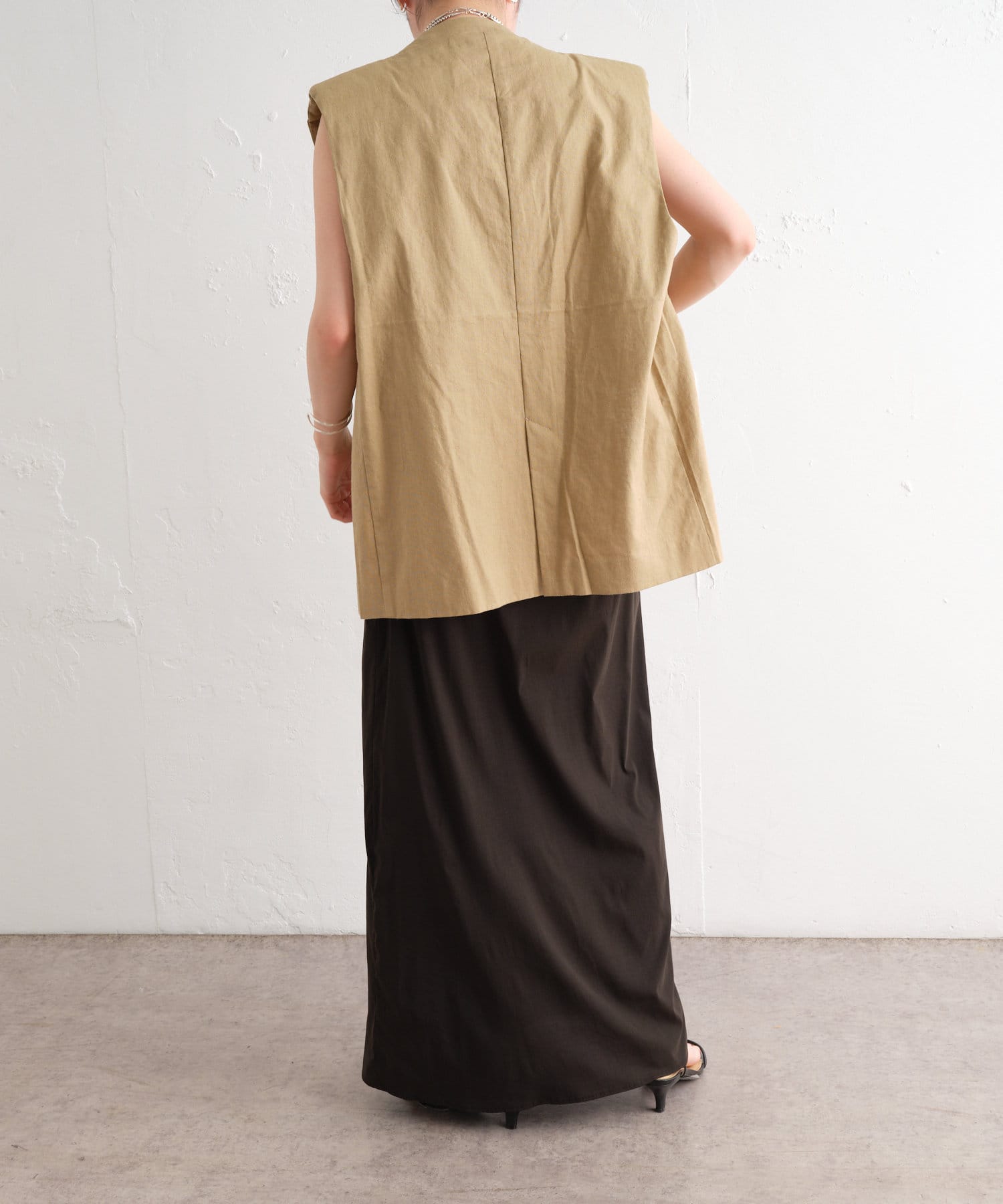 着心地の良いリネン素材のノーカラーベスト
