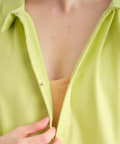 ・襟ぐりにはホックが付いているので、首回りのあき具合も調整していただけます。Vあきで着ていただくとより大人な洗練された印象に。