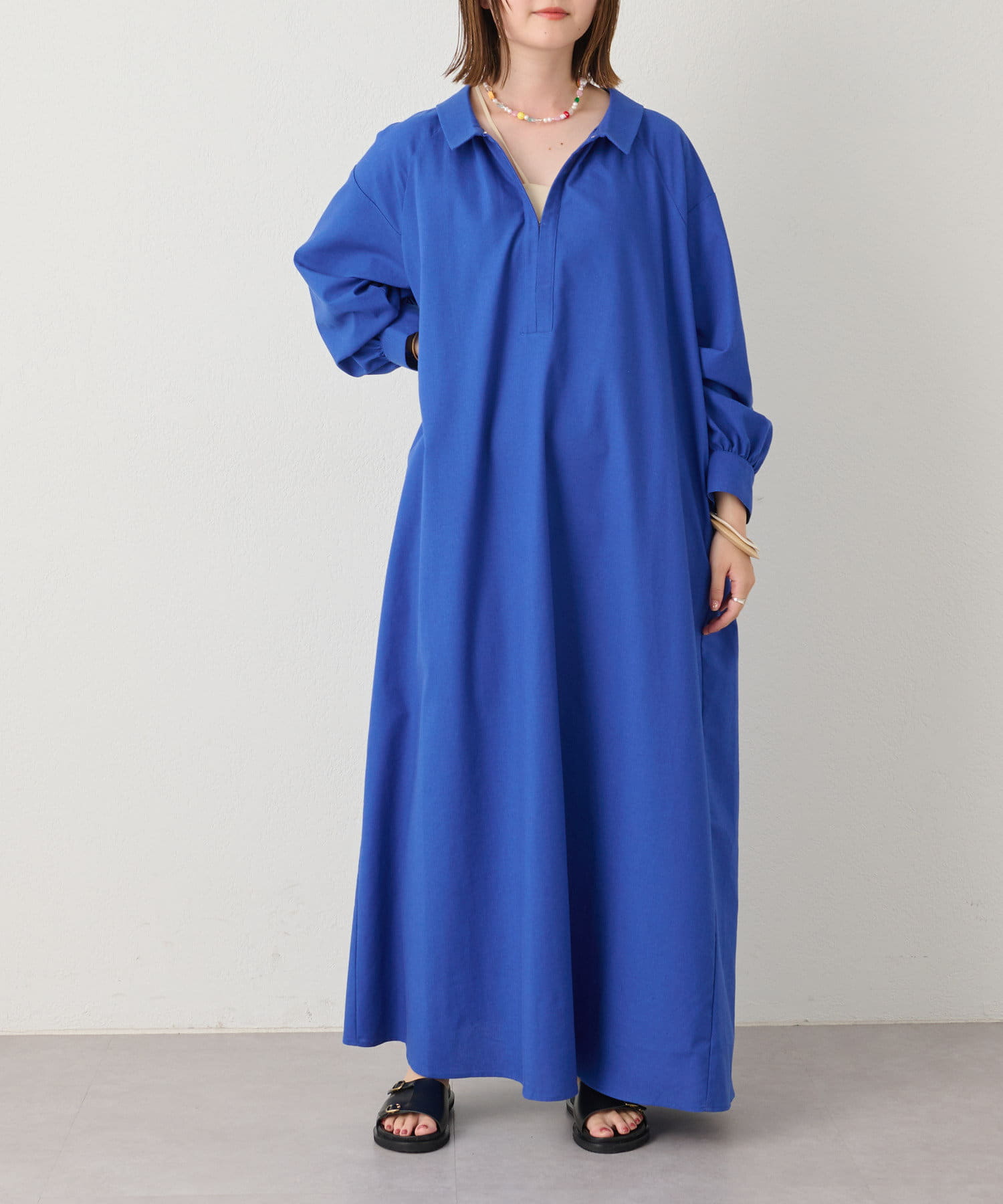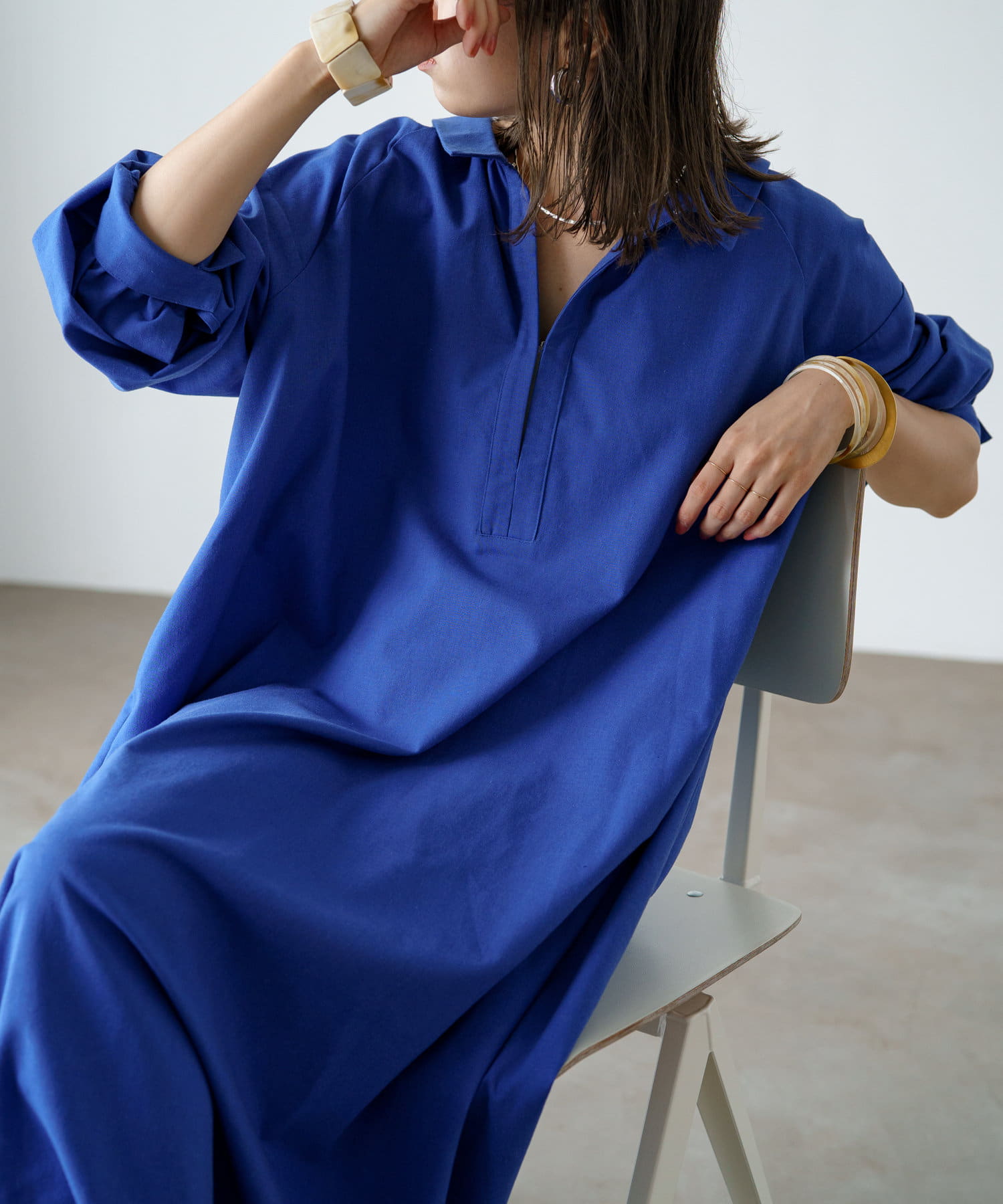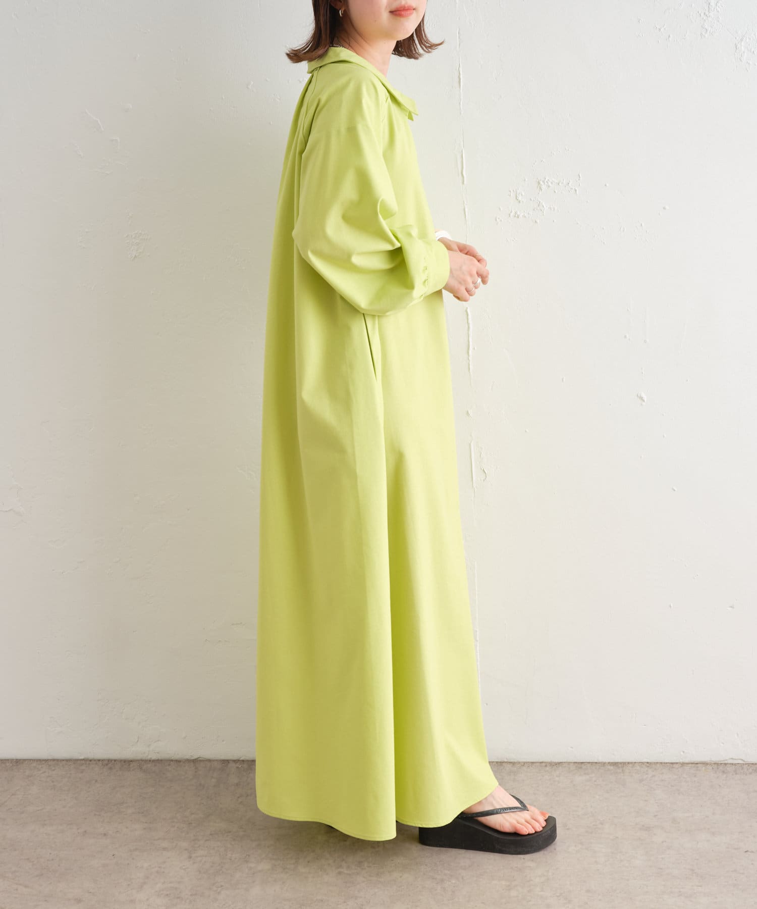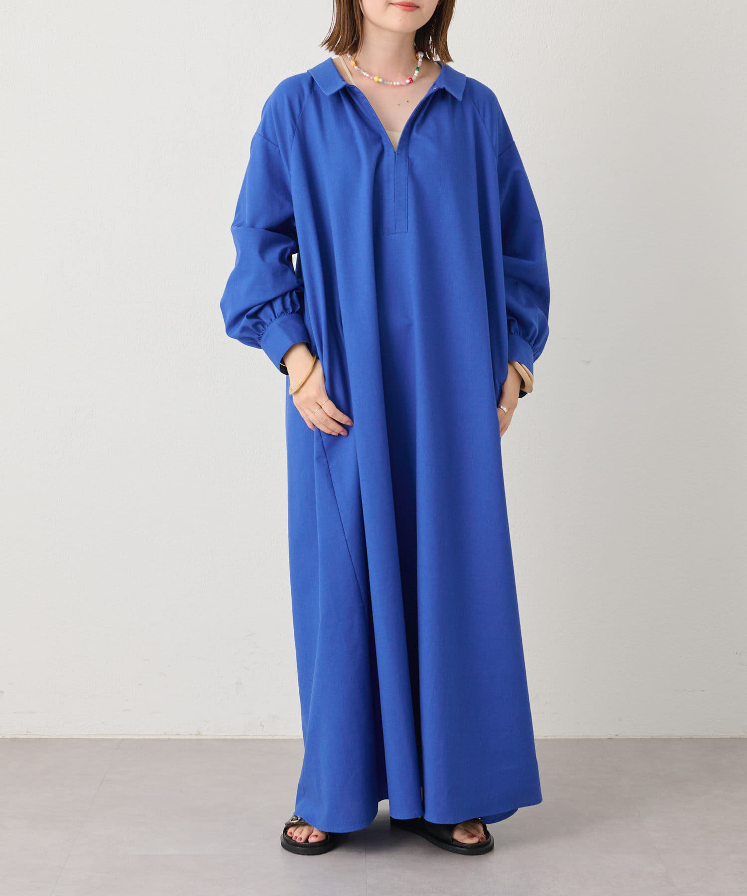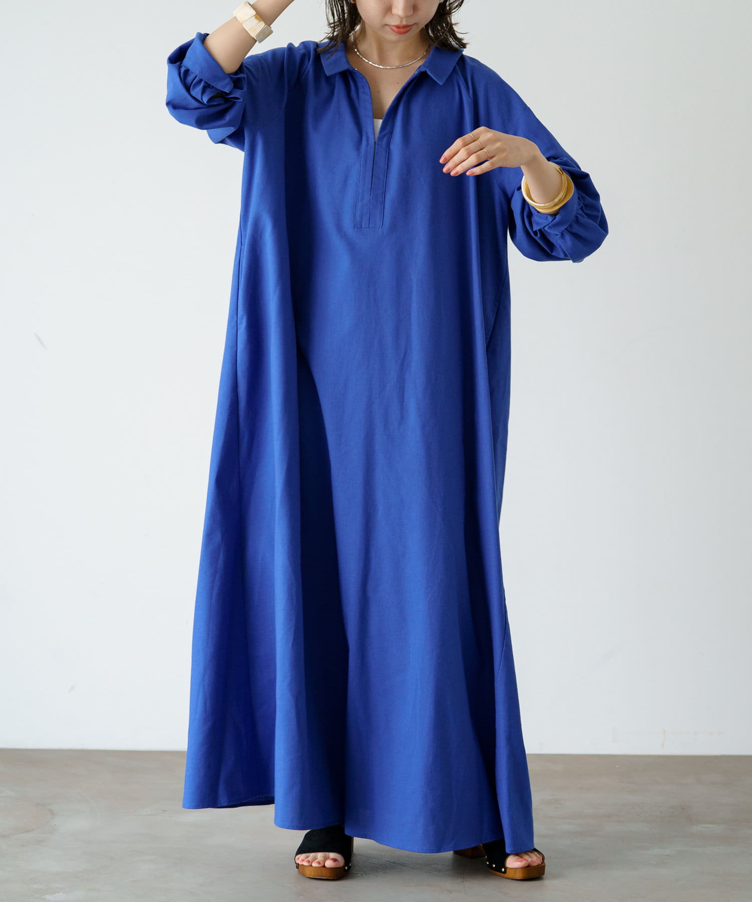 ・春夏らしいリネン素材を使用したナチュラルな風合いと、締め付けのないゆったりとしたシルエットがリラックス感のあるマキシ丈のワンピースです。