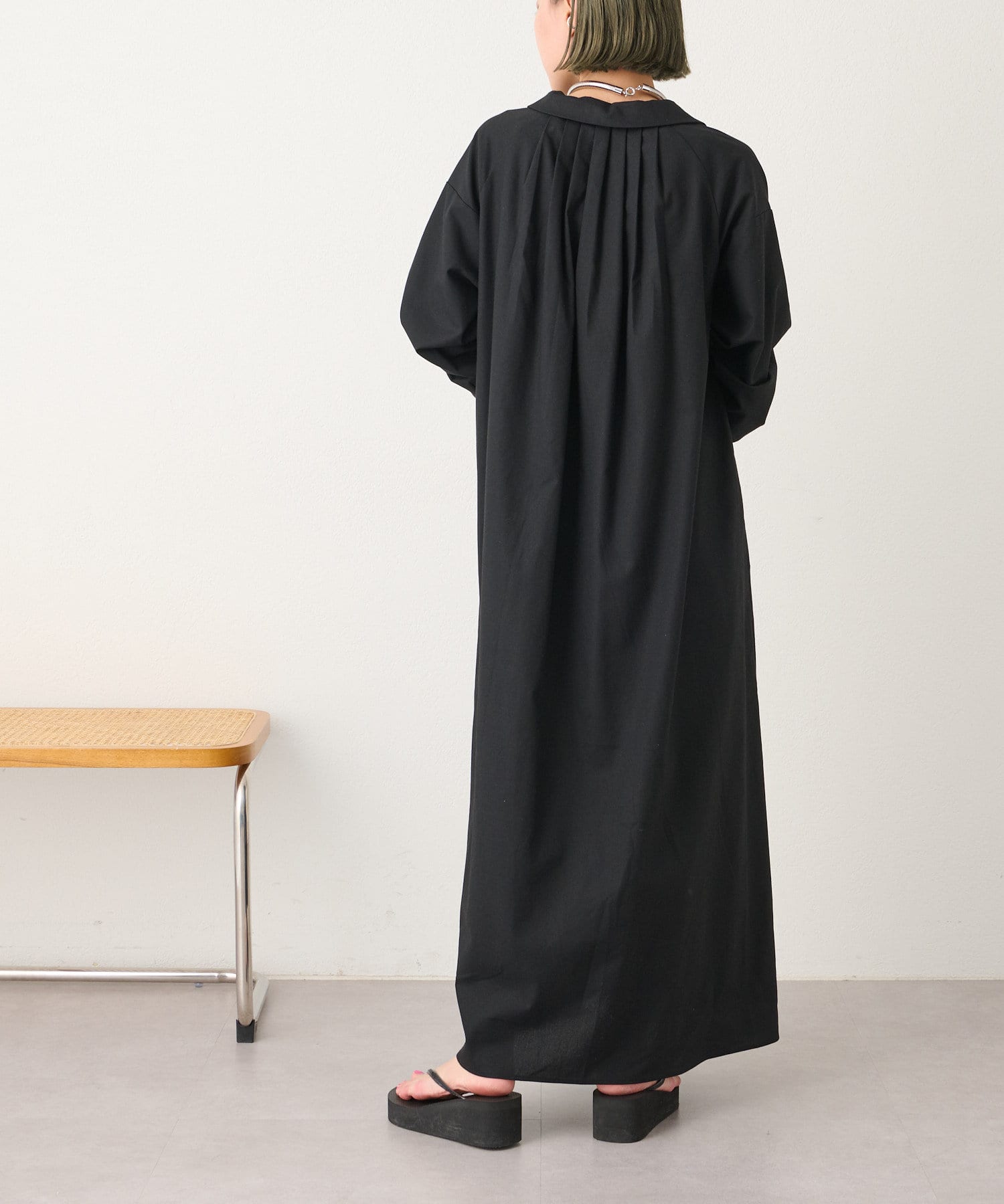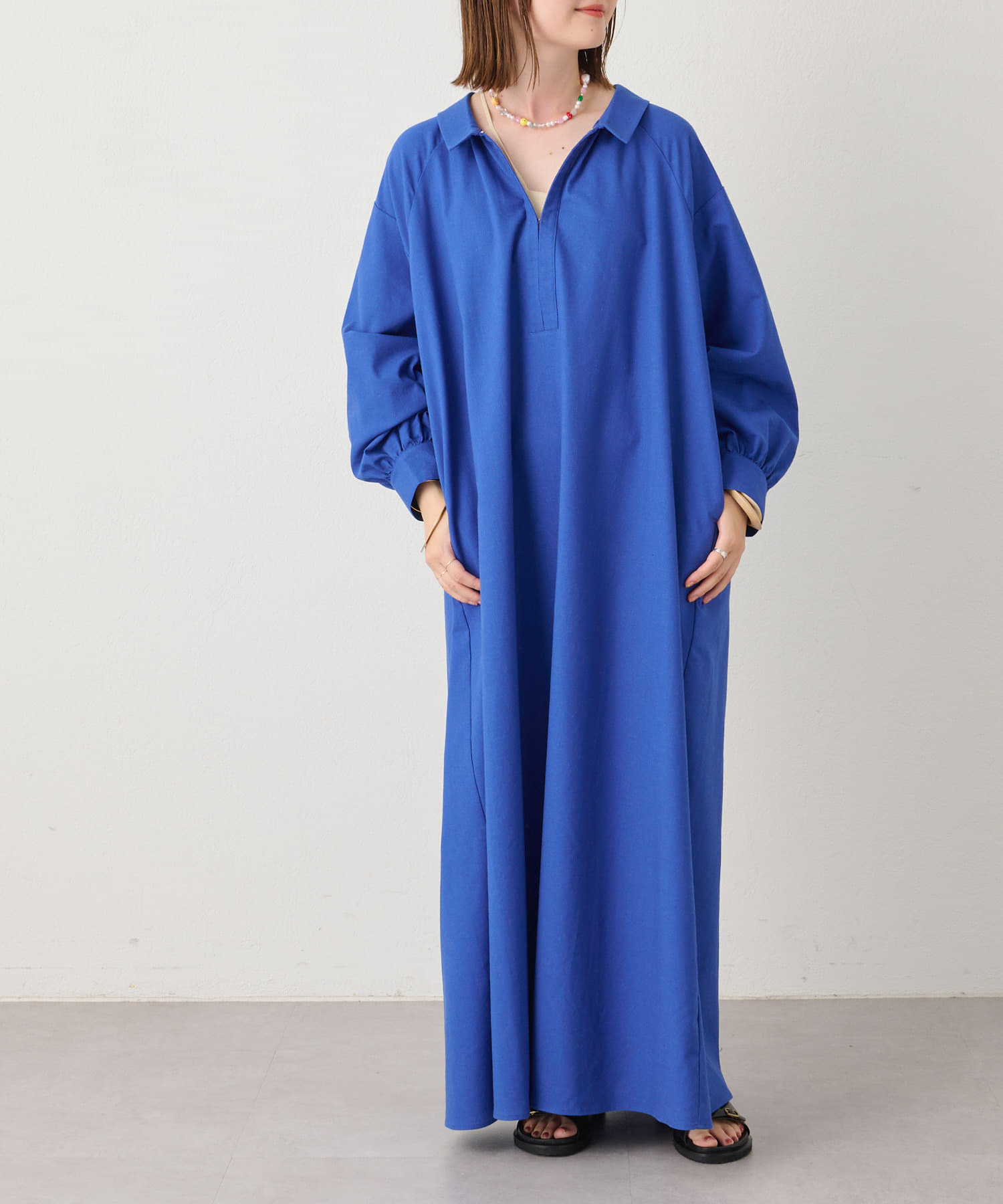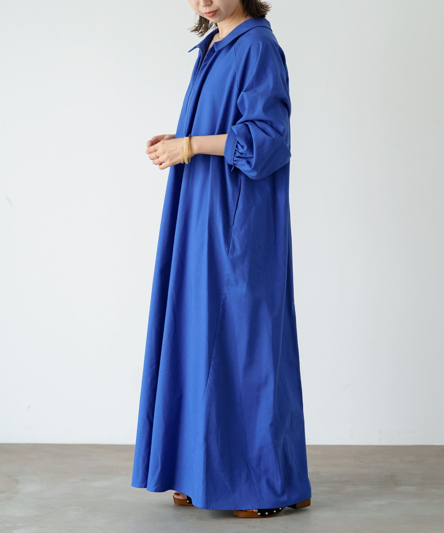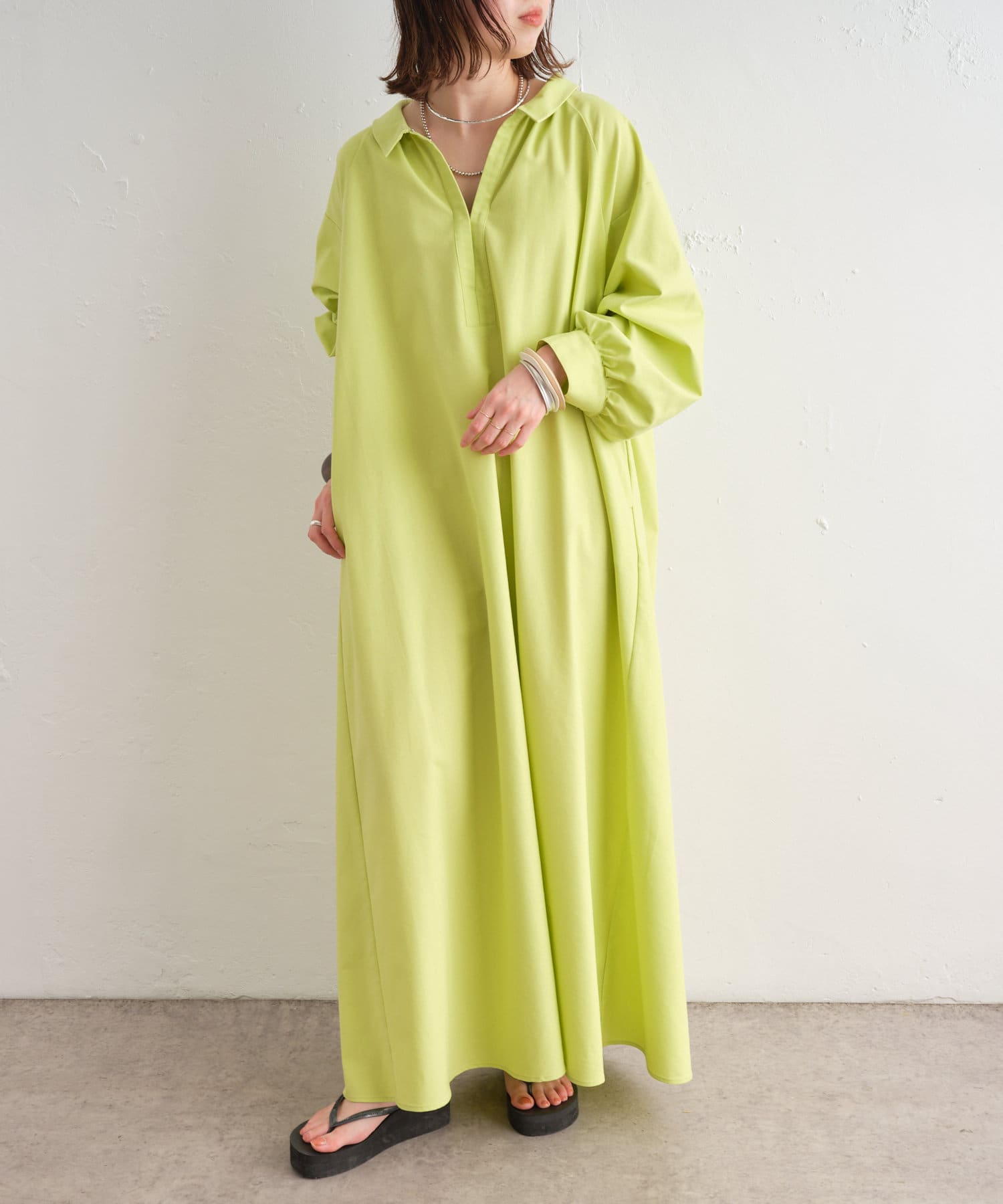 ・春夏らしいリネン素材を使用したナチュラルな風合いと、締め付けのないゆったりとしたシルエットがリラックス感のあるマキシ丈のワンピースです。