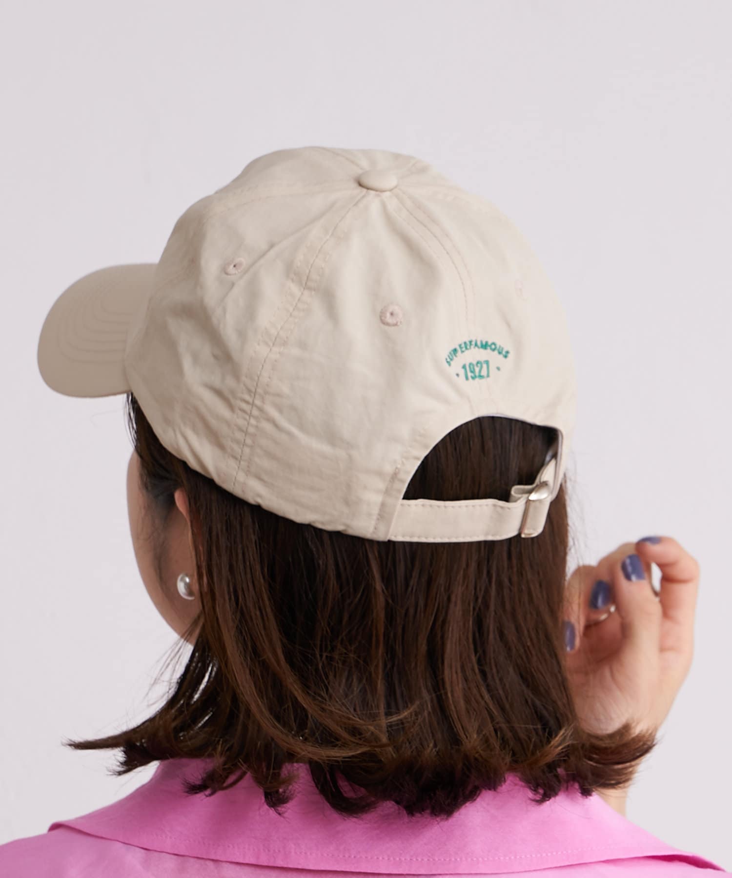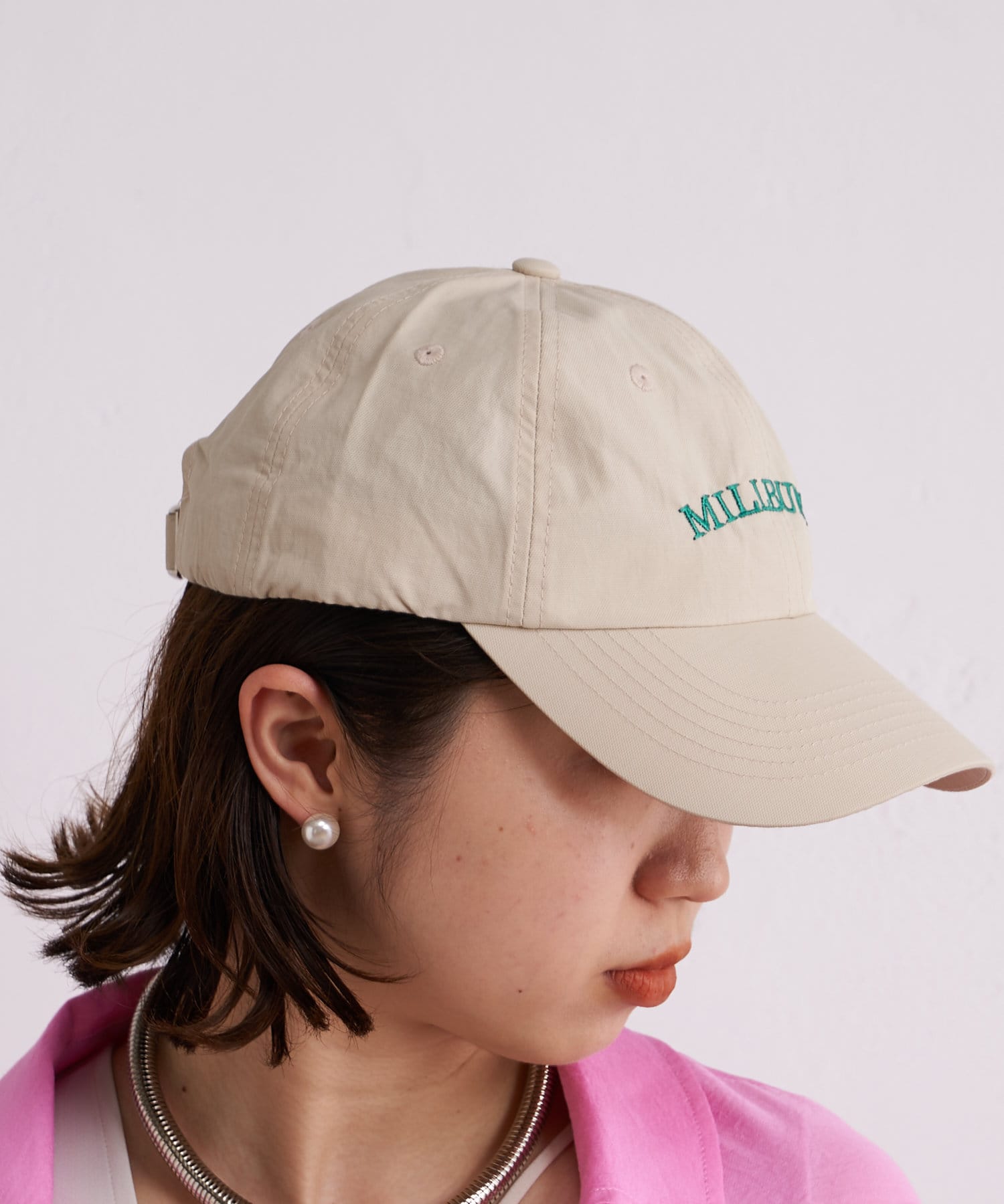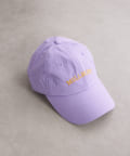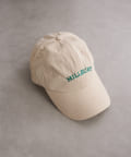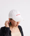 刺繍のロゴがスタイリングのポイントになるカラーキャップ