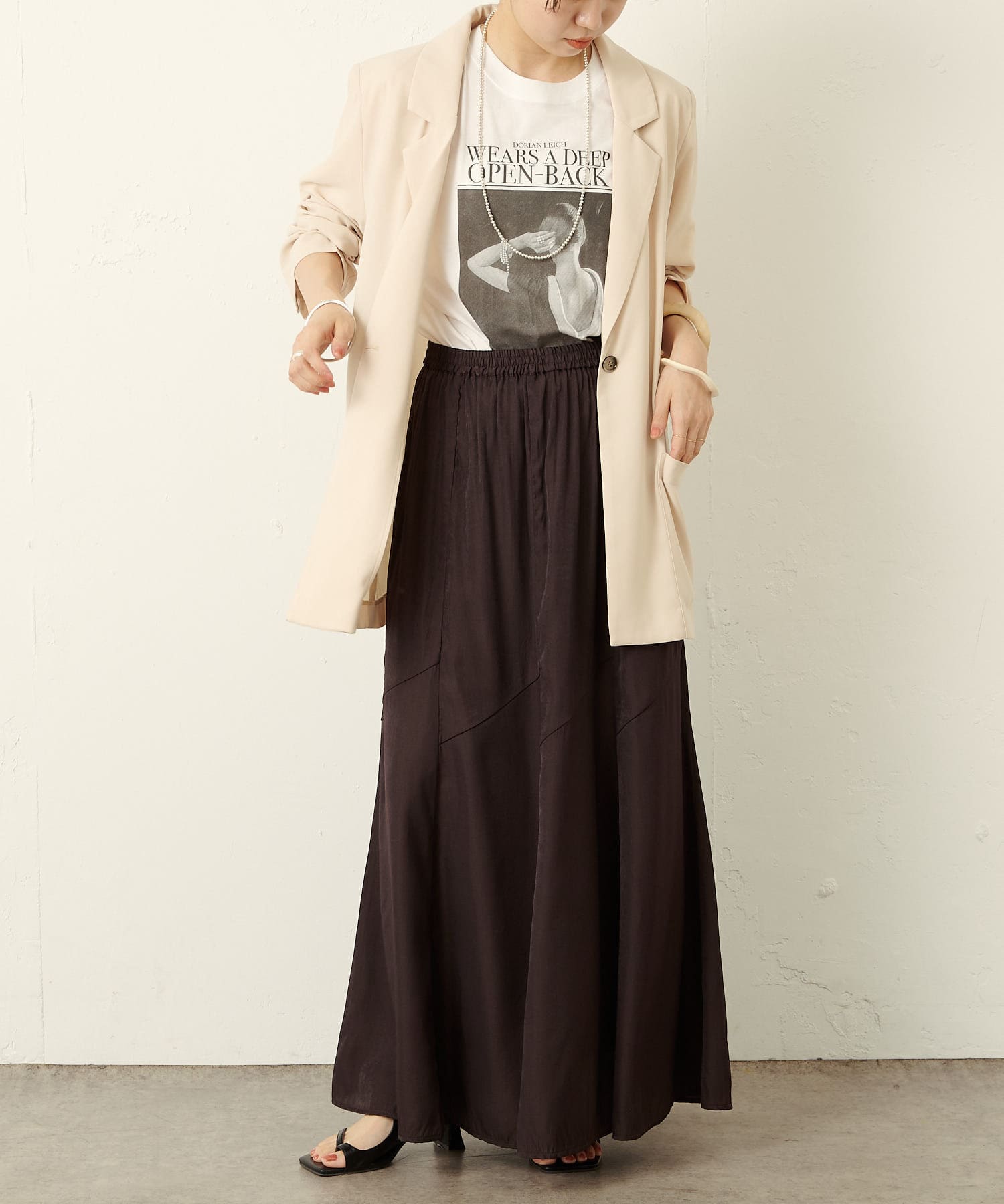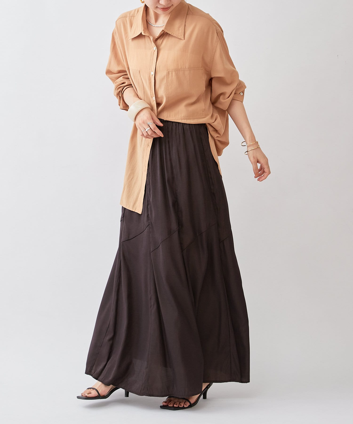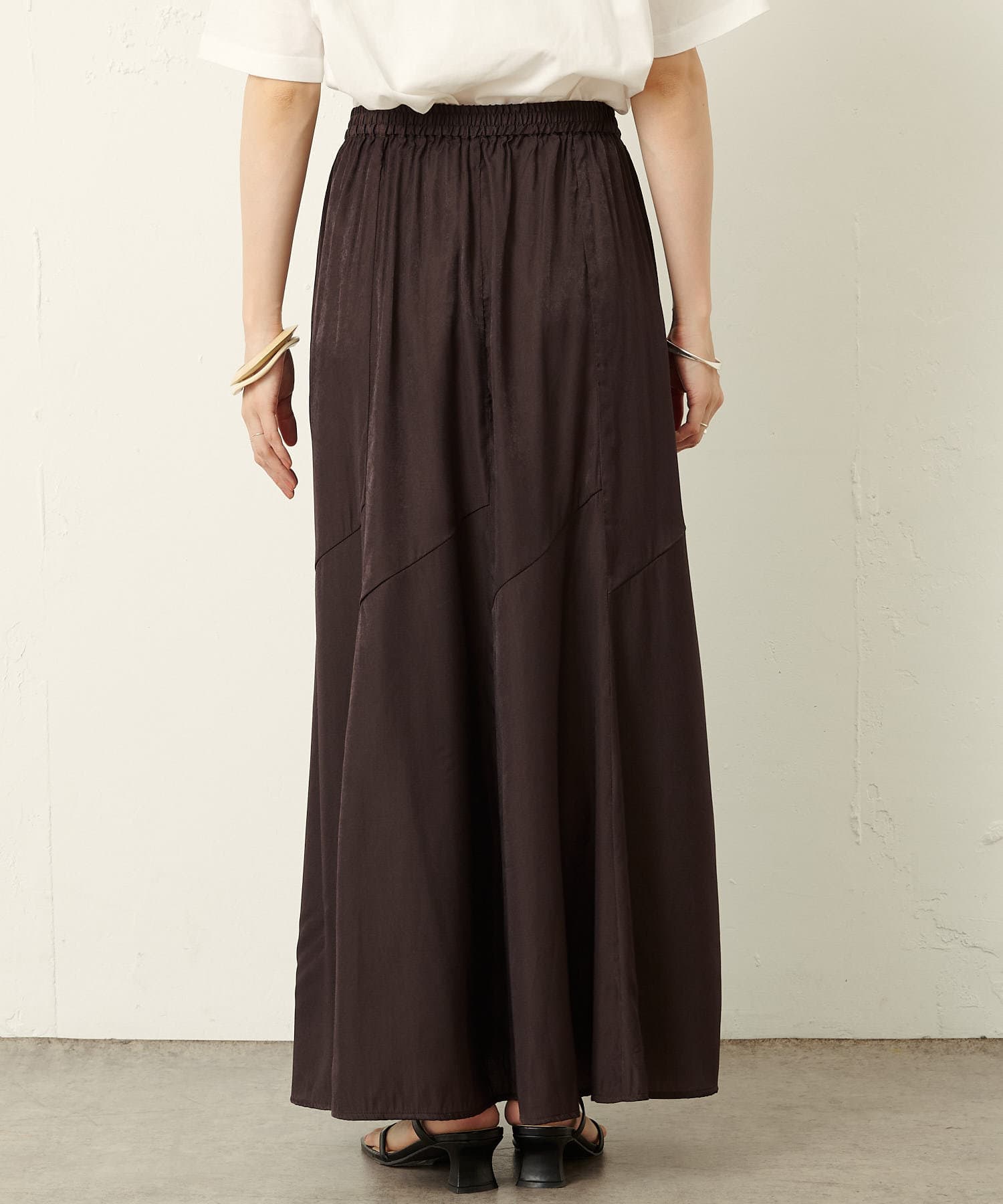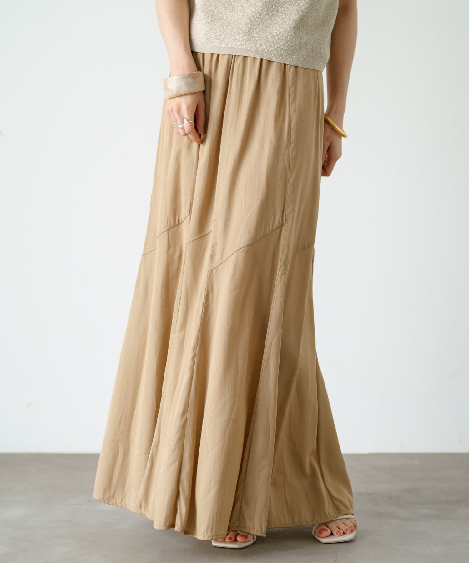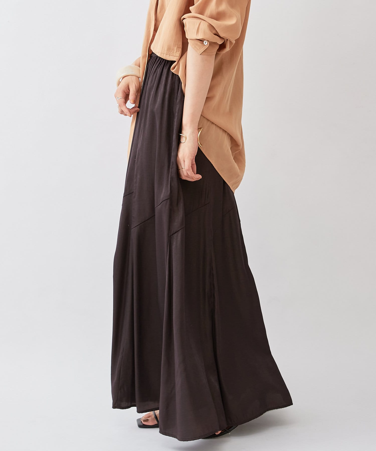 さりげない光沢感が女性らしく華やかに揺れるロングスカート