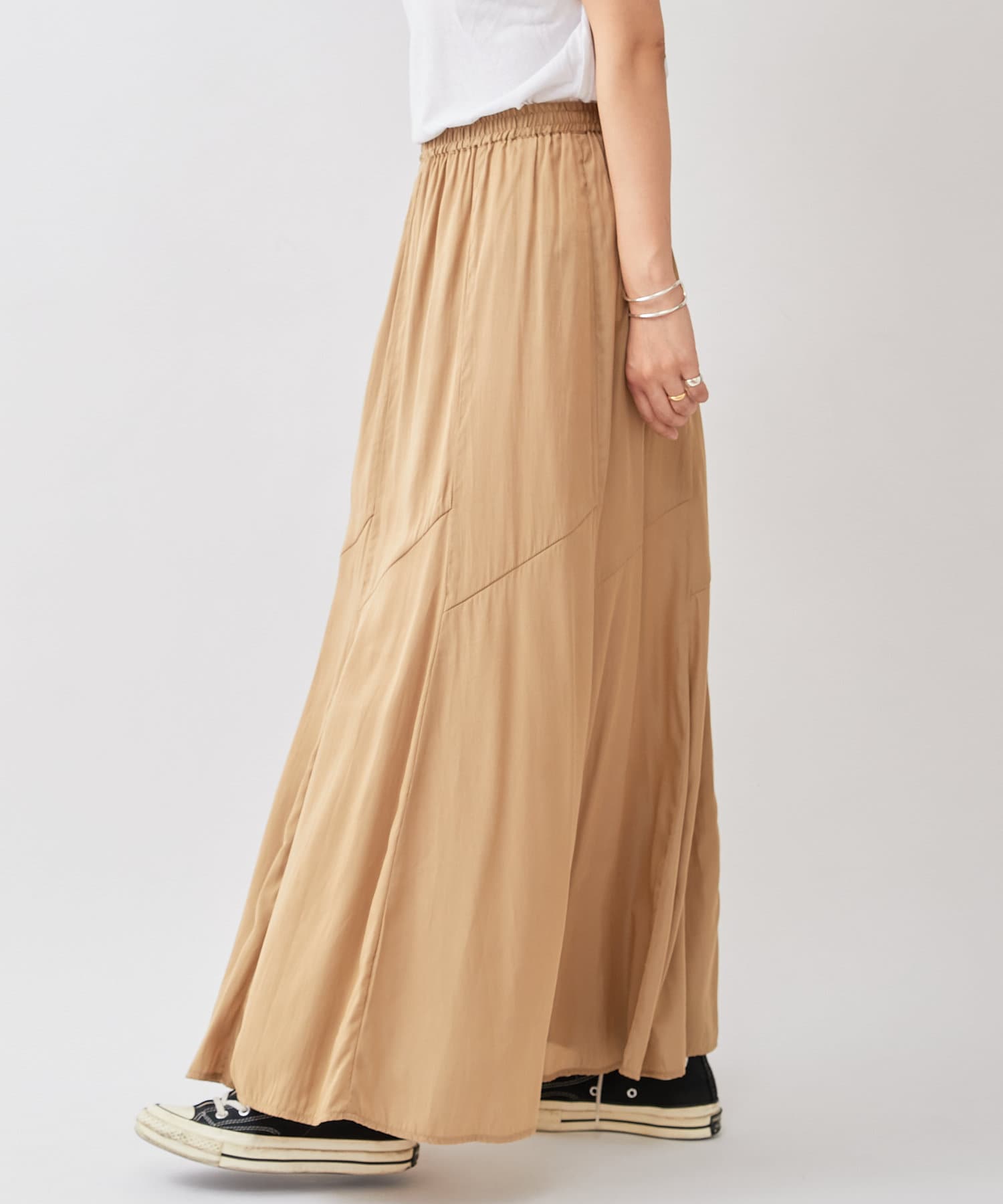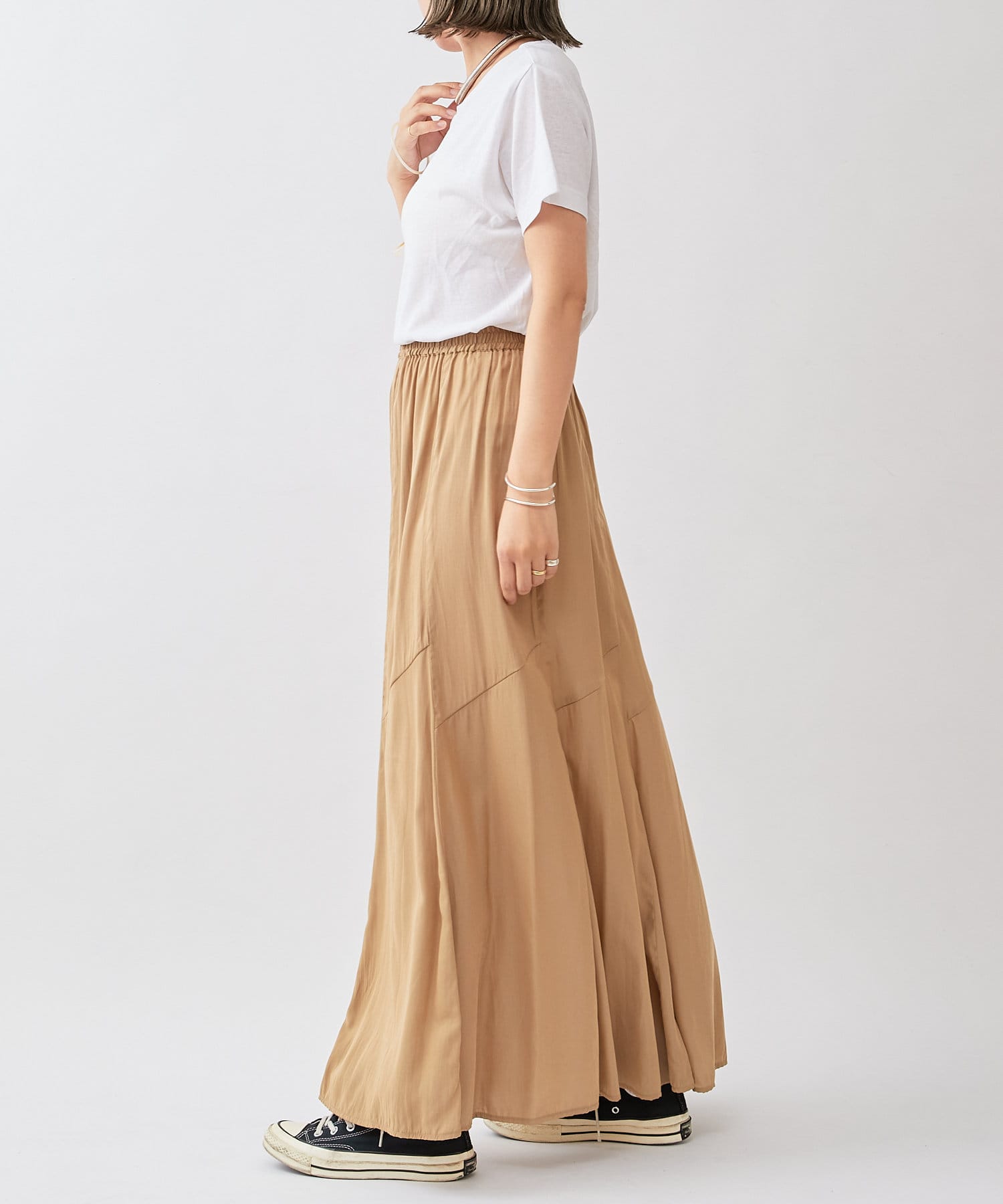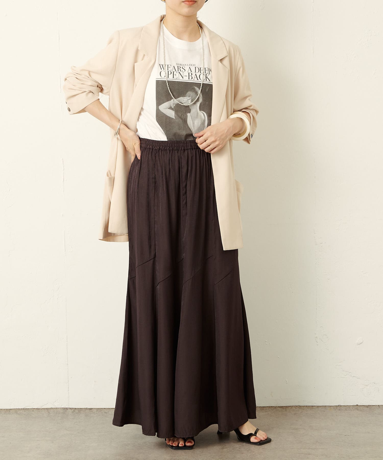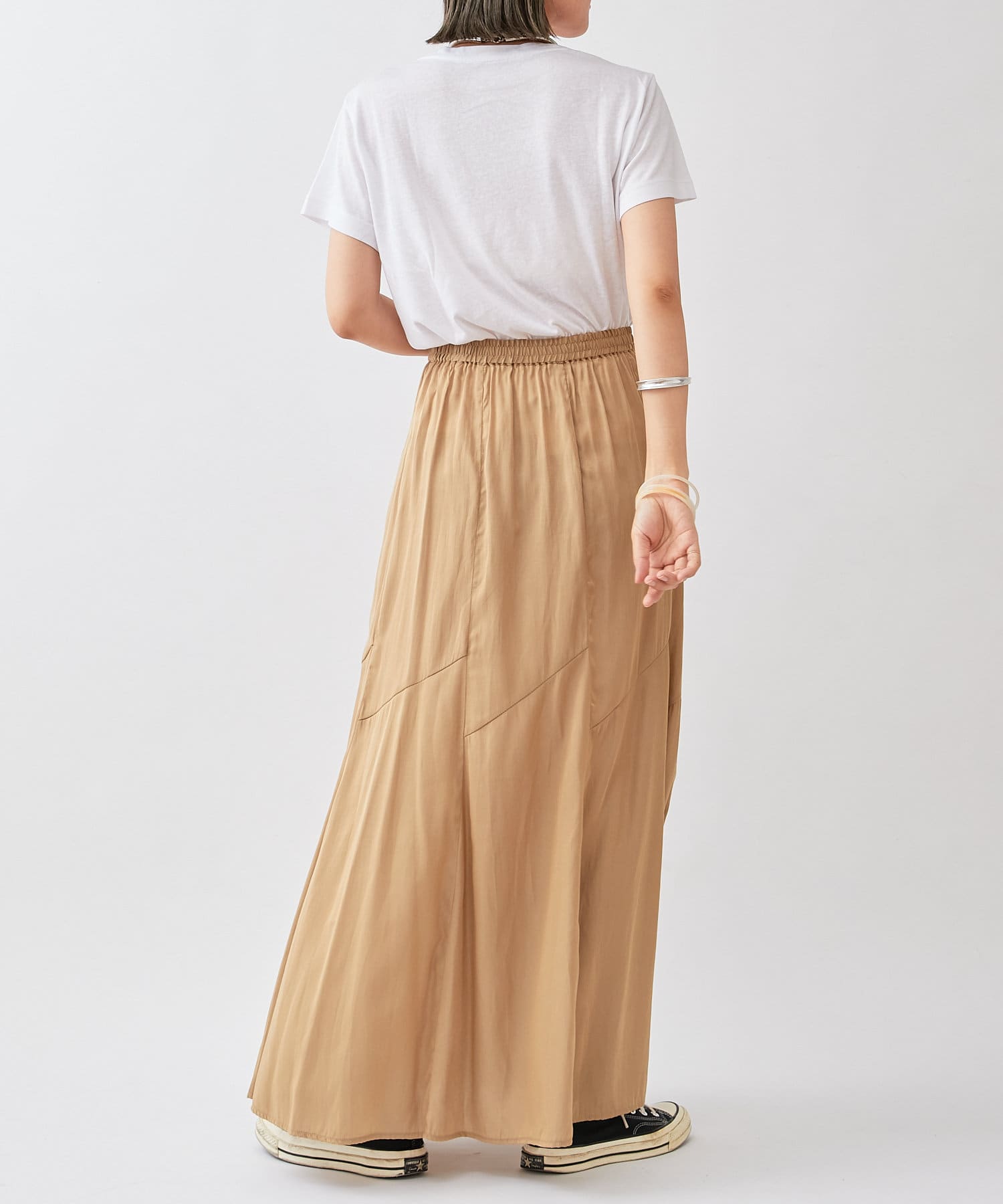 さりげない光沢感が女性らしく華やかに揺れるロングスカート