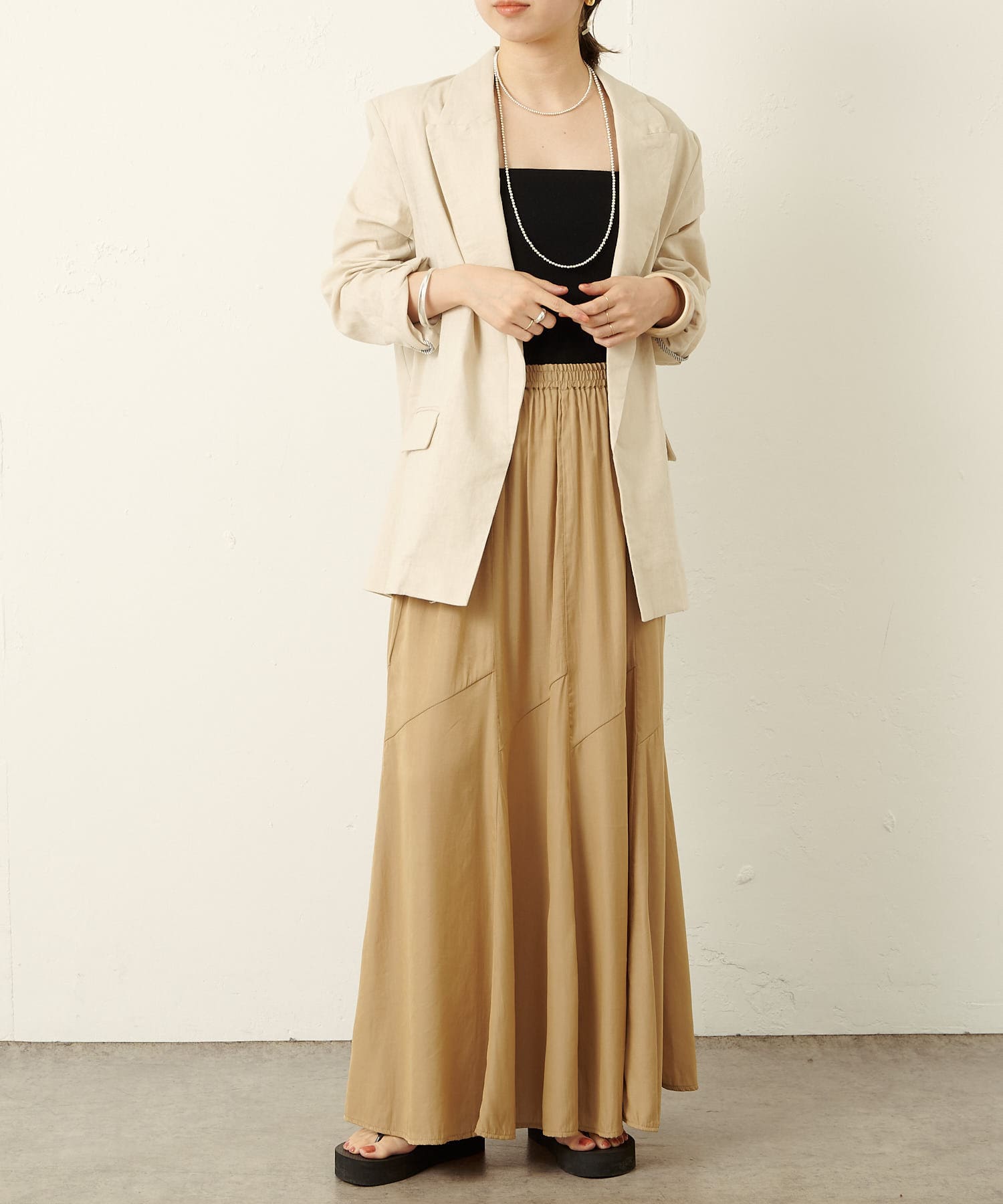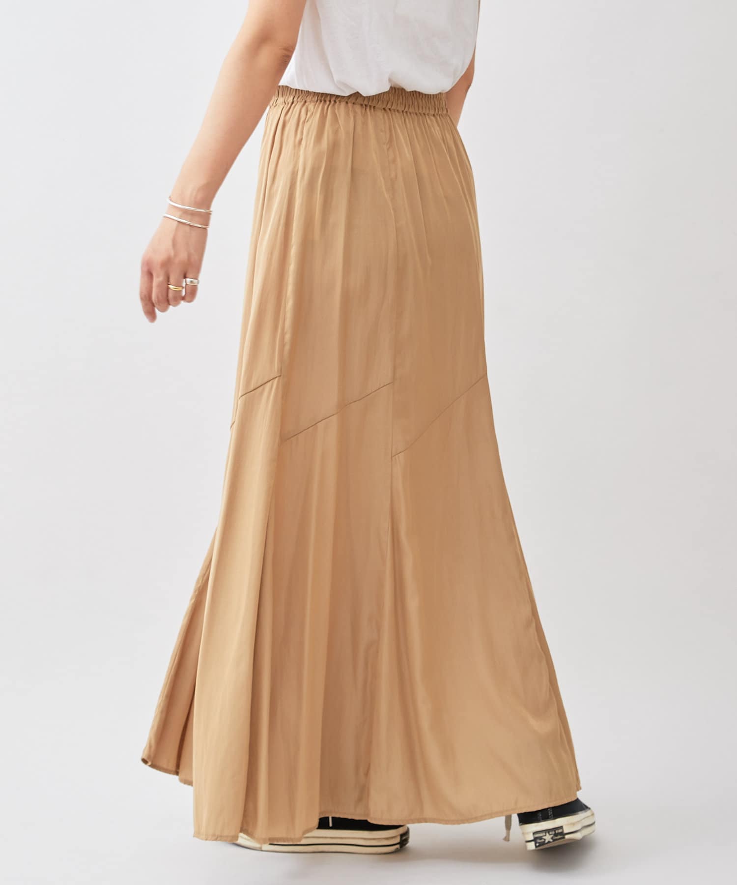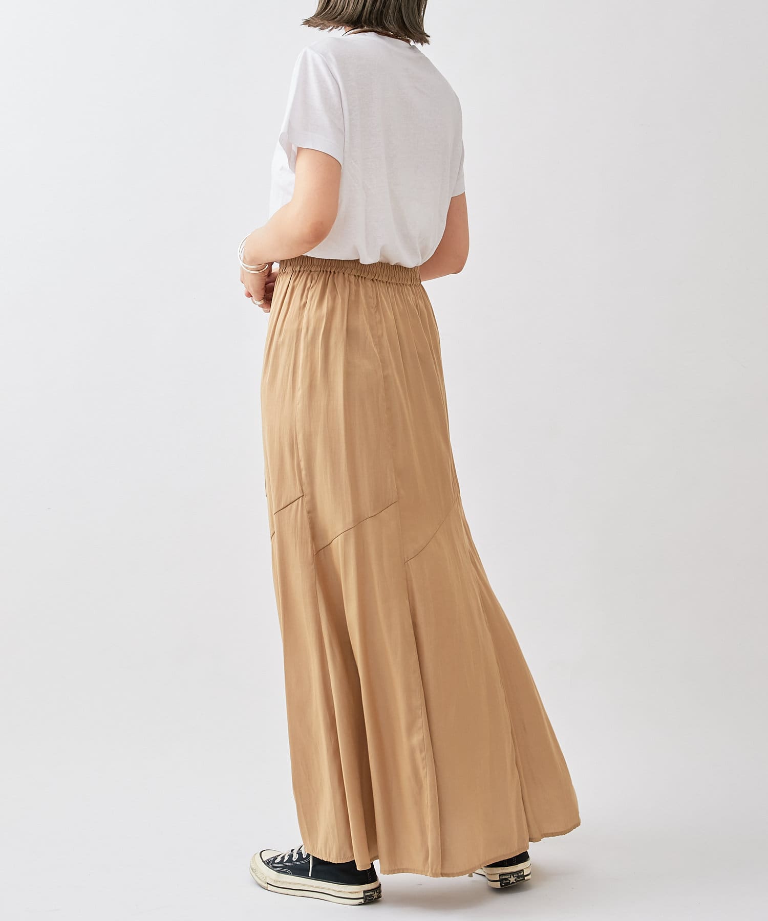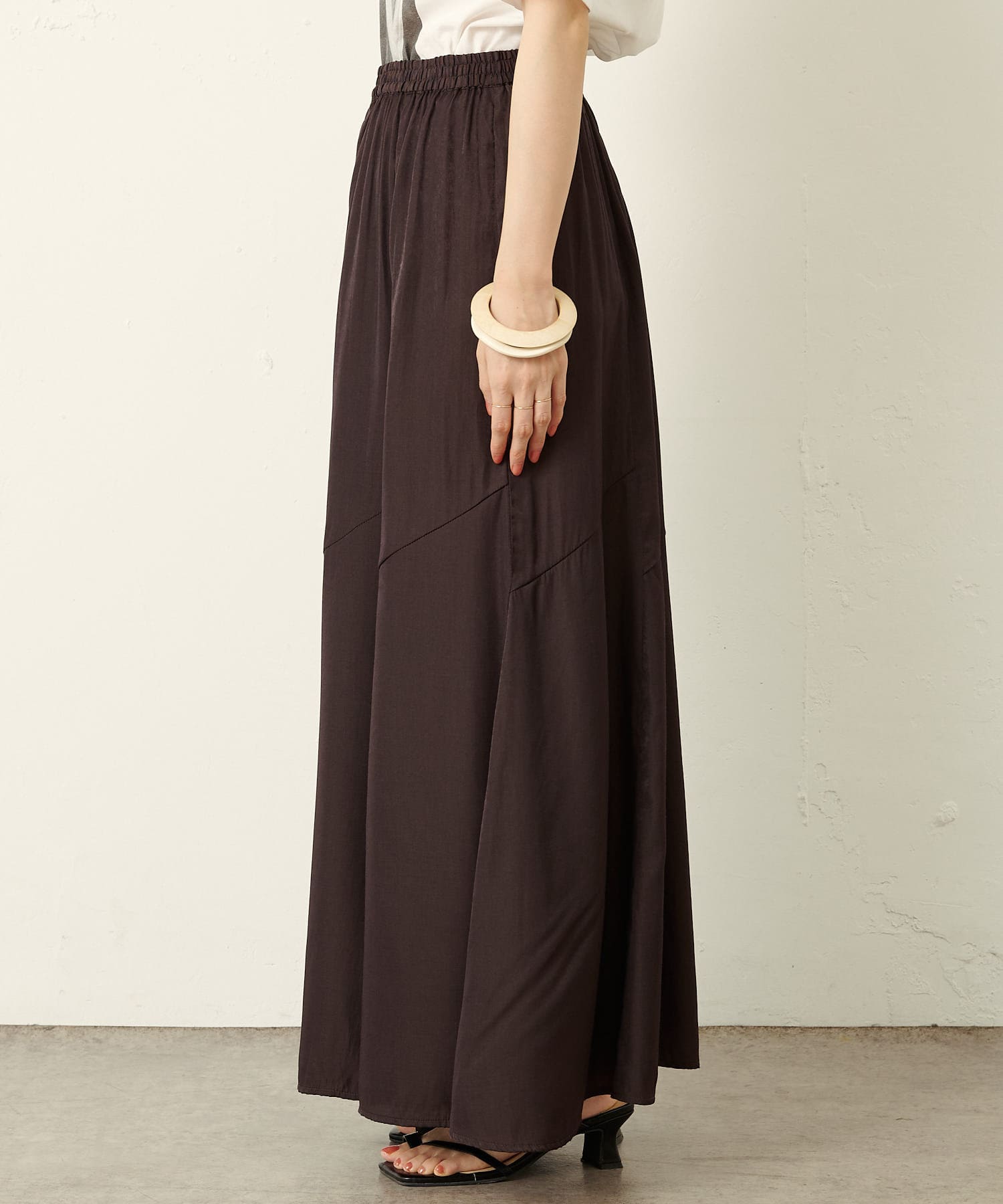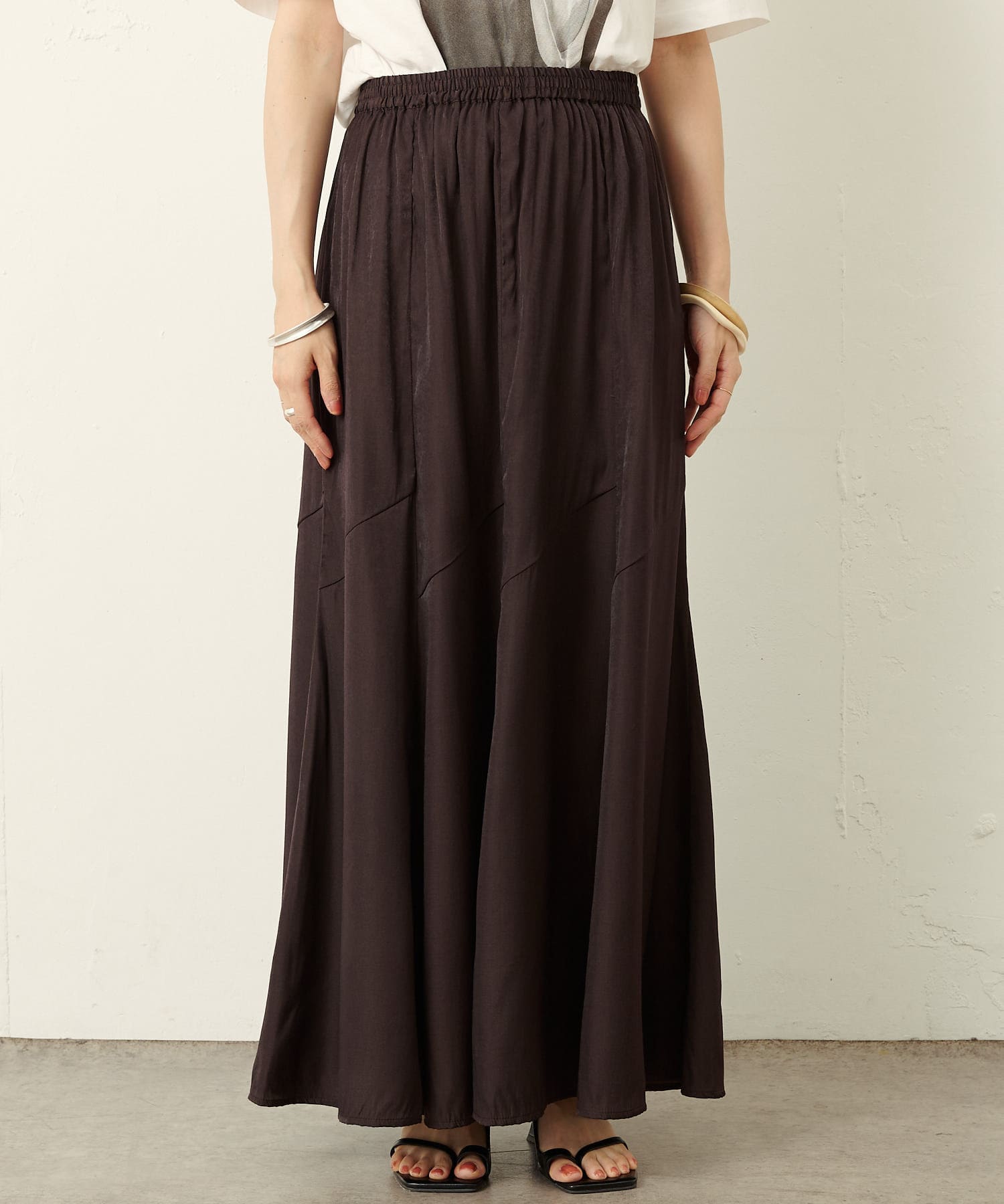 さりげない光沢感が女性らしく華やかに揺れるロングスカート