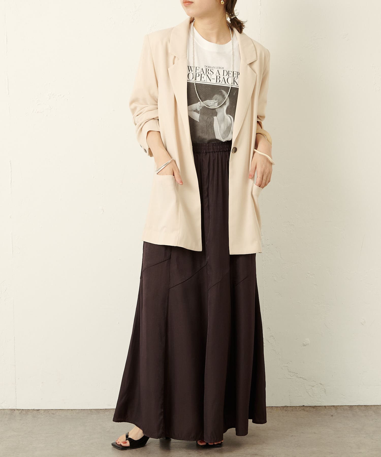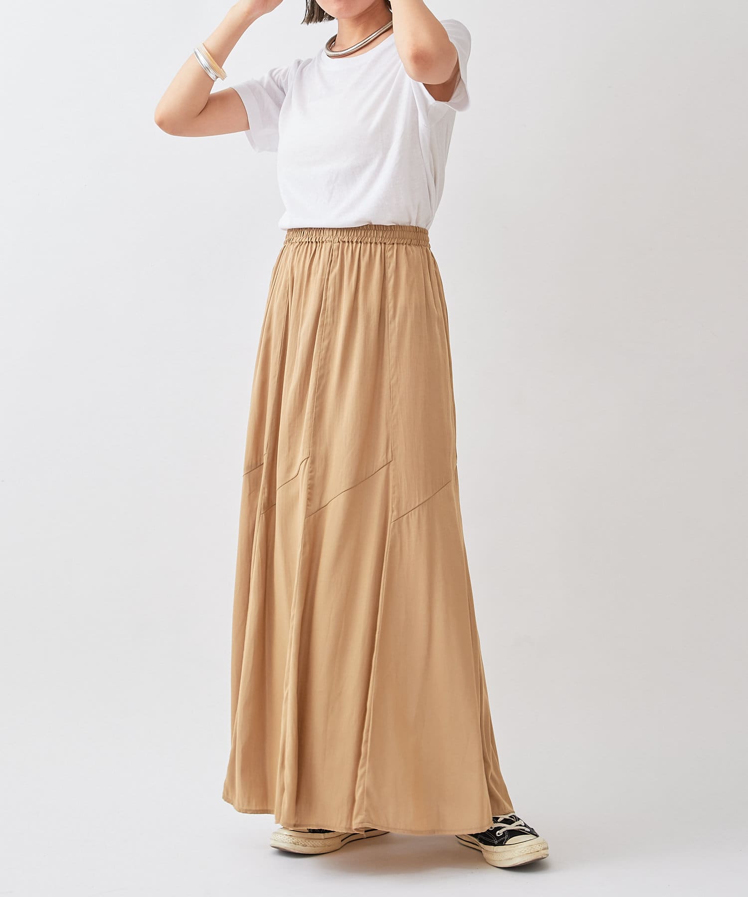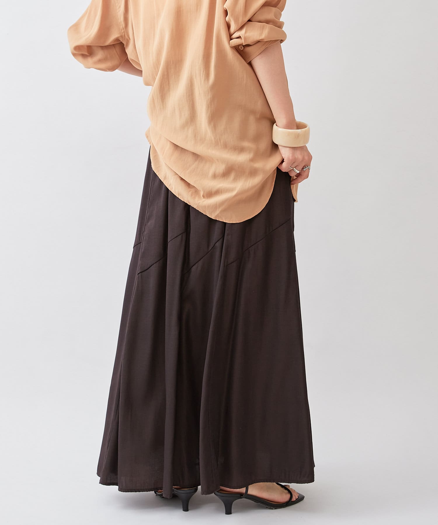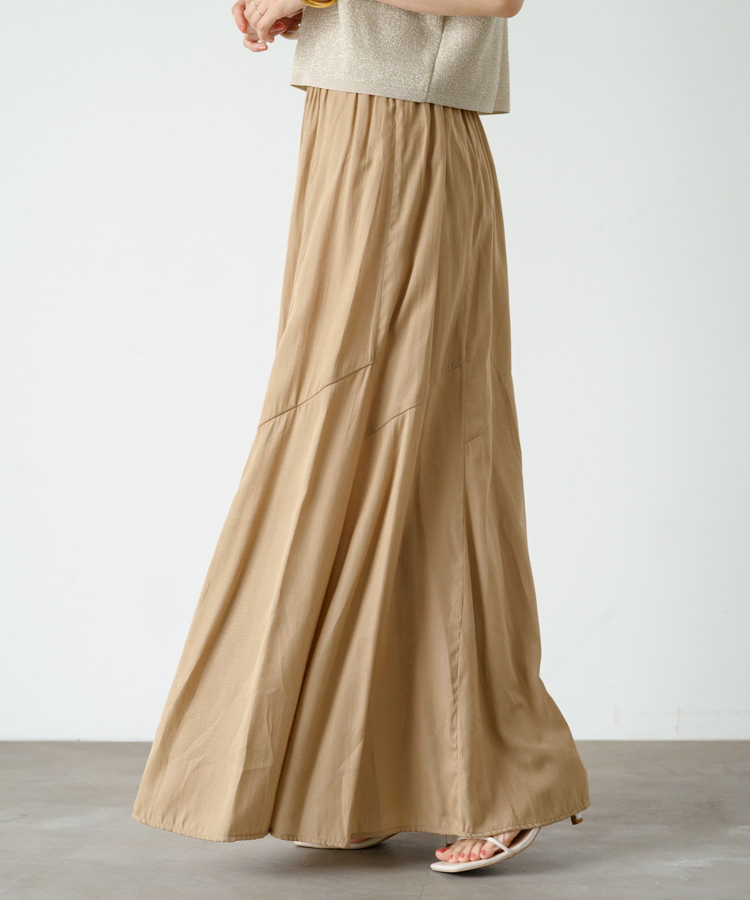 さりげない光沢感が女性らしく華やかに揺れるロングスカート