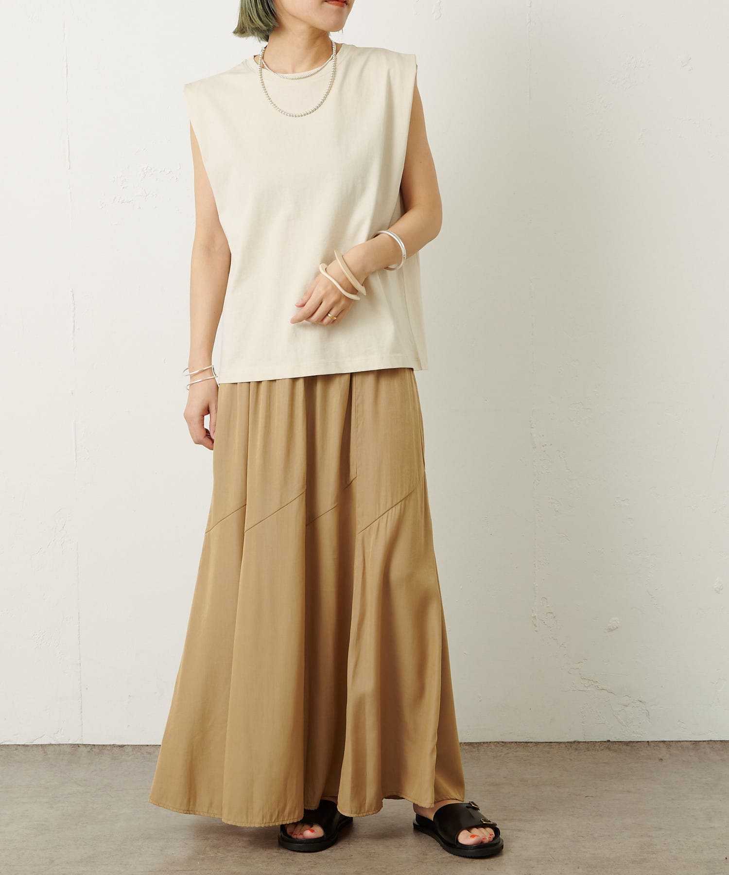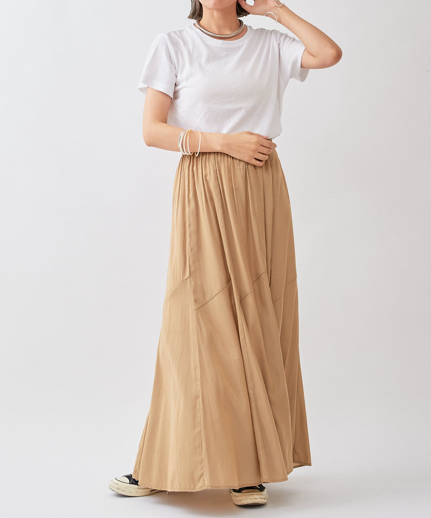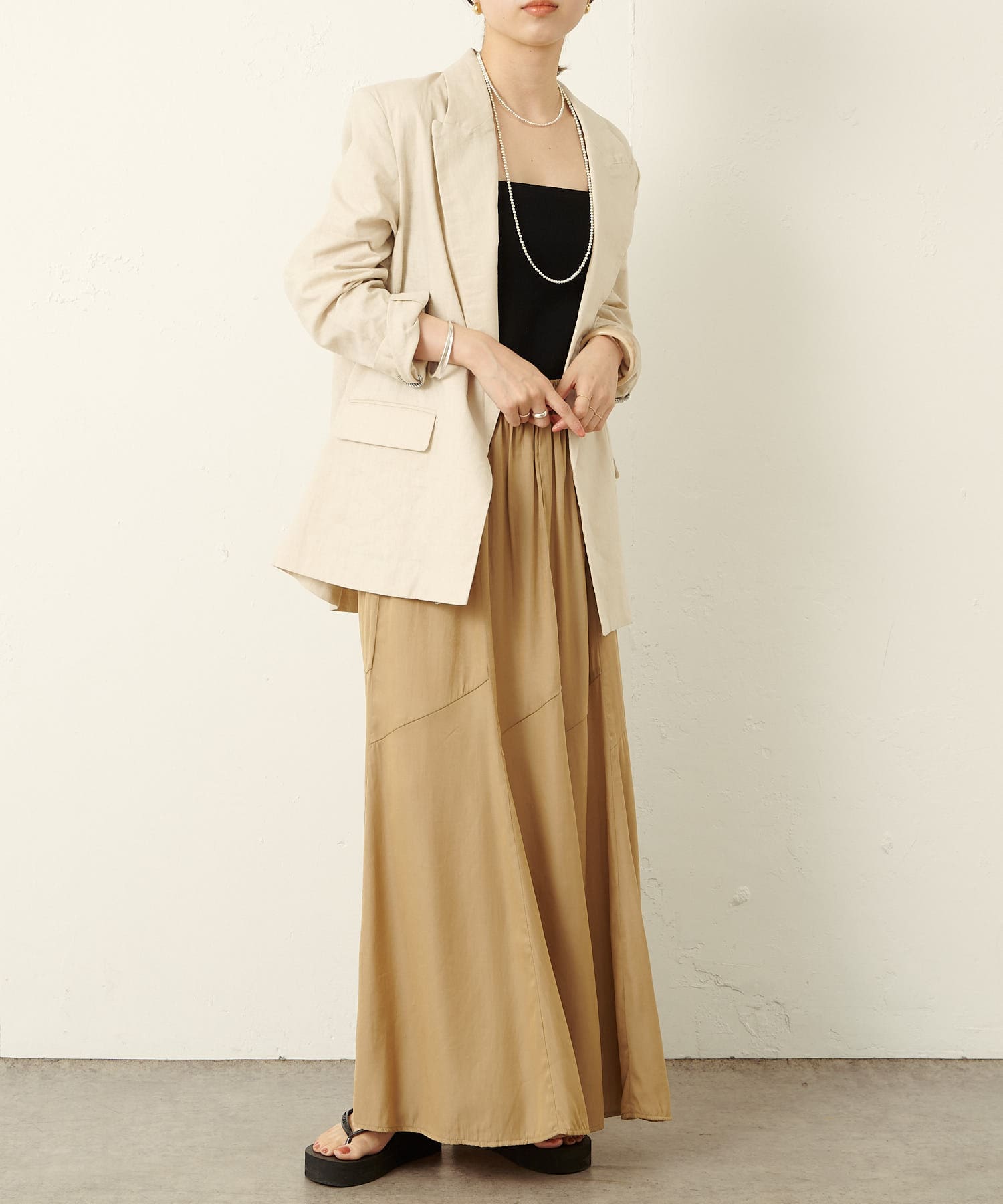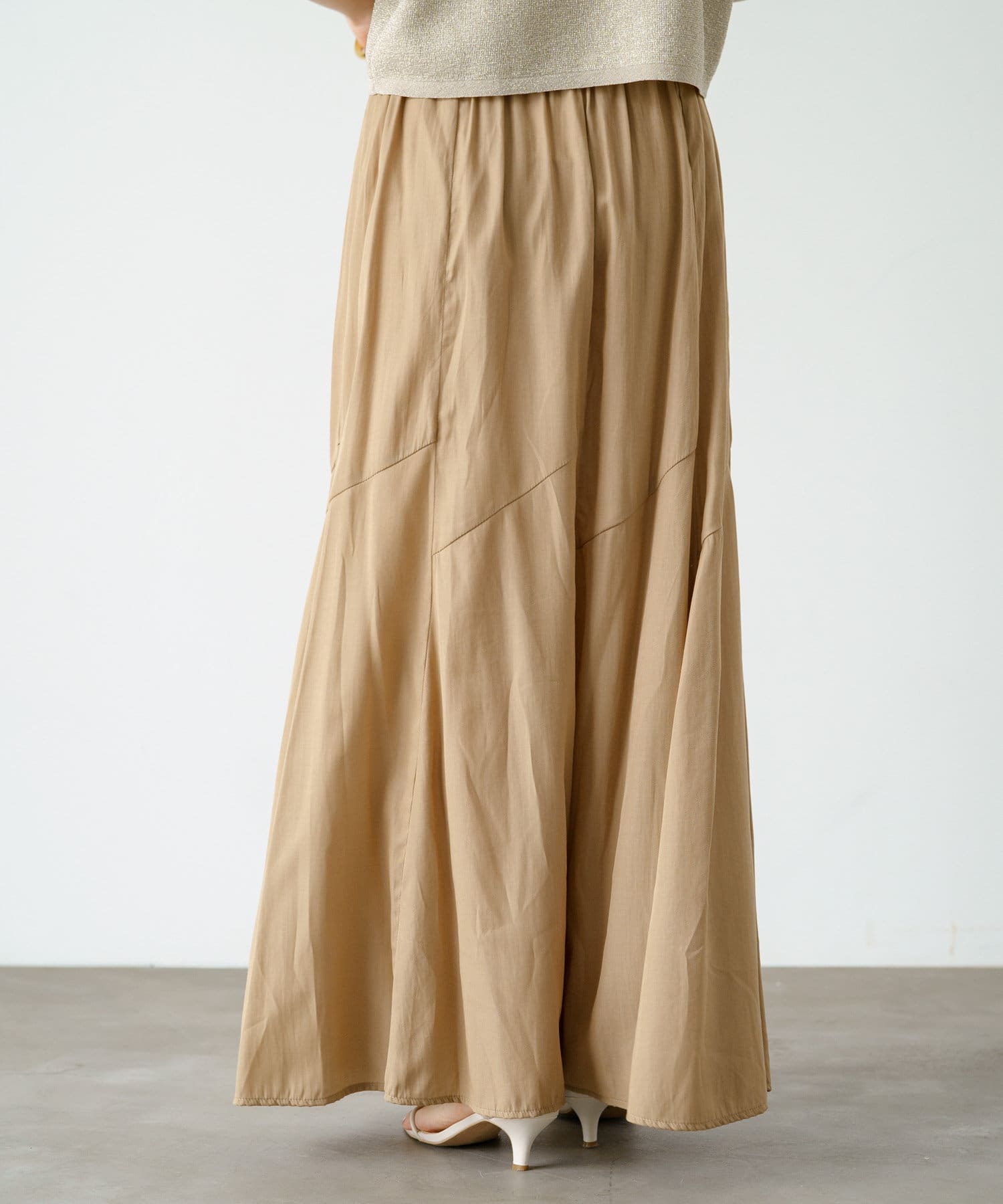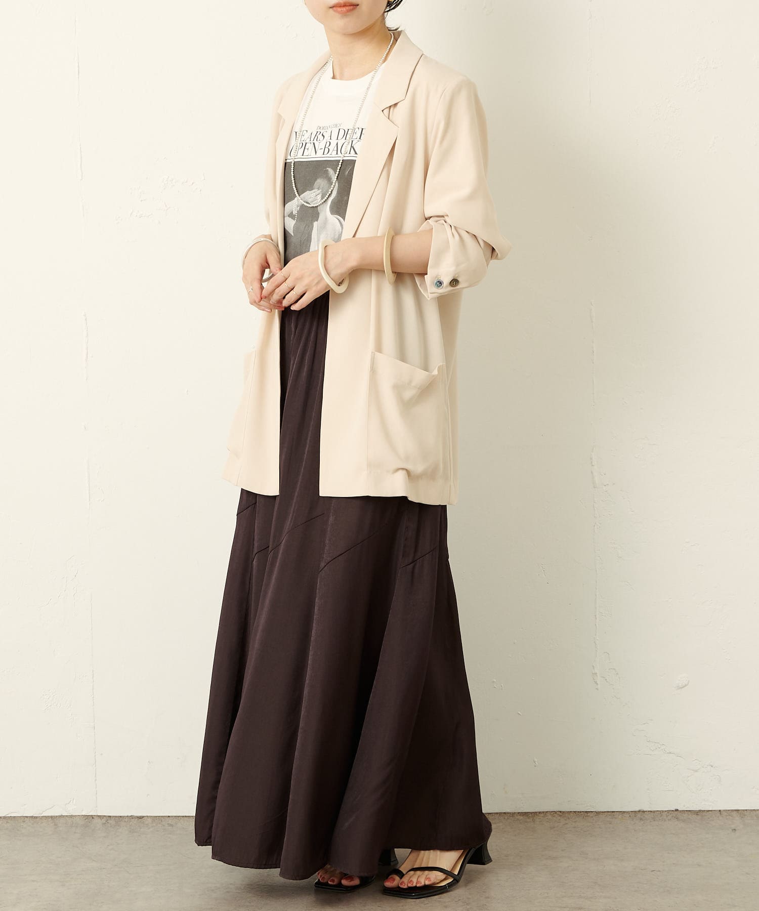 さりげない光沢感が女性らしく華やかに揺れるロングスカート