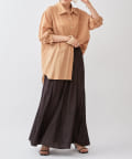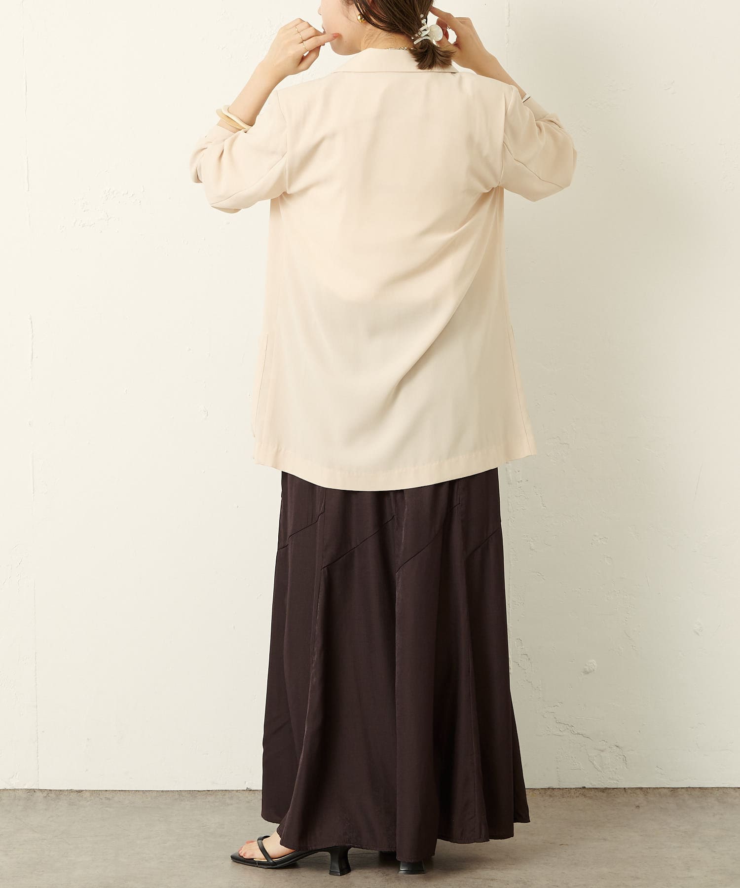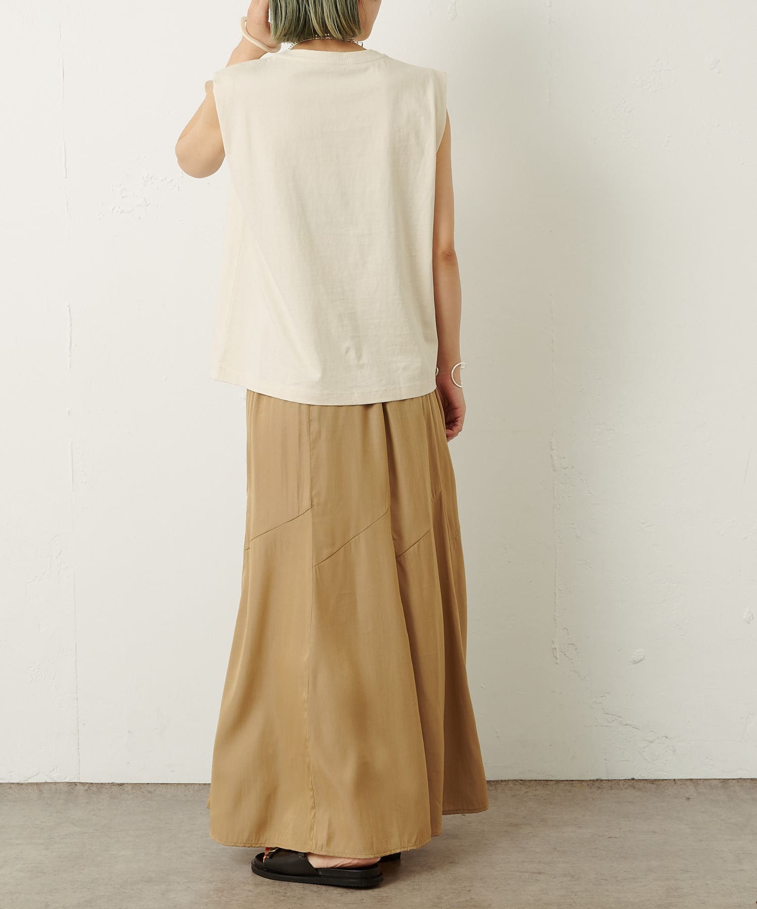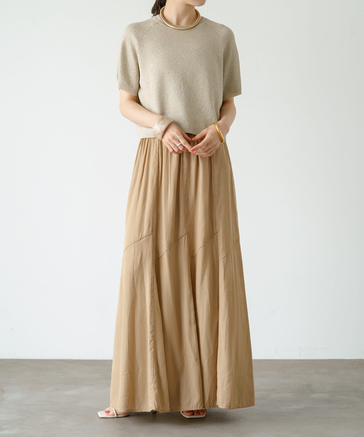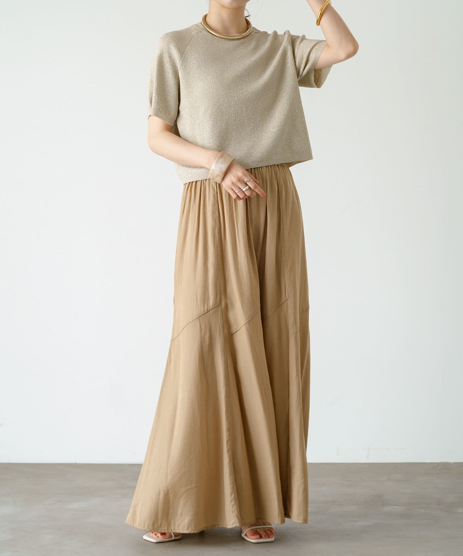 さりげない光沢感が女性らしく華やかに揺れるロングスカート