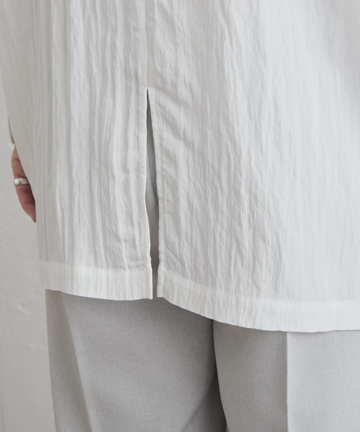 ・ノーカラーデザインが首回りをすっきりと見せてくれて、アクセサリーや小物が映える一着。