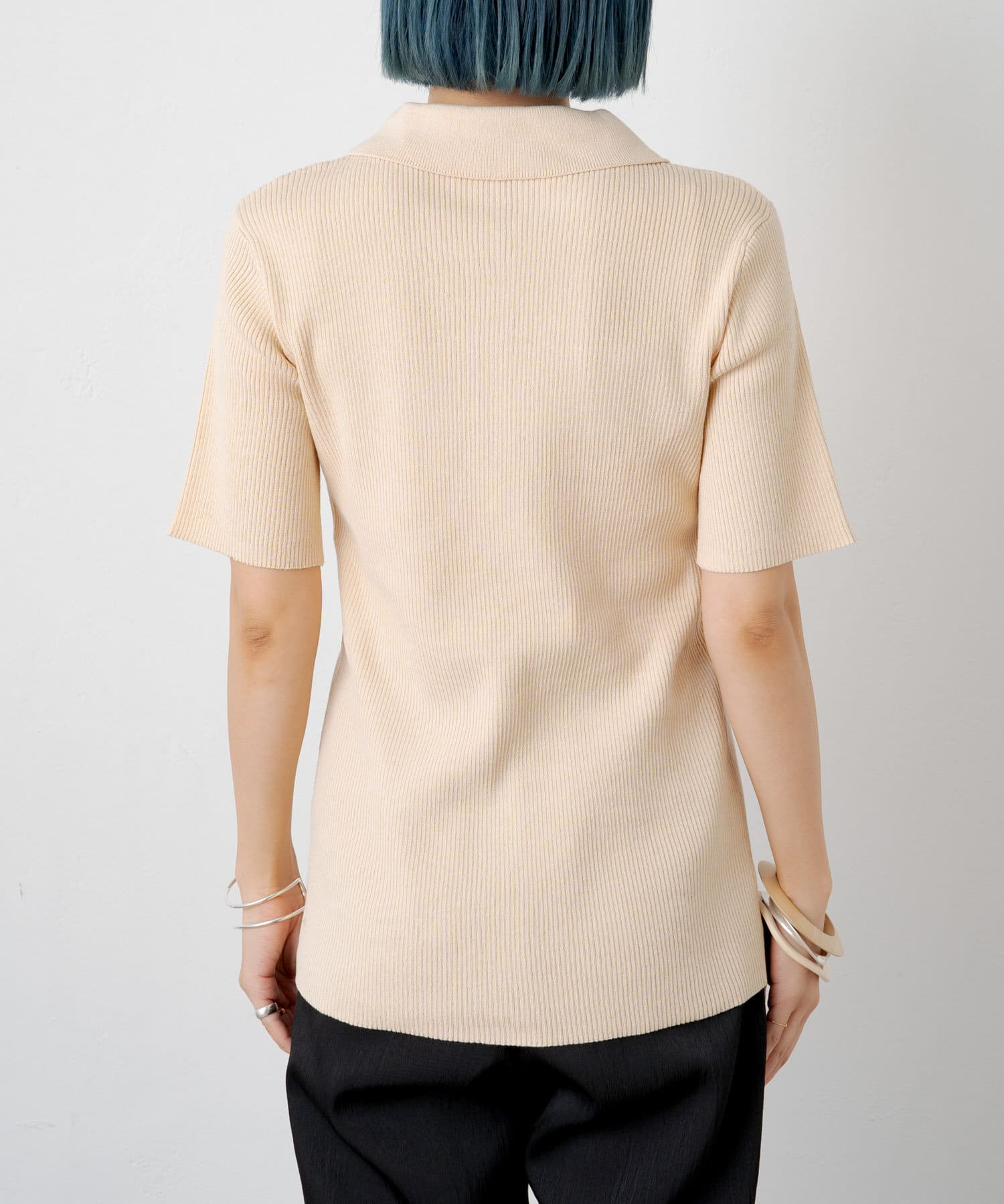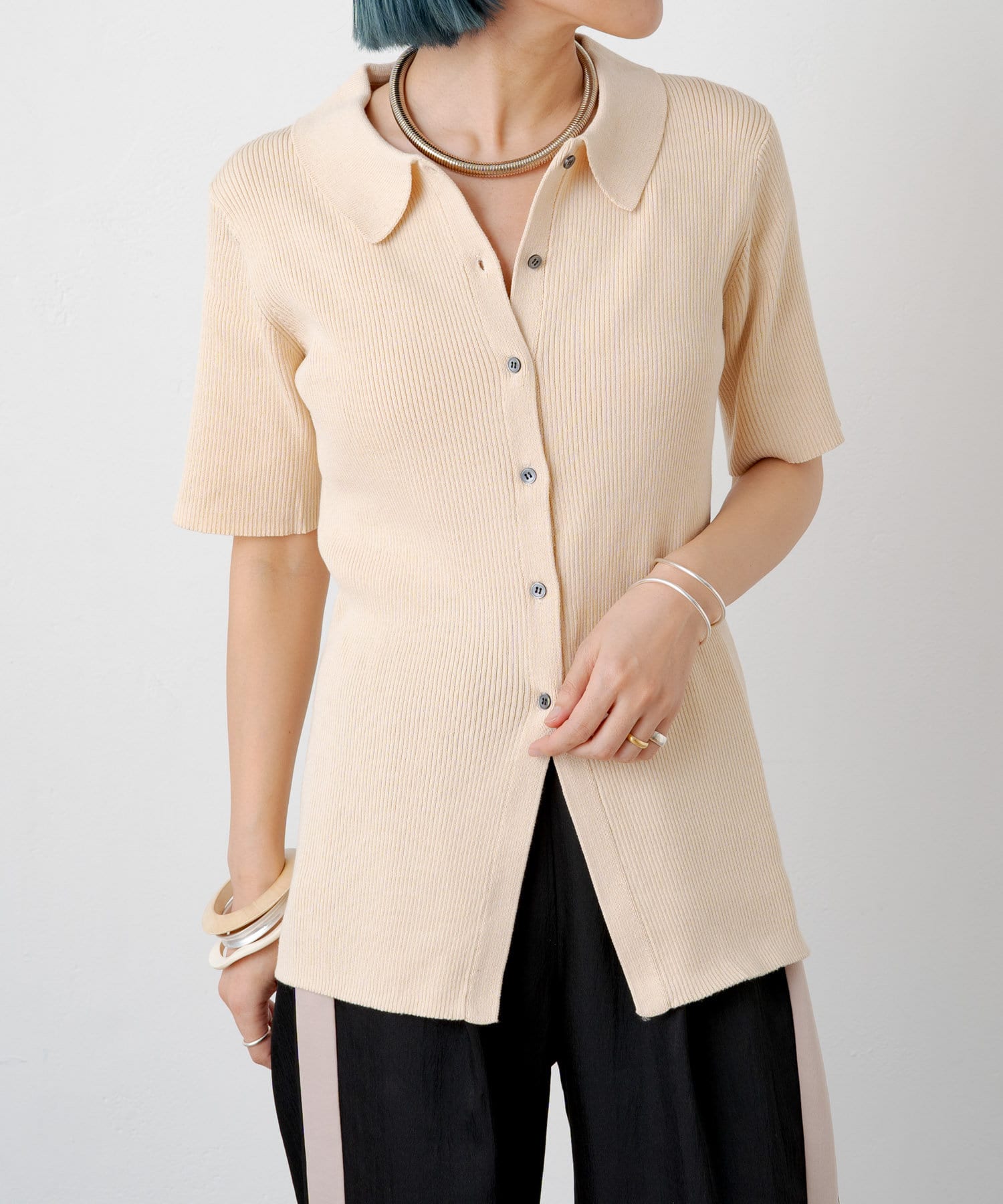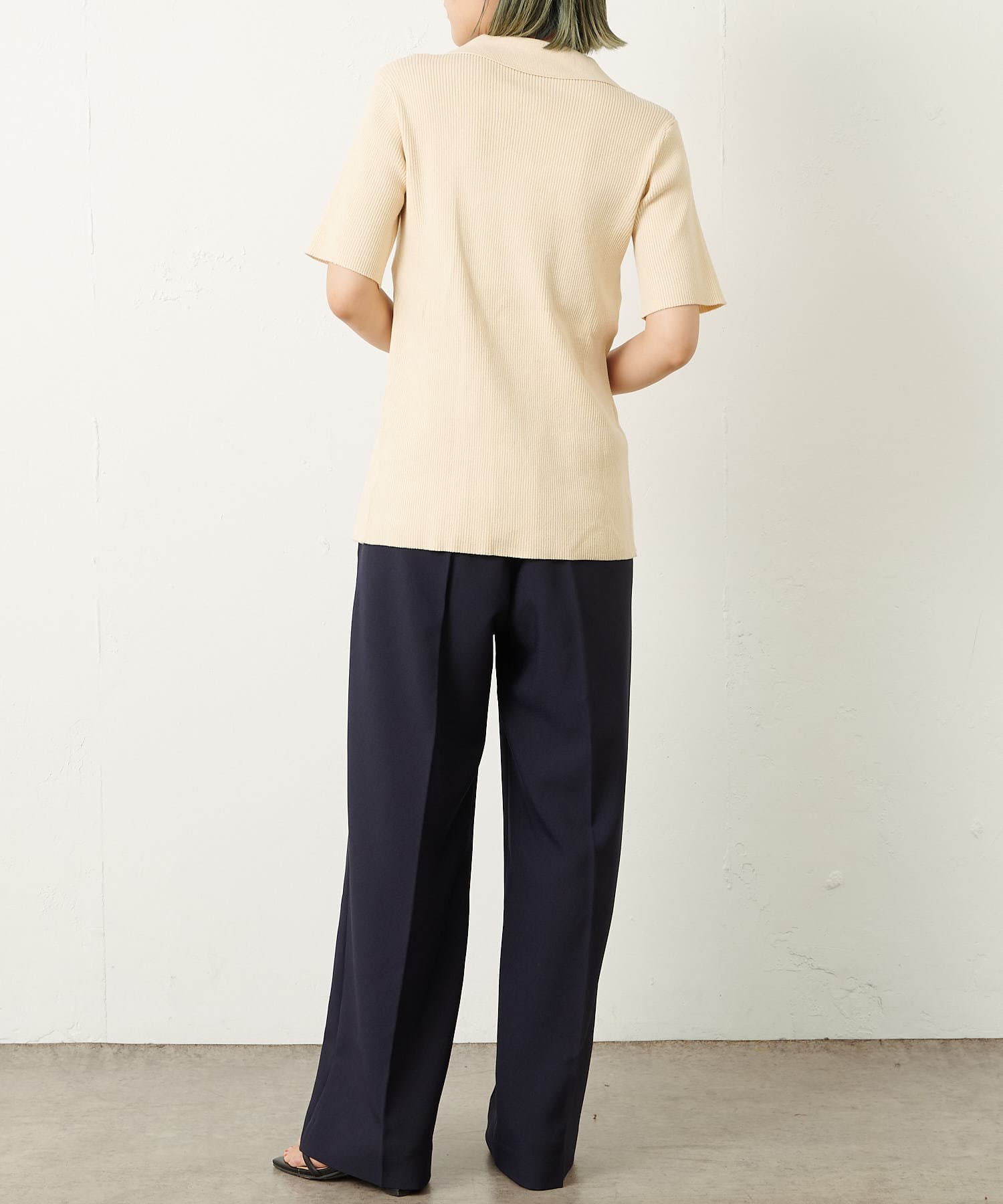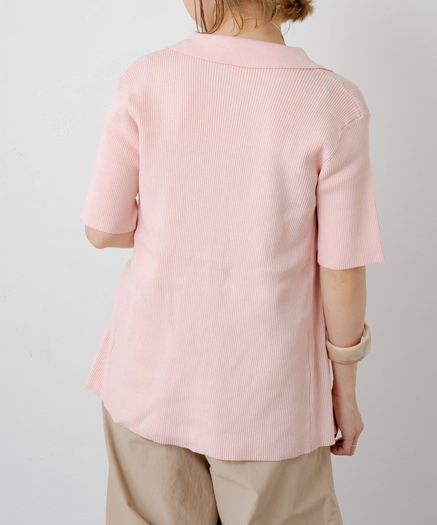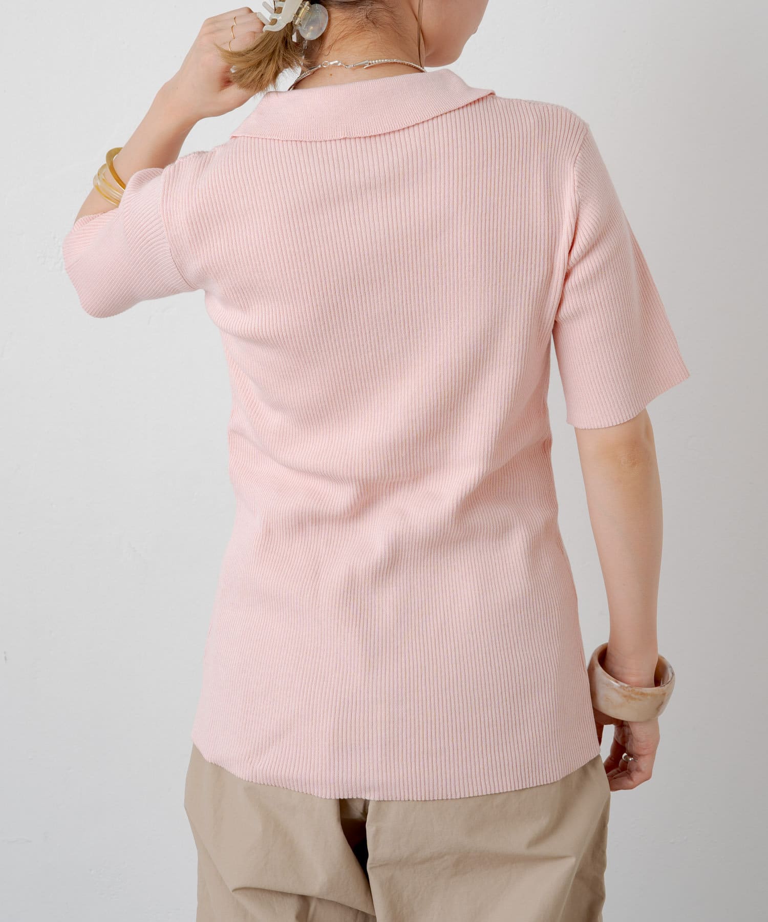 ・伸縮性のあるリブの編地がボディラインに程よくフィット。上半身をすっきりと見せてくれます。