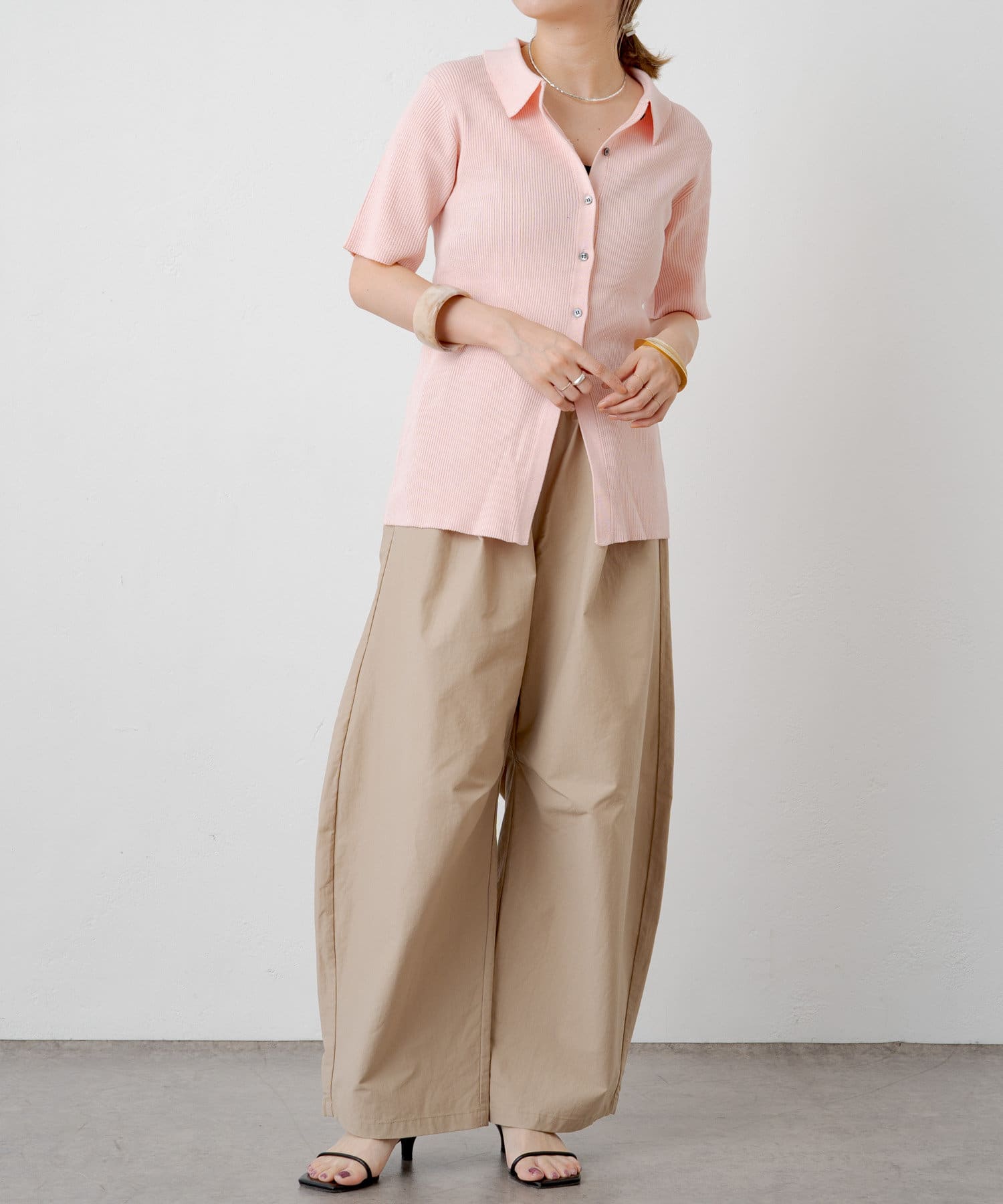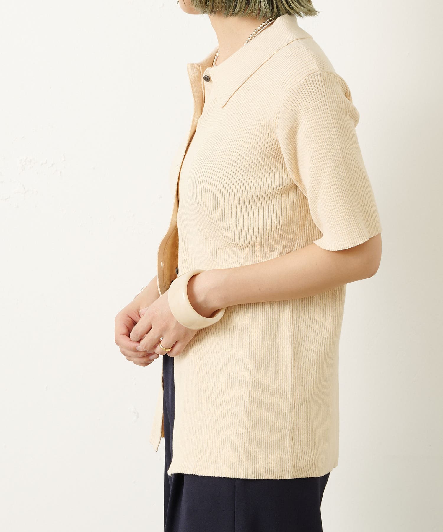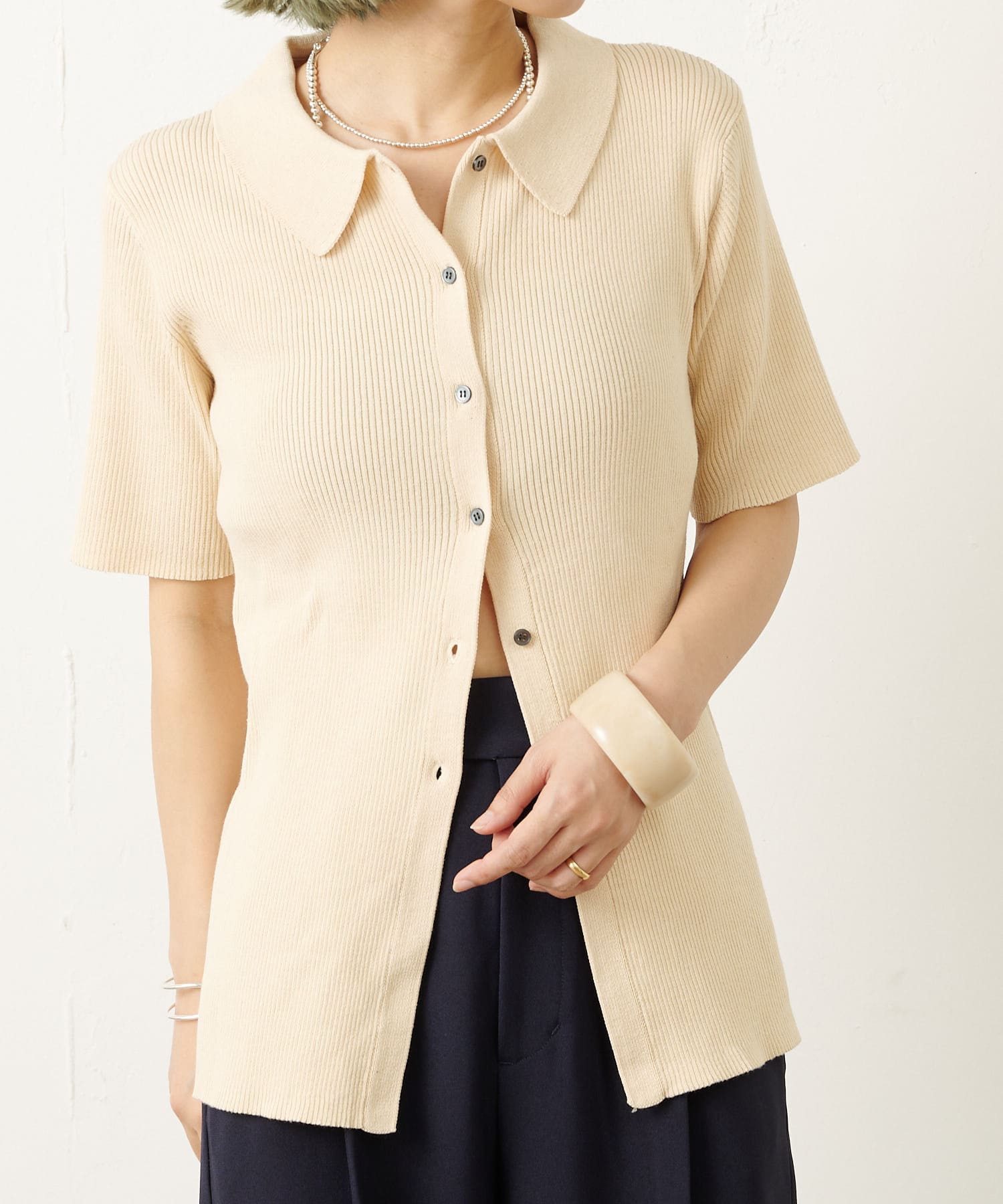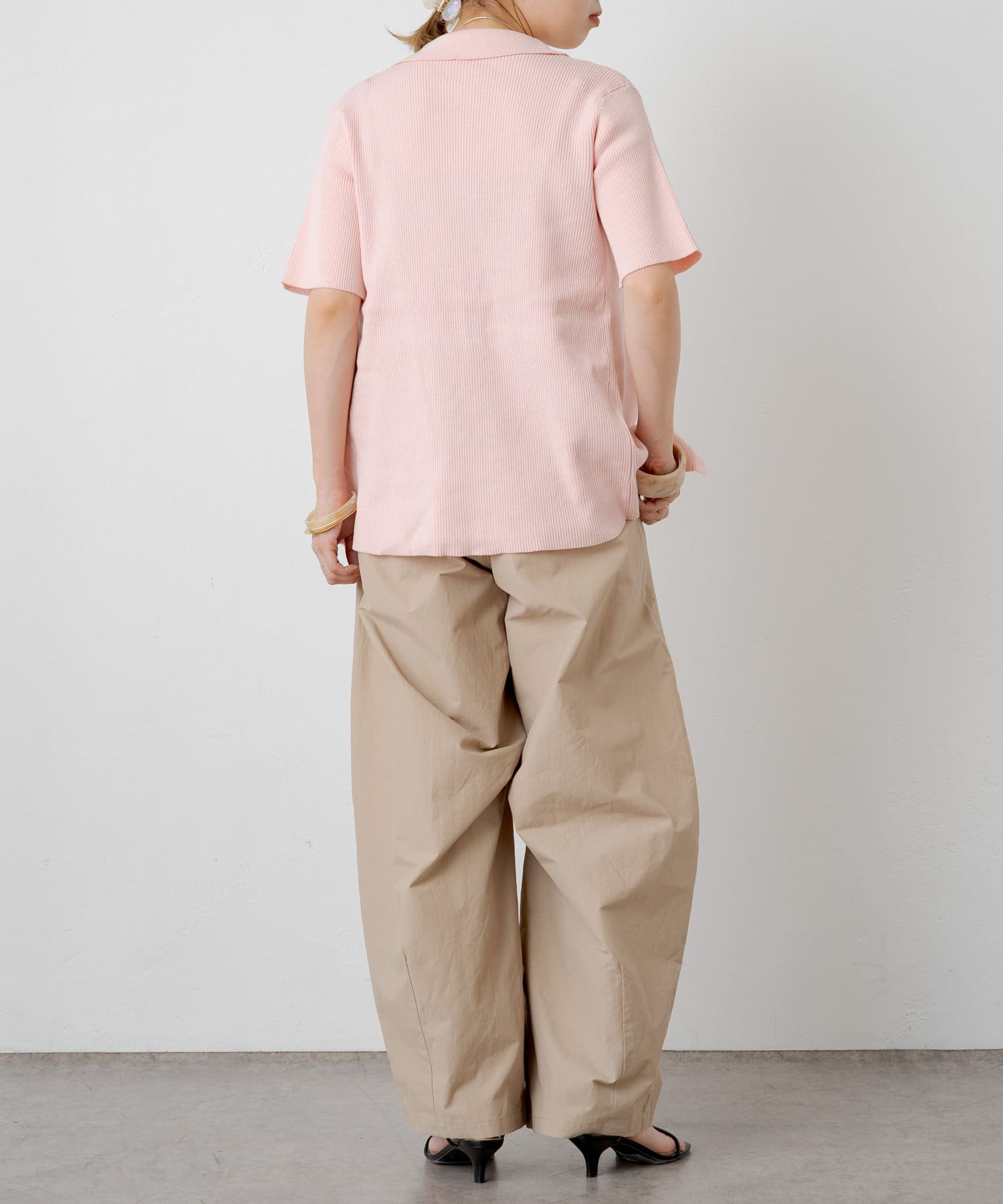 ・伸縮性のあるリブの編地がボディラインに程よくフィット。上半身をすっきりと見せてくれます。