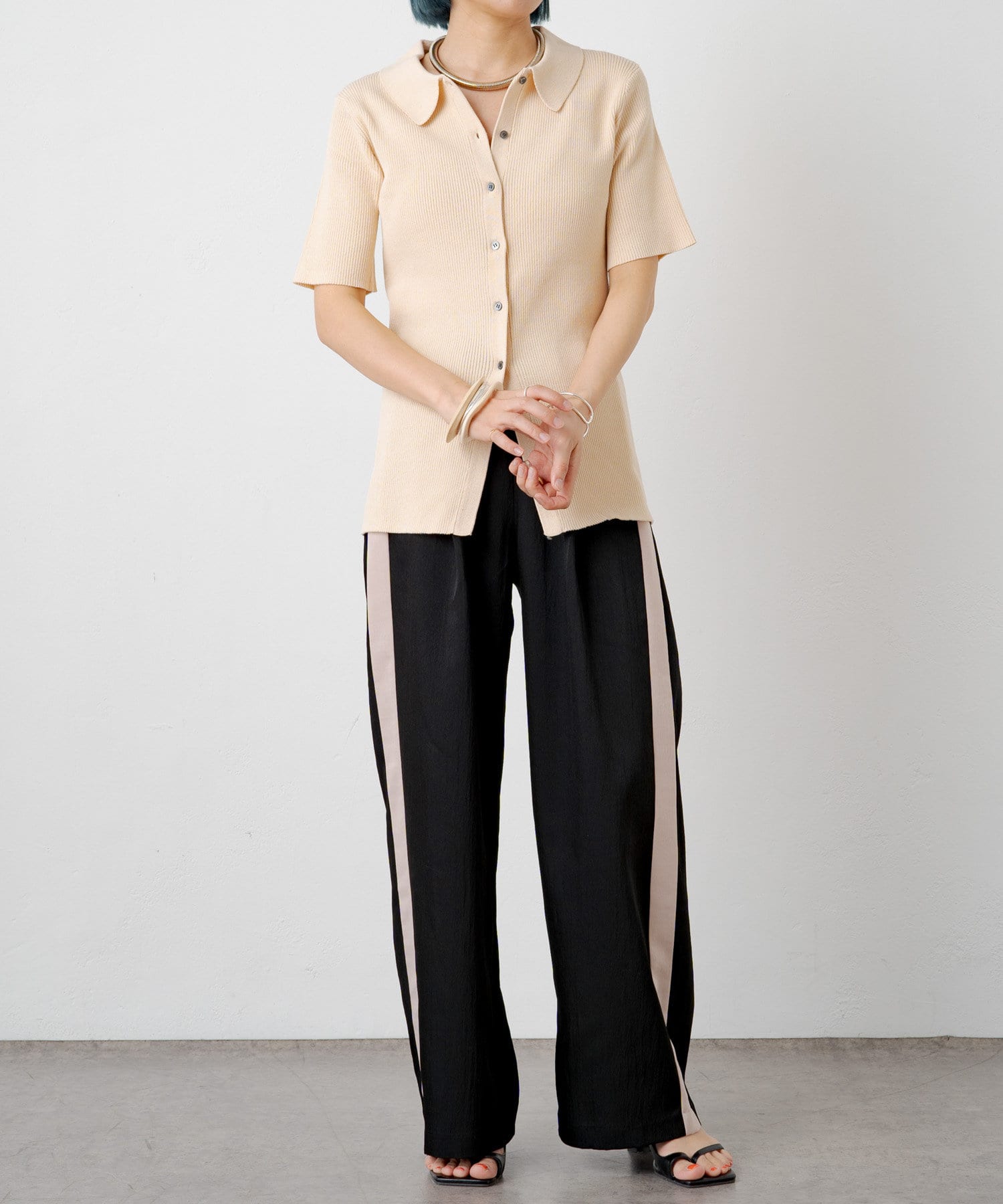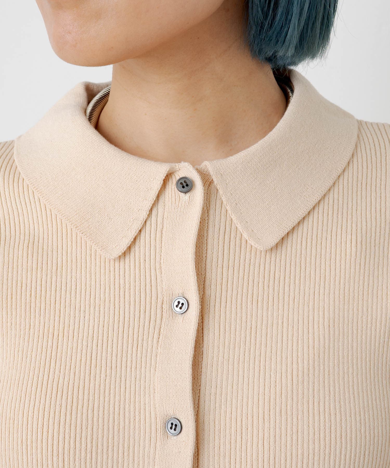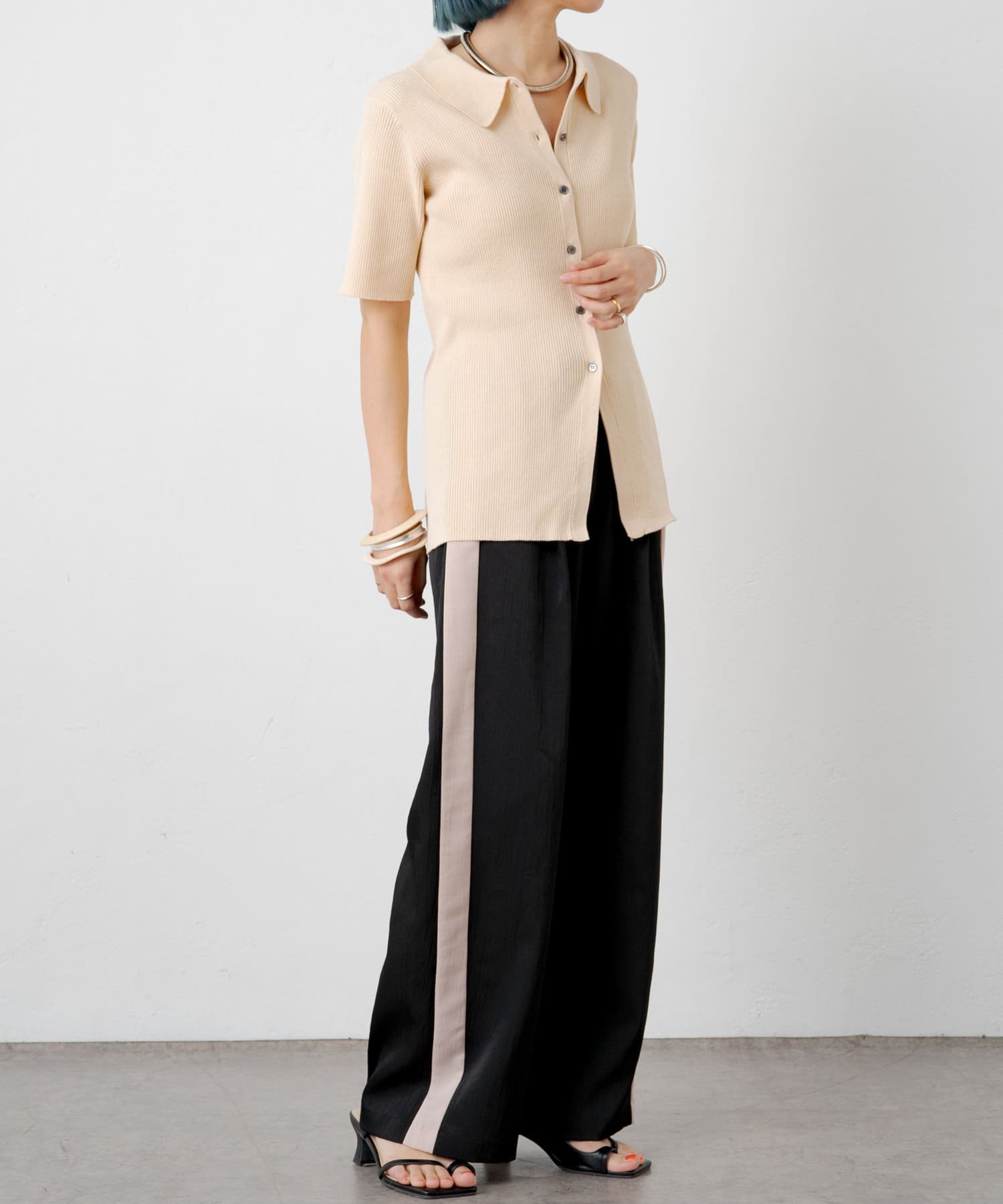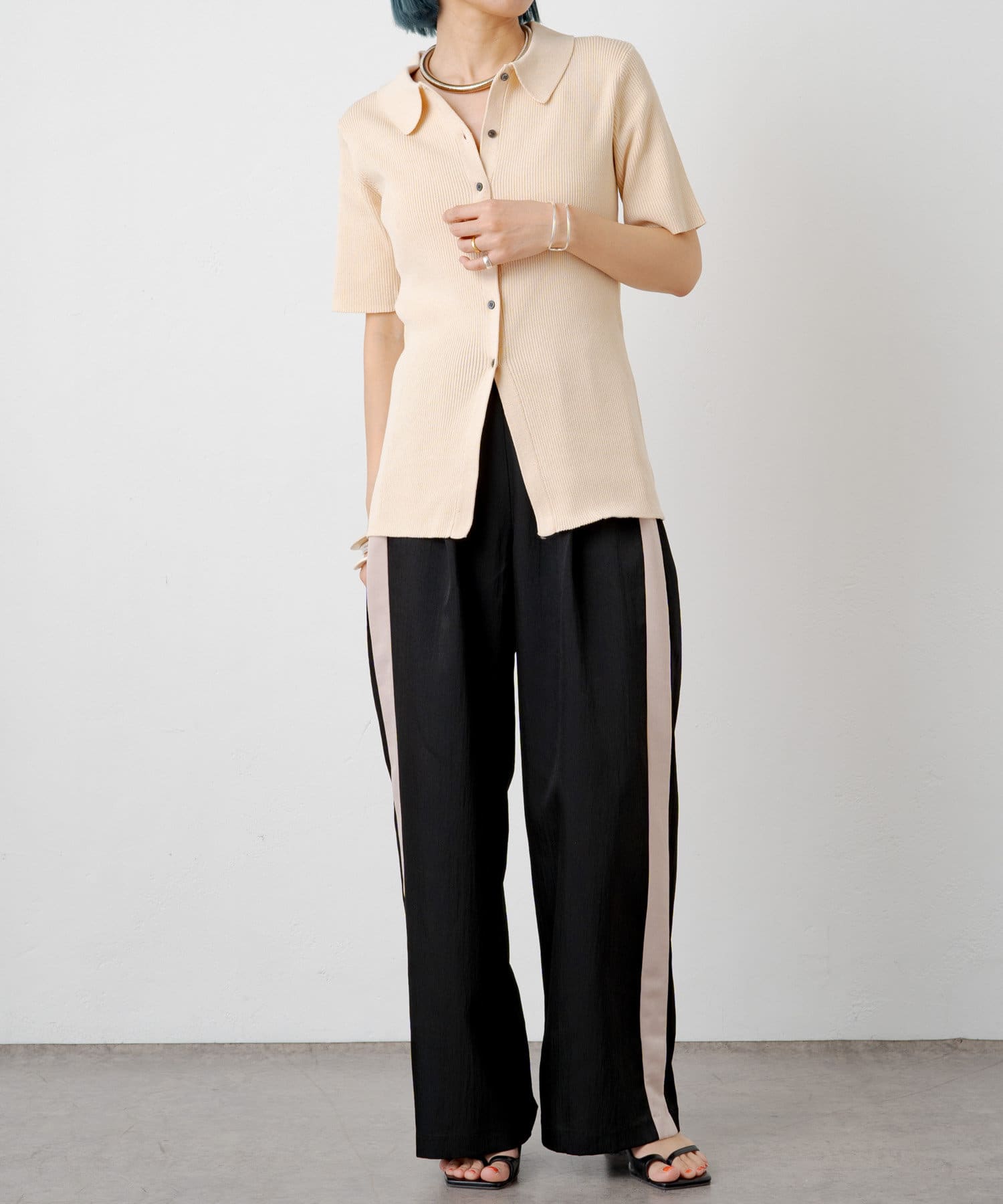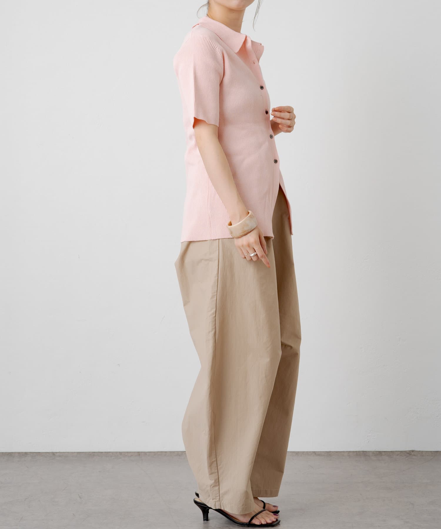 ・伸縮性のあるリブの編地がボディラインに程よくフィット。上半身をすっきりと見せてくれます。