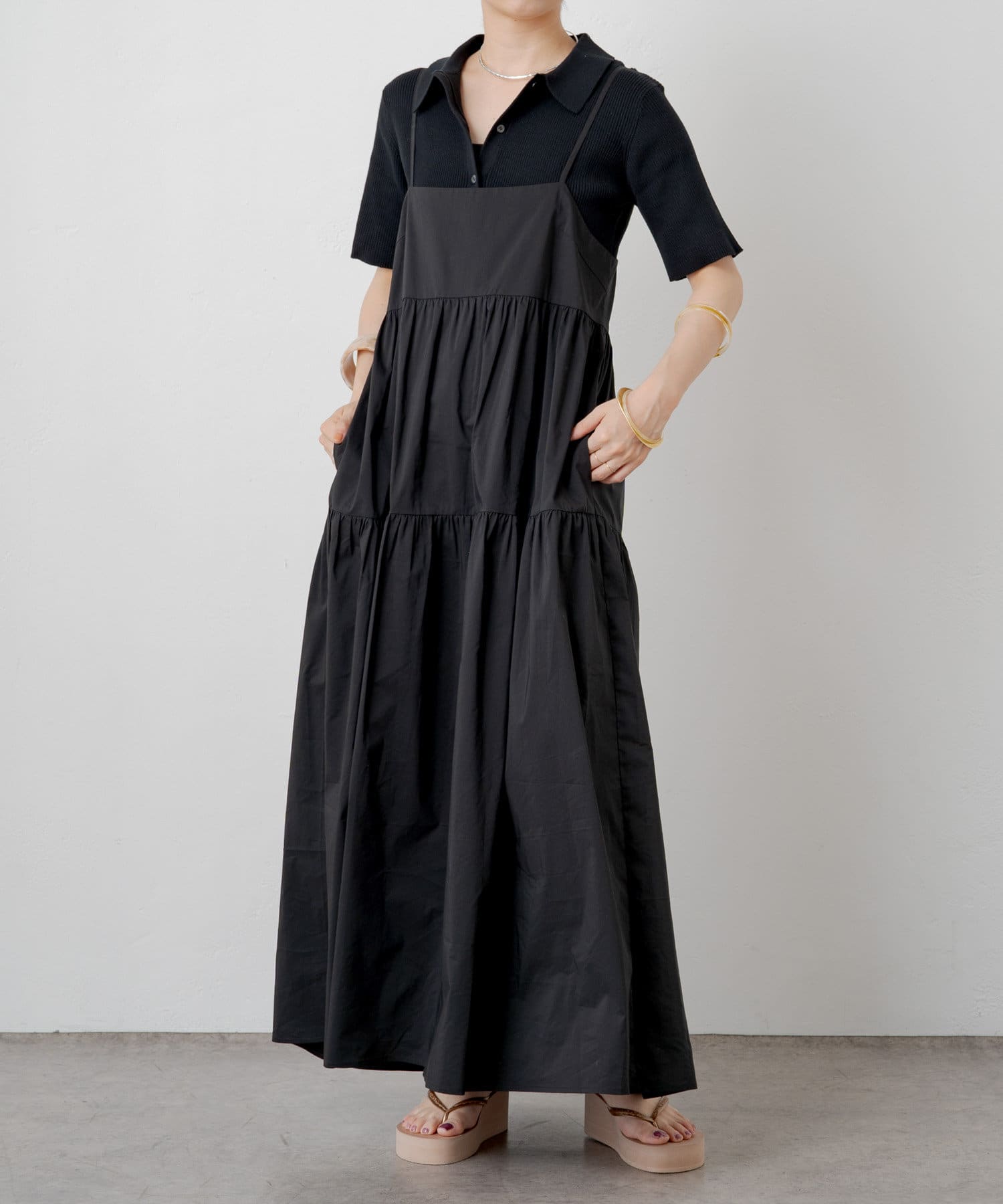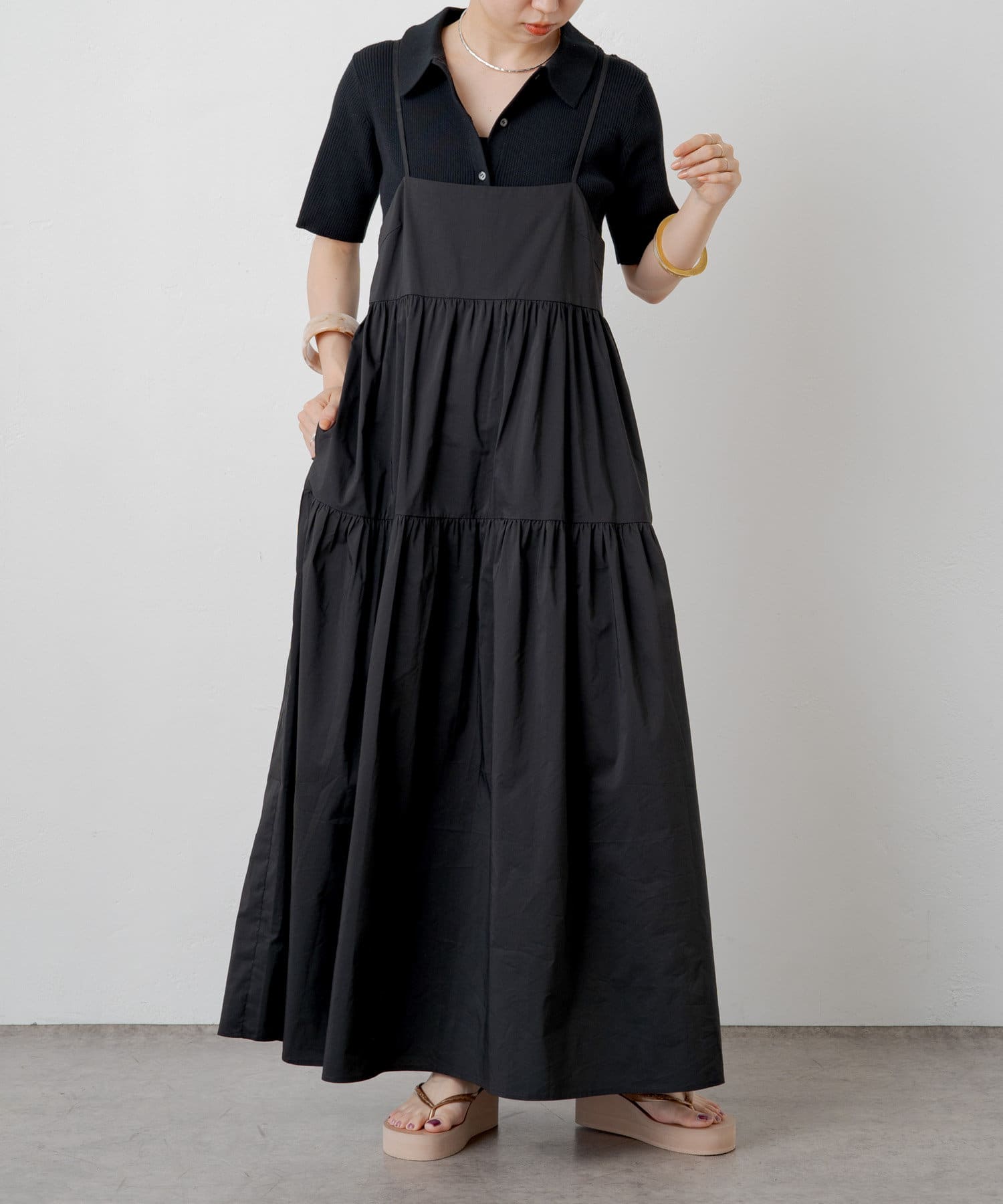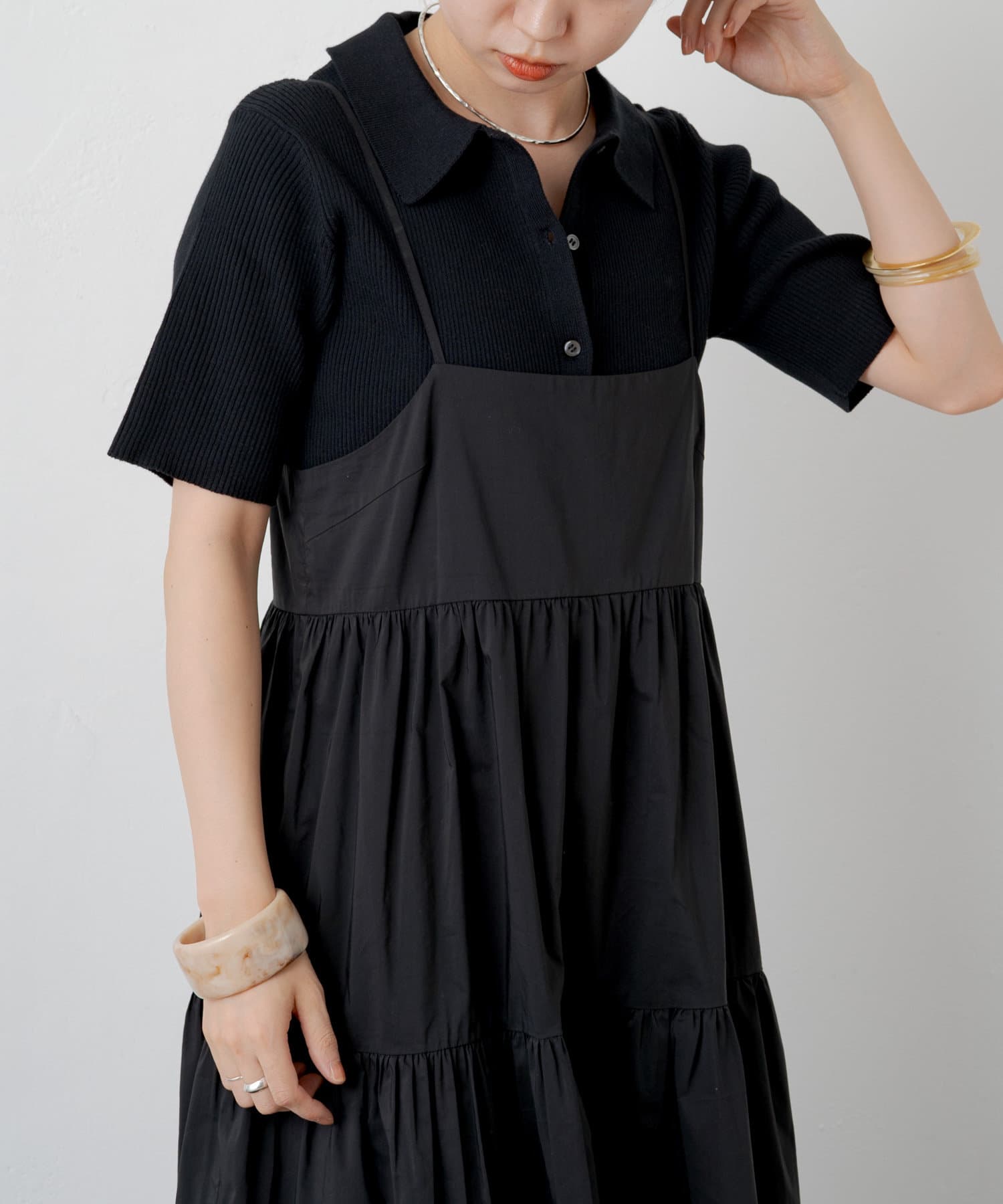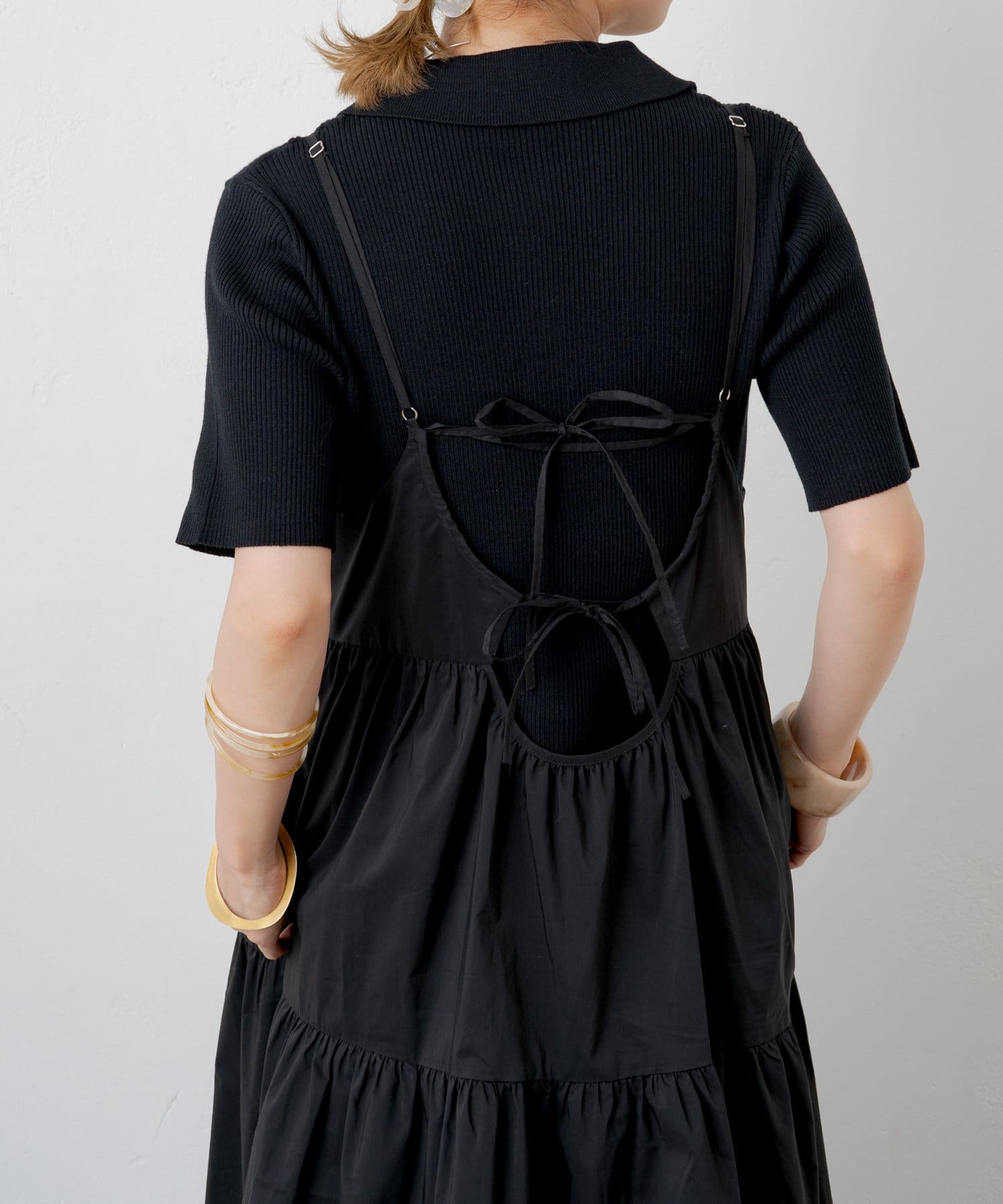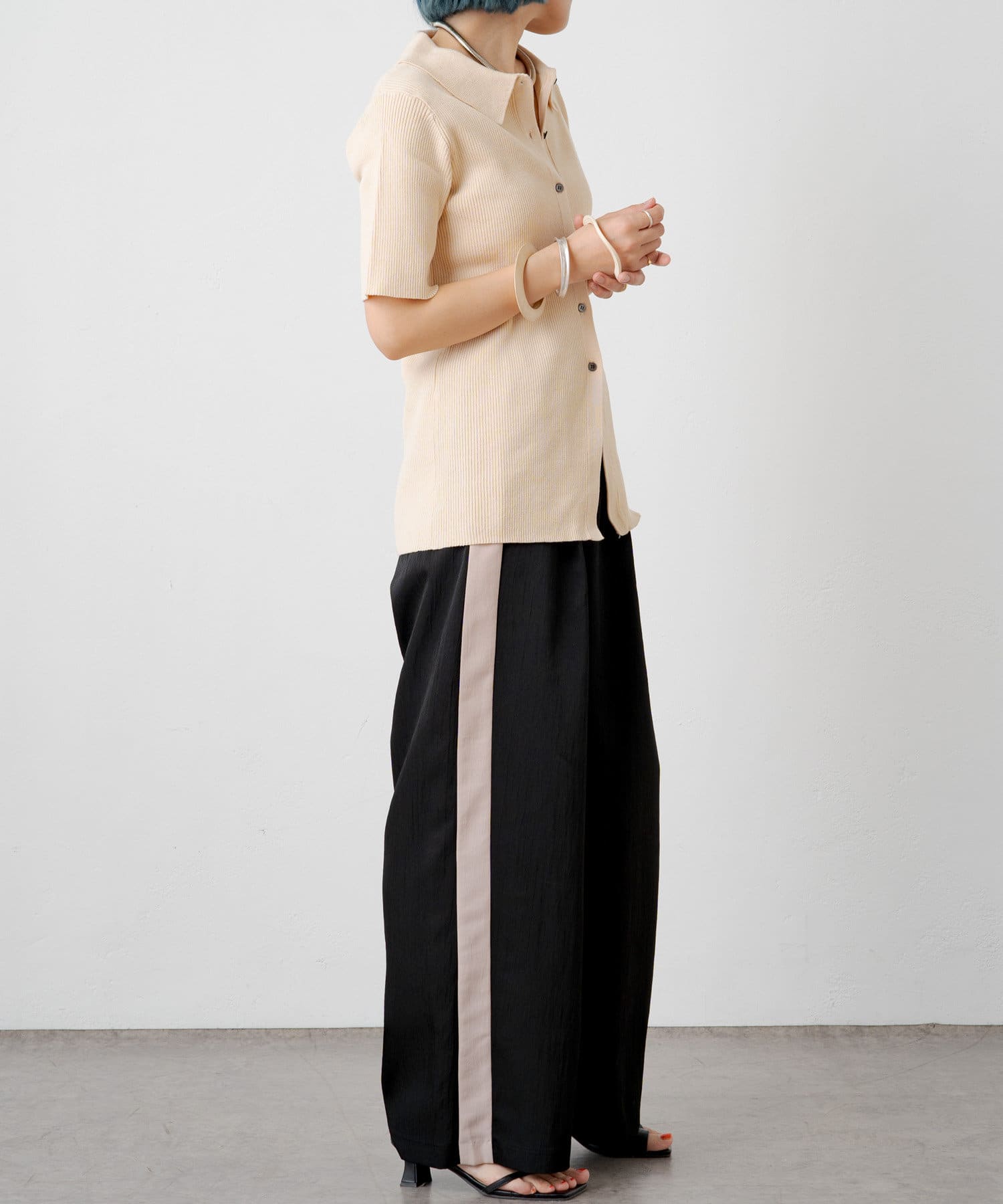・伸縮性のあるリブの編地がボディラインに程よくフィット。上半身をすっきりと見せてくれます。