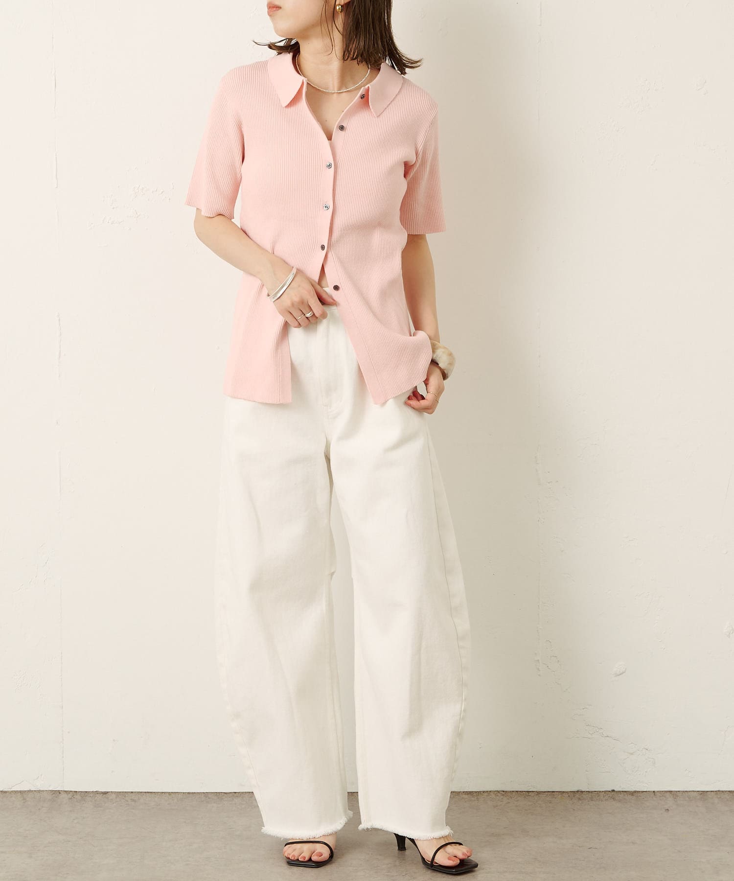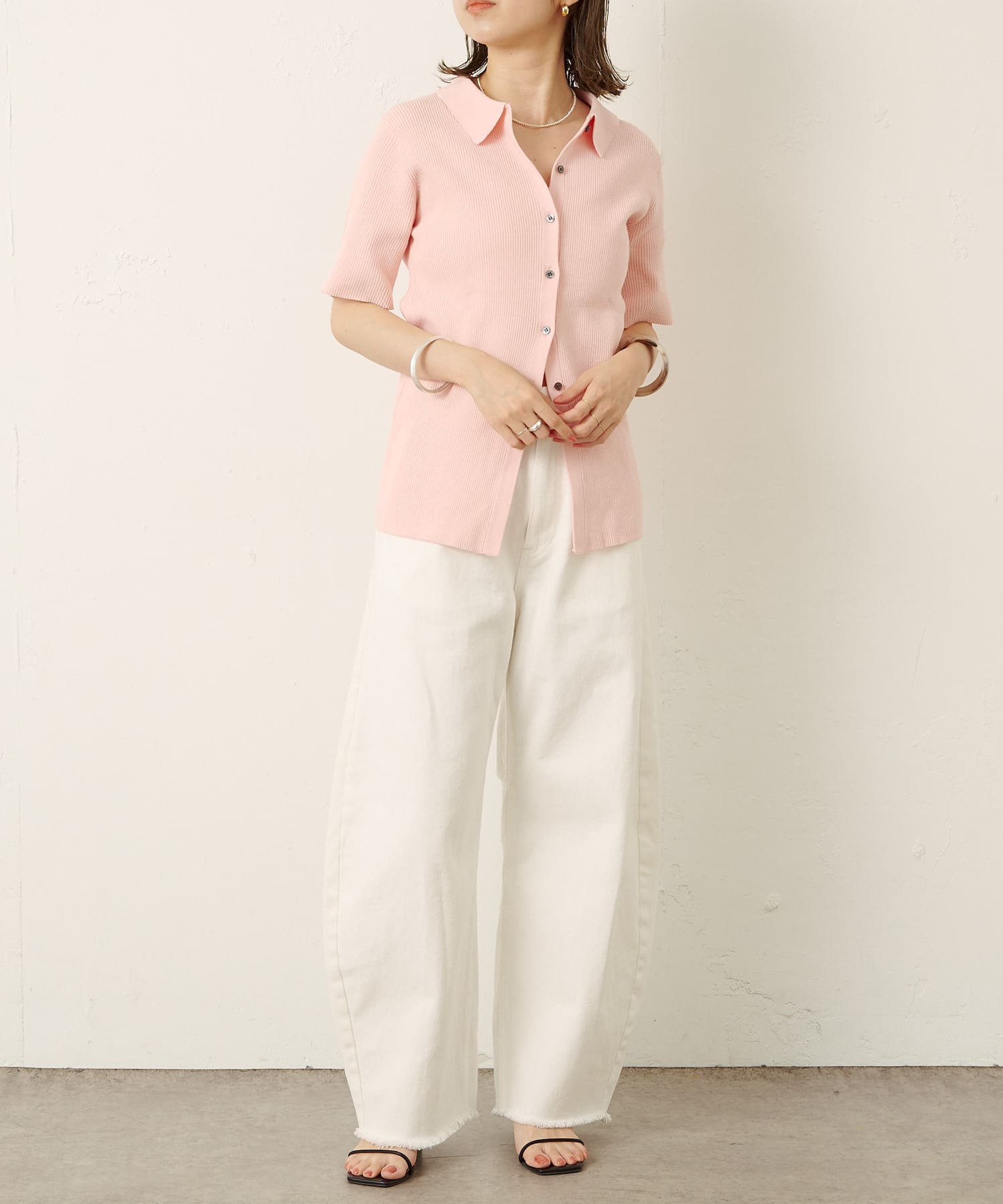 ・さらっとしたニット生地が特徴で、シンプルながら一枚で決まるサマーニット