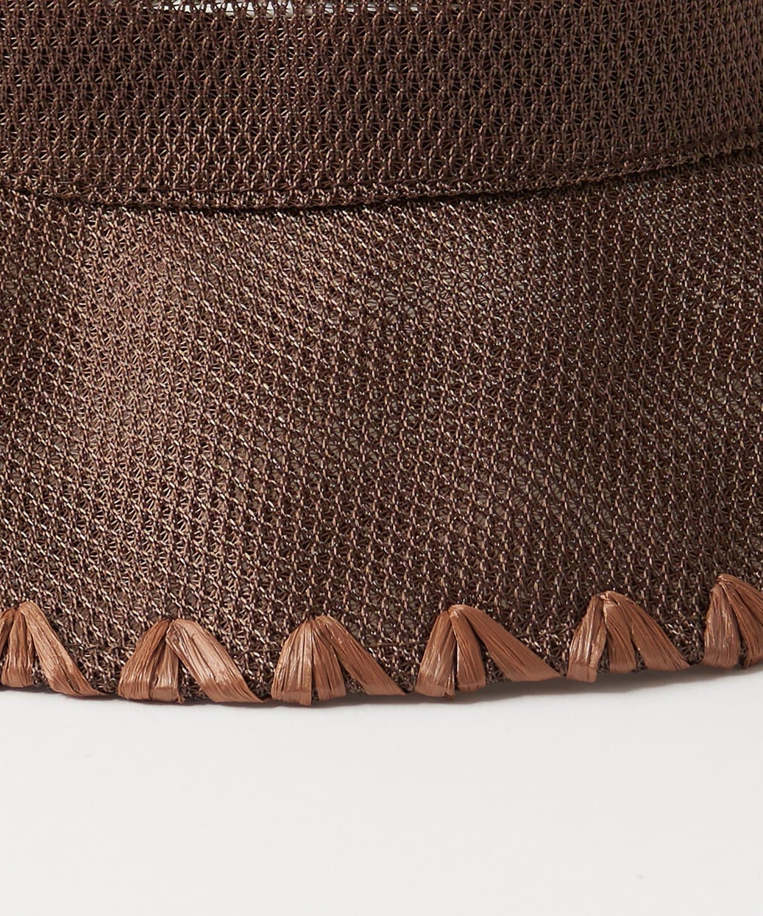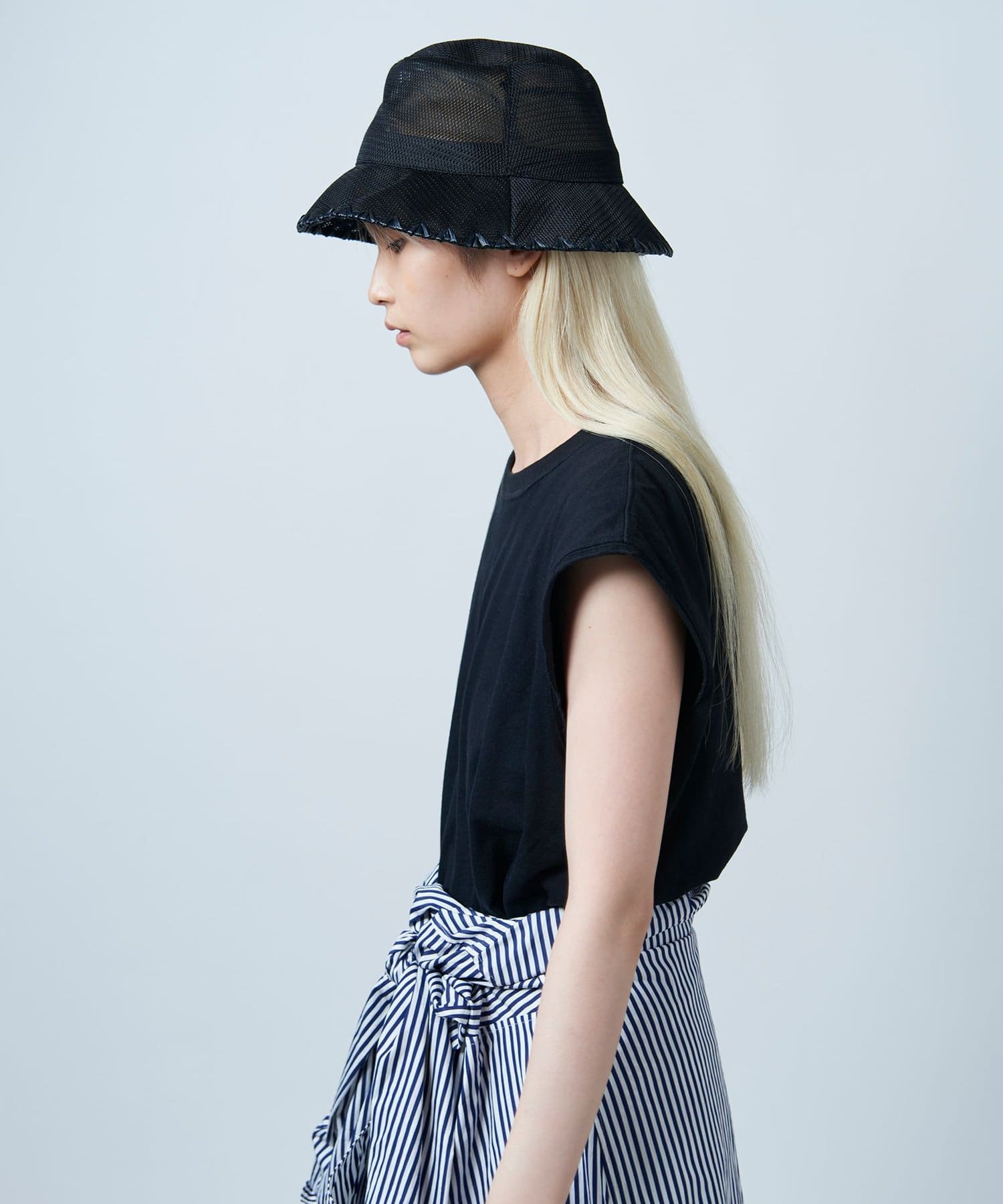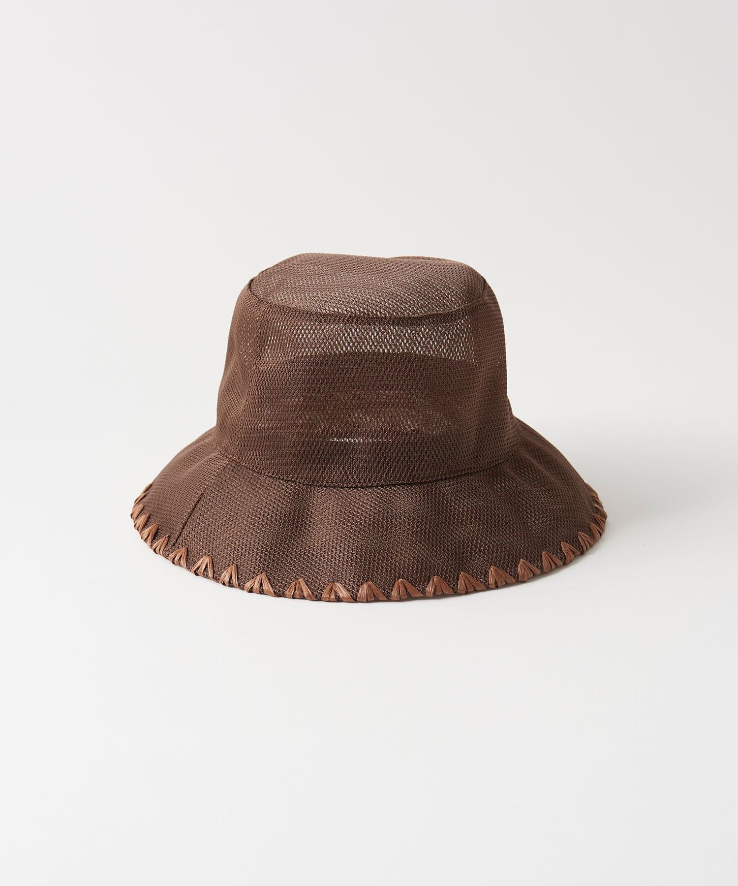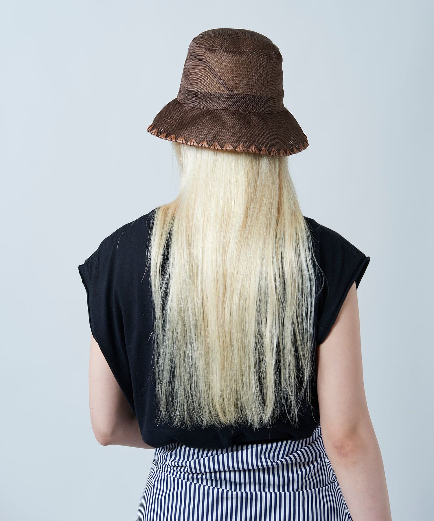 ブリム端にハンドステッチのポイントを入れることでメッシュのスポーティさを抑え、夏を楽しむサマードレスのようなリラクシーなスタイルにも取り入れられるように。