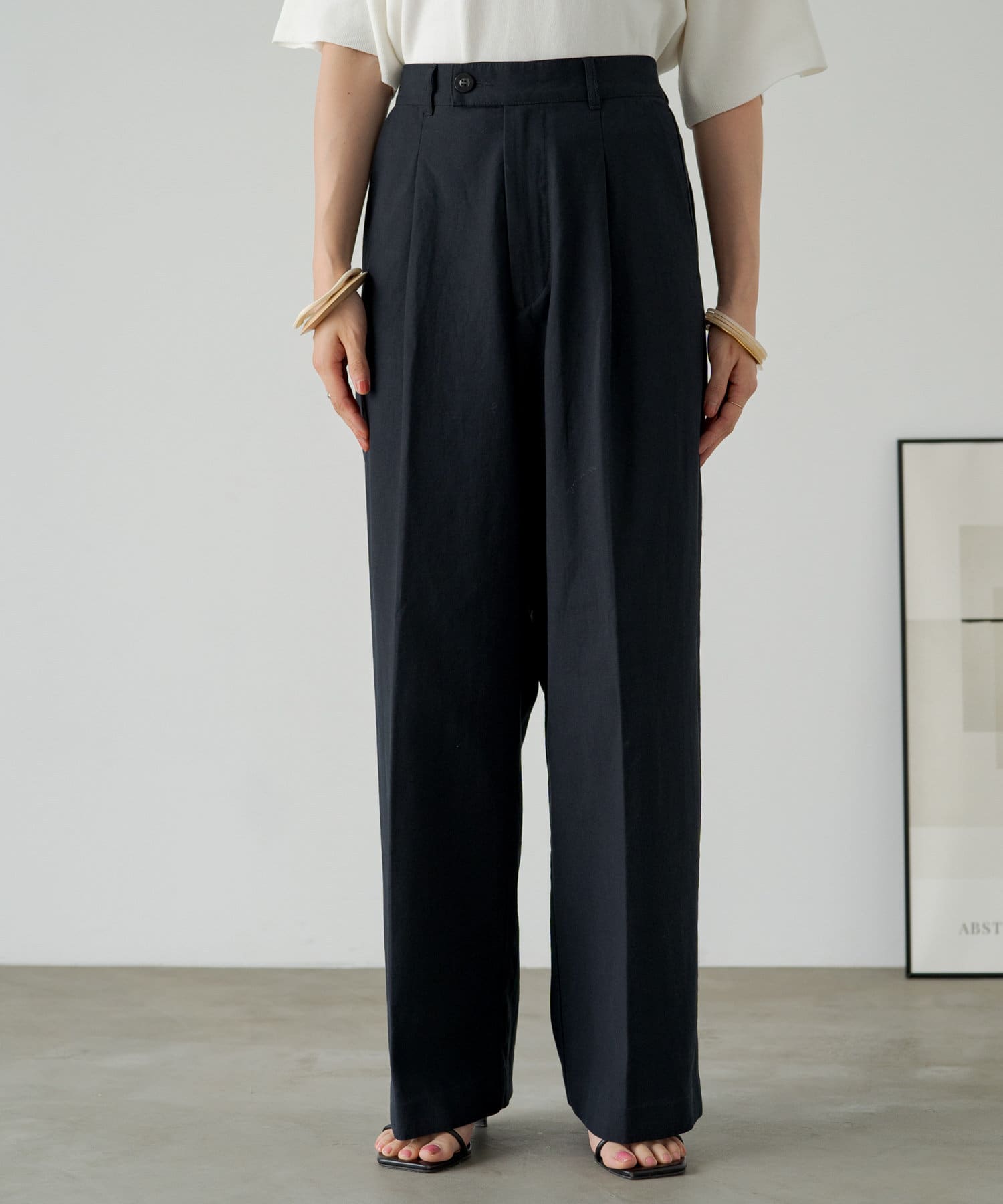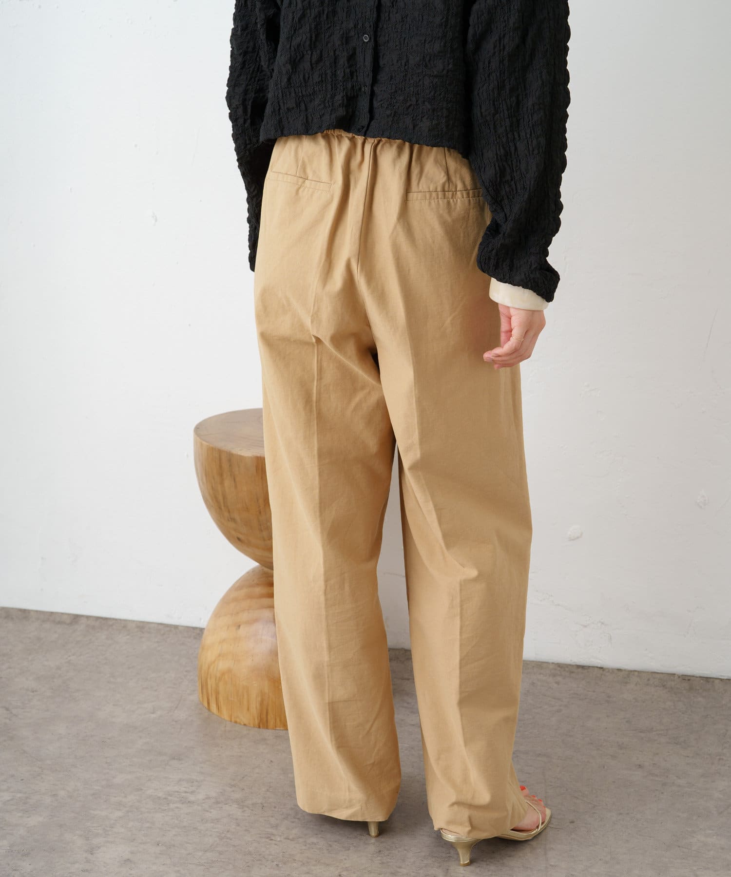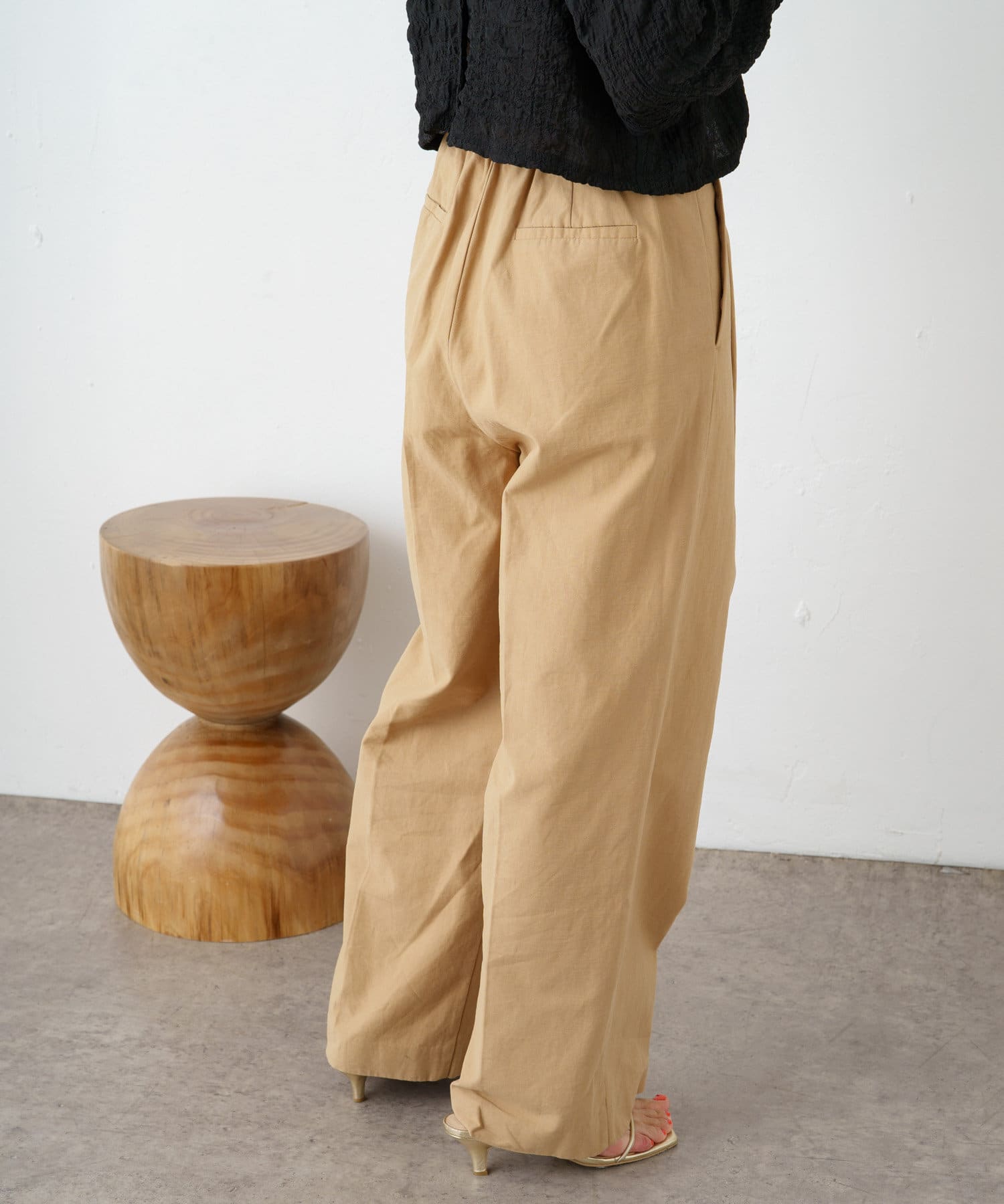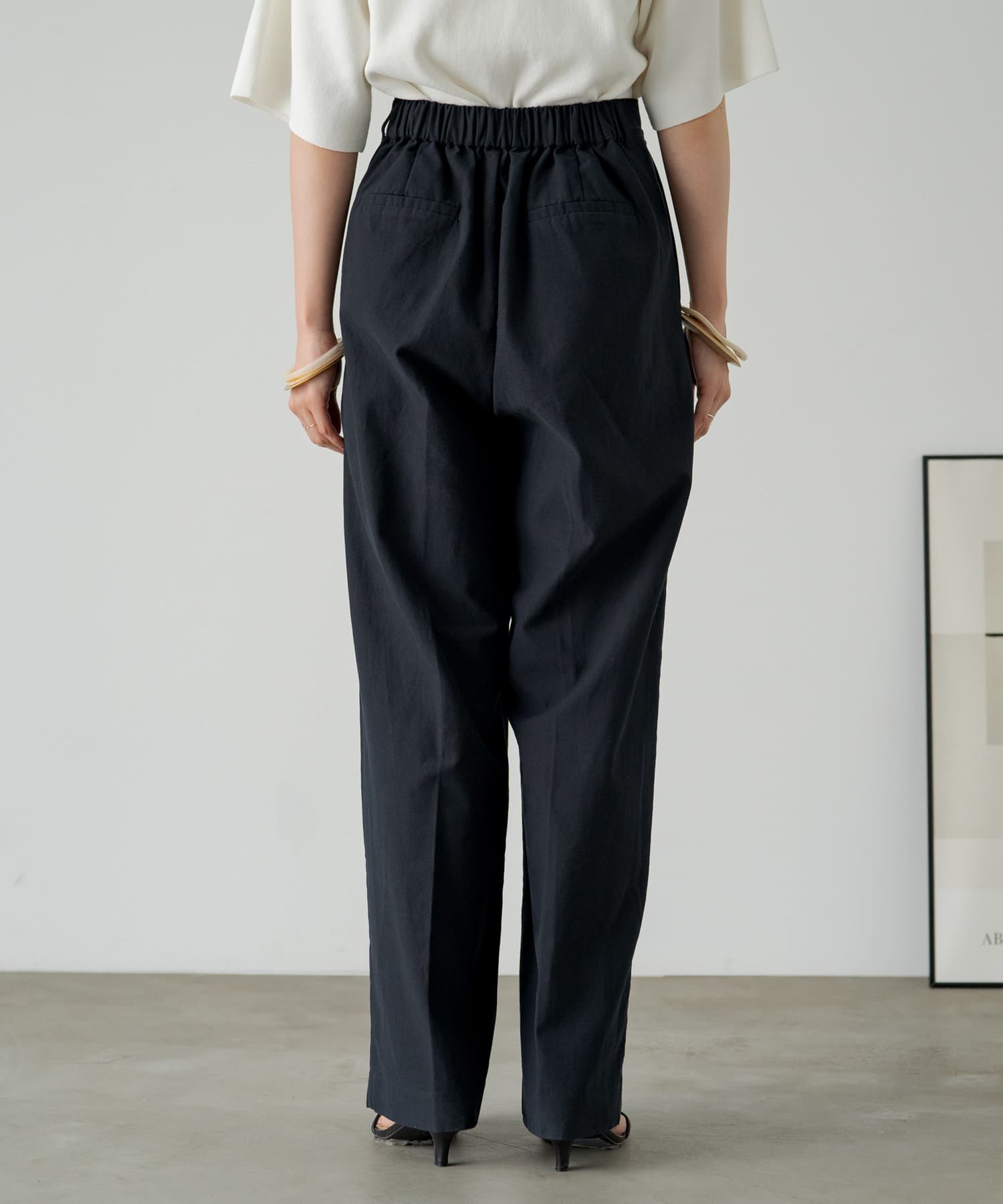 バックサテン生地がカジュアル感のある美脚見えタックパンツ
