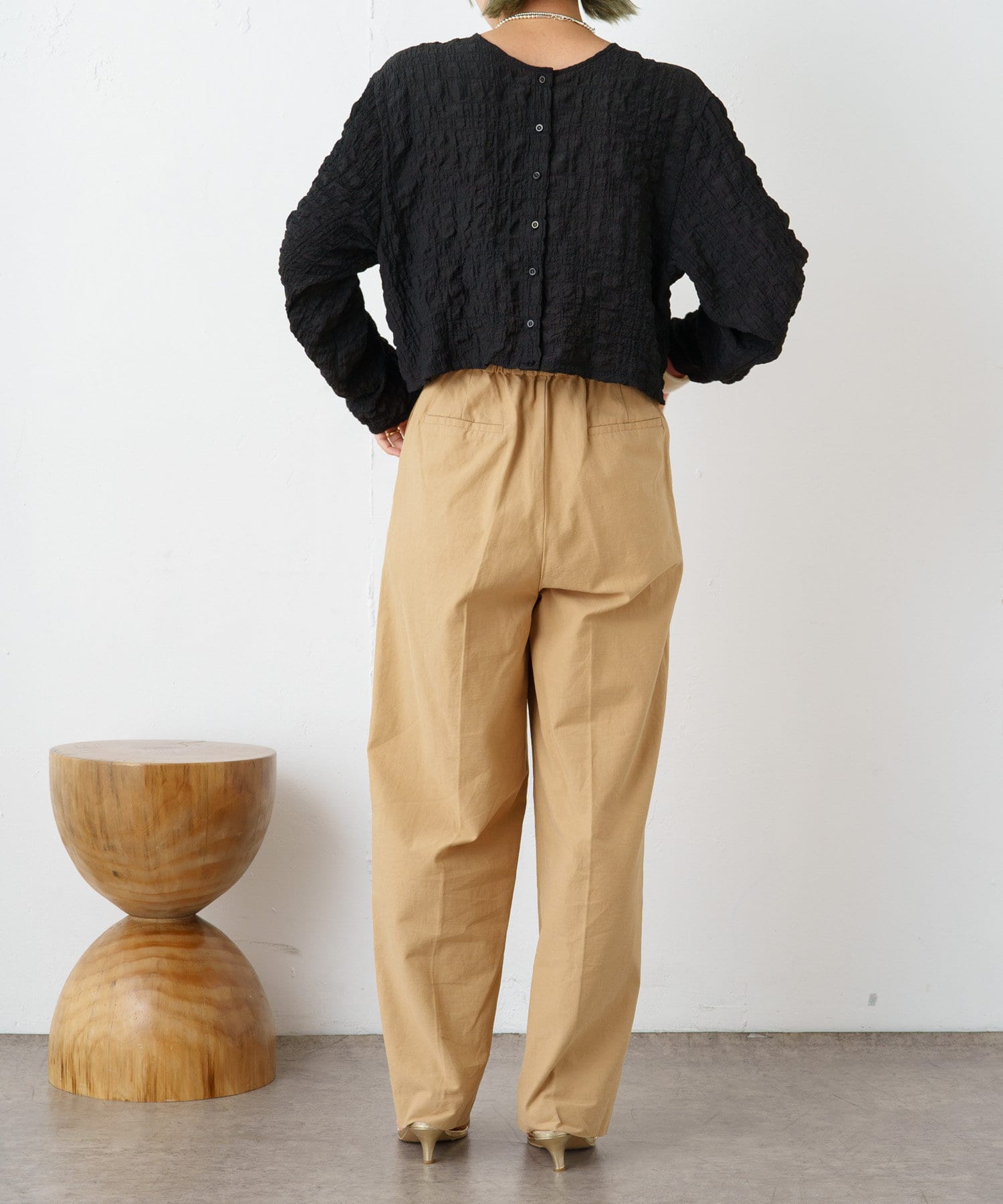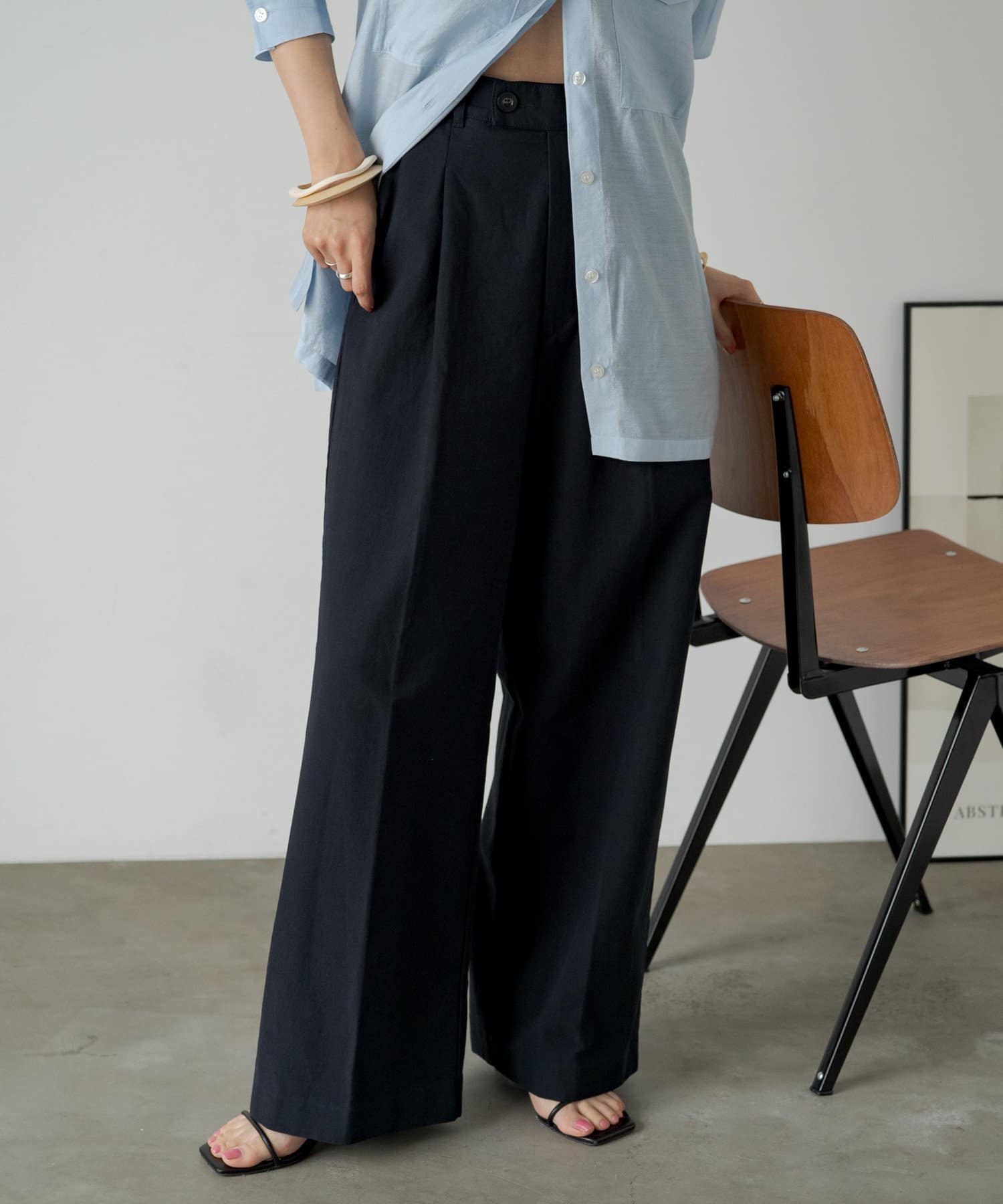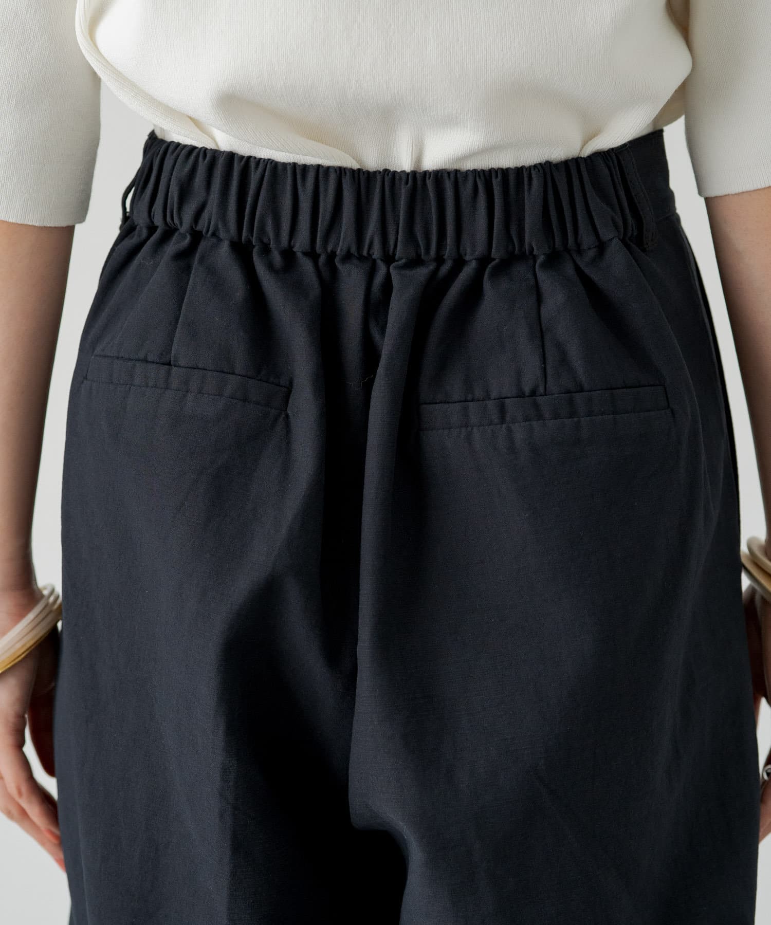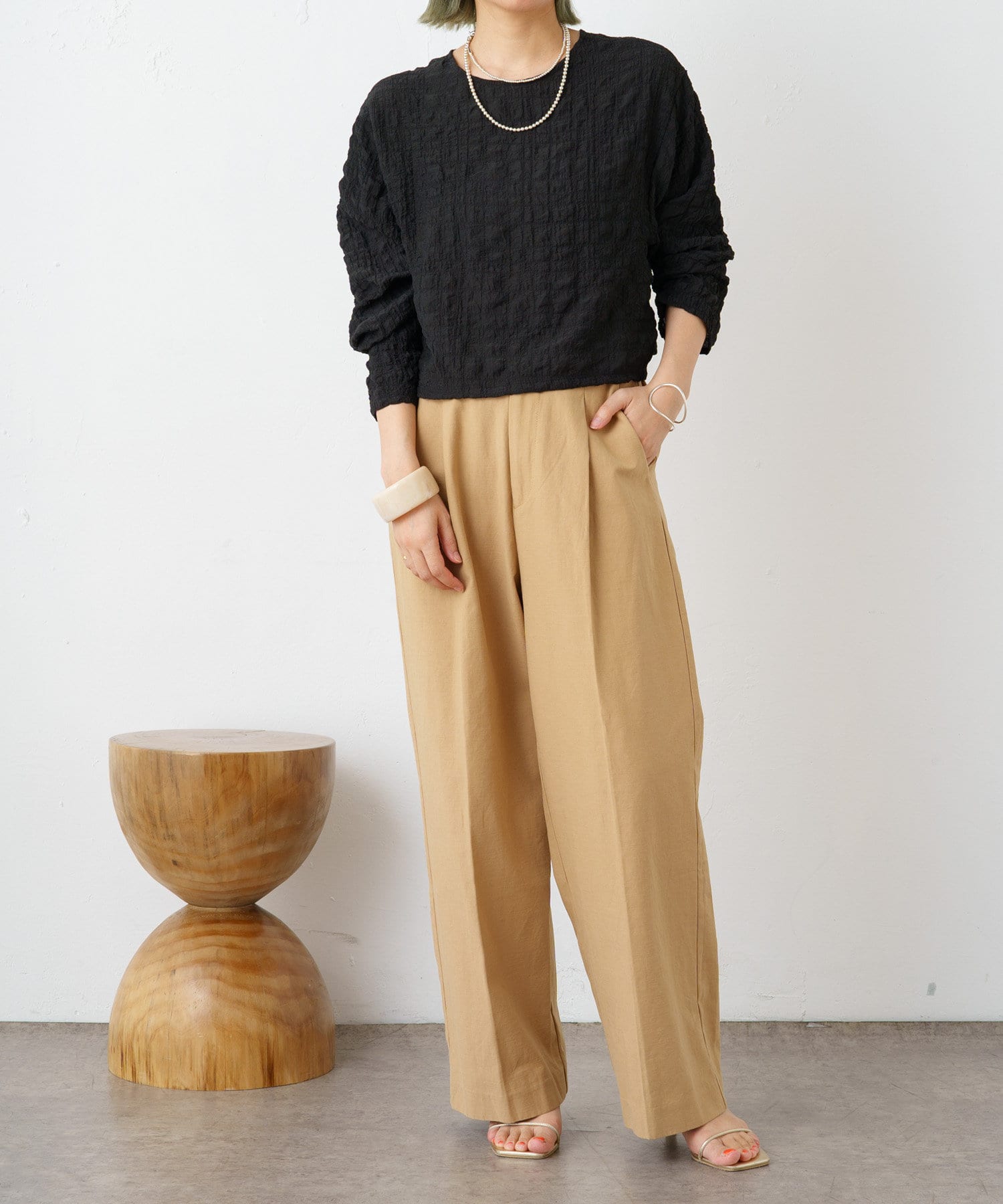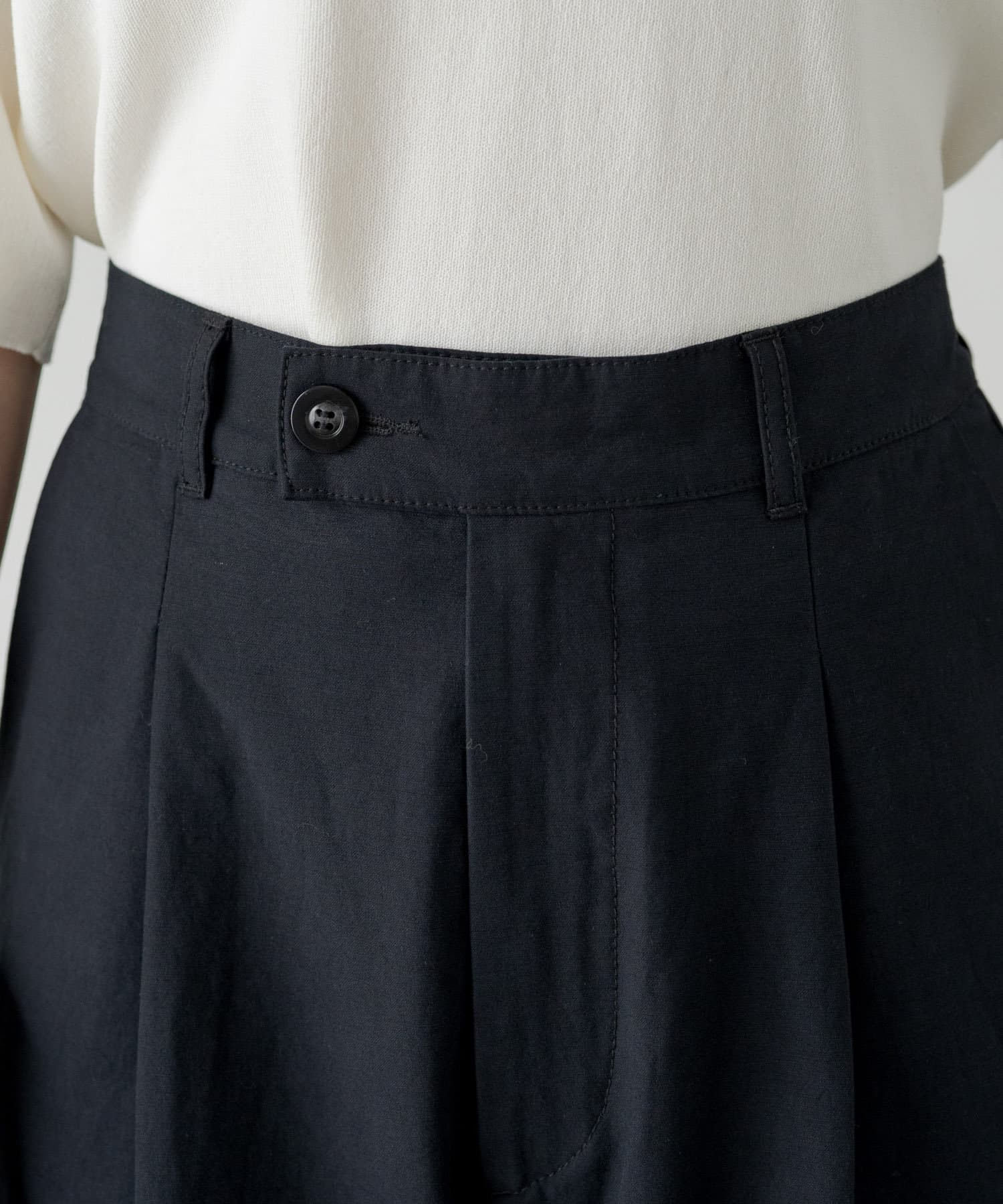 バックサテン生地がカジュアル感のある美脚見えタックパンツ