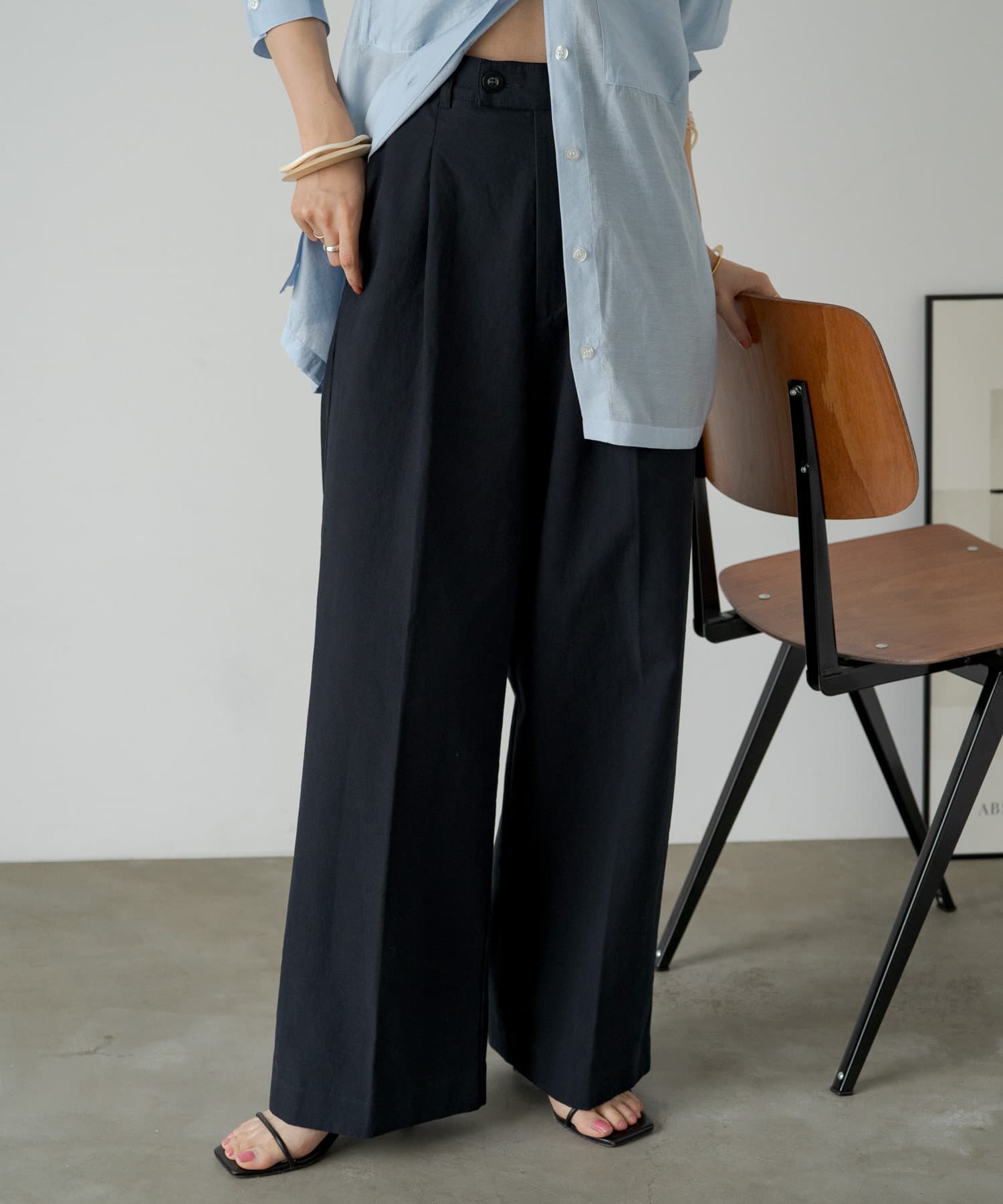 ・ワイドなシルエットと高めのウエスト位置で脚を長く、美脚見えが叶う一本。