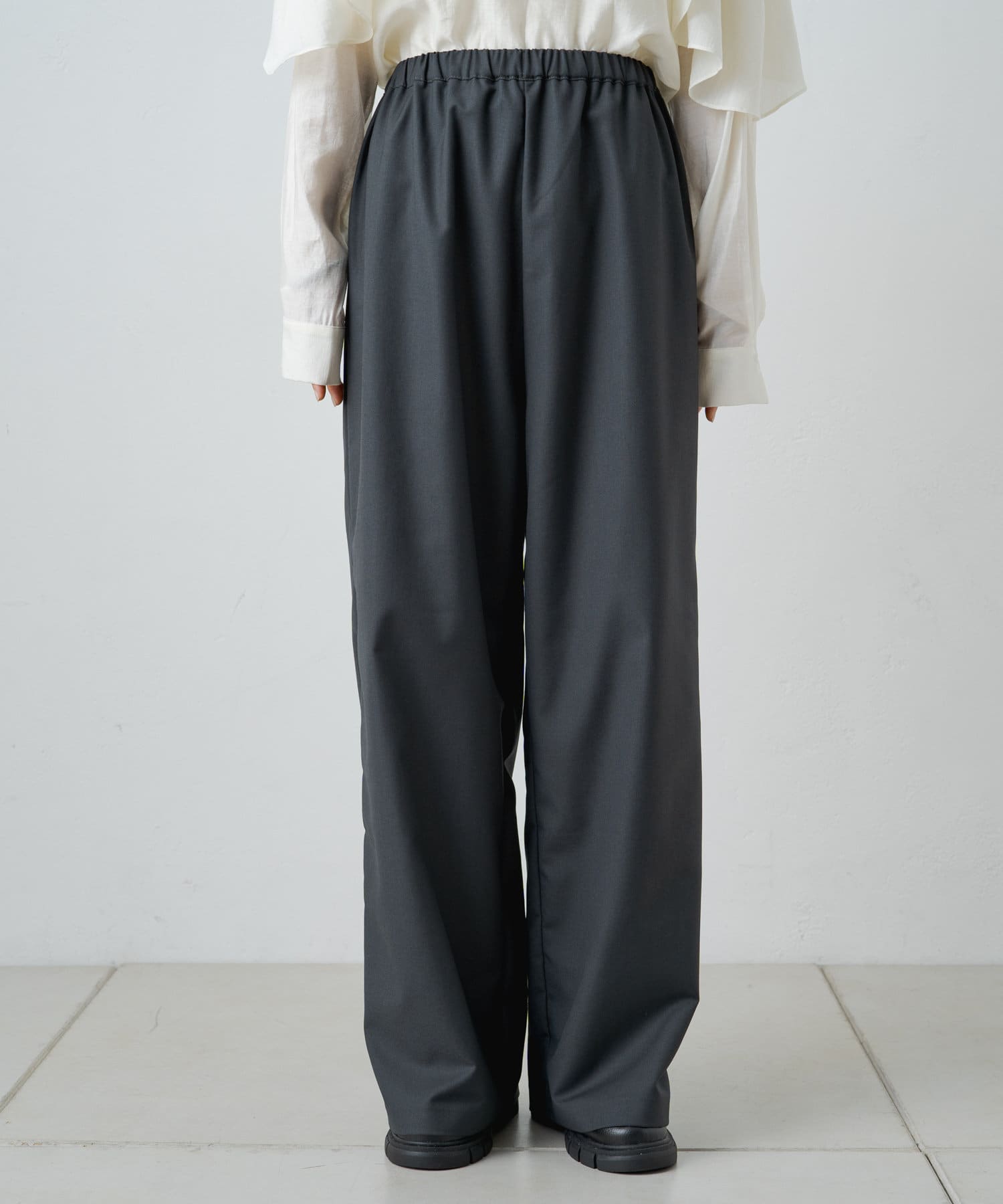 ・パンツは脚のラインを拾いづらいややワイドなシルエットと、裾がフレアになっているので美脚効果も◎