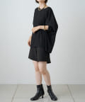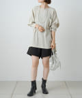 ・大人カジュアルに決まるハーフパンツ。ハイウエスト仕様と裾がフレアになっているのでスタイルアップしてくれます。