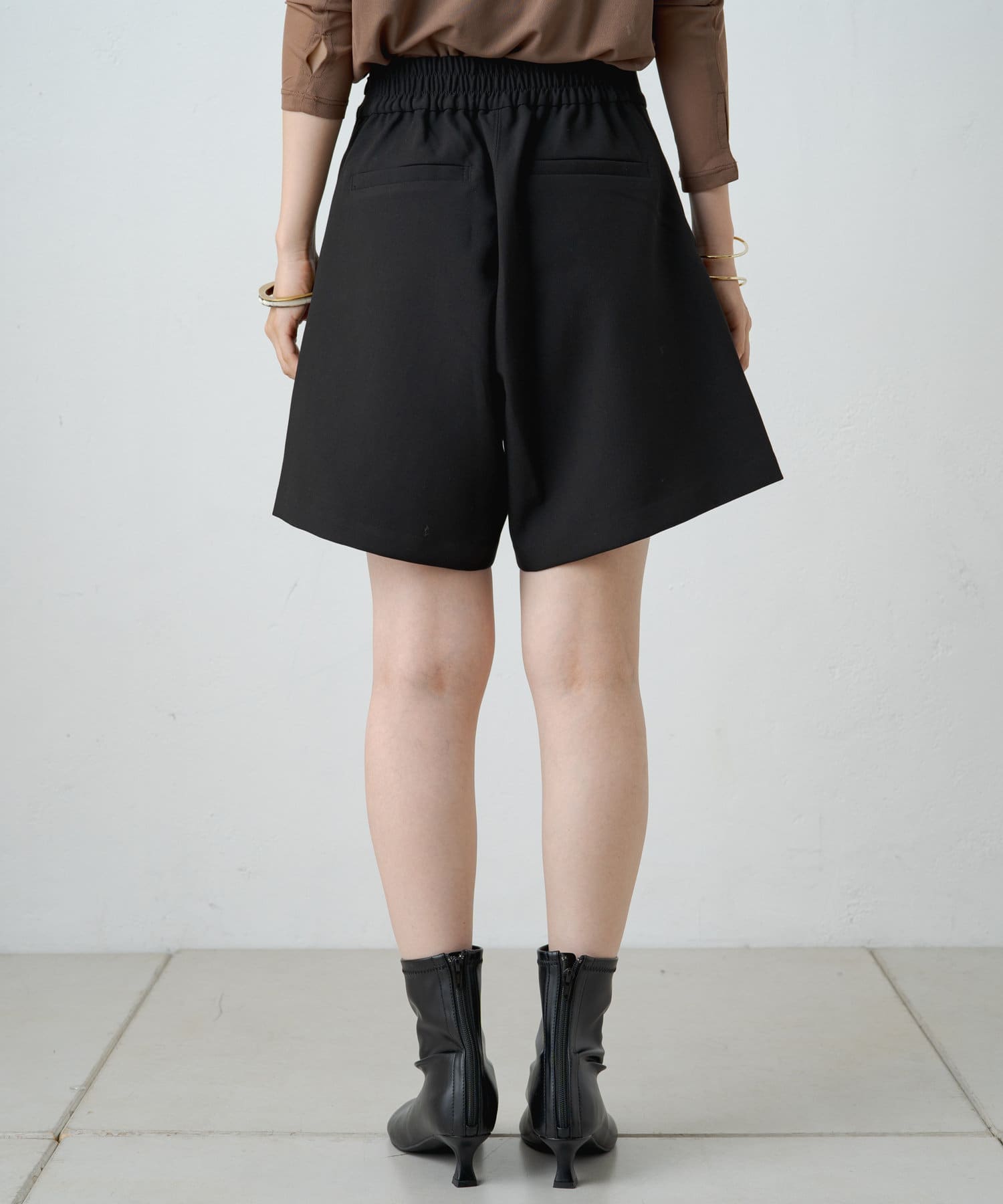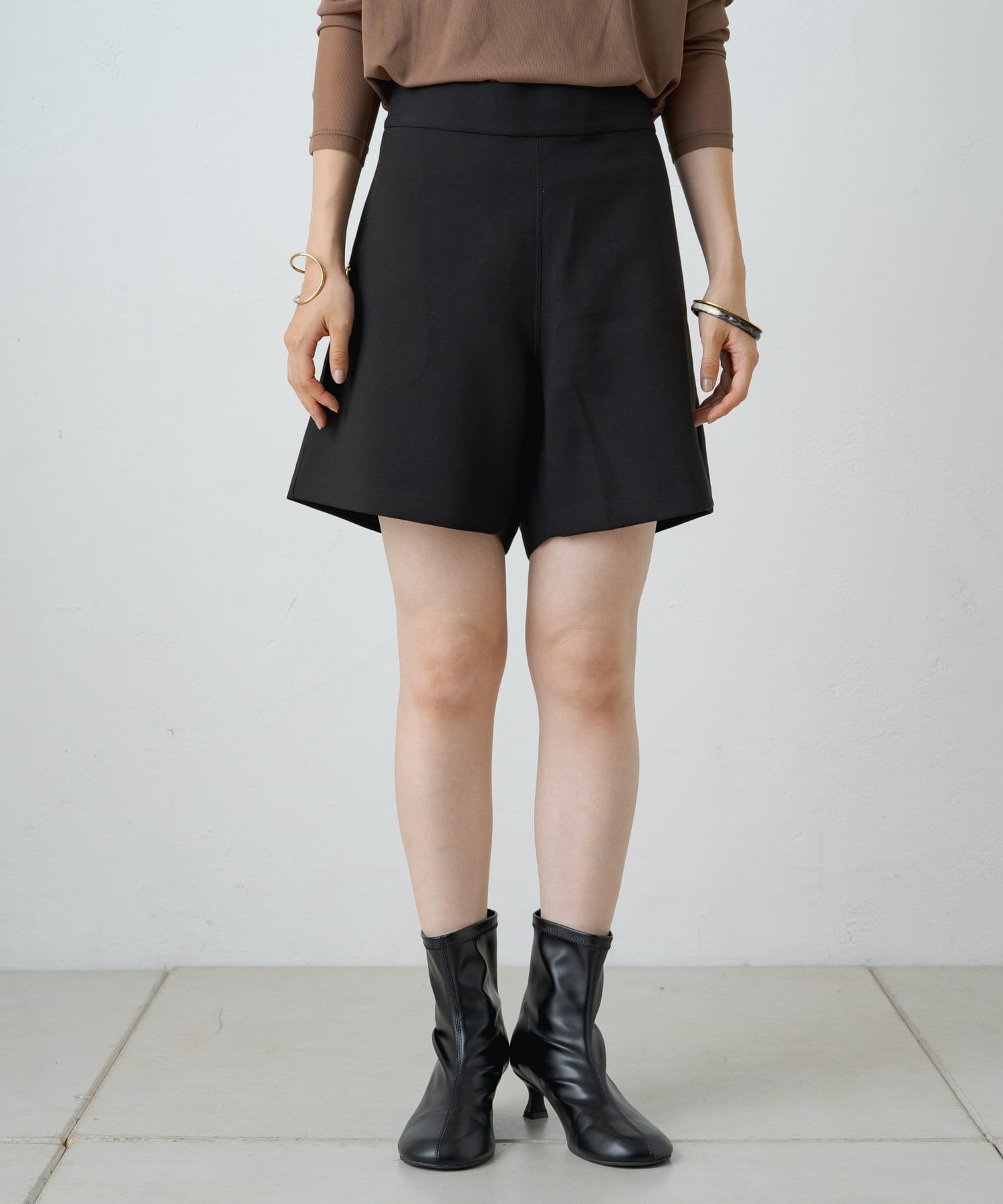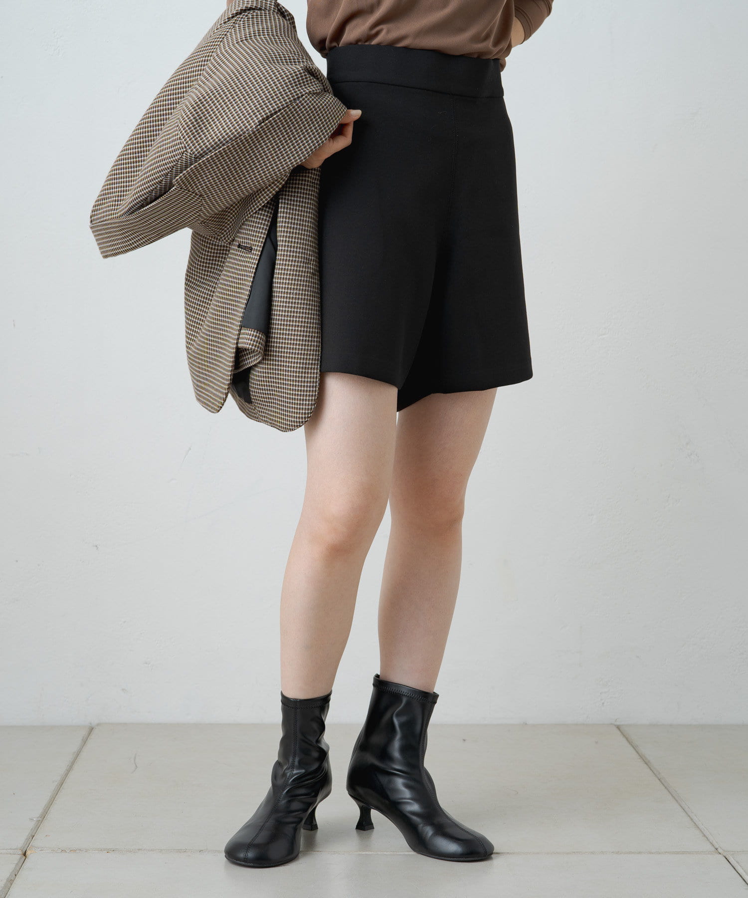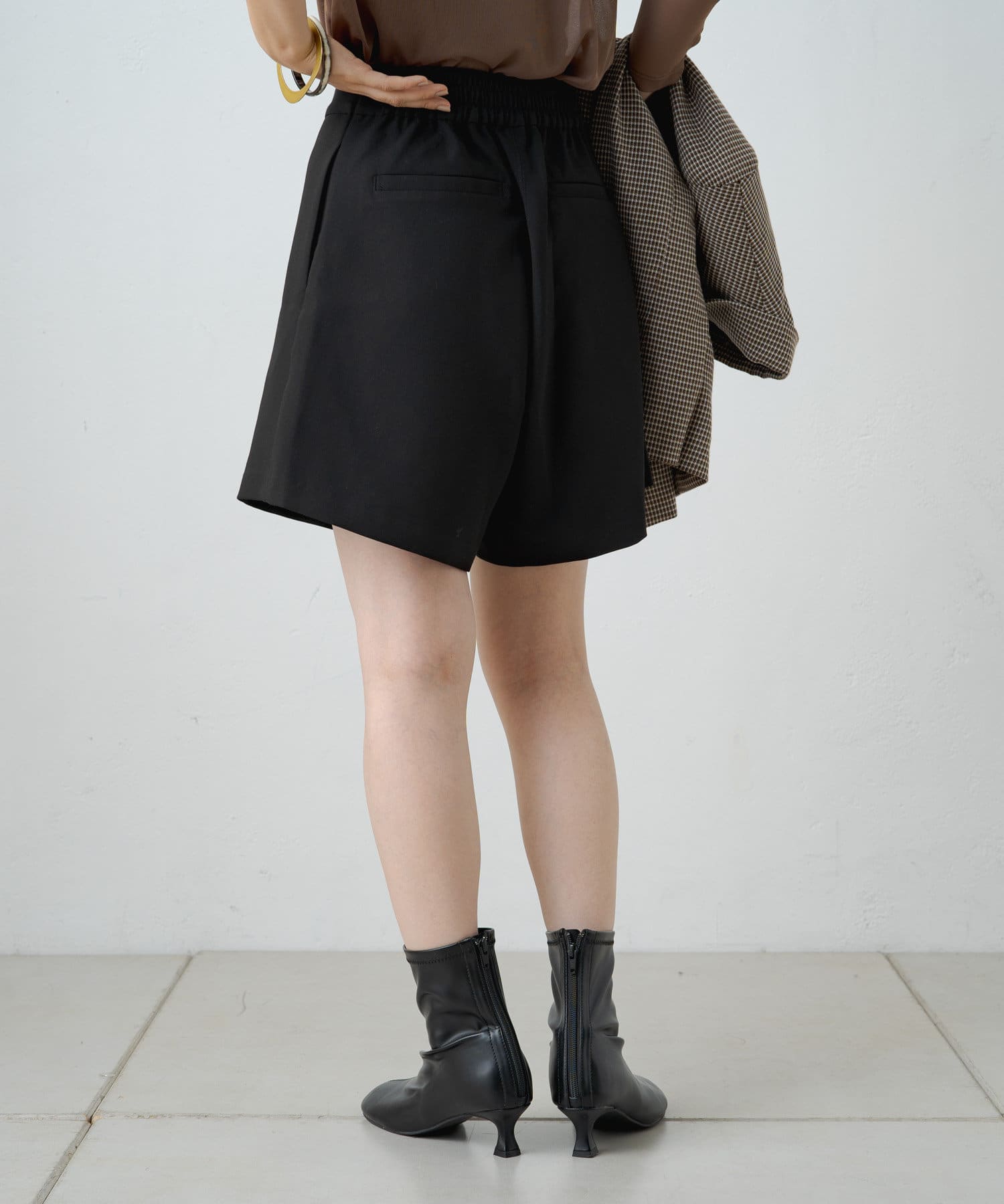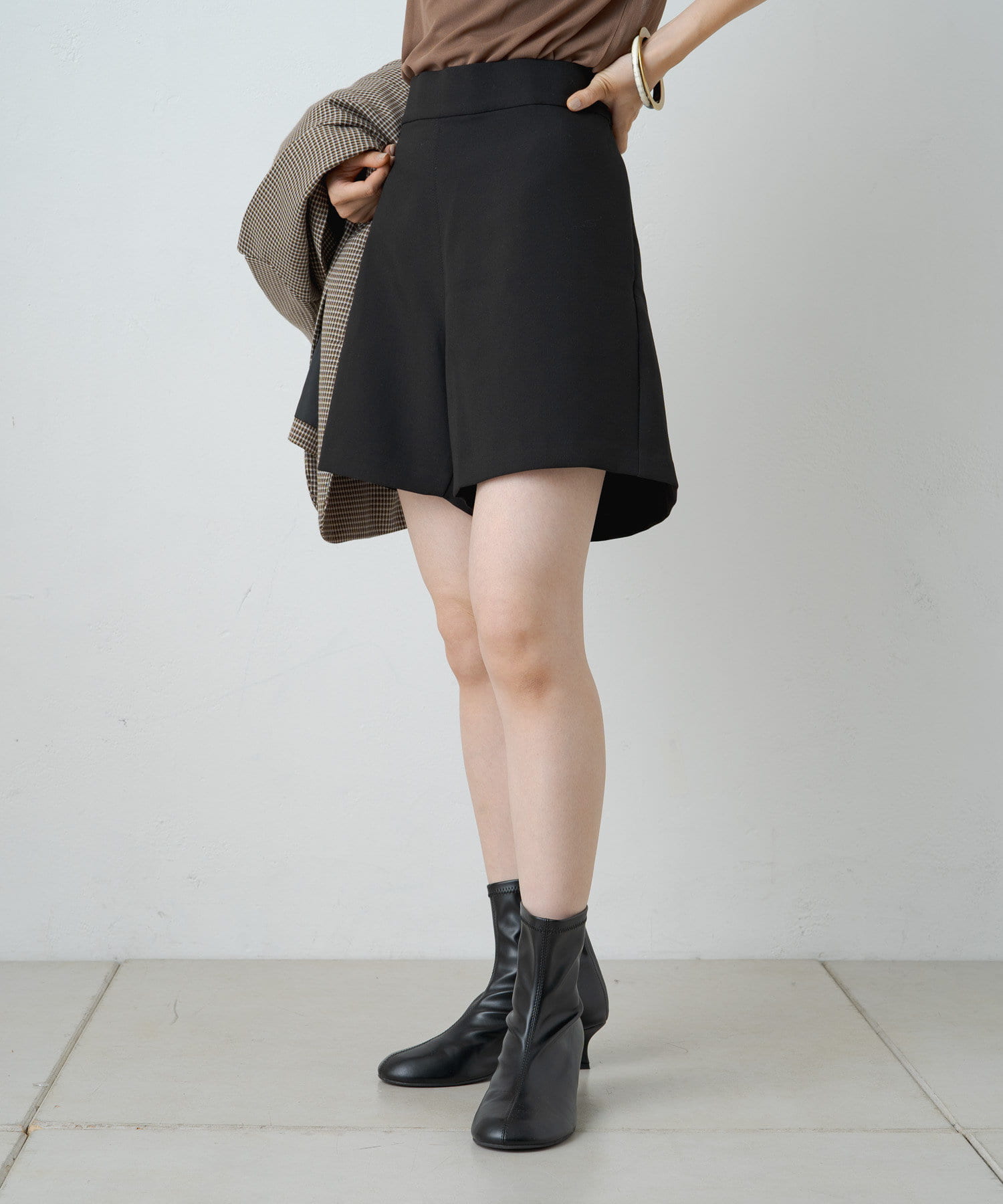 ハイウエストデザインでスタイルアップ見えする大人なショートパンツ