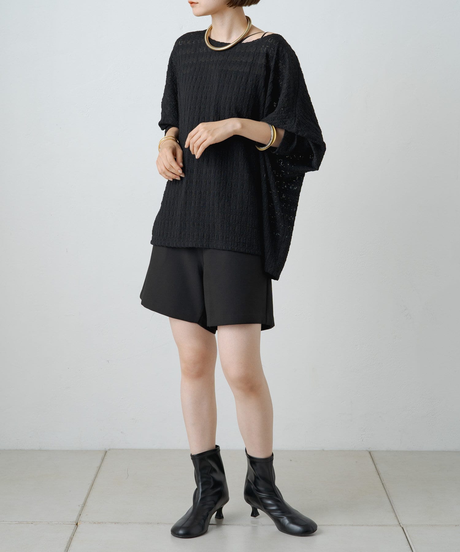 ・カジュアルなイメージのあるハーフパンツですが、スタイリング次第できれいめにも。